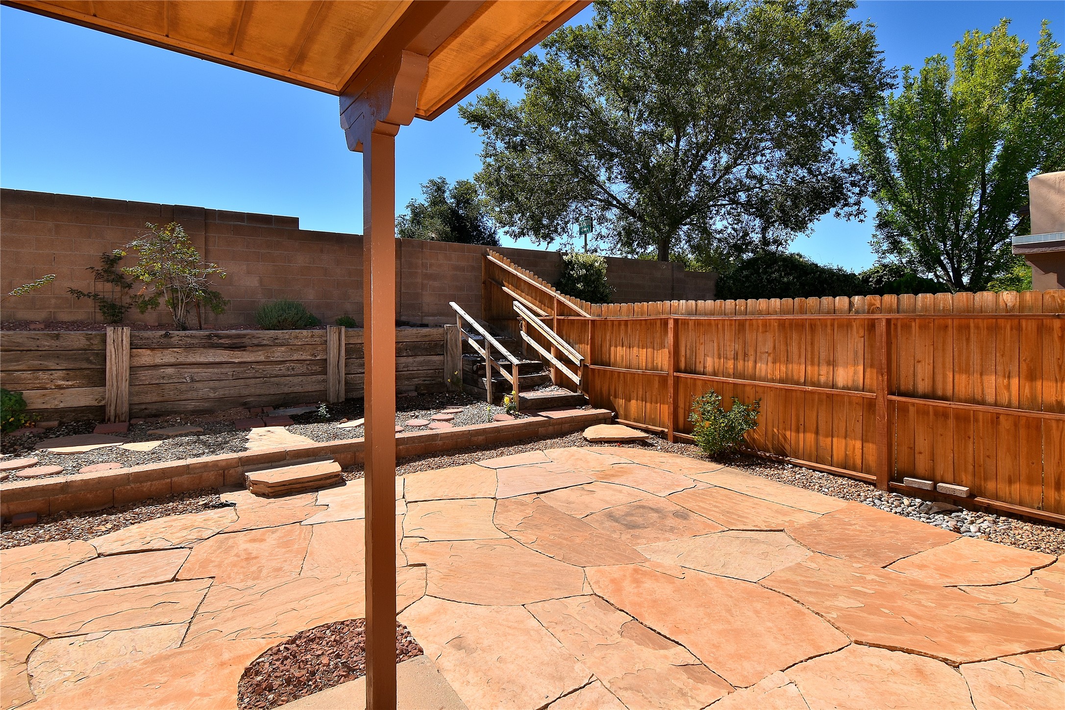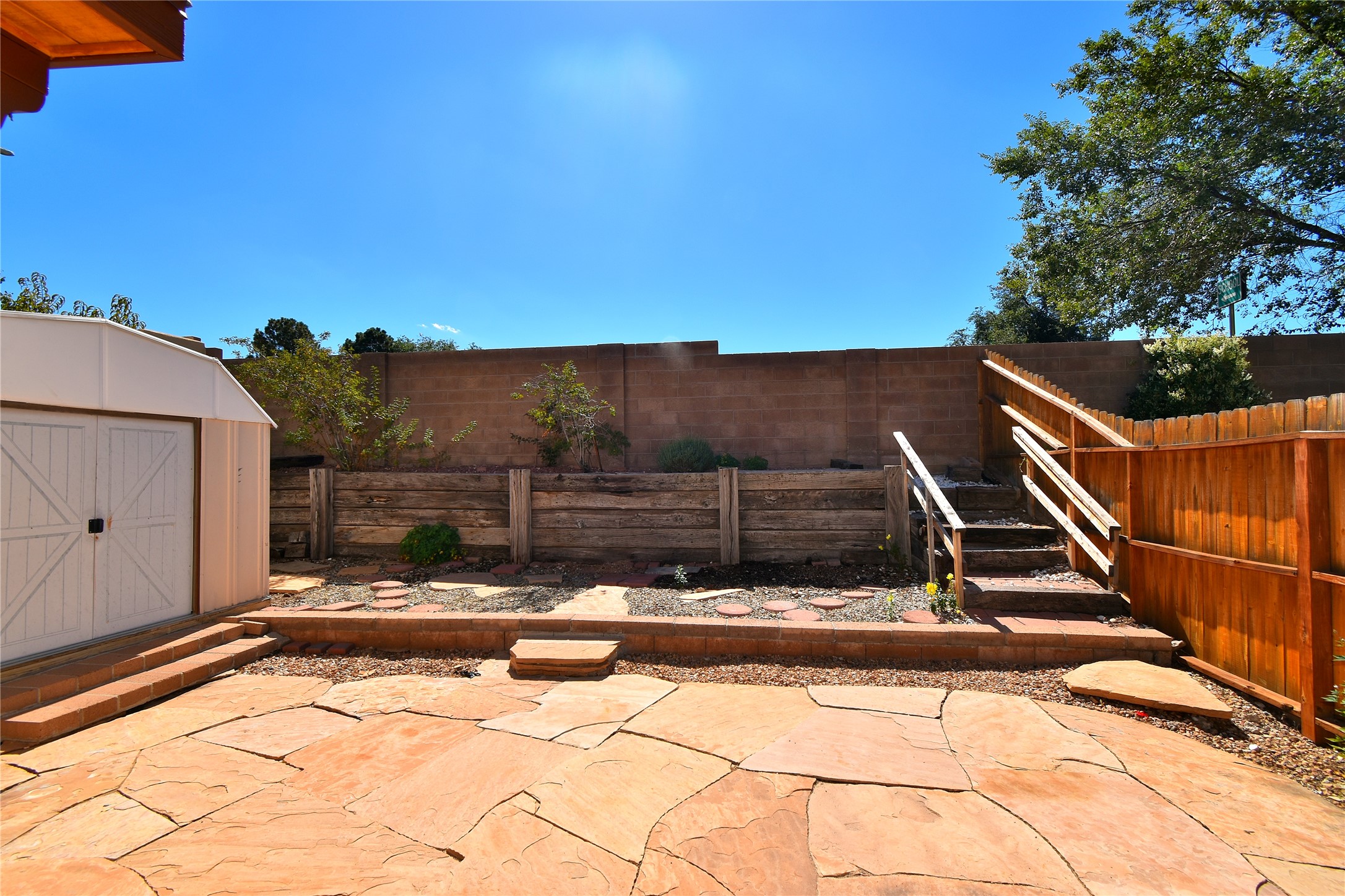 PRICE REDUCED AGAIN! NOW 425K. Beautiful, updated, light and bright and freshly painted home in Pueblo de Rodeo Rd. This single level home offers 3 bedrooms, 2 bathrooms and a 1-car garage with a spacious double driveway providing ample parking. An enclosed front entry courtyard welcomes you into the home. The galley kitchen features granite countertops, tile backsplash, pantry and new microwave in 2025. The backyard is private and offers a covered porch with flagstone and a large shed. Lovely features and amenities include: Newer windows-Remote Hunter Douglas top/down blinds-TPO roof-Tile and carpet floors-New washer and dryer in 2025 including water filter/softener system-Ceiling fans-Walk-in closet in primary suite-Carpet in the bedrooms. Super sweet home not to be missed.