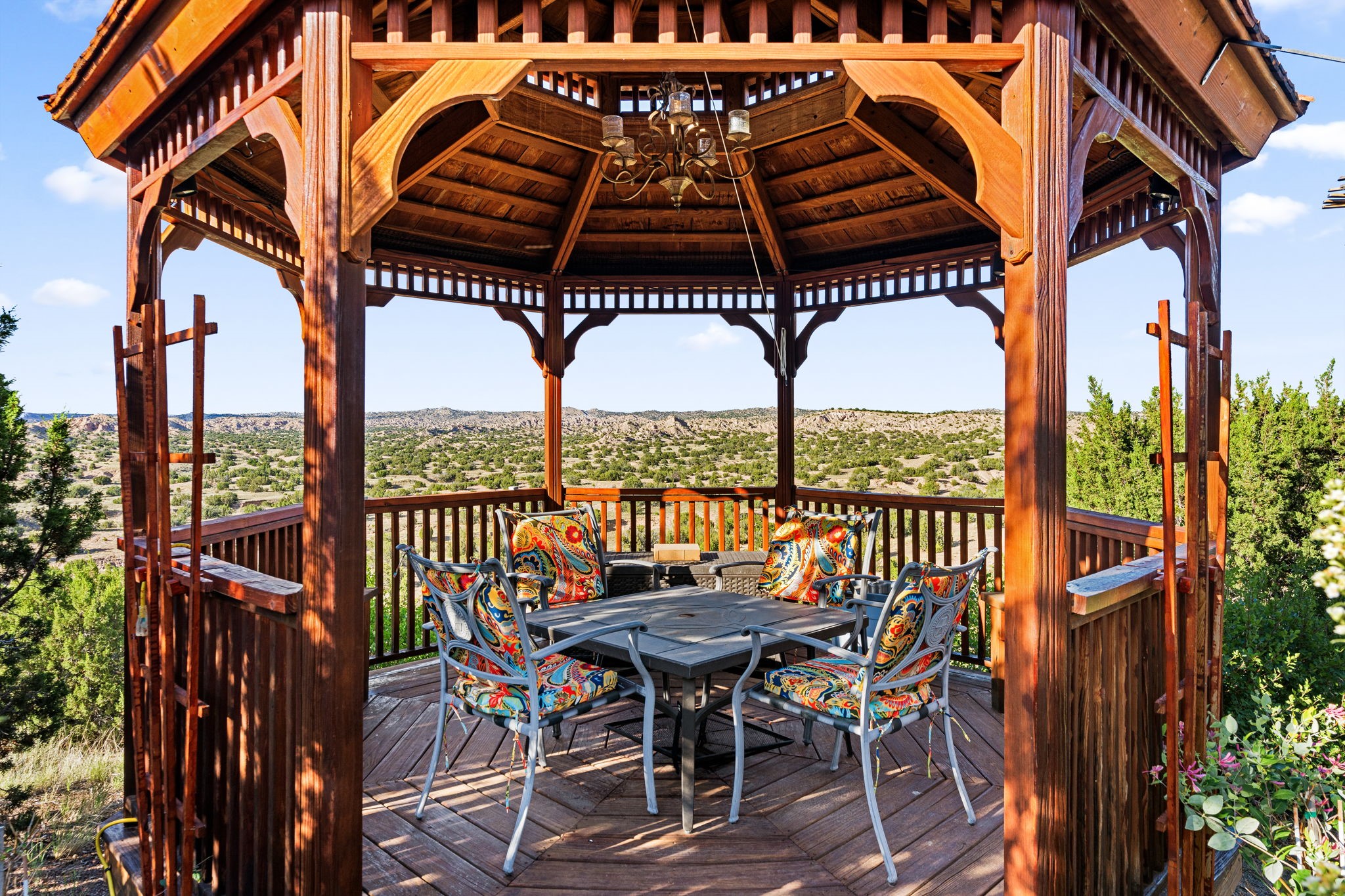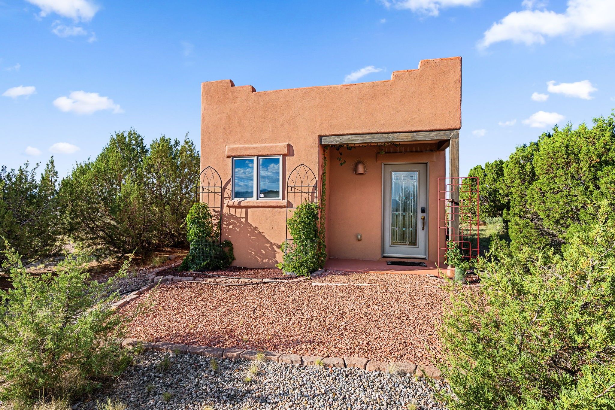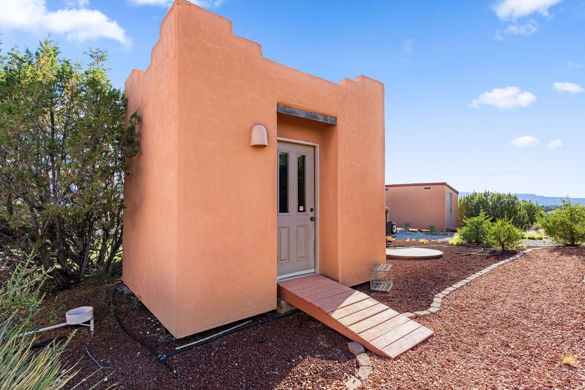 Perched Above It All | 53 Private Drive, Medanales, NMSet atop a quiet mesa with nearly 360 views of Northern New Mexico's iconic landscape, this soulful 3-bedroom, 2-bath Southwestern retreat rests on just under 9 acres of open sky and timeless beauty.Inside, the home blends rustic charm with clean comfort--Santa Fe-style smooth plaster walls, exposed wood beams, classic tile floors, and warm light moving through every space. With 2,295 square feet, the layout feels open and thoughtful, and a detached studio offers the perfect setup for remote work, a creative retreat, or private guest quarters. High-speed internet and refrigerated air ensure you're both off the grid and on the grid.From the front portal, the views stretch endlessly--from the Rio Chama Valley to the jagged outline of Cerro Pedernal, the mountain Georgia O'Keeffe painted again and again. There's a reason artists, writers, and seekers have long been drawn to this land--it stirs something deep.Whether you're sipping coffee at sunrise under your gazebo, sketching the shifting light, or heading out for a day trip to Abiquiu Lake, Ghost Ranch, or Ojo Caliente, life here moves slower, feels fuller, and breathes easier. Santa Fe is just 55 minutes away, Los Alamos about 45, and Taos a scenic 75-minute drive--putting world-class art, culture, and dining within easy reach.This isn't just a home--it's a place to live inspired.