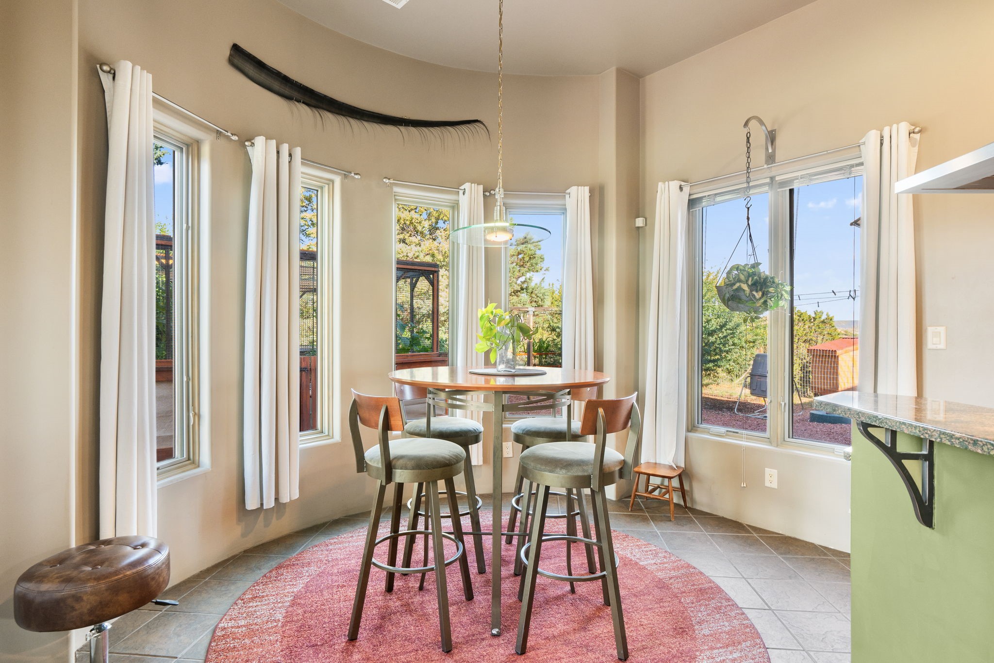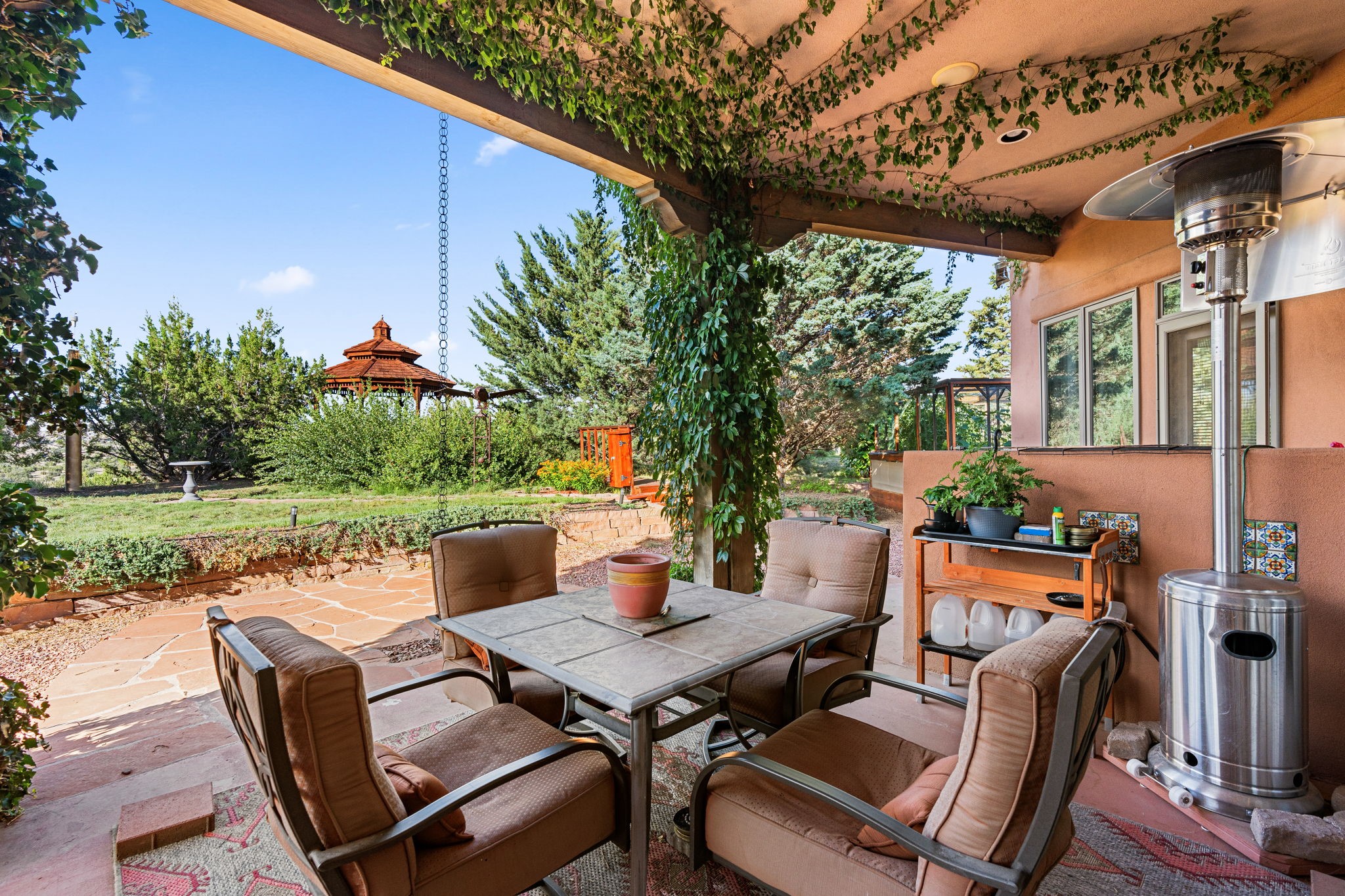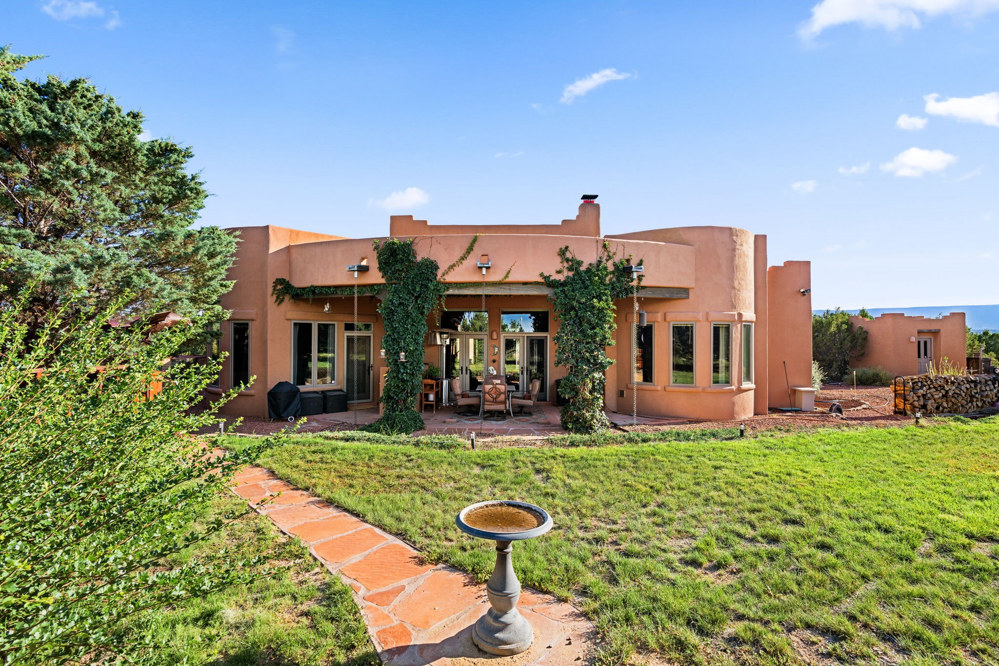 Perched Above It All | 53 Private Drive, Medanales, NMSet atop a quiet mesa with nearly 360 views of Northern New Mexico's iconic landscape, this soulful 3-bedroom, 2-bath Southwestern retreat rests on just under 9 acres of open sky and timeless beauty.Inside, the home blends rustic charm with clean comfort--Santa Fe-style smooth plaster walls, exposed wood beams, classic tile floors, and warm light moving through every space. With 2,295 square feet, the layout feels open and thoughtful, and a detached studio offers the perfect setup for remote work, a creative retreat, or private guest quarters. High-speed internet and refrigerated air ensure you're both off the grid and on the grid.From the front portal, the views stretch endlessly--from the Rio Chama Valley to the jagged outline of Cerro Pedernal, the mountain Georgia O'Keeffe painted again and again. There's a reason artists, writers, and seekers have long been drawn to this land--it stirs something deep.Whether you're sipping coffee at sunrise under your gazebo, sketching the shifting light, or heading out for a day trip to Abiquiu Lake, Ghost Ranch, or Ojo Caliente, life here moves slower, feels fuller, and breathes easier. Santa Fe is just 55 minutes away, Los Alamos about 45, and Taos a scenic 75-minute drive--putting world-class art, culture, and dining within easy reach.This isn't just a home--it's a place to live inspired.