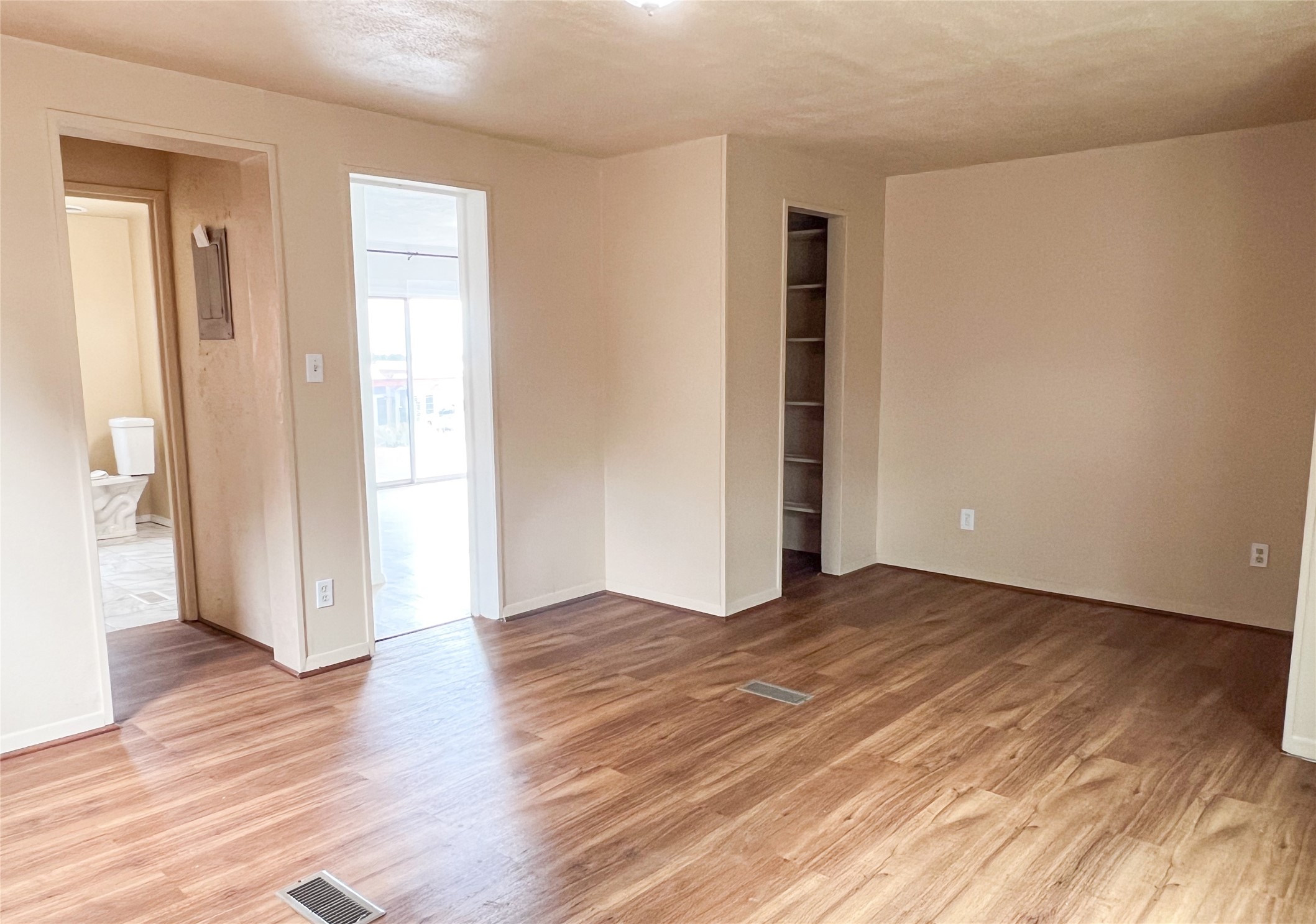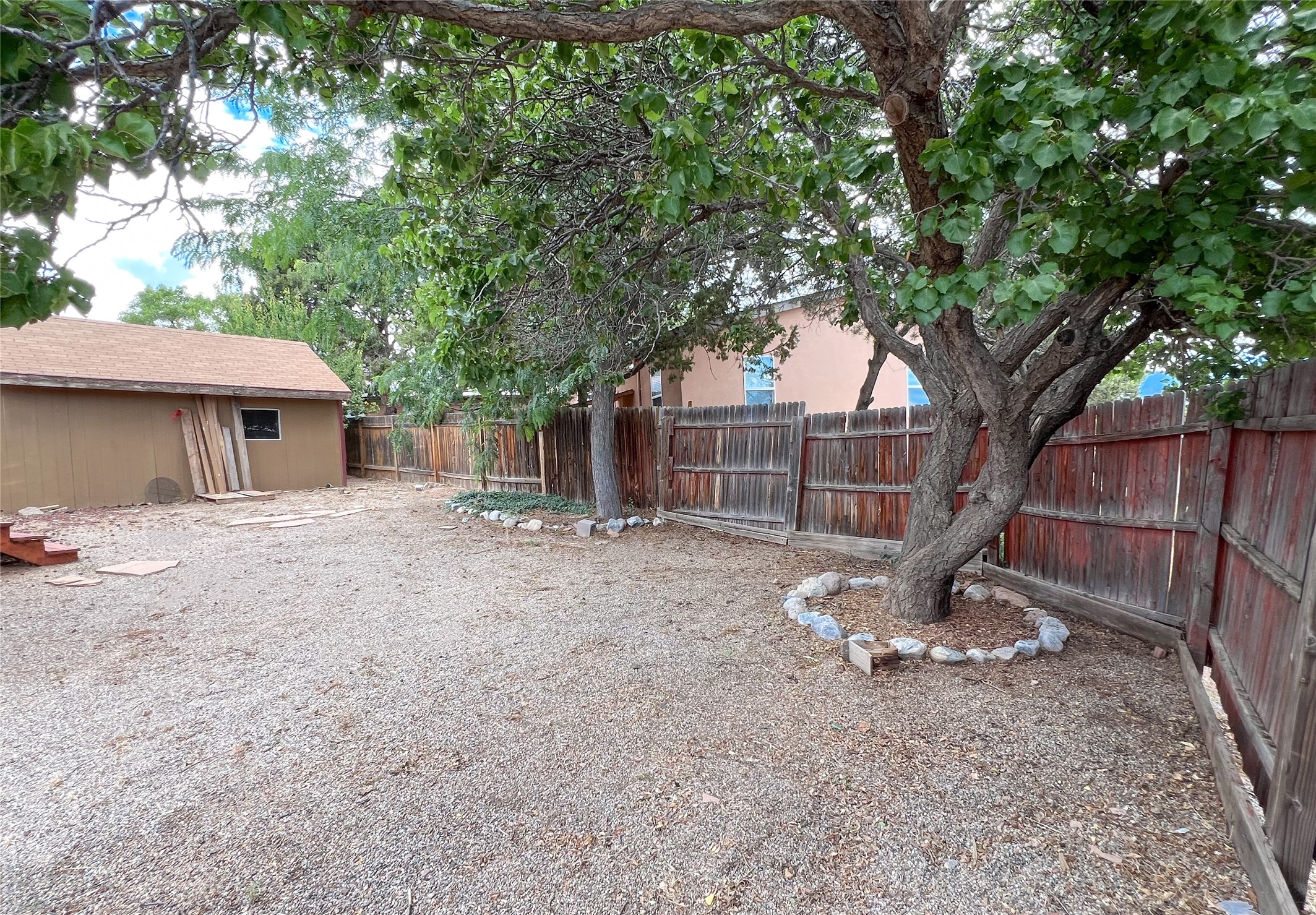 Don't miss this incredible opportunity to own a 3-bedroom, 2-bath home situated on a spacious corner lot in the Tsikumu Village neighborhood of Los Alamos. The home underwent an interior renovation in 2021, which included a modern kitchen with ample countertops, many cabinets, recessed lighting, and stainless steel appliances. Durable wood-vinyl flooring runs through the living area, while vinyl tile is in the dining room, and updated laminate flooring is in the primary bedroom. The open-concept layout offers a bright and welcoming space that's completely move-in ready. Step outside to a private, fully fenced backyard perfect for relaxing or entertaining. Enjoy the low-maintenance Trex deck, mature trees, and a shed with electricity, perfect for a workshop, studio, or additional storage. The property also includes a gated carport and ample off-street parking. This large corner lot offers extra space and plenty of curb appeal. Come see all that this well-located home has to offer. Schedule a private showing today.