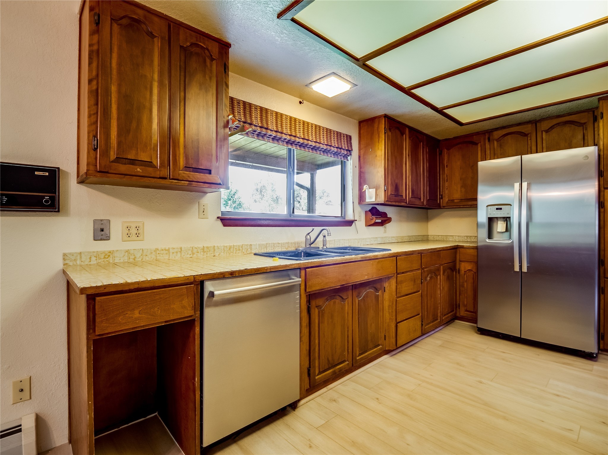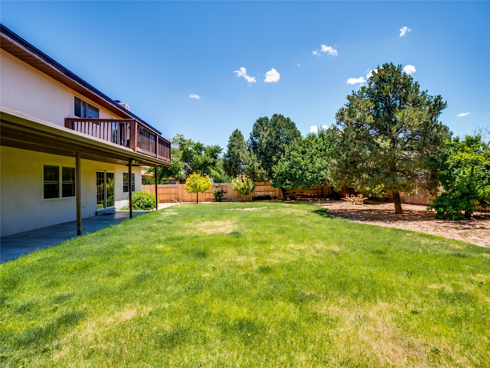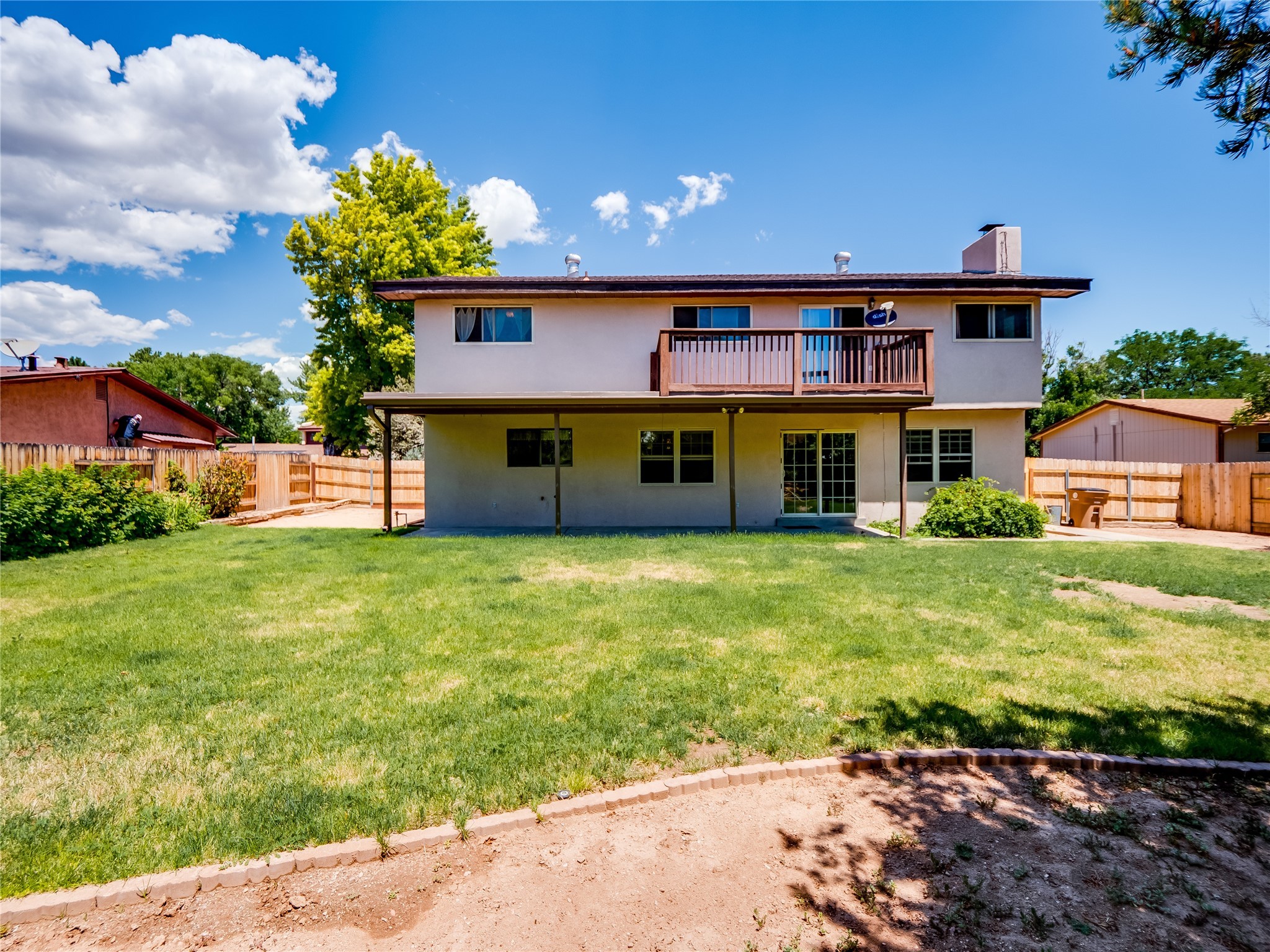 Discover this charming and character-filled two-story home located in the heart of White Rock. From the moment you arrive, the low-maintenance front yard welcomes you with mature landscaping. Through the front door a dramatic staircase makes a striking first impression and leads you into the warm and inviting living room where vaulted beamed ceilings soar overhead, natural light pours in from large windows, and a beautiful stone wood-burning fireplace anchors the space. Adjacent is the formal dining room featuring built-in banquet, ideal for showcasing your favorite serving pieces and storing dinnerware. The galley-style kitchen is both functional and full of retro charm, offering wood cabinetry, tile countertops and backsplash, and stainless steel appliances, including a gas cooktop and double oven. A cozy breakfast nook provides the perfect space for casual meals and morning coffee. Just beyond, a spacious family room offers endless comfort and versatility. This space features a built-in desk, a wet bar for entertaining, a stunning brick fireplace, and sliding glass doors that open to the backyard. Also on this level is a laundry room with access to the two-car garage, as well as a bathroom with a single sink vanity and a tiled walk-in shower. Upstairs, you'll find three nicely sized guest bedrooms and a full guest bathroom. The spacious primary en-suite is a true retreat, complete with a cozy wood-burning fireplace and its own private deck overlooking the lush backyard. The en-suite bath includes a double sink vanity, walk-in tiled shower, and a wall of mirrored closets with built-in organizers that lead into a large walk-in closet with additional storage. The backyard is a gardener's paradise--lush grass lawn, an abundance of fruit trees and raspberry bushes, and plenty of space to customize to your heart's content. A covered patio offers the perfect setting for entertaining or simply enjoying the beauty of your outdoor oasis. Come take your tour today!