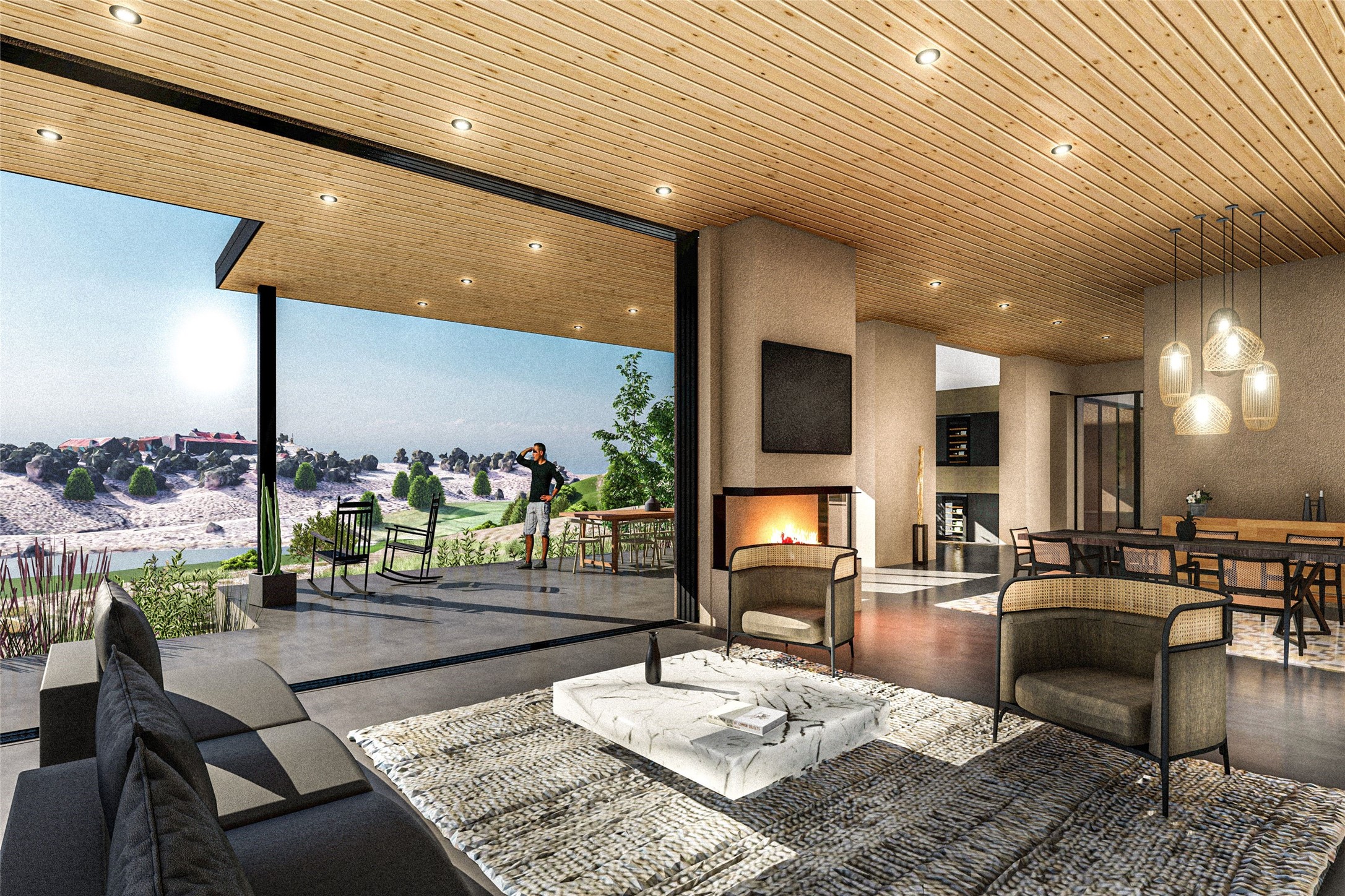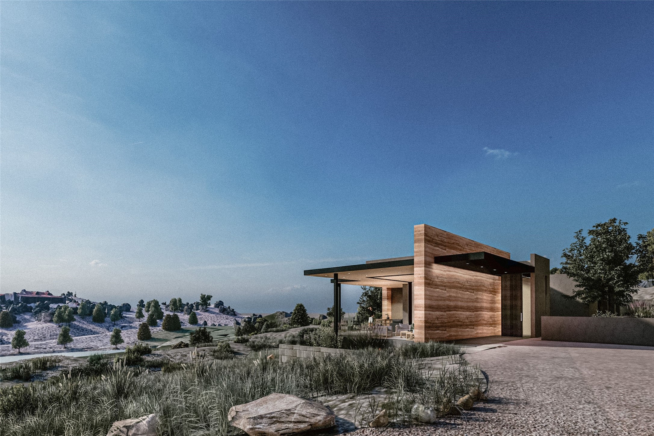 TO BE BUILT. With Las Campanas design approval and a building permit in-hand, groundbreaking can commence within weeks to create this one-of-a kind show place. The award-winning builders Zachary and Sons Homes will bring years of superior construction experience in Santa Fe to the execution of this sophisticated and warm contemporary single-level home. Sited along the fifth hole of the Sunset Golf Course, this coveted Parks Estates location excites with dramatic views of rolling green grass and lake, with a stunning mountain backdrop. New Mexico's own AIA Hunter Tidmore Redman has intentionally complimented the diversity of the landscape to create a masterpiece that will showcase all the principles of modern design and will result in a state-of-the art custom home in one of the most desirable settings in Las Campanas. The smart floor plan with three spacious bedroom suites, a media/flex room, three car garage and open living spaces bring the outdoors inside with walls of glass opening to central gardens and over 1700 square feet of outdoor living under the covered portals. A well-appointed chef's kitchen with an entertainment island will be the heart of the home. The builder will convey the architect's innovations with the use of modern materials like concrete, glass and steel combining seamlessly with traditional wood ceilings and walls complimented by natural stone elements. The buyer will be able to choose custom finishes and the striking result will provide not only an elegant framework for sophisticated living but a retreat that allows for the maximum absorption of the surrounding landscape and dramatic displays of Northern New Mexico light. Come live the dream and all that the gated community of Las Campanas has to offer which includes golf, spa, fitness, swimming, tennis, pickleball, equestrian center, dog park, trail systems, 24 hour security and a grand clubhouse with world class dining.