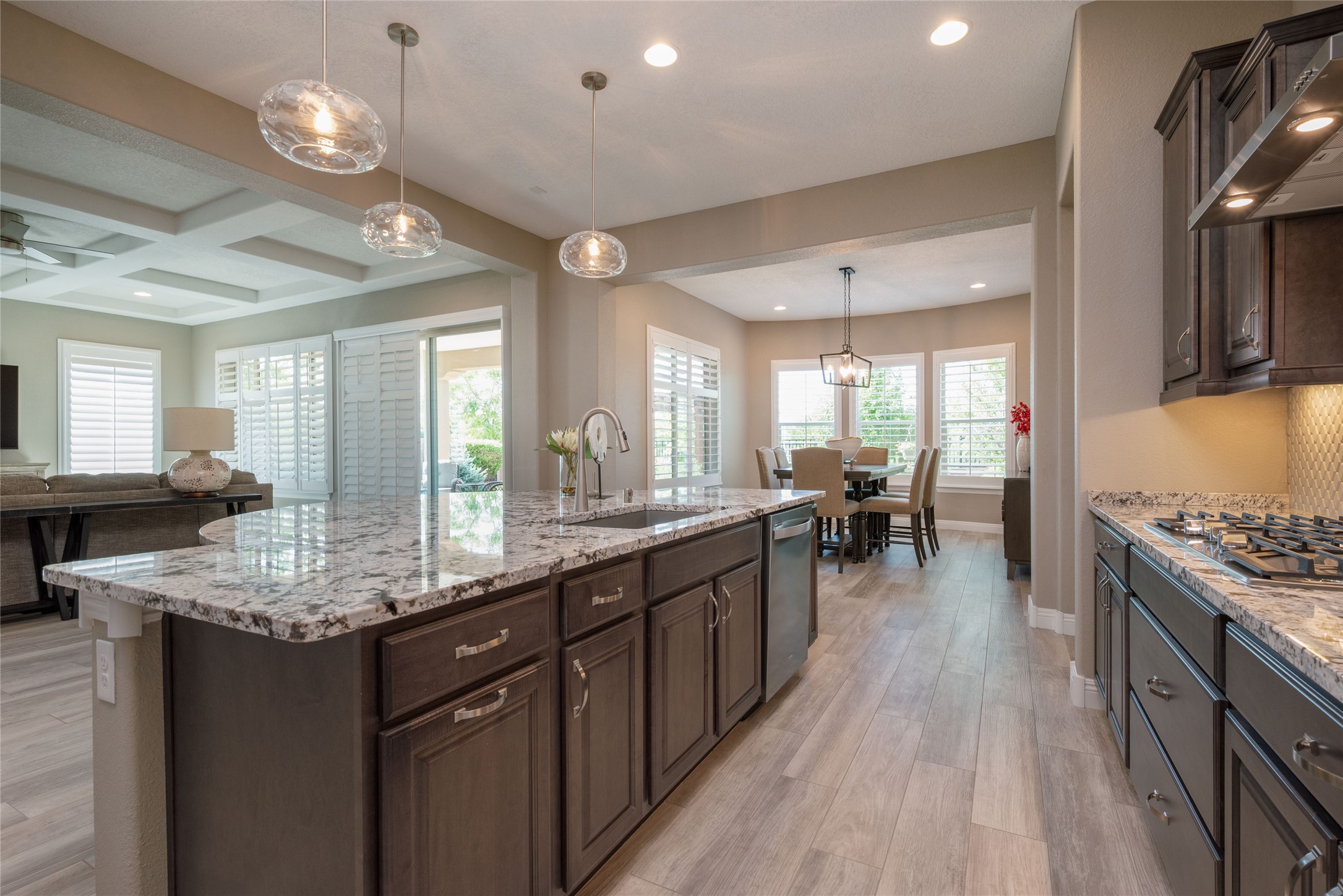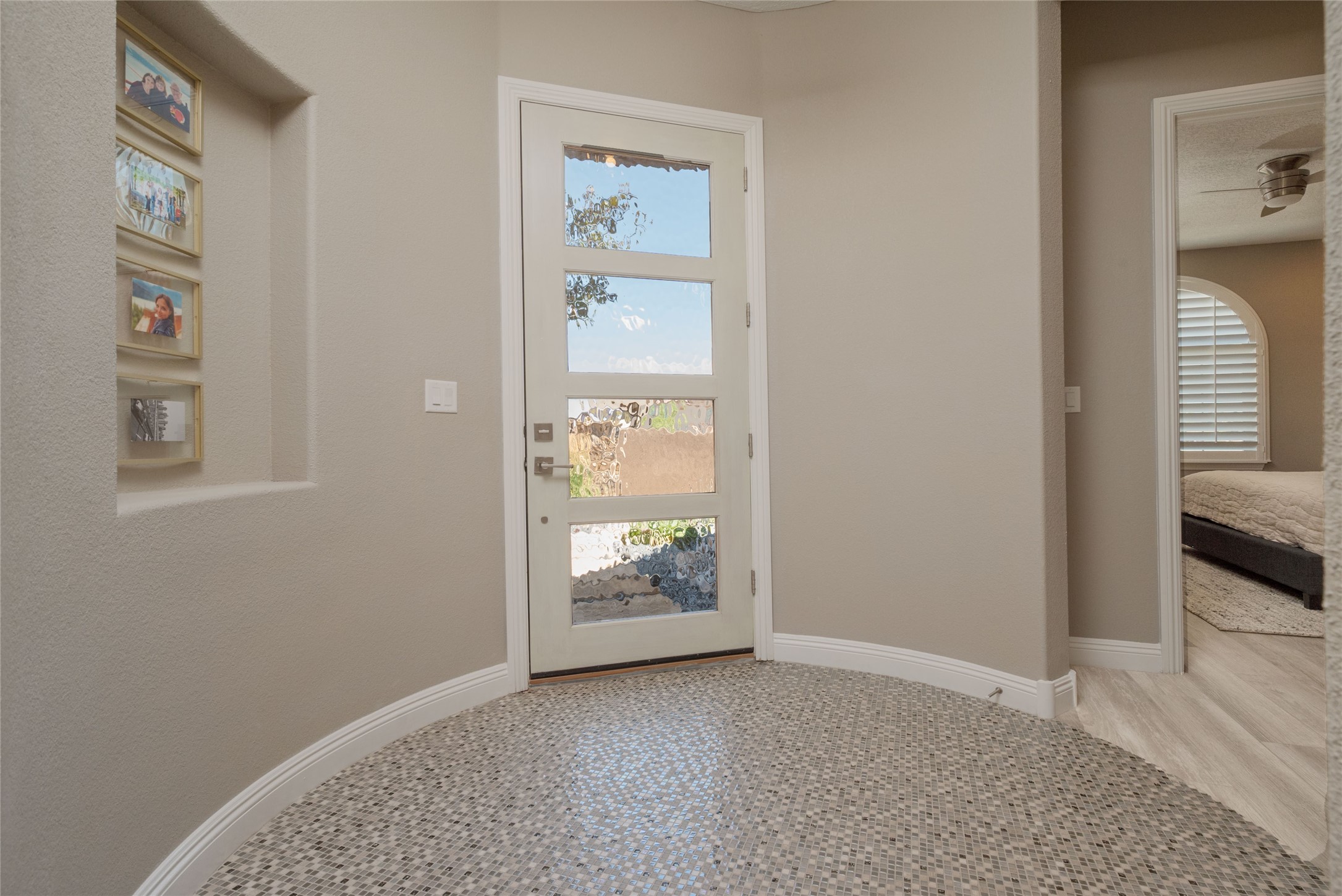 Discover the perfect blend of comfort, style, and convenience in this beautifully designed 2019 home, featuring two private en-suite bedrooms ideal for hosting guests with ease. High-level finishes throughout create a refined yet inviting atmosphere, while the thoughtfully landscaped yard offers year-round beauty with minimal upkeep. The open floor plan accommodates easy living with a kitchen any chef will love. The spacious en-suite bedrooms enjoy separation ensuring privacy for all. A flex room with courtyard window is ideal for home office, library or media room. The large, covered flagstone portal patio off the living room overlooks the water features, gazebo and garden. The oversized garage includes extra storage, making it easy to keep everything organized without sacrificing space for your vehicles. Did we mention this home is on a greenbelt? Designed for the busy professional or those ready to downsize without compromising quality, this home offers low-maintenance living in a serene setting-just move in and enjoy. Shopping, dining and medical options are all nearby. The Las Soleras community offers walking paths and greenspaces for residents to enjoy.