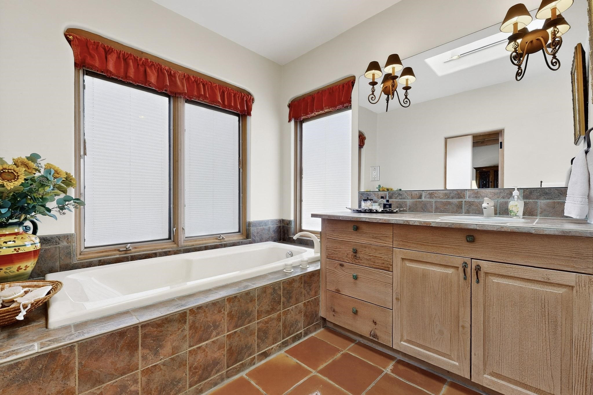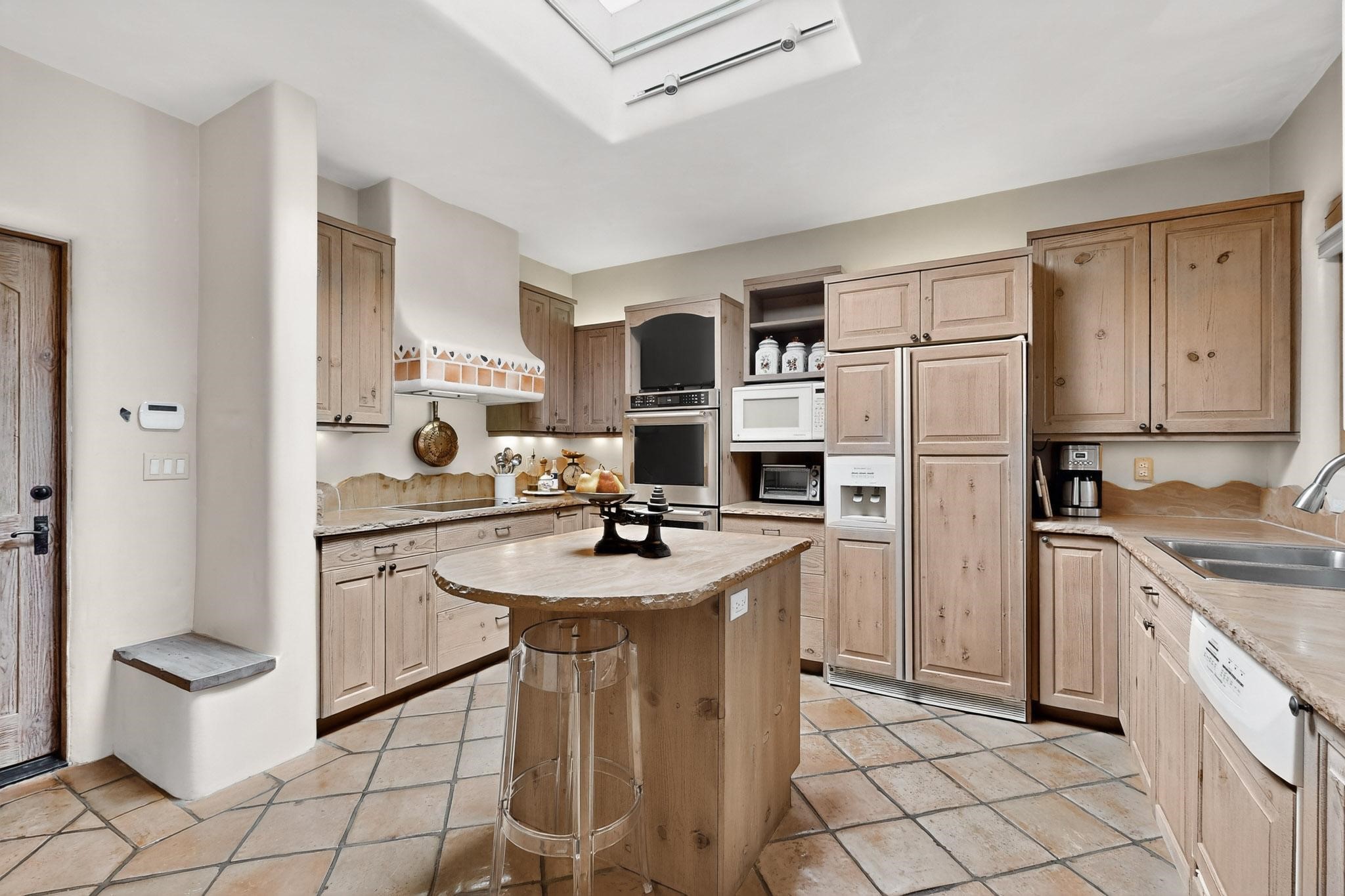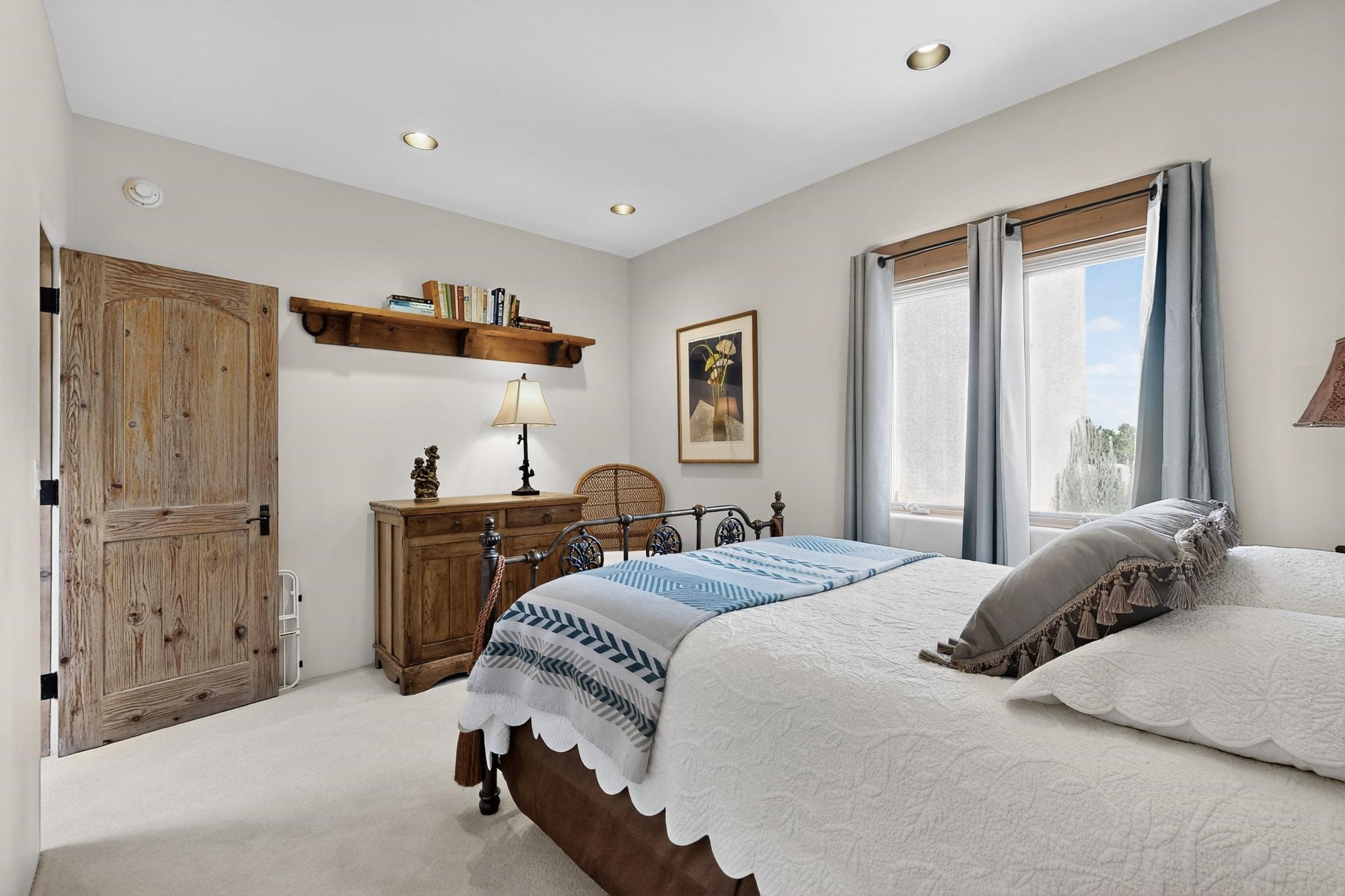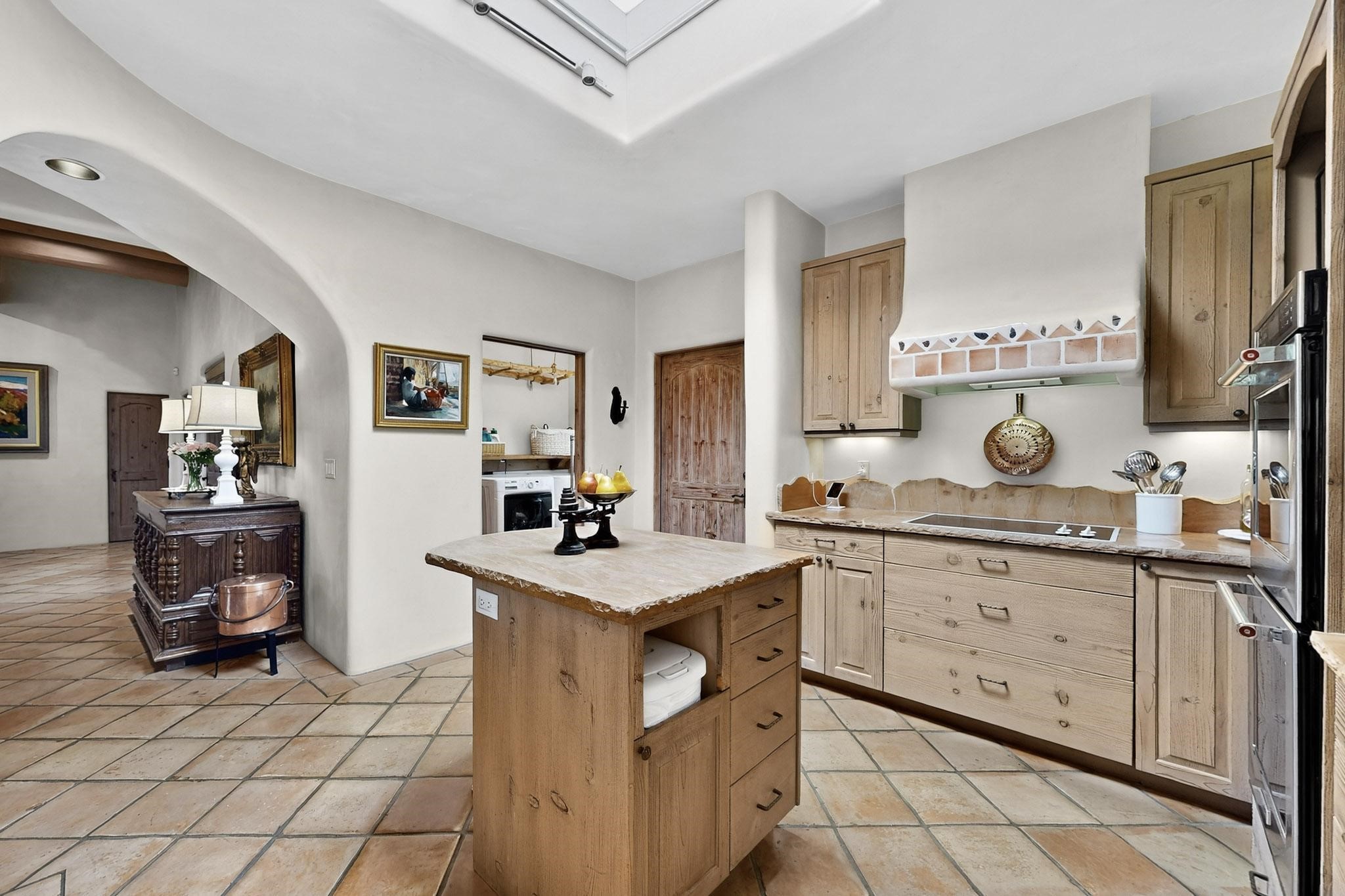 Vast sweeping panoramic western views define this exceptional property. The main house includes a primary bedroom suite with a fireplace, comfortable sitting area and a spa bath for relaxation. Large windows showcase the expansive western vistas, and doors lead to the portal. An additional room serves as either a TV room/office or bedroom and features its own fireplace and stunning views of the Sangres. The open floor plan seamlessly connects the living room, dining room, and kitchen, all centered around the fireplace. A unique and charming casita complements the main residence, equipped with a kitchenette, bath, and a cozy fireplace, making it ideal for guests or extended living. The wraparound portal, featuring a fireplace, showcases sweeping western views, offering the ideal setting to enjoy breathtaking sunsets. Relax to the soothing sounds of the stone fountain and enjoy watching the birds and butterflies in the fragrant colorful garden. A large patio area including a built-in grill, features additional space for relaxing and entertaining. The rooftop deck offers spectacular 360-degree views and the gated and walled property offers privacy.