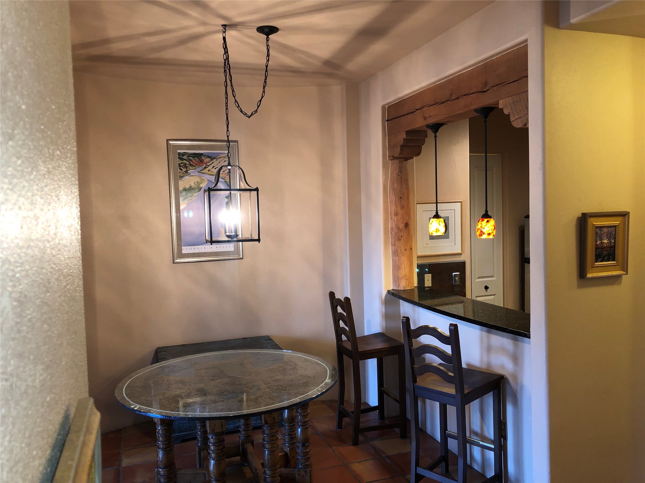 Spacious 2nd floor, Unit B-238, north facing 2 bedrooms, 2 bath condominium located in The Alameda. Extra attached storage area plus a large detached garage. This well done unit features vigas, tongue and groove ceilings, Saltillo and slate floors beautifully done. tile and granite counter tops in kitchen and baths, stainless appliances, washer and dryer included, high ceilings with vigas, Natural gas kiva fireplace, refrigerated air and nice deck area. Amenities: The Alameda is a secure complex, security patrols, with gated parking areas, located in the heart of Santa Fe's prime recreational, entertainment and shopping corridor and boasts a private fitness center, fabulous inner courtyard and outdoor pool, conference center, offices, public gathering area, wine tasting room and is 24 hour access controlled. It's a fantastic unit in a great building & allows for good quality of life.