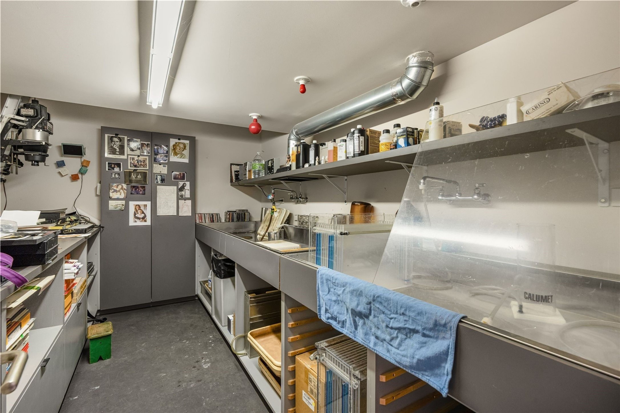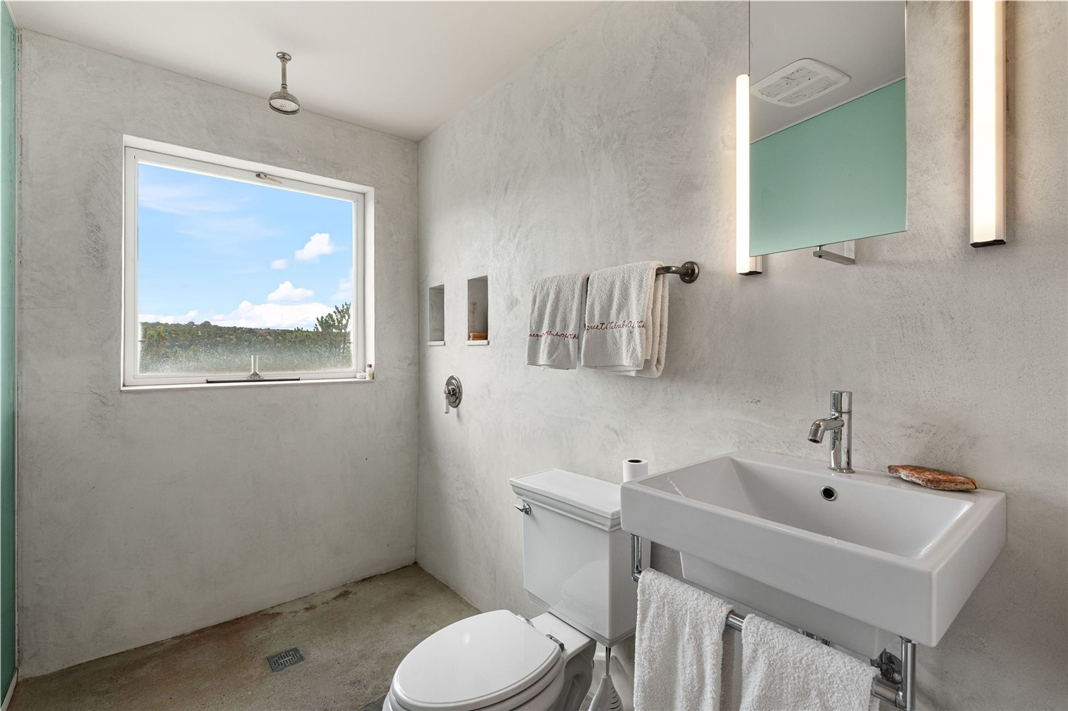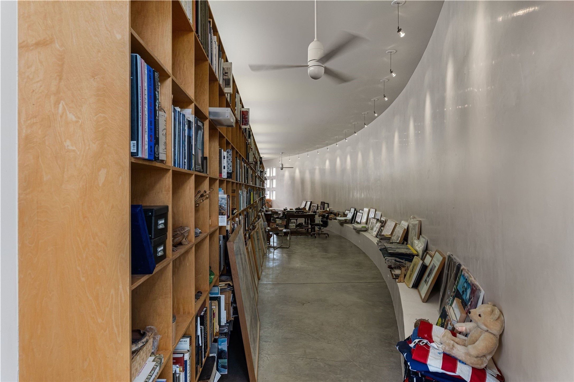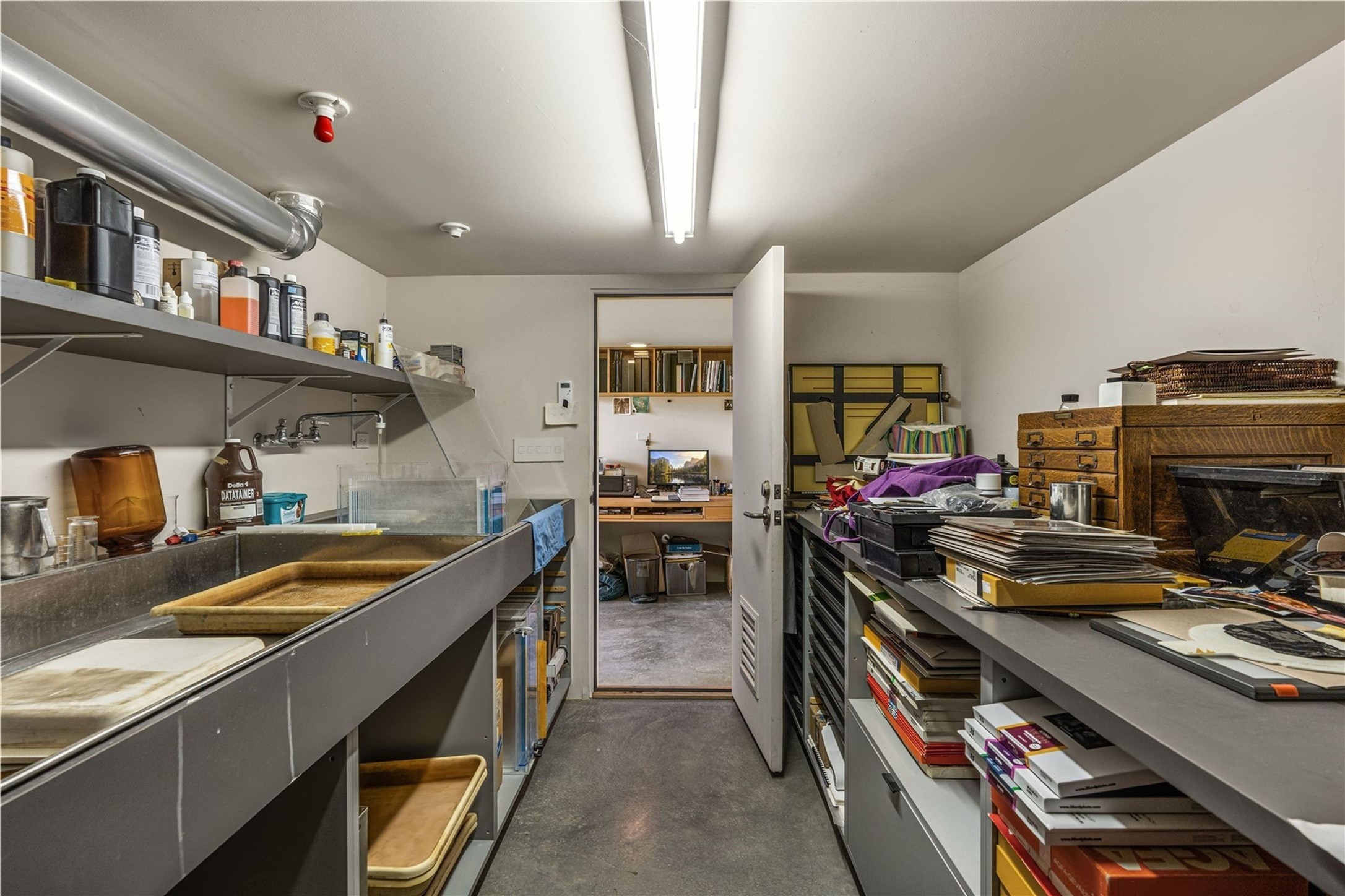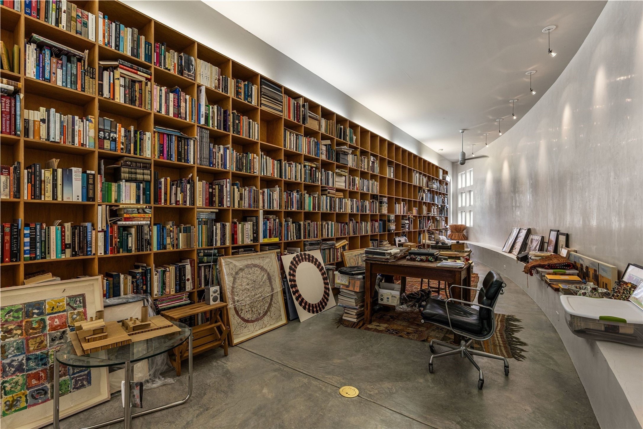 Stunning Modernist artist retreat in Tesuque located on a heavily wooded 7+/- acre view lot. Conceived by the owner as a private residence including a spectacular professional studio high on a ridge above the residence, the living quarters are divided into two structures separated by a spacious bricked patio.The larger of the two structures includes a well-equipped kitchen featuring an Aga stove, zinc counters that separate the dining area which leads to the living area. Open concept design, 12 foot ceilings throughout, surrounded by 10' glass walls on two sides, there are polished concrete floors, in-floor radiant heat, all adding to a great sense of volume and space. In intimate study that functions as a occasional guest bedroom includes a 3/4 bath. There is passive solar heating assistAccoss the bricked patio is the second structure including a massive bedroom, a large walk-in closet and full bath with jetted tub, twin sinks and shower compartment. 12' ceilings, diamond plastered walls and polished concrete floors with in-floor radiant heat and 10' glass walls.On the ridge above is an amazing professional studio that has been used for photography. A full dark room is included. There are polished concrete floors with radiant heat, 12' ceilings and a huge glass wall with a roll-up glass door. Also there is a guest space that includes a kitchen, a 3/4 bath and sleeping loft. Adjacent but completely separate is a stunning 65' long gallery and library with 10' high wood grid bookshelves.
