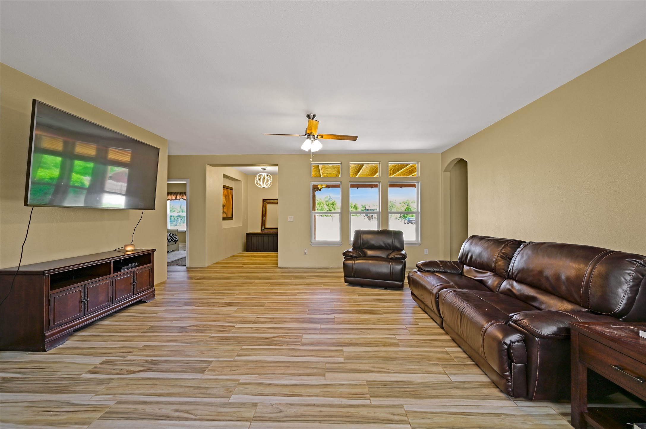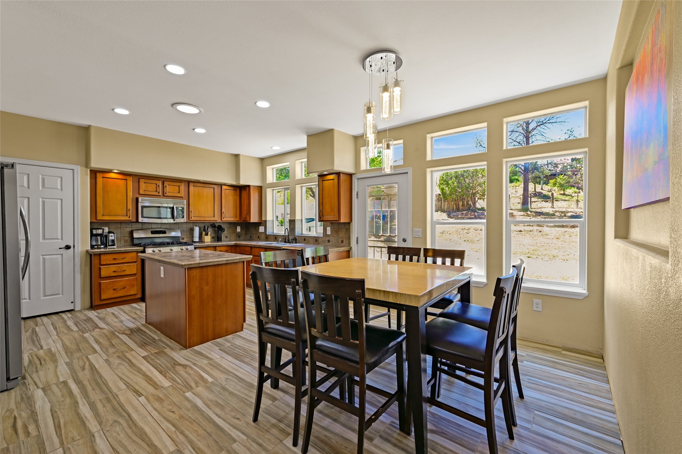 This beautifully maintained home is PRICED BELOW APPRAISED VALUE. Single-level home in a great location. Quiet neighborhood with wide-open views that capture the serenity of Northern New Mexico, filled with natural light, creating a bright and airy feel throughout. The open-concept living and dining areas feature modern finishes--perfect for everyday comfort and entertaining. At the heart of the home is a thoughtfully designed kitchen, complete with stainless steel appliances, rich wood cabinetry, an island, and windows that frame the tranquil landscape. The generous lot offers endless potential. Embrace the stunning skies and natural beauty that define Northern New Mexico living. WILLING TO ACCEPT REASONABLE OFFERS