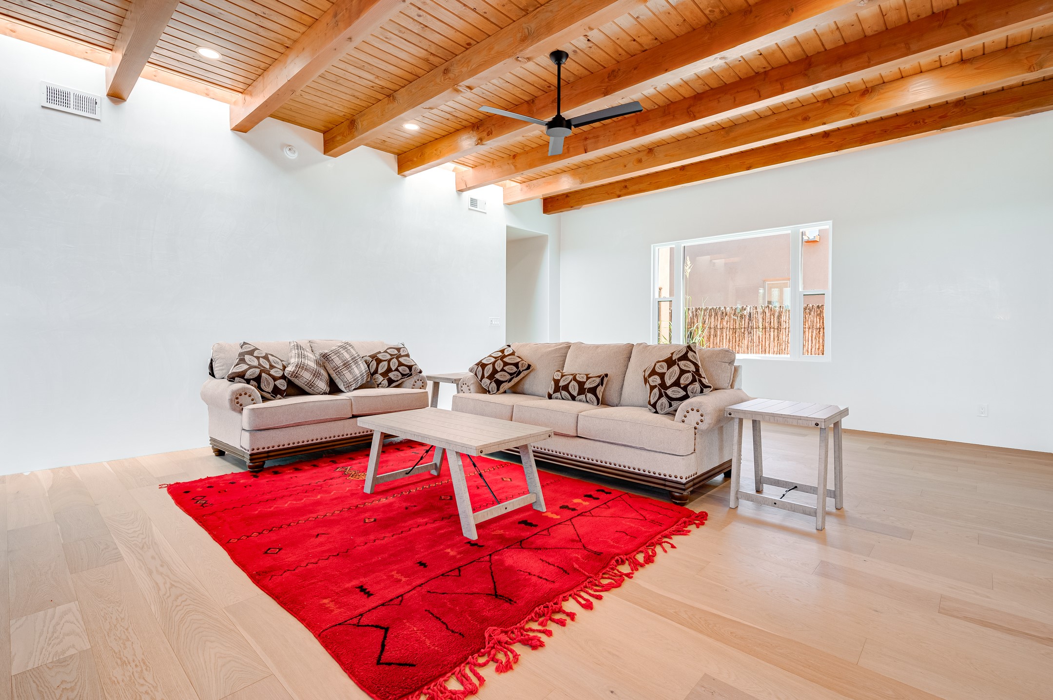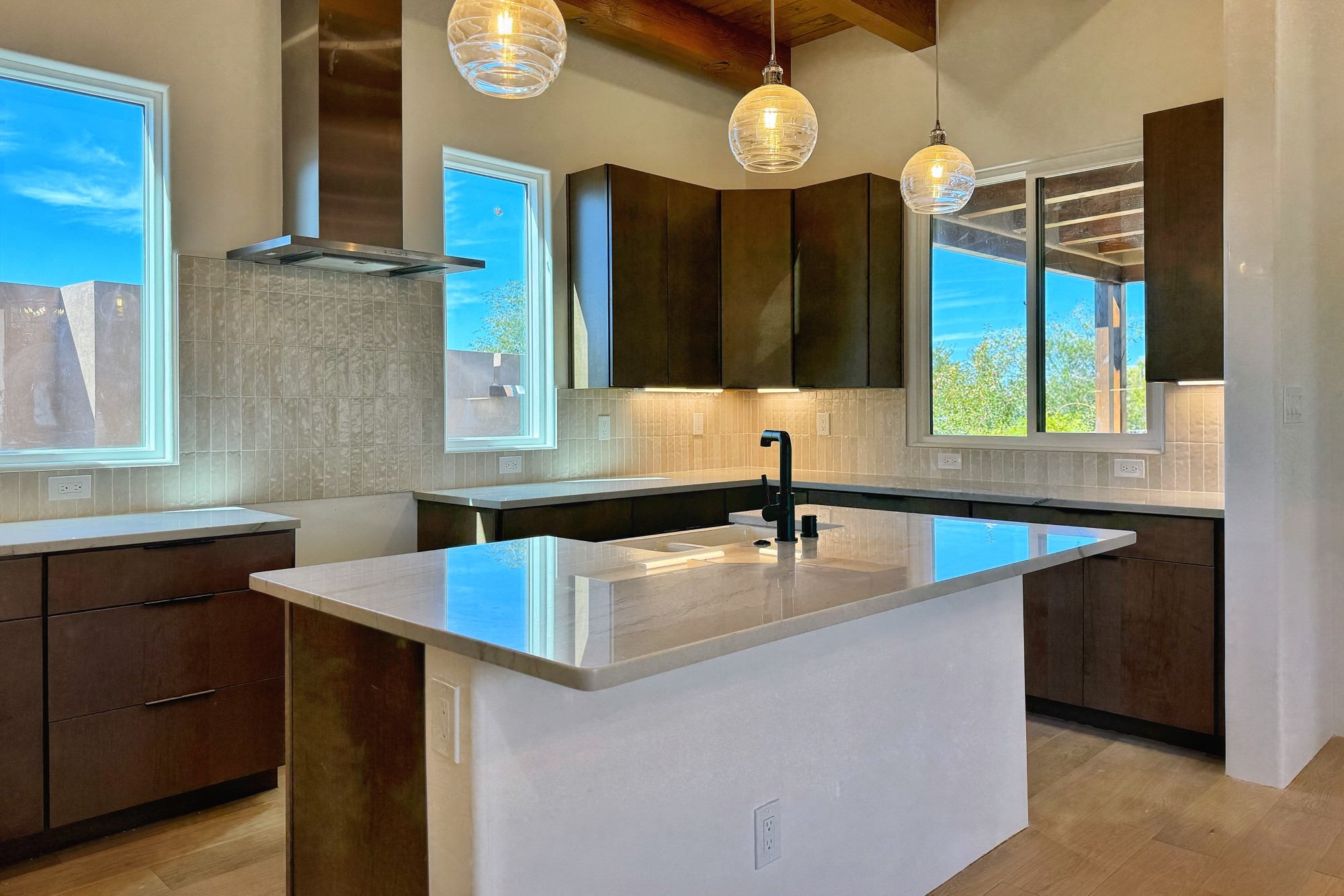 Crafted by Borrego Construction, this home exudes a blend of inviting elegance and modern flair. Boasting 3 bedrooms and 2 baths, it offers luxury amenities and a seamless open floor layout. Delight in Venetian Plaster accents, a lavish master suite with a spacious walk-in closet, an expansive shower and exquisite tile finishes. The living space features a gas linear fireplace, visible from both indoors and outdoors. Situated in the coveted Plaza Bonita neighborhood. This property offers convenience with it's proximity to the hospital and shopping amenities. Enjoy the sought-after lifestyle in Santa Fe's Plaza Bonita enclave.