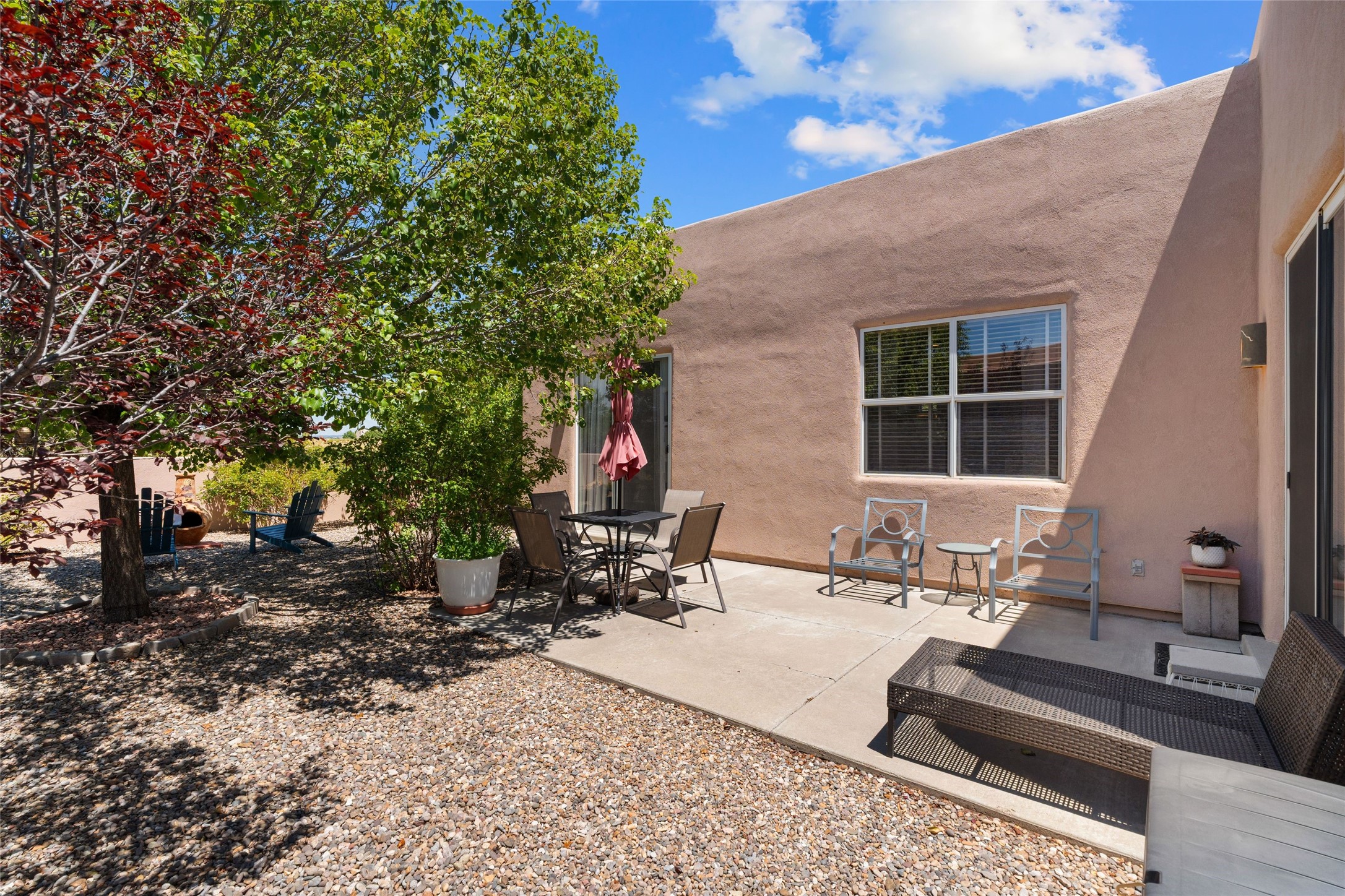 Discover comfort, style, and beautiful mountain views in this meticulously maintained and recently updated 2-bedroom, 2-bath home with a versatile bonus room--perfect for an office, library, or dining space--in sought-after Rancho Viejo. Surrounded by parks and open space, this light-filled home captures stunning vistas of the Jemez Mountains and offers the ideal blend of modern upgrades and warm Southwestern charm. Inside, enjoy brand-new flooring, custom tilework, fresh interior paint, and radiant in-floor heating with three zones for year-round comfort. The open-concept living area features a cozy gas fireplace, while the well-appointed kitchen and adjacent laundry room include all appliances for move-in ease. Step outside to a lush, professionally landscaped yard with mature fruit trees and three rainwater catchment cisterns--an eco-friendly oasis perfect for relaxing or entertaining. A 2-car garage plus 3 parking spaces provide ample room for vehicles, gear, and storage. Residents of Rancho Viejo enjoy miles of scenic walking trails, abundant green spaces, and unforgettable sunsets. Ideally located just 12 miles from the Santa Fe Plaza with quick access to Hwy 14, shopping, dining, and all the best amenities on Santa Fe's south side, this charming home offers the perfect blend of convenience and tranquility.