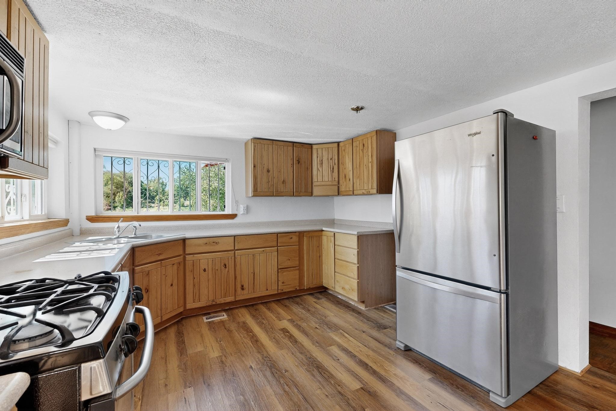 Tucked away in a serene, private haven far from the hustle and bustle, but only 23 miles from Santa Fe, and 21 miles from Los Alamos, this 5.04-acre horse property weaves together rural charm and modern comfort. Enveloped by lush, irrigated land and shaded by towering cottonwood trees, the estate offers a tranquil retreat perfect for those craving peaceful solitude. The property consist of four separate but adjoining parcels, with a well-maintained large barn that stands ready for equestrian pursuits or hobbies, while secure water rights ensure the vibrant pastures and greenery thrive year-round. Scattered across the property, fruit trees yield seasonal delights, adding a touch of homesteading allure. At the heart of this oasis lies a converted and expanded 3-bedroom, 2-bathroom manufactured home. Whether you're an equestrian enthusiast, a nature lover, or simply seeking a secluded sanctuary, this remarkable property invites you to embrace a life of tranquility and endless possibilities. Schedule a showing today to discover this rare gem! Neither seller nor broker warrant any listing information. Areas that are of matrial interest should be independently verified by the buyer.