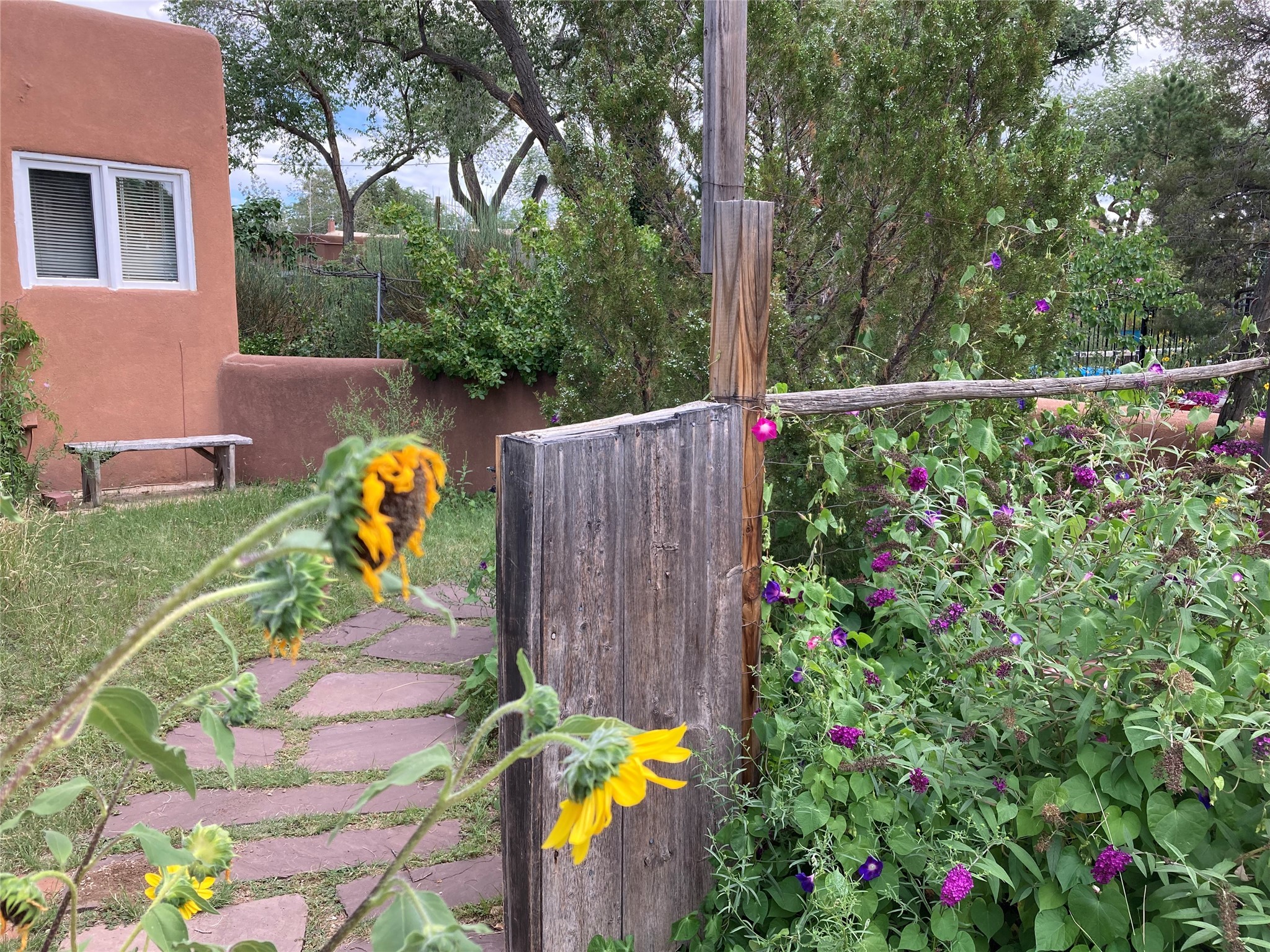 *** WEBSITE: oldcompoundsantafe.com ***What's your dream? A historic Santa Fe compound, nestled on about 2.3 semi-rural acres, with an adjoining 0.41 acre lot. Less than 3 miles from the Santa Fe Plaza, the 100+ year old adobe residence and five casitas surround a green central oasis and a small swimming pool. Imagine the possibilities: retreat, extended family, intentional community, workshops, therapy & health, retirement, or something not yet imagined. Reserved development rights on 2/3 acre and the vacant lot expand the possibilities. The current owners discovered the compound in 1969, bought it in 2006, and have been restoring, planting, and loving it ever since. They are ready to offer the compound to new owners, whatever their new dreams may be. * 6 units in 4 buildings, with 8 bedrooms, 8 baths, 9 fireplaces. Total heated space = 6215 sq. ft. (Note: Fires in fireplaces are photoshopped in. Buyer should verify fireplaces' functionality.) * Each unit has private outdoor garden space. * Extensive remodeling: kitchens and baths, oak and brick floors, new Pella windows, TPO roof, and more. * Landscaping with hundreds of native trees, bushes, vines, flowers, and grama grass; rock walls and fences. * 12' x 28' Barn with garage door.