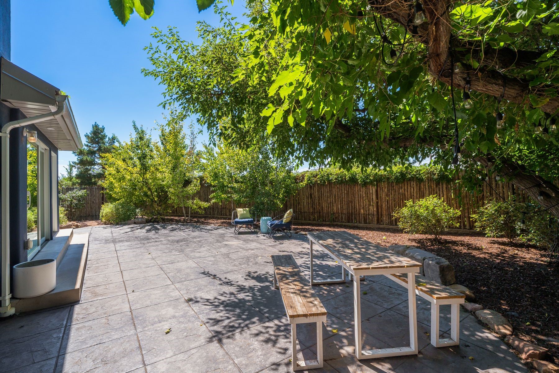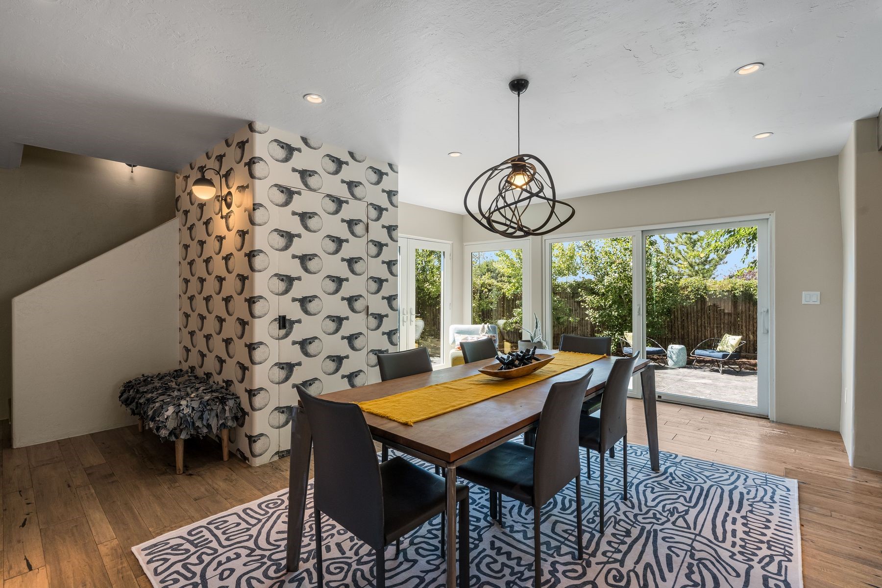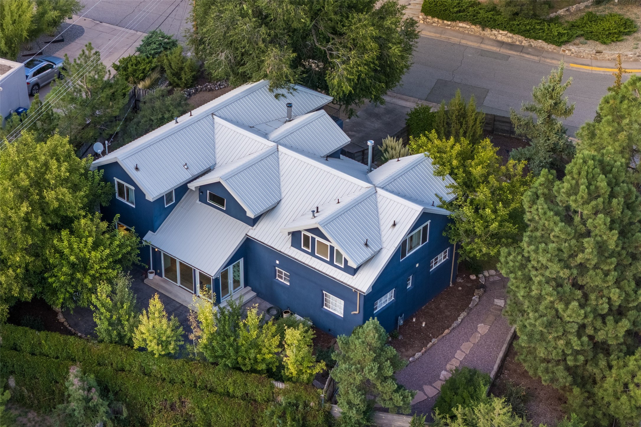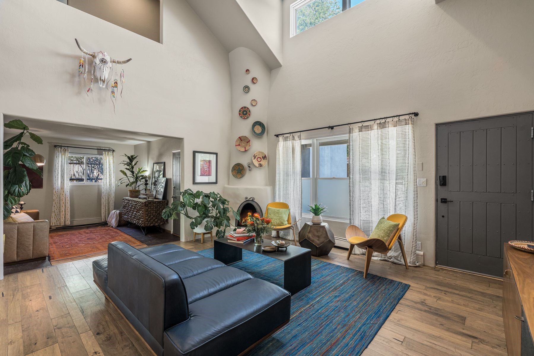 Impeccably remodeled, pitched roof, 6-Bedroom home in coveted Casa Solana!Nestled in lush privacy, this beautifully remodeled 6-bedroom, 4-bathroom residence in highly sought-after Casa Solana offers refined design. Solid wood floors run throughout, grounding the home in warmth and timeless style.At the heart of the home lies a chef's dream kitchen, featuring high-end appliances, bold custom cabinetry by Counter Intelligence, a spacious island, and the convenience of a full-sized refrigerator and full-sized freezer. This gourmet space flows seamlessly into an open-concept dining area and multiple sitting rooms, creating an ideal environment for entertaining and everyday living.Abundant natural light fills every corner of the thoughtfully designed layout, which offers both spacious gathering areas and quiet retreats. The architecturally landscaped outdoor living areas (fully gated back and front) -- including shaded portals and inviting courtyards (there is even a separately gated dog run that is landscaped) -- extending the living space beneath Santa Fe's expansive skies.The luxurious primary suite boasts a newly remodeled spa-like ensuite bathroom (2025), built-in bookshelves, and dual oversized walk-in closets. Five additional bedrooms, including a second ensuite on the main floor, offer remarkable flexibility -- perfect for guest rooms, home offices, art studios, or personal libraries.This is a rare opportunity to own a truly turn-key home in one of Santa Fe's most desirable neighborhoods.