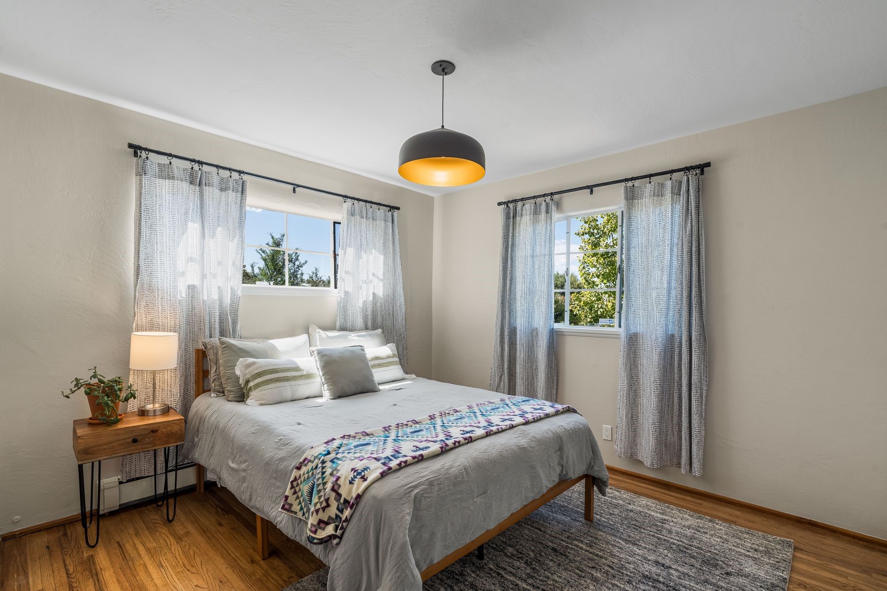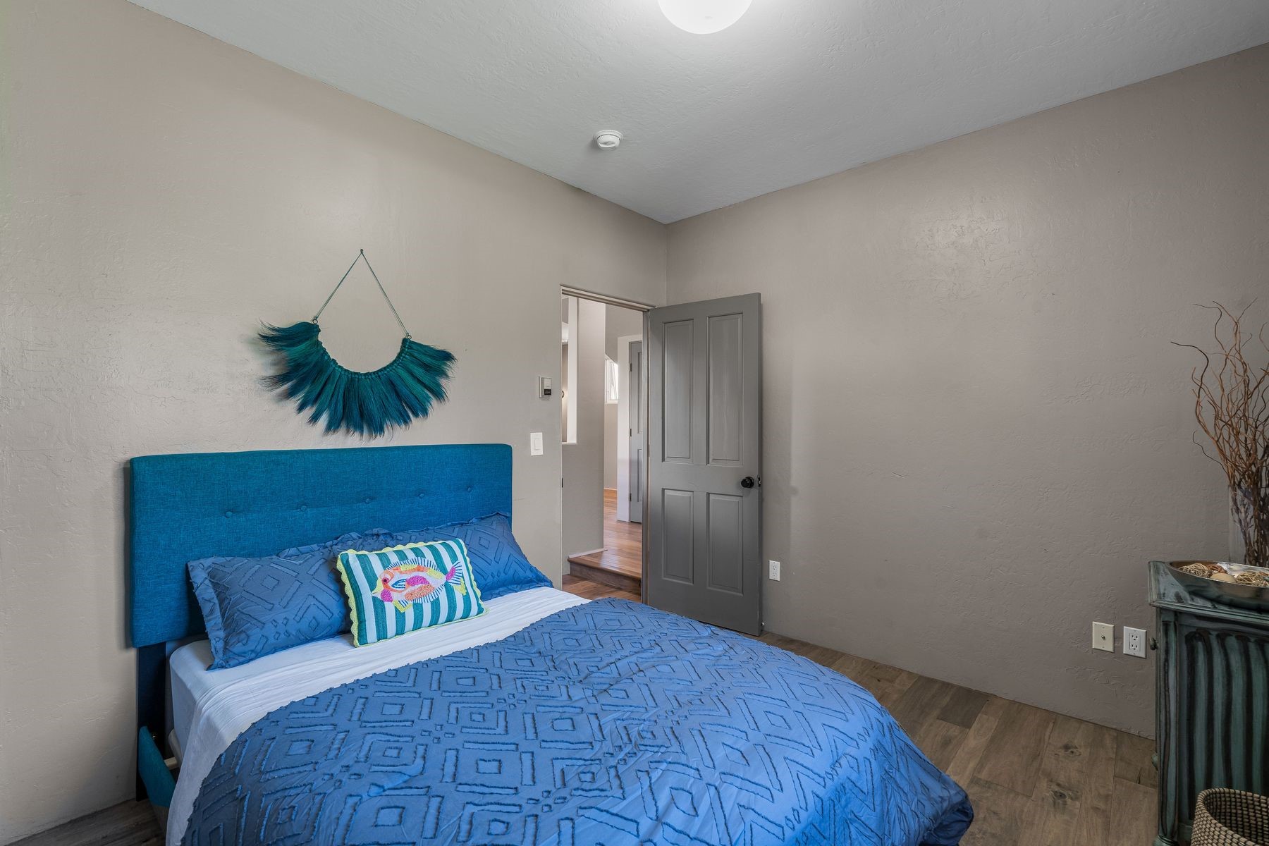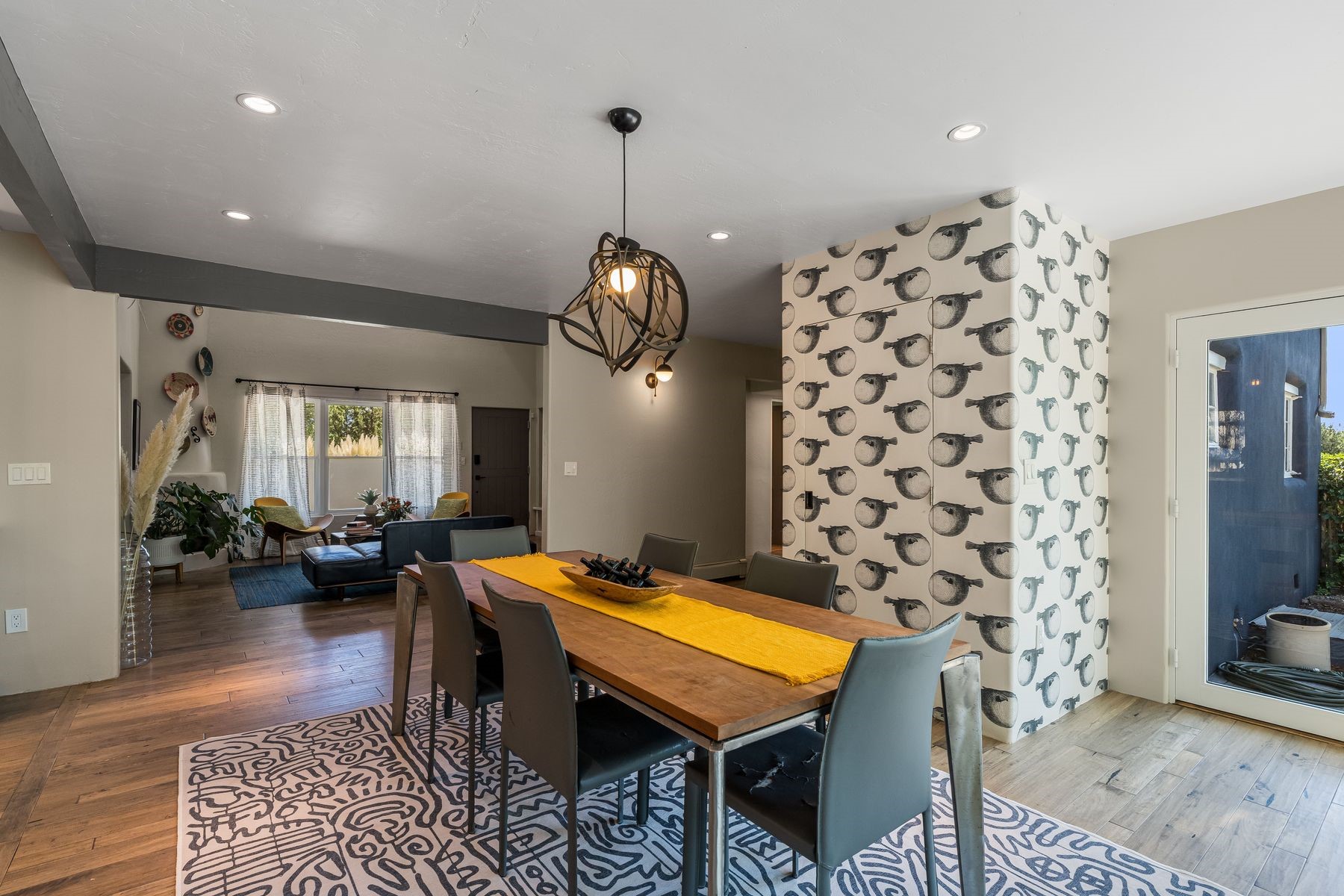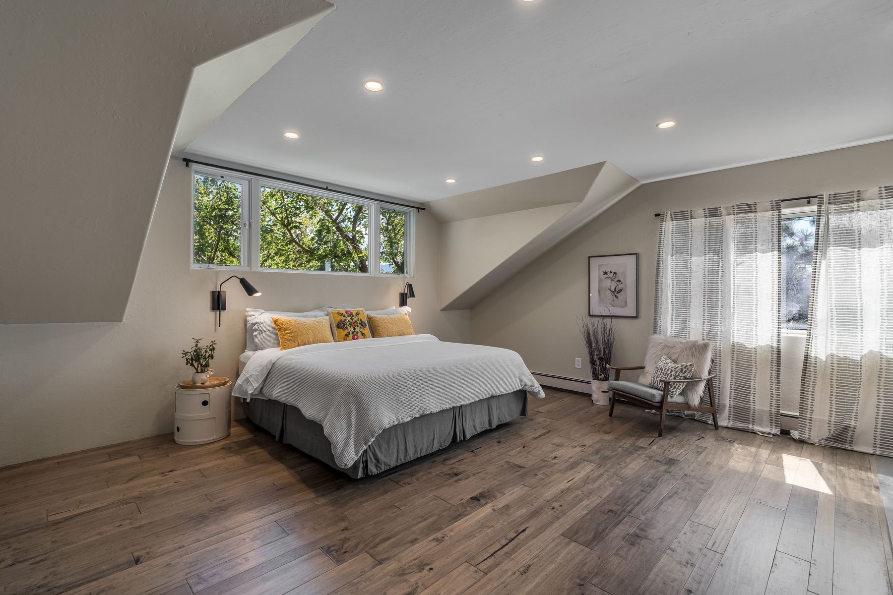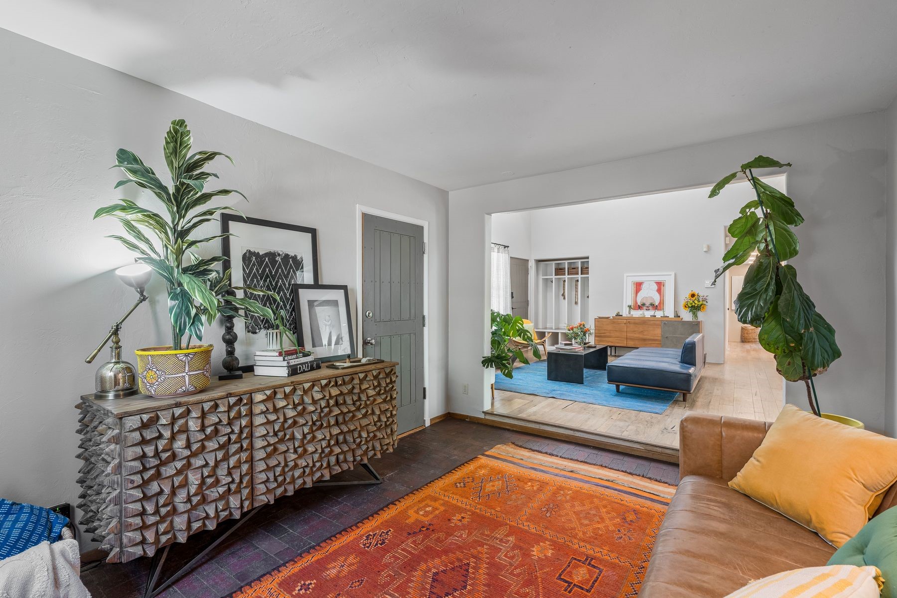 Impeccably remodeled, pitched roof, 6-Bedroom home in coveted Casa Solana!Nestled in lush privacy, this beautifully remodeled 6-bedroom, 4-bathroom residence in highly sought-after Casa Solana offers refined design. Solid wood floors run throughout, grounding the home in warmth and timeless style.At the heart of the home lies a chef's dream kitchen, featuring high-end appliances, bold custom cabinetry by Counter Intelligence, a spacious island, and the convenience of a full-sized refrigerator and full-sized freezer. This gourmet space flows seamlessly into an open-concept dining area and multiple sitting rooms, creating an ideal environment for entertaining and everyday living.Abundant natural light fills every corner of the thoughtfully designed layout, which offers both spacious gathering areas and quiet retreats. The architecturally landscaped outdoor living areas (fully gated back and front) -- including shaded portals and inviting courtyards (there is even a separately gated dog run that is landscaped) -- extending the living space beneath Santa Fe's expansive skies.The luxurious primary suite boasts a newly remodeled spa-like ensuite bathroom (2025), built-in bookshelves, and dual oversized walk-in closets. Five additional bedrooms, including a second ensuite on the main floor, offer remarkable flexibility -- perfect for guest rooms, home offices, art studios, or personal libraries.This is a rare opportunity to own a truly turn-key home in one of Santa Fe's most desirable neighborhoods.