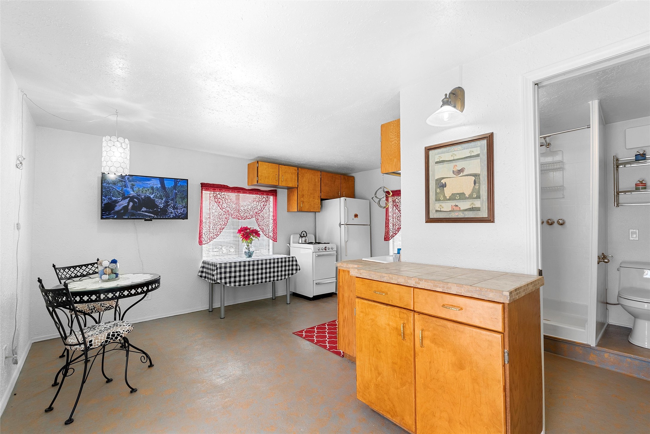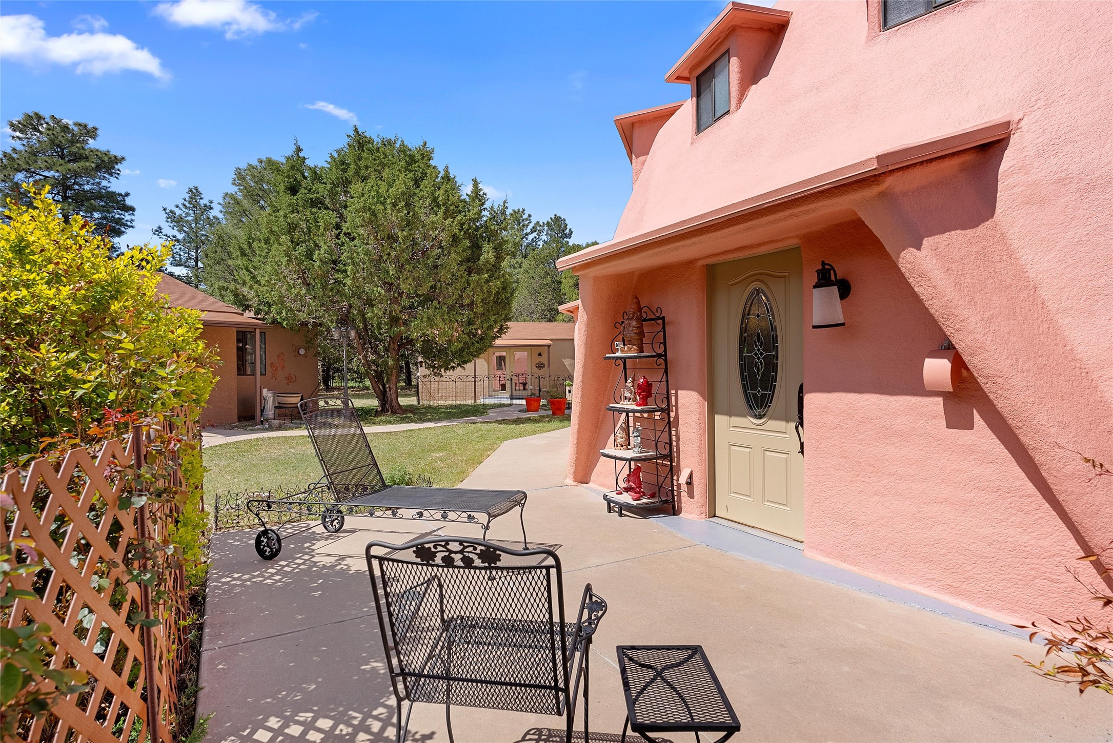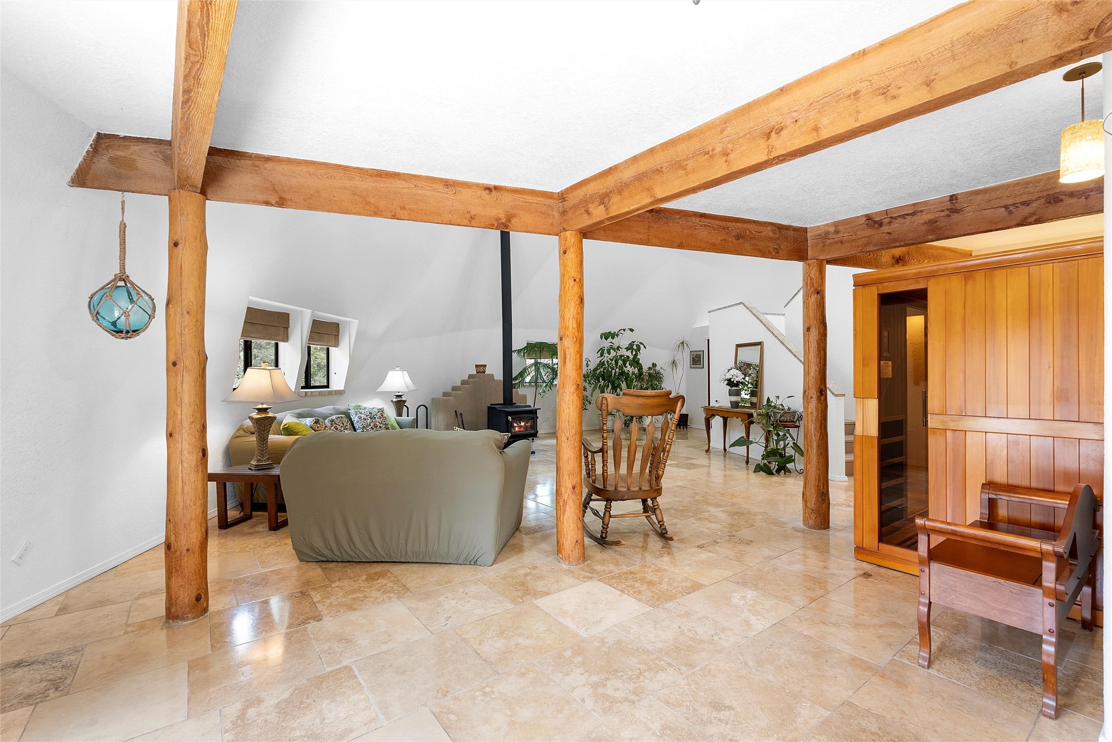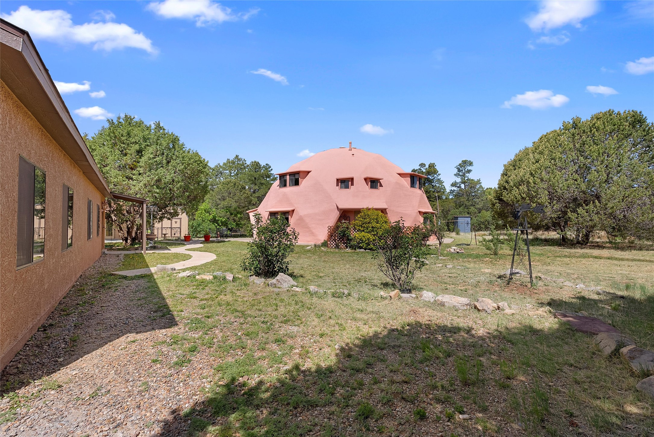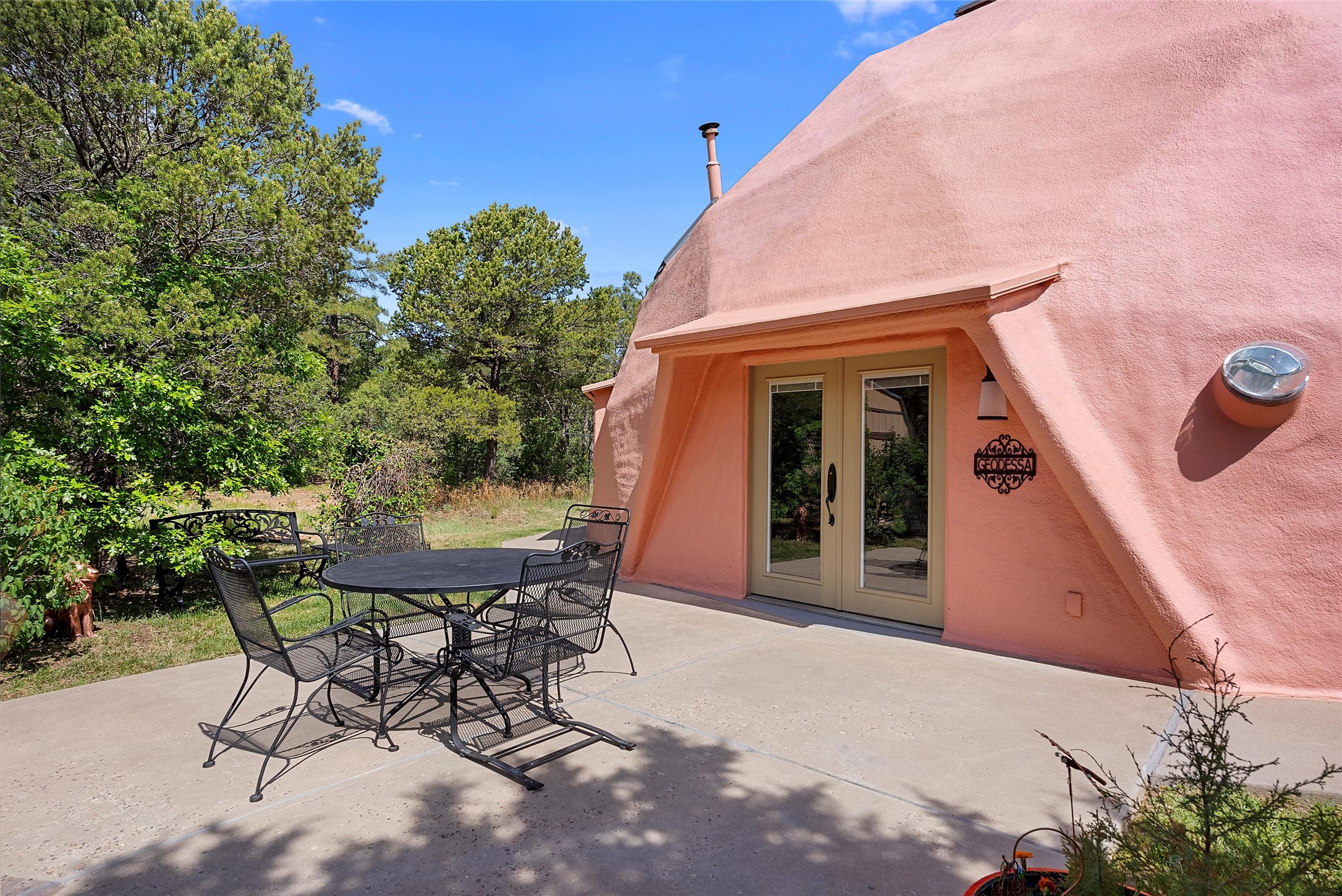 UNLIKE ANYTHING ELSE IN THE EAST MOUNTAINS, THIS EXPANSIVE TIJERAS HORSE PROPERTY IS A WORLD OF ITS OWN. Tucked into over four wooded and meadowed acres, it offers a rare blend of space, privacy, and versatility with three distinct residences. The 2-story dome house features exposed beams, tile floors, two fireplaces, and a charming country kitchen. Imagine sitting out on the open patio with 360 degrees of nature. The cozy casita is a perfect studio or guest house, while the spacious cottage--with its open layout, concrete floors, wood stove, and walk-in closet--adds even more flexibility for multi-generational living. A pole barn, detached garage, workshop, plenty of room of animals and toys. Furniture and tools convey--bring your vision and make this one your perfect mountain retreat!