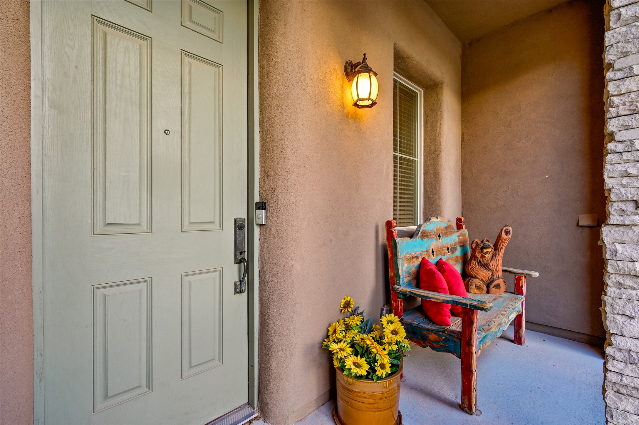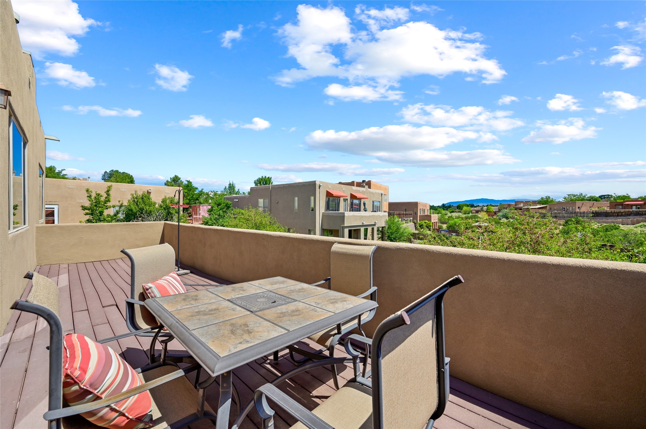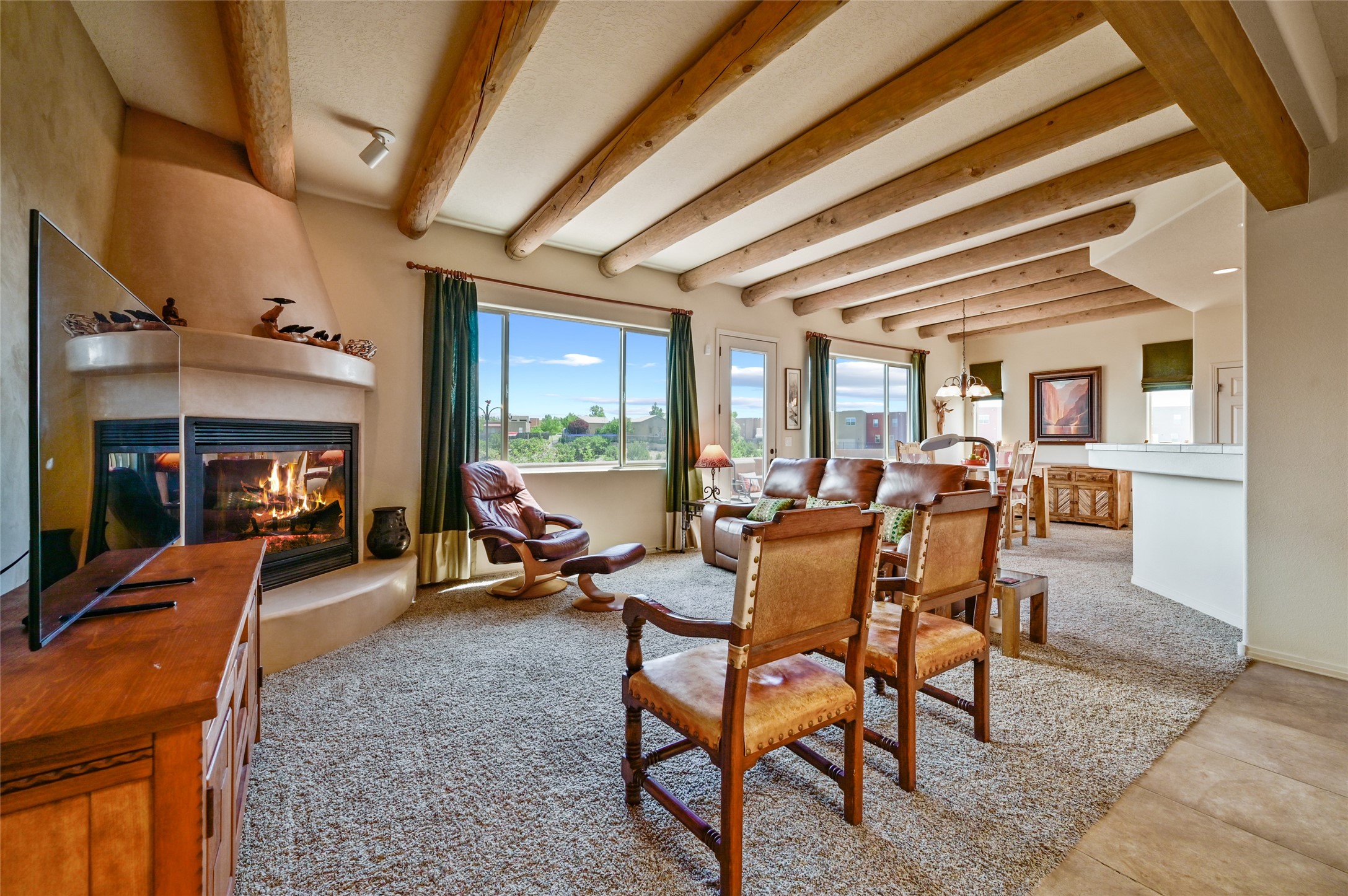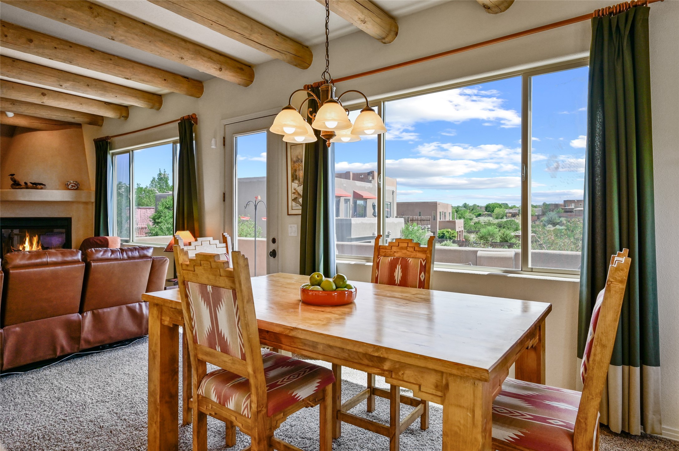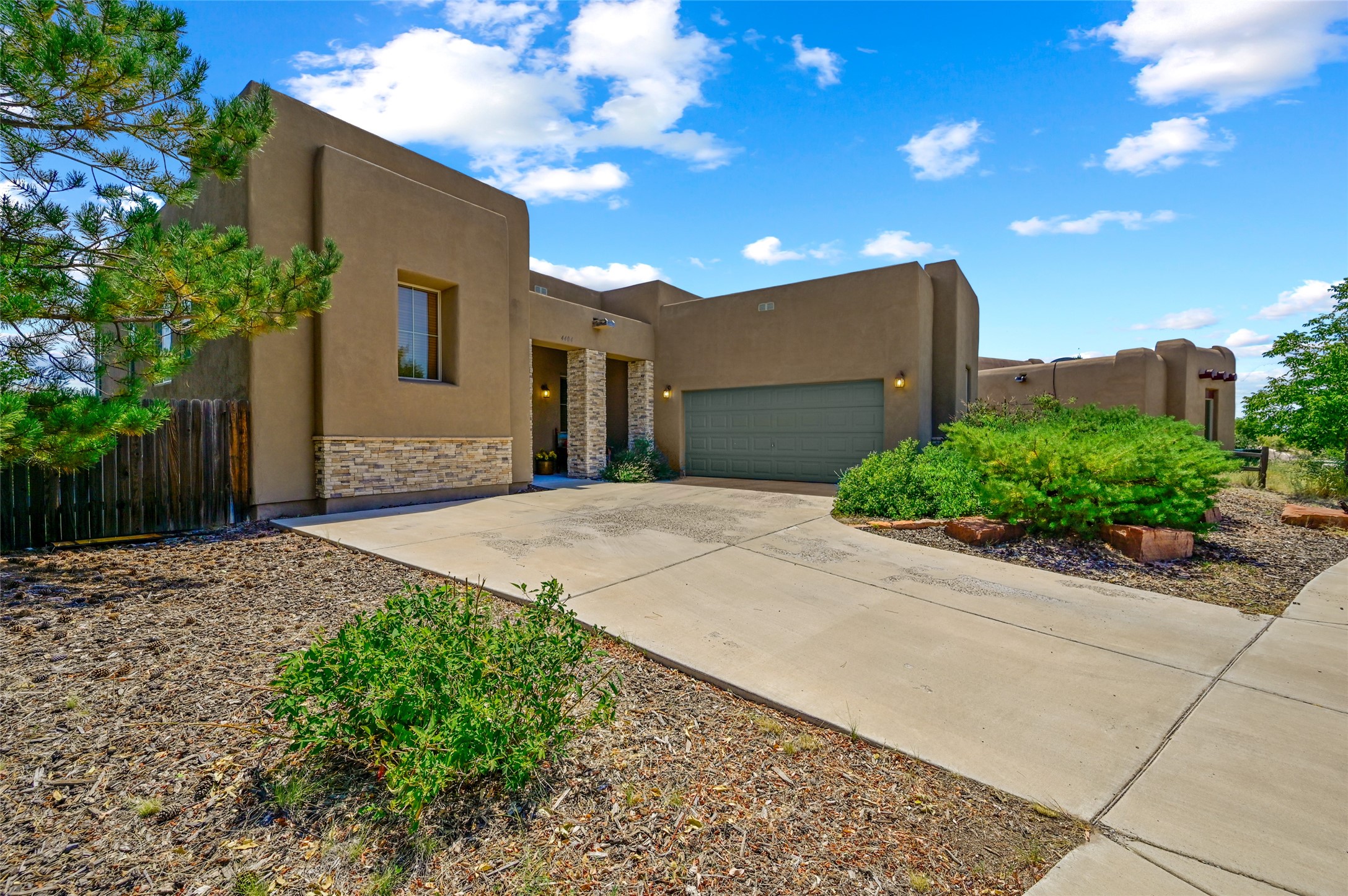 Enjoy mountain views from this light & bright spacious two-story home in Santa Fe's Tierra Contenta neighborhood. Built in 2007 by BT Homes, the residence features a stacked-stone faade, central heating and air conditioning, and a thoughtful layout designed for comfort and convenience. The main level includes the primary suite with ensuite bath, a powder bath, a bright living room with gas fireplace and access to a deck with mountain views and an abundance of greenspace. In addition, an open kitchen with eating area and dining area. The lower level offers two additional bedrooms, each with their own ensuite bath, along with living space, large fenced yard and covered portal providing privacy for guests or family. A two-car garage completes this special home. Conveniently located with easy access to Highway 599 and downtown or the Santa Fe Airport, this property is ideal for commuters and travelers alike. Furniture package available upon request.