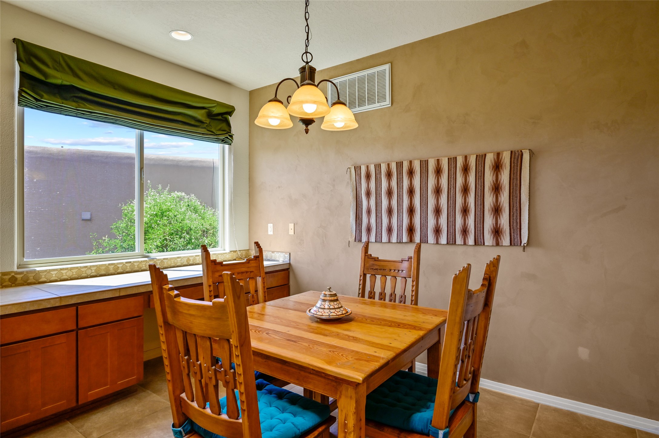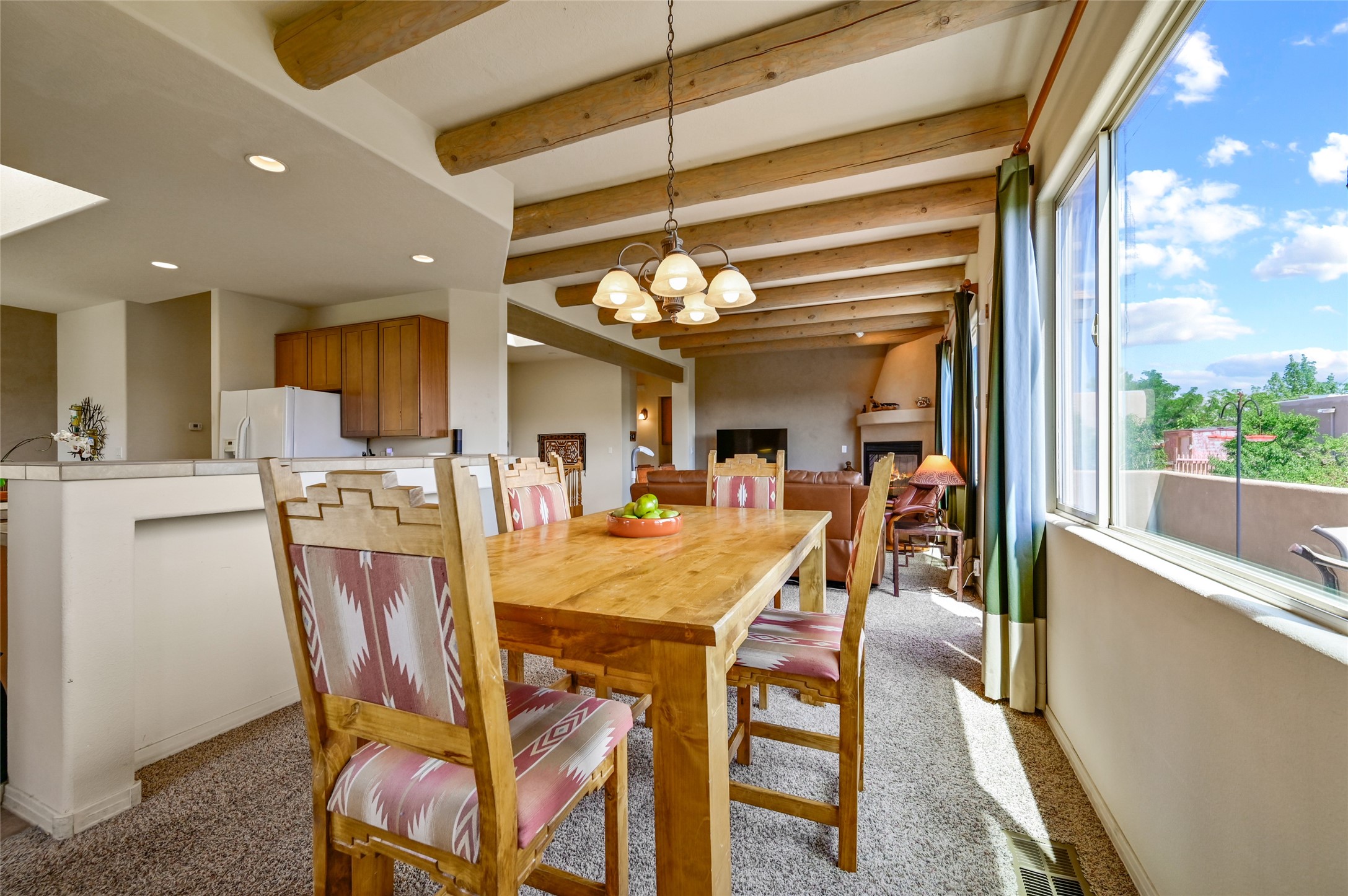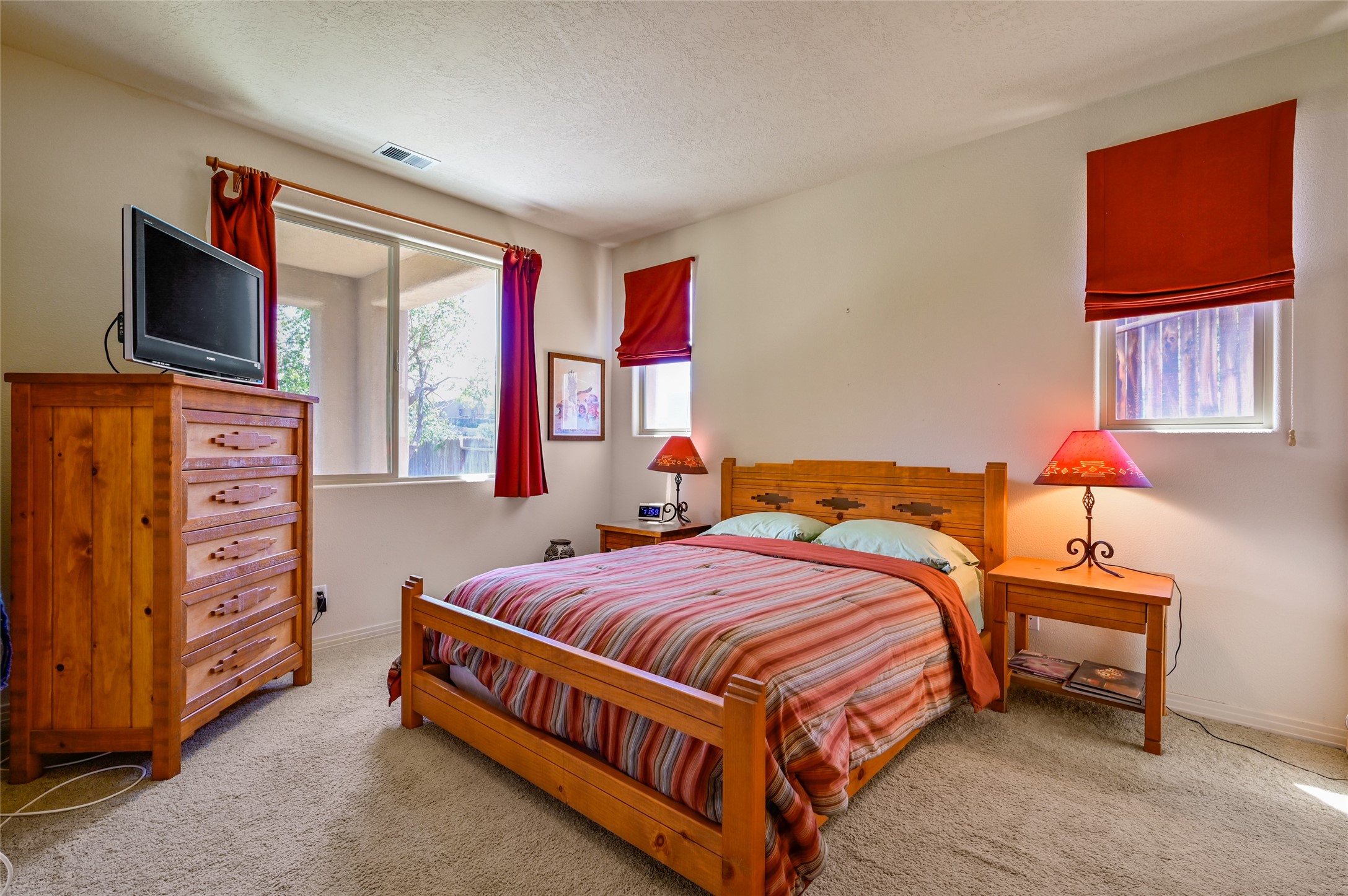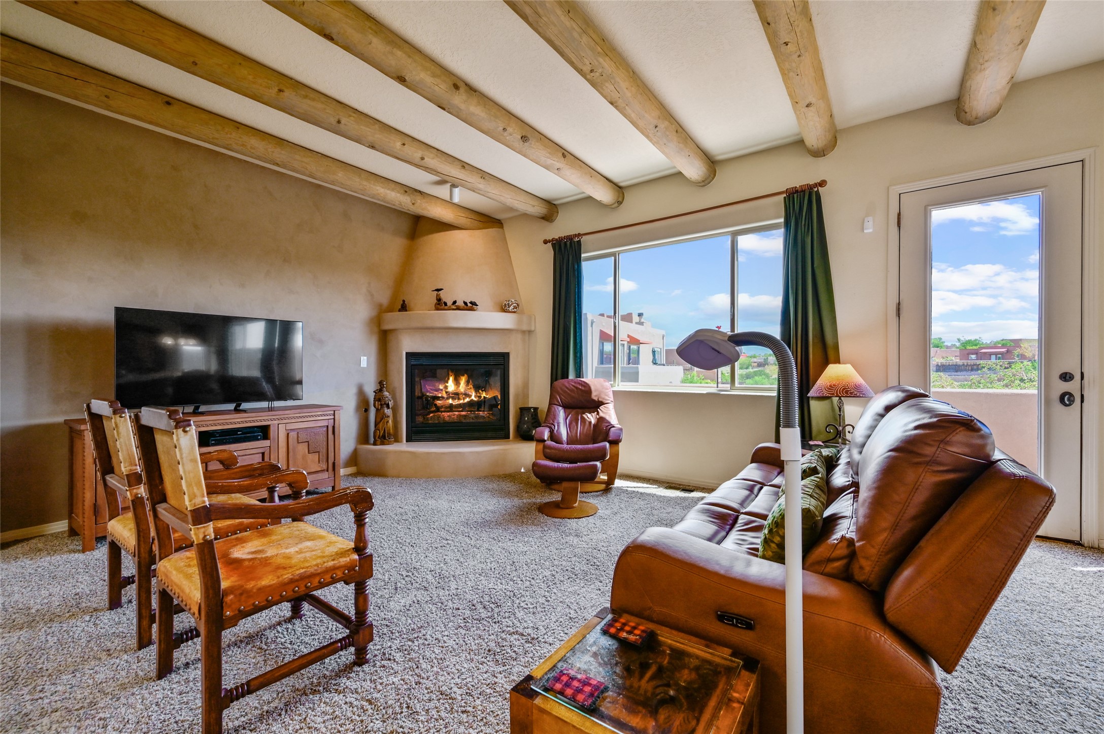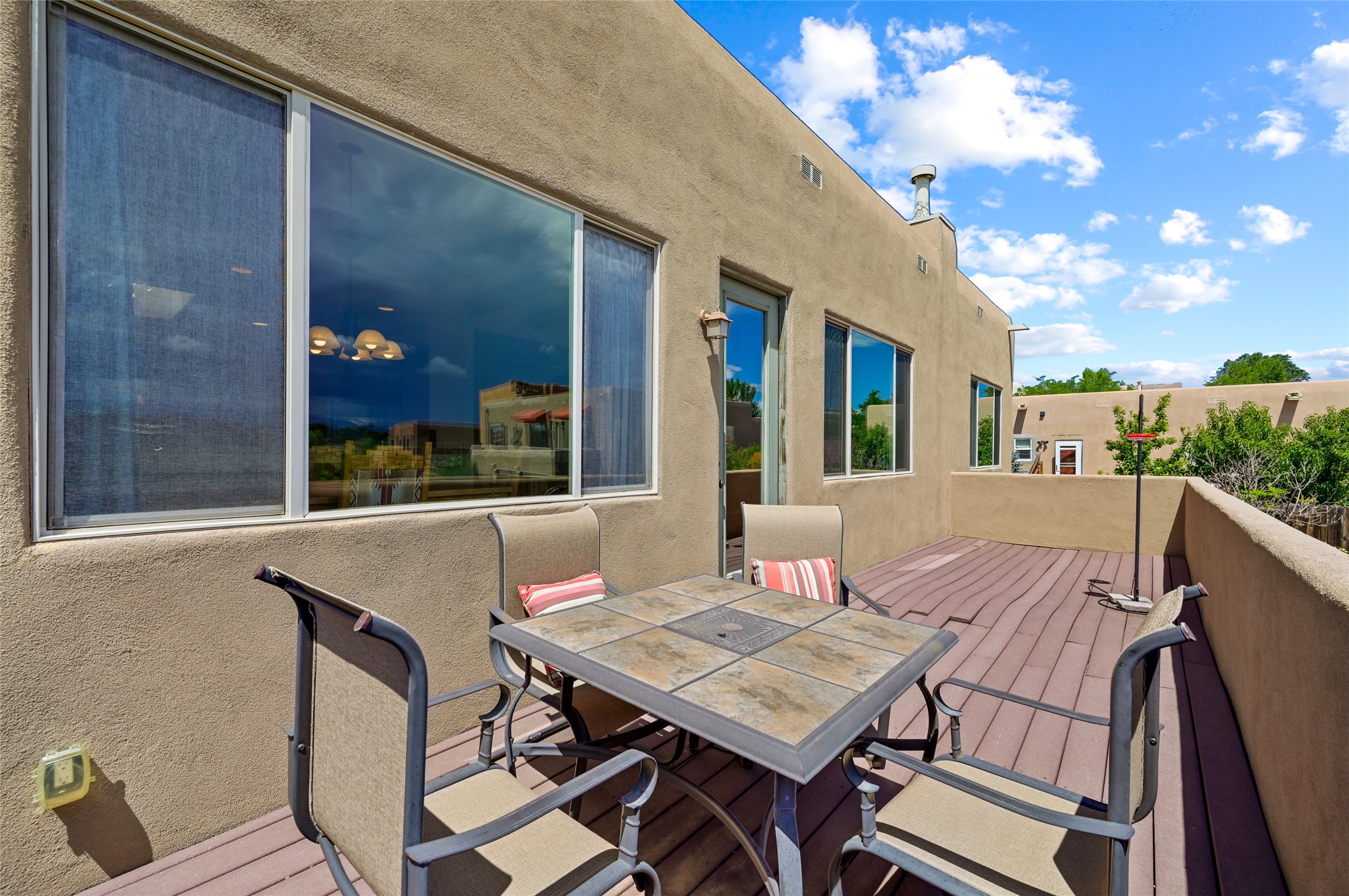 Enjoy mountain views from this light & bright spacious two-story home in Santa Fe's Tierra Contenta neighborhood. Built in 2007 by BT Homes, the residence features a stacked-stone faade, central heating and air conditioning, and a thoughtful layout designed for comfort and convenience. The main level includes the primary suite with ensuite bath, a powder bath, a bright living room with gas fireplace and access to a deck with mountain views and an abundance of greenspace. In addition, an open kitchen with eating area and dining area. The lower level offers two additional bedrooms, each with their own ensuite bath, along with living space, large fenced yard and covered portal providing privacy for guests or family. A two-car garage completes this special home. Conveniently located with easy access to Highway 599 and downtown or the Santa Fe Airport, this property is ideal for commuters and travelers alike. Furniture package available upon request.