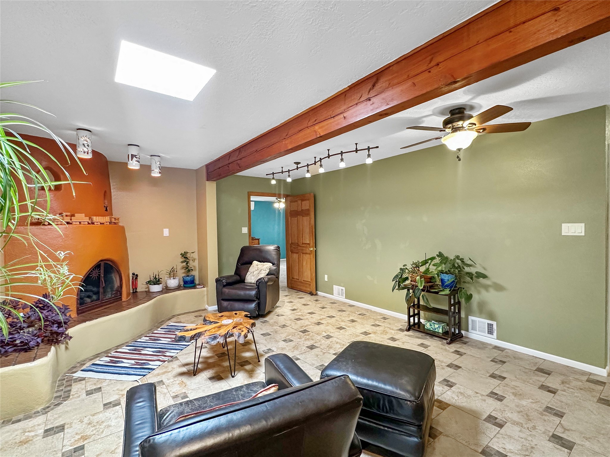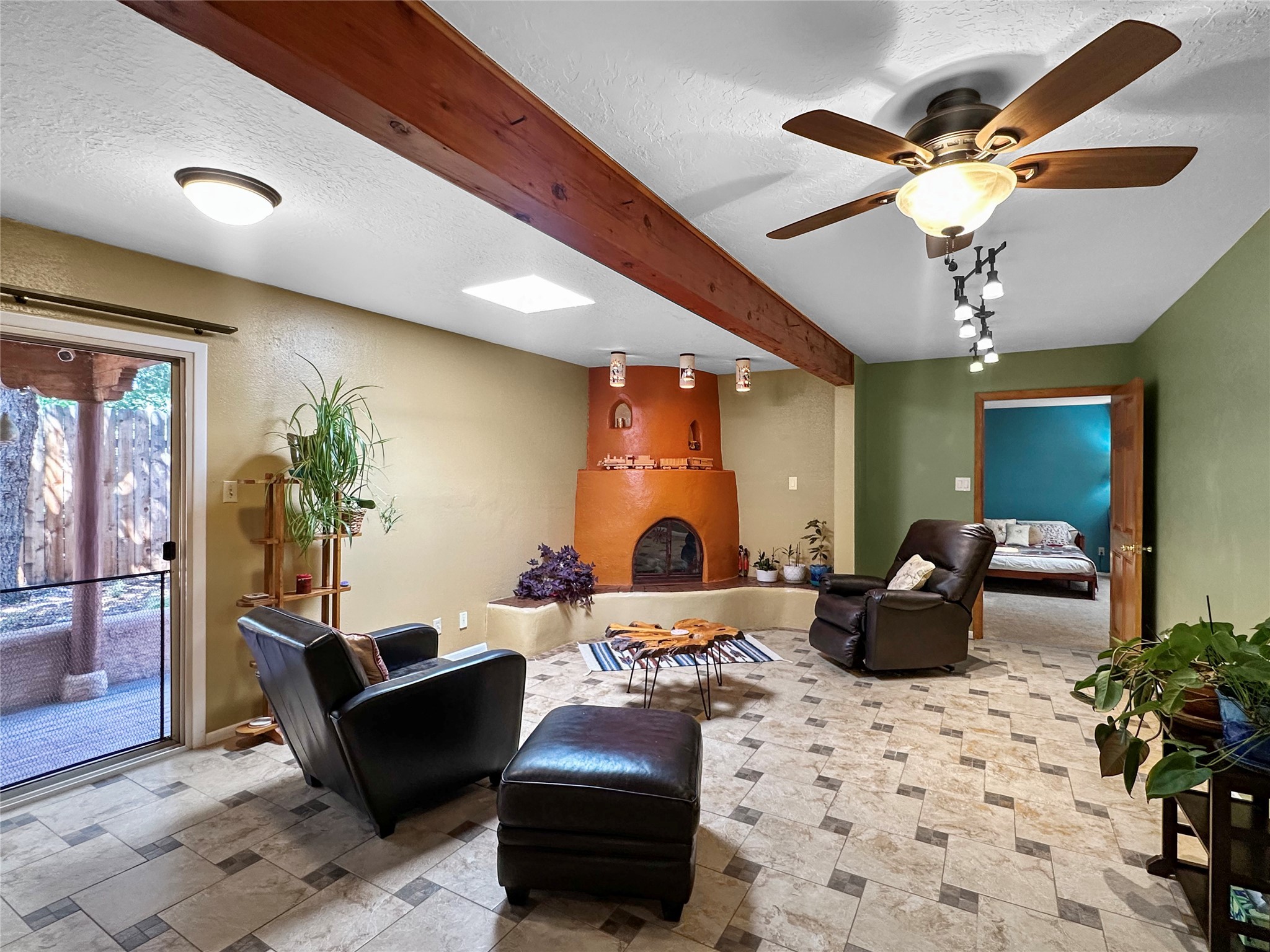 Welcome to a beautifully updated Stamm home ideally located close to all the amenities Santa Fe has to offer, like schools, hospital, shopping, Parks and less than 10 minutes drive to famous Santa Fe plaza. This charming residence features 4 spacious bedrooms and 3 modern bathrooms, 2 separate Livingroom perfect for family living and entertaining. The home boasts freshly landscaped surroundings, an updated kitchen and bathrooms with contemporary finishes, energy-efficient solar panels, and Kiva gas fireplace. Additional upgrades include a new roof (2022) and a water cistern.The 4th bedroom is a addition that is updated with ADA doors and bathroom, mini spelt and the privet entry door in this home offers versatile use as a guest room, home office, hobby space, or can be a perfect mother in law suit providing flexible living options to suit your needs, ensuring comfort and sustainability.