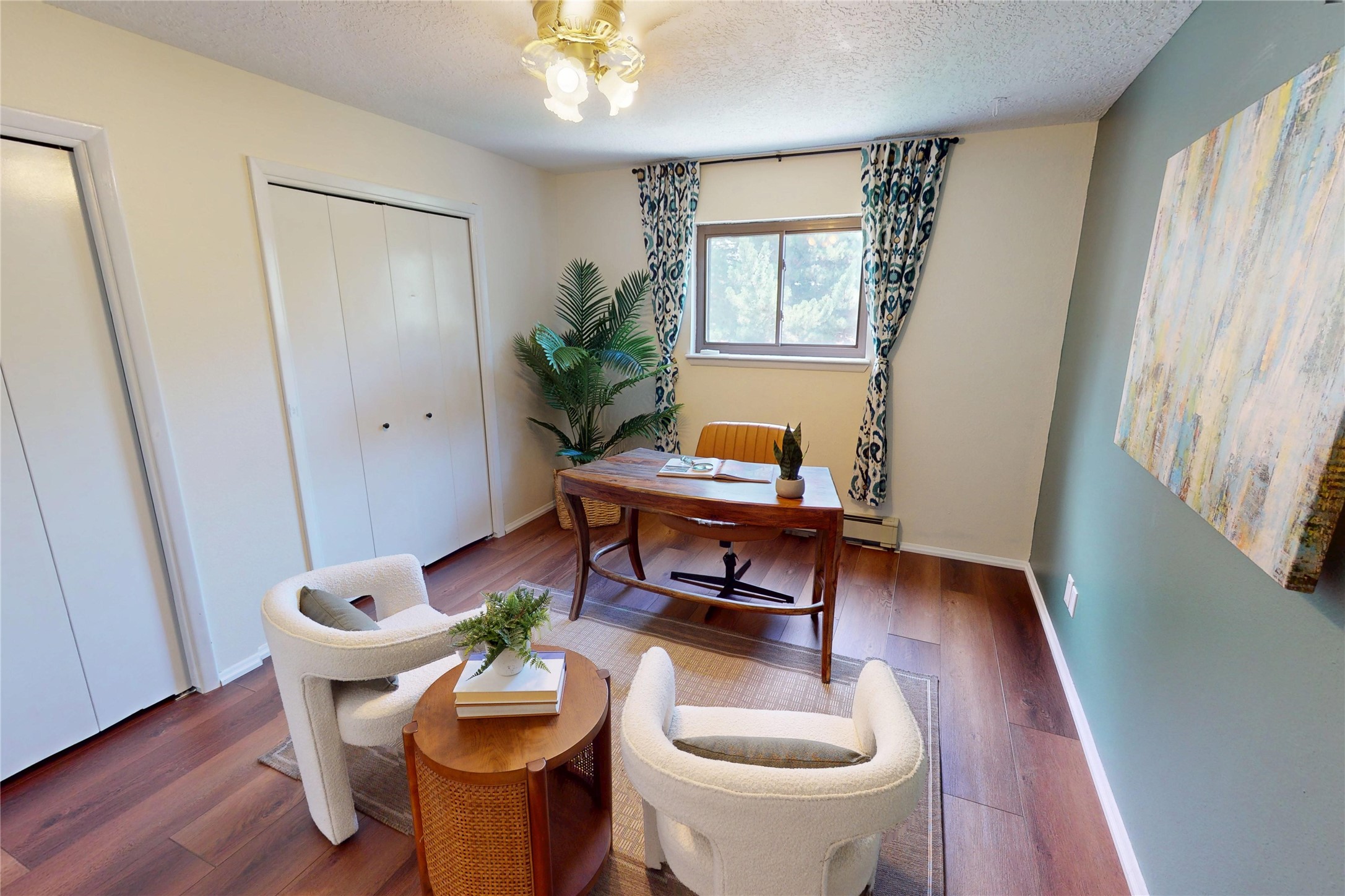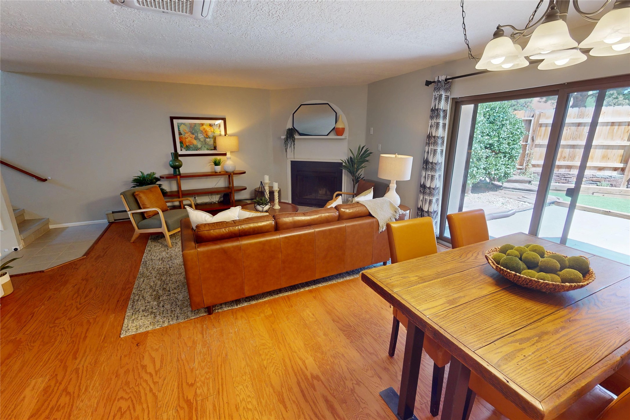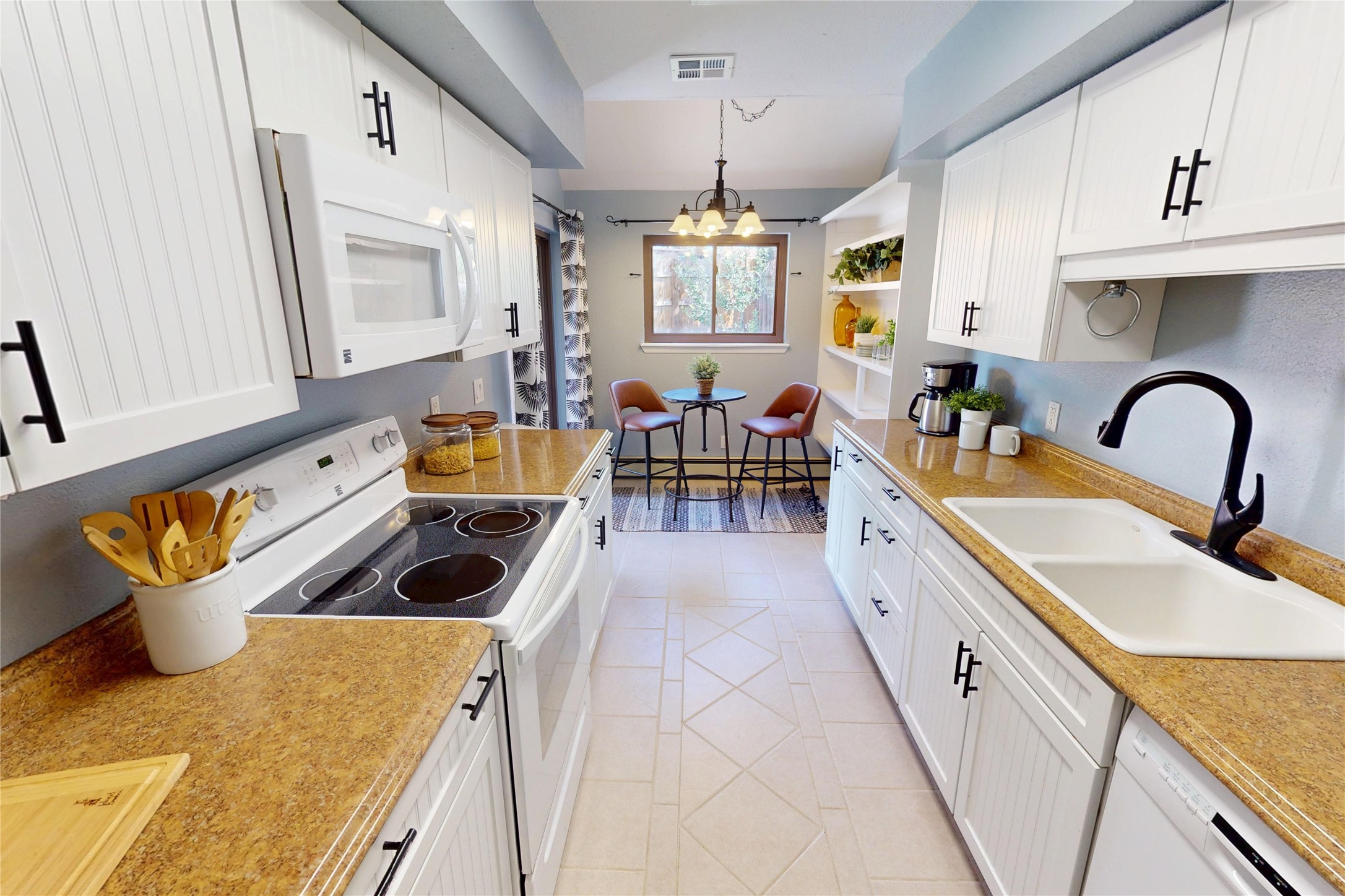 Step inside this 3-bedroom, 3-bathroom townhome in a fantastic downtown location, and discover inviting living spaces designed for both relaxation and connection. The main living room welcomes you with rich wood flooring, a cozy fireplace, and built-in shelving for books and dcor. Custom modern railings add a touch of style, while mini-split cooling units throughout keep the home comfortable year-round. A convenient half bathroom on the main level makes hosting guests effortless.The kitchen blends timeless design with modern updates, featuring crisp white cabinetry, sleek appliances, and plenty of storage. A vaulted ceiling brightens the eat-in dining area, where built-in shelving adds charm and character. From here, step out into the low-maintenance backyard with artificial grass and raised garden beds--perfect for weekend barbecues, tending to fresh herbs and vegetables, or simply relaxing outdoors.Upstairs, the spacious primary suite is a private retreat with a beautifully updated en suite bathroom offering double sinks, plus a large walk-in closet with custom built-in shelving. Two additional bedrooms share a full bathroom--one with built-in shelving that makes it perfect for a guest room, home office, or hobby space. A separate laundry room near the primary suite adds everyday convenience.Recent updates including newer stucco and a newer roof add peace of mind, while the 2-car garage provides secure parking and extra storage. The unbeatable downtown location places you just steps from Ashley Pond, the library, parks, trails, and community amenities.Blending stylish details, functional spaces, and convenience, this townhome is ready to welcome a wide variety of buyers seeking the best of Los Alamos living.
