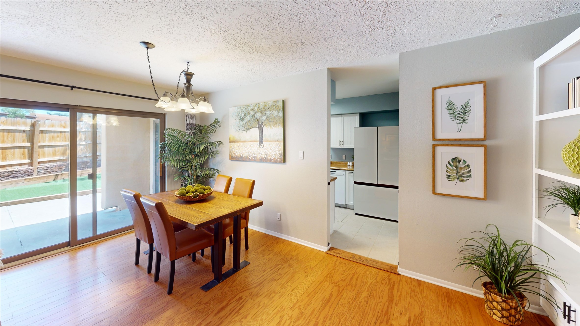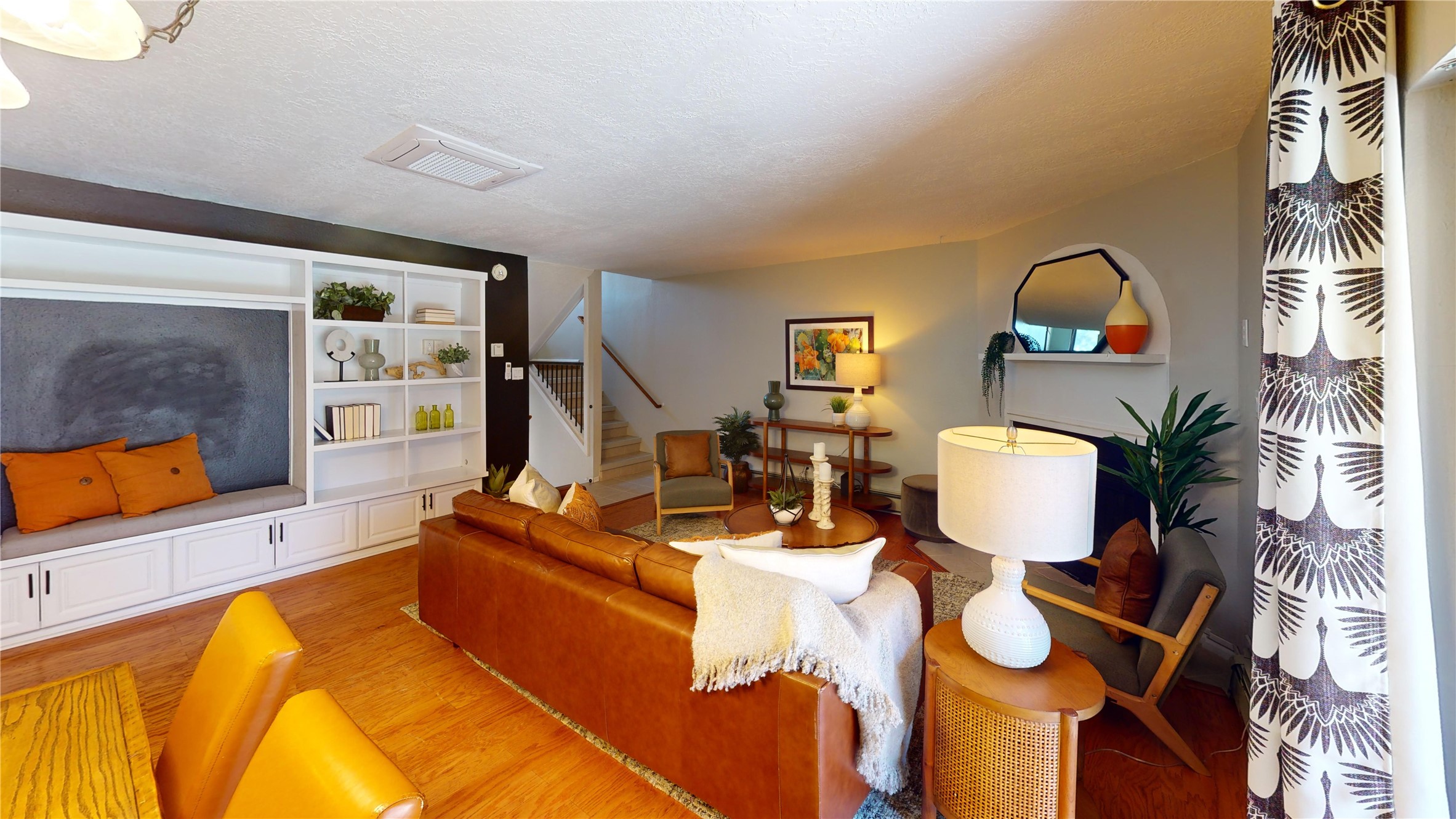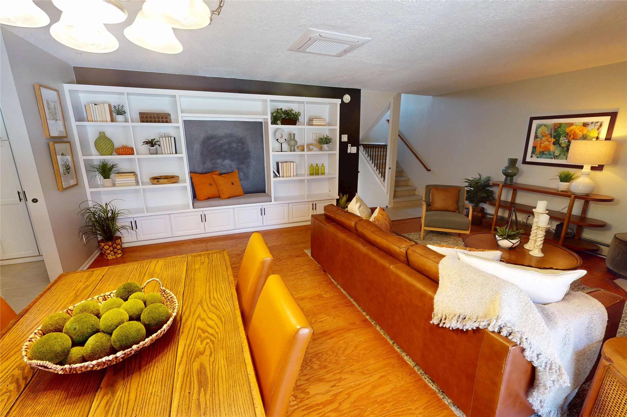 Step inside this 3-bedroom, 3-bathroom townhome in a fantastic downtown location, and discover inviting living spaces designed for both relaxation and connection. The main living room welcomes you with rich wood flooring, a cozy fireplace, and built-in shelving for books and dcor. Custom modern railings add a touch of style, while mini-split cooling units throughout keep the home comfortable year-round. A convenient half bathroom on the main level makes hosting guests effortless.The kitchen blends timeless design with modern updates, featuring crisp white cabinetry, sleek appliances, and plenty of storage. A vaulted ceiling brightens the eat-in dining area, where built-in shelving adds charm and character. From here, step out into the low-maintenance backyard with artificial grass and raised garden beds--perfect for weekend barbecues, tending to fresh herbs and vegetables, or simply relaxing outdoors.Upstairs, the spacious primary suite is a private retreat with a beautifully updated en suite bathroom offering double sinks, plus a large walk-in closet with custom built-in shelving. Two additional bedrooms share a full bathroom--one with built-in shelving that makes it perfect for a guest room, home office, or hobby space. A separate laundry room near the primary suite adds everyday convenience.Recent updates including newer stucco and a newer roof add peace of mind, while the 2-car garage provides secure parking and extra storage. The unbeatable downtown location places you just steps from Ashley Pond, the library, parks, trails, and community amenities.Blending stylish details, functional spaces, and convenience, this townhome is ready to welcome a wide variety of buyers seeking the best of Los Alamos living.