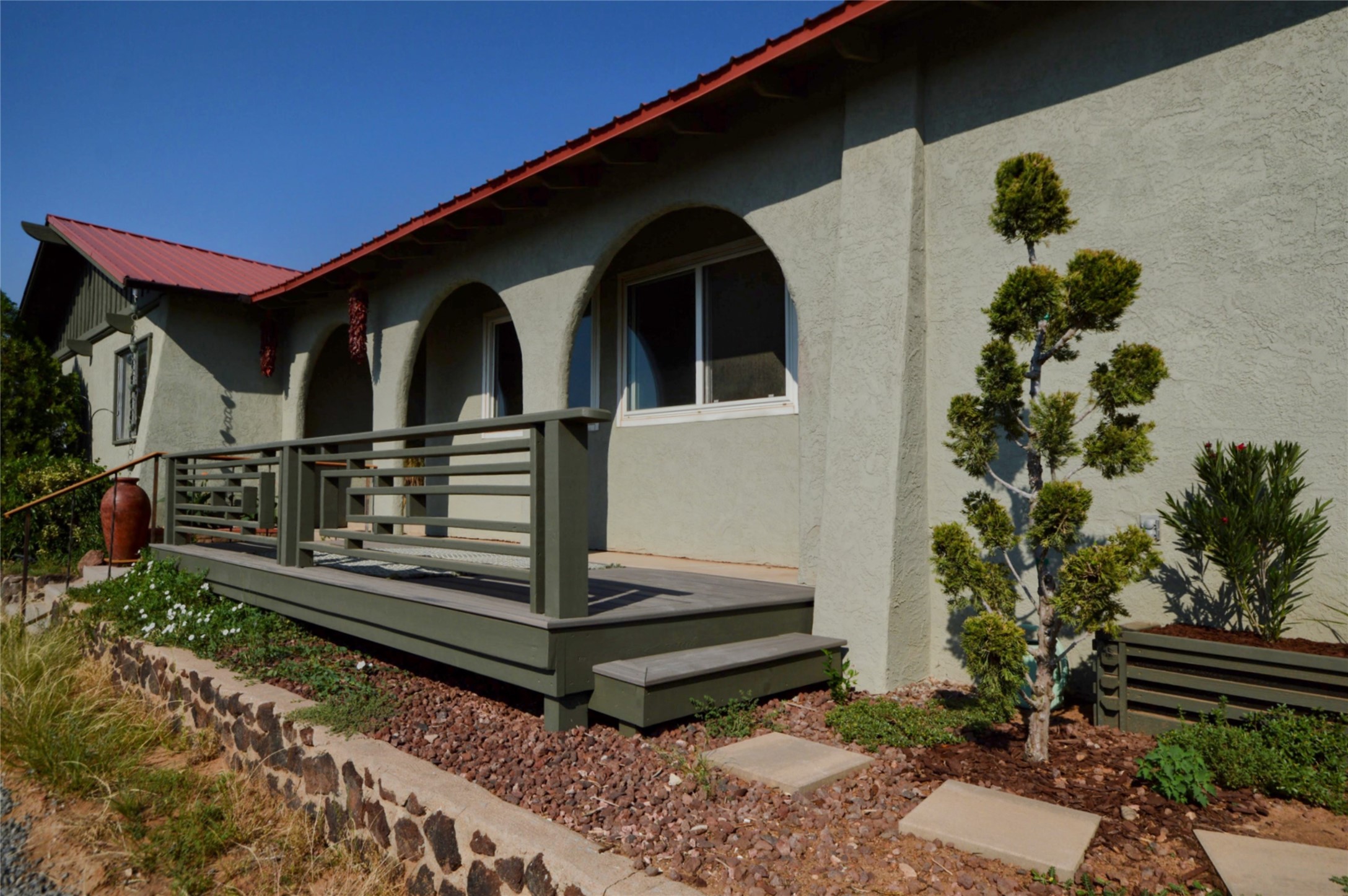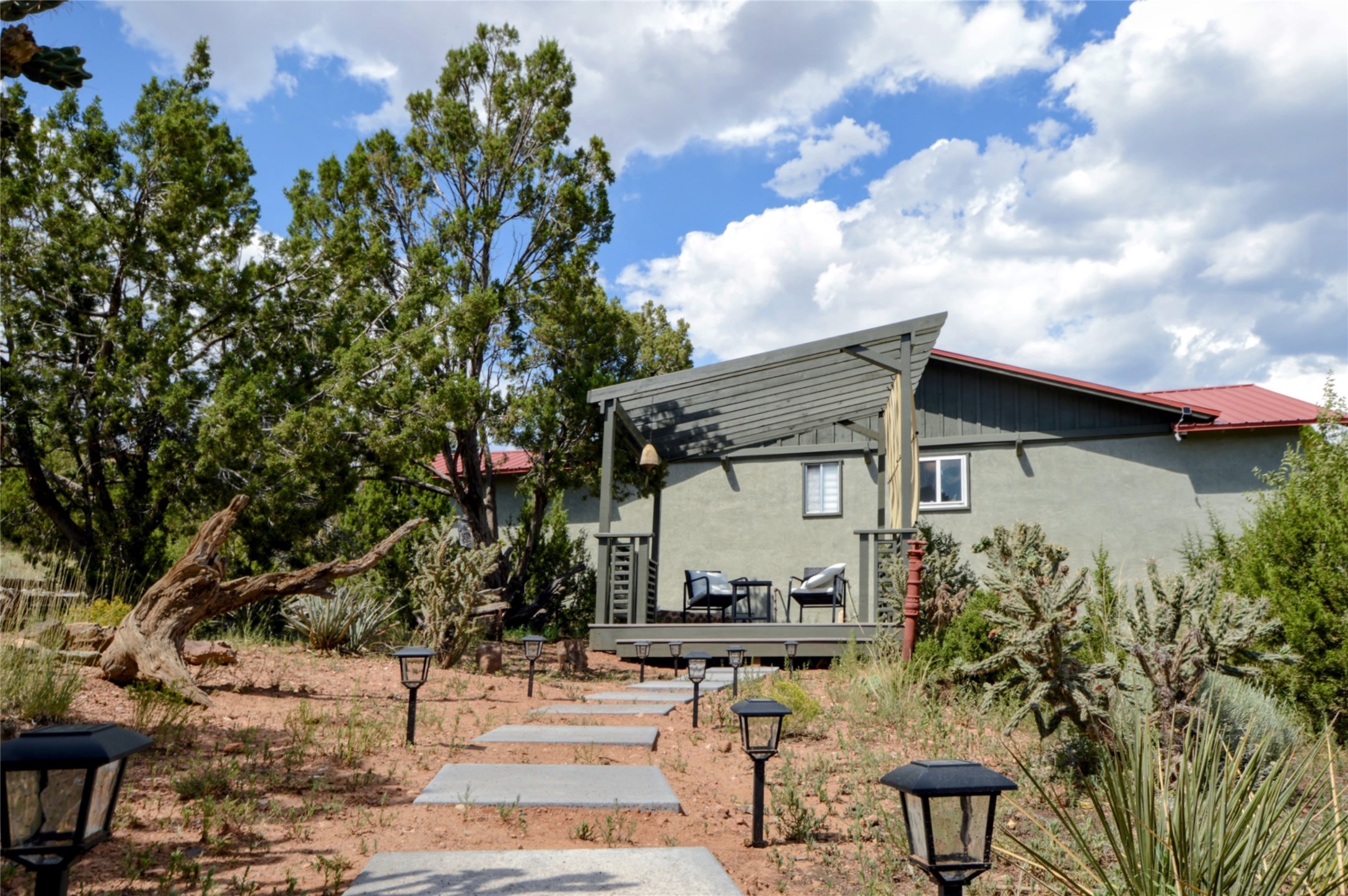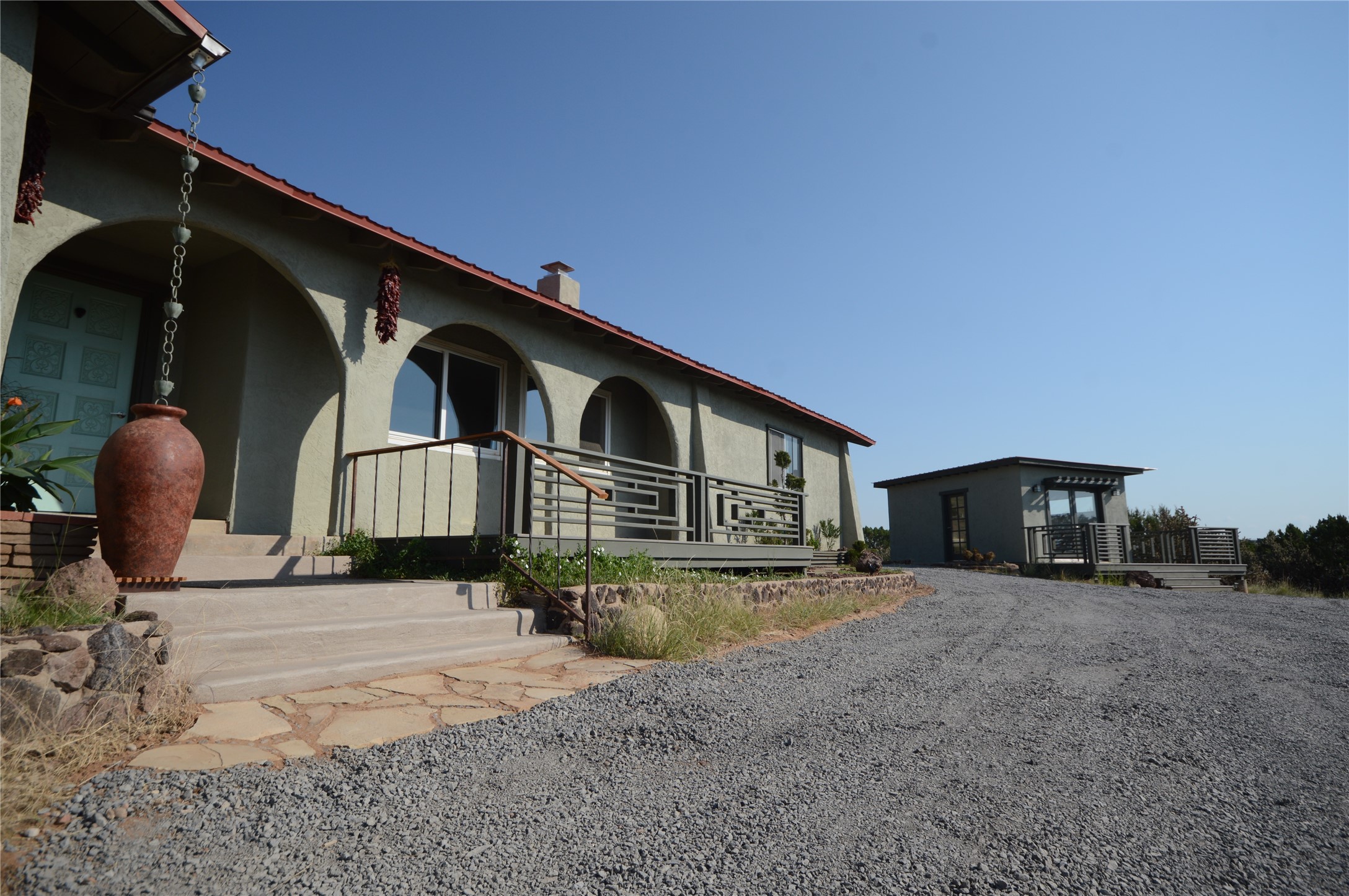 Modern southwest bungalow style ranch home on 2 acres with panoramic views from the Sangre De Christos clear down to the Sandias! Situated on a beautiful hillside with mature vegetation, this turn-key home has been extensively remodeled in 2025 and has spared no expense. Currently priced below the recently appraised value, this beautiful spacious home is ready for its new owners. The detached art studio/office/reading room with a newly installed mini-split and wrap around deck provides the perfect space to retreat without having to leave your property. Amenities include 2 and a half bathrooms, private well, on-demand hot water, all new appliances, maintenance-free Trex decking, 2 portals, attached 2 car garage, huge walk-in closet and office off the primary suite, oversized guest bedrooms, countless custom details, and a brand new 1500 gallon septic system which can allow for an additional dwelling on the property. The south-west portion of the property can accommodate your RV with epic views, or even provide a convenient place to build your mother-in-law suite. Enjoy all the peace and tranquility La Cienega has to offer while being a quick drive from all the charm and amenities of Santa Fe. All 3 bathrooms and the kitchen have been completely upgraded and remodeled. Minutes from the Ojo Spa and Las Golondrinas, the home would make a perfect vacation rental as well. This beautifully landscaped property provides plenty of outdoor space for entertaining and relaxation. Owner is licensed New Mexico real estate agent. All furniture is available with sale.