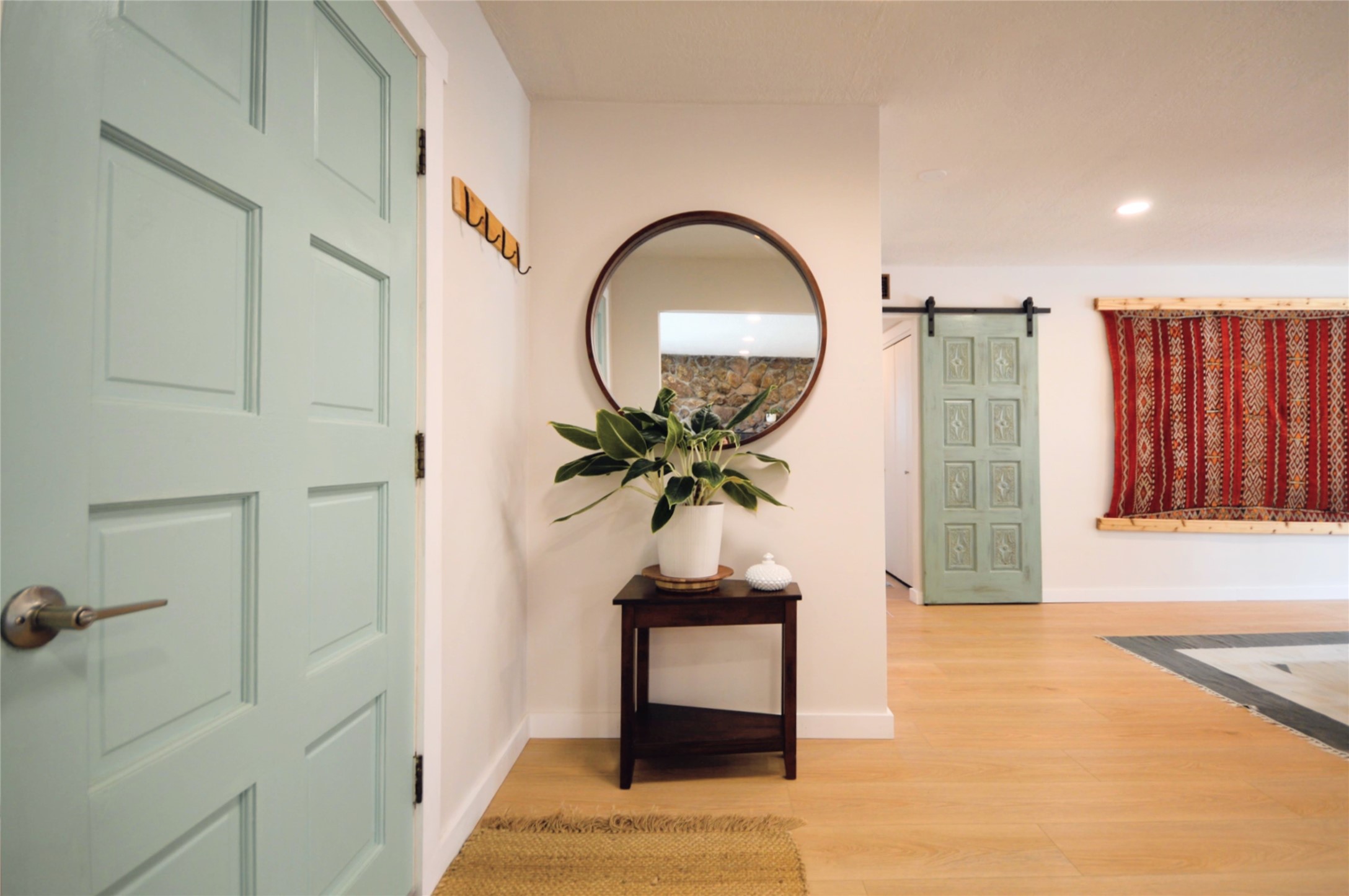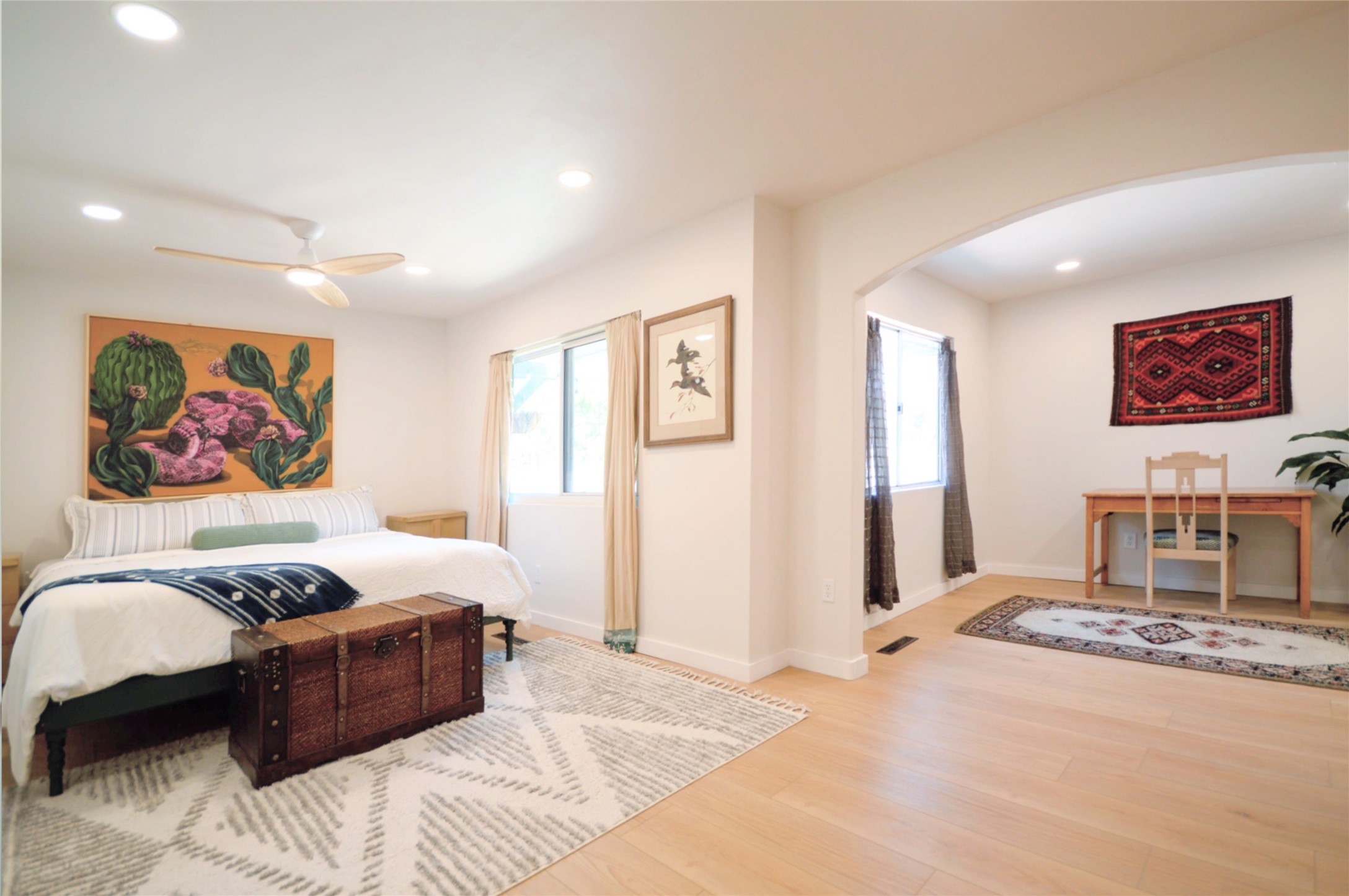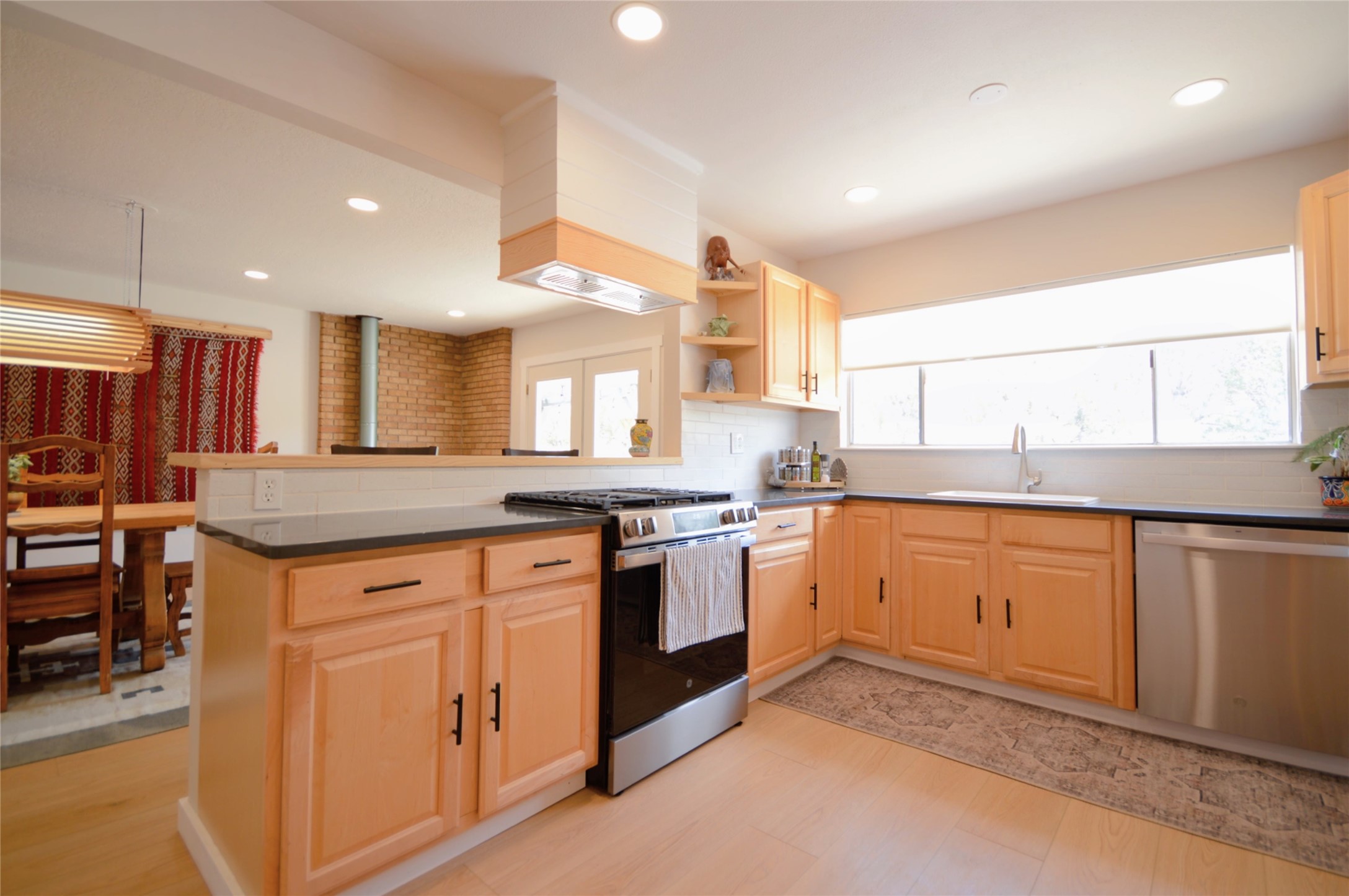 Modern southwest bungalow style ranch home on 2 acres with panoramic views from the Sangre De Christos clear down to the Sandias! Situated on a beautiful hillside with mature vegetation, this turn-key home has been extensively remodeled in 2025 and has spared no expense. Currently priced below the recently appraised value, this beautiful spacious home is ready for its new owners. The detached art studio/office/reading room with a newly installed mini-split and wrap around deck provides the perfect space to retreat without having to leave your property. Amenities include 2 and a half bathrooms, private well, on-demand hot water, all new appliances, maintenance-free Trex decking, 2 portals, attached 2 car garage, huge walk-in closet and office off the primary suite, oversized guest bedrooms, countless custom details, and a brand new 1500 gallon septic system which can allow for an additional dwelling on the property. The south-west portion of the property can accommodate your RV with epic views, or even provide a convenient place to build your mother-in-law suite. Enjoy all the peace and tranquility La Cienega has to offer while being a quick drive from all the charm and amenities of Santa Fe. All 3 bathrooms and the kitchen have been completely upgraded and remodeled. Minutes from the Ojo Spa and Las Golondrinas, the home would make a perfect vacation rental as well. This beautifully landscaped property provides plenty of outdoor space for entertaining and relaxation. Owner is licensed New Mexico real estate agent. All furniture is available with sale.