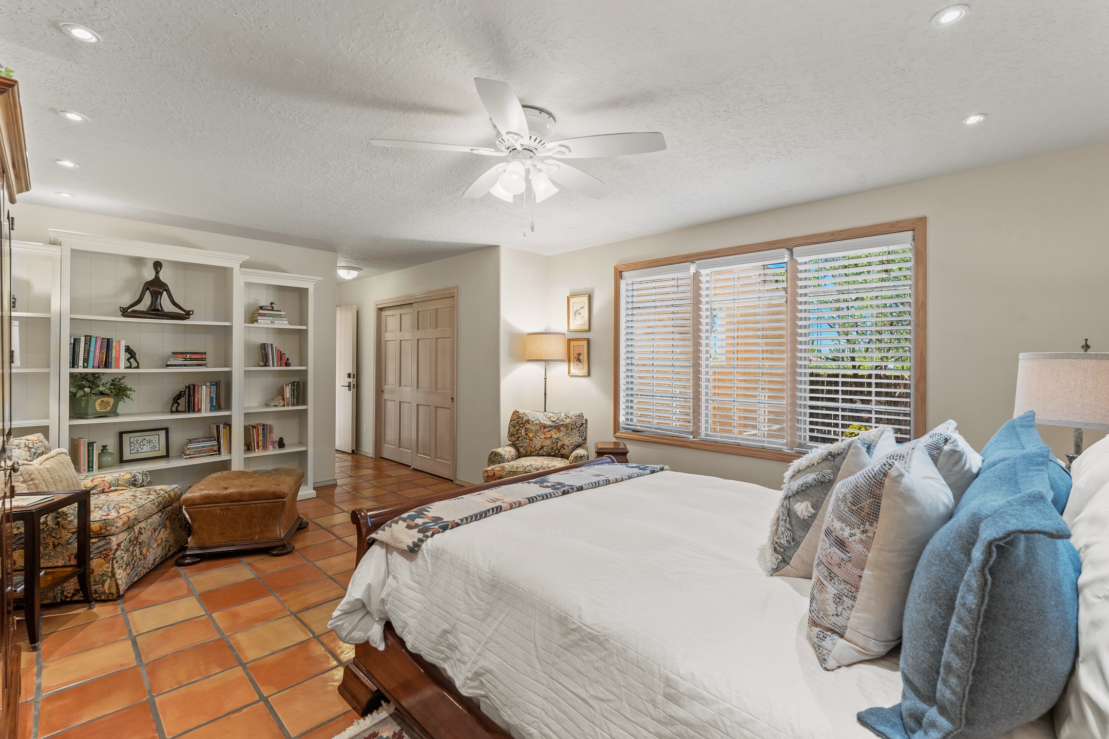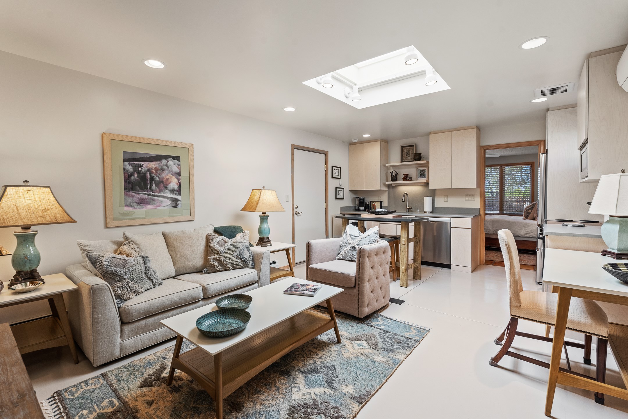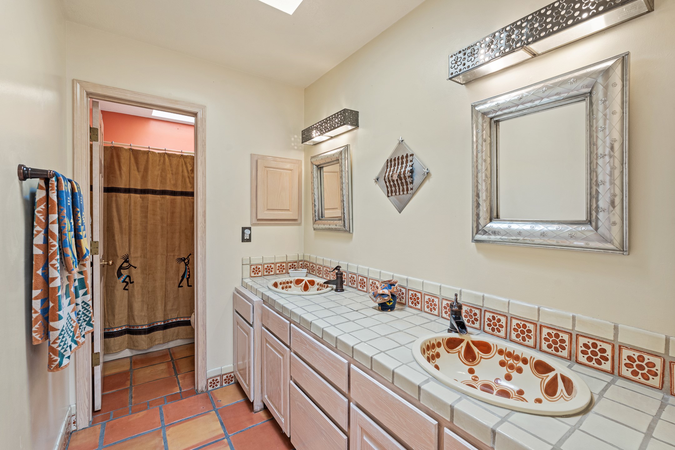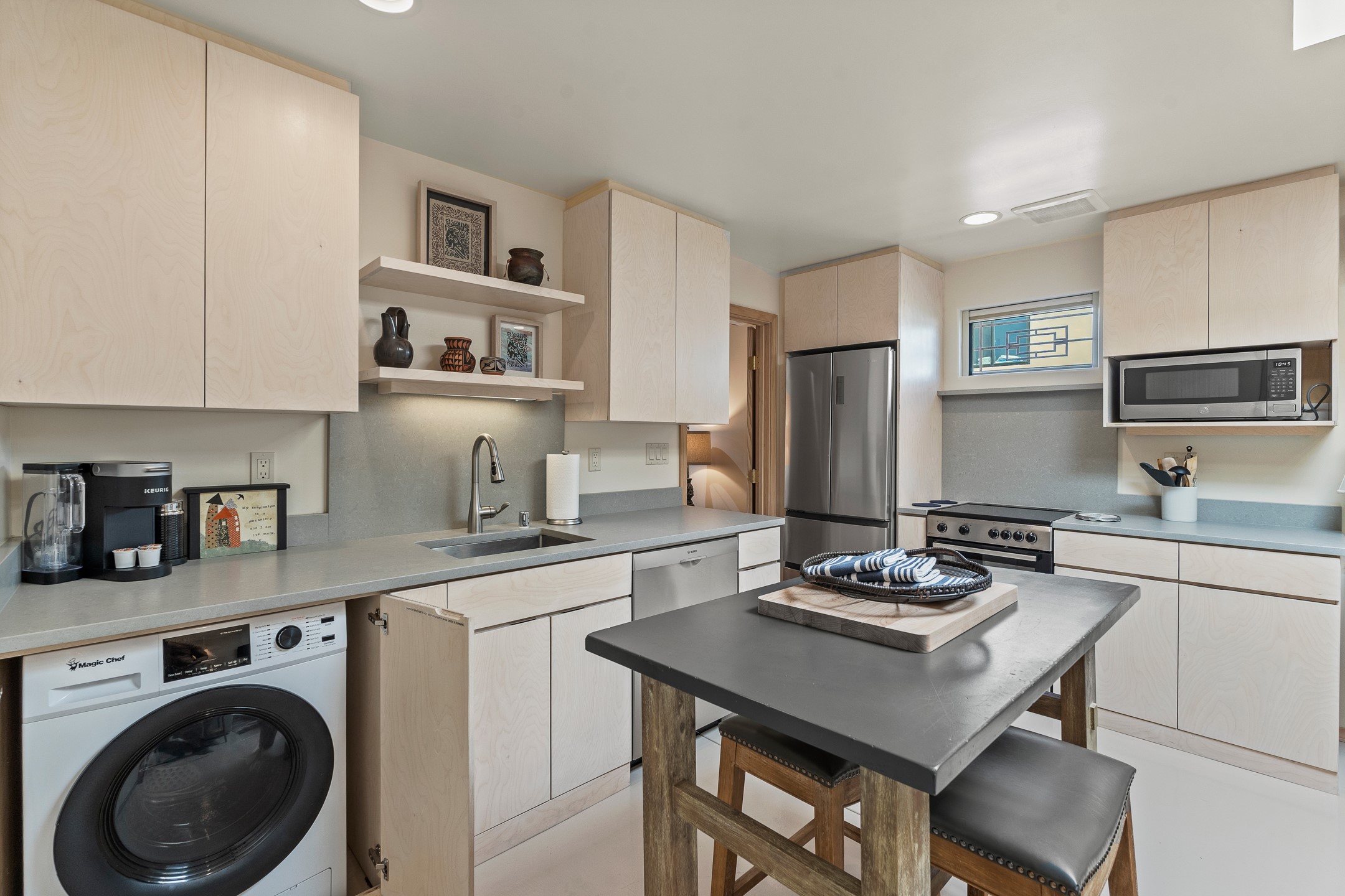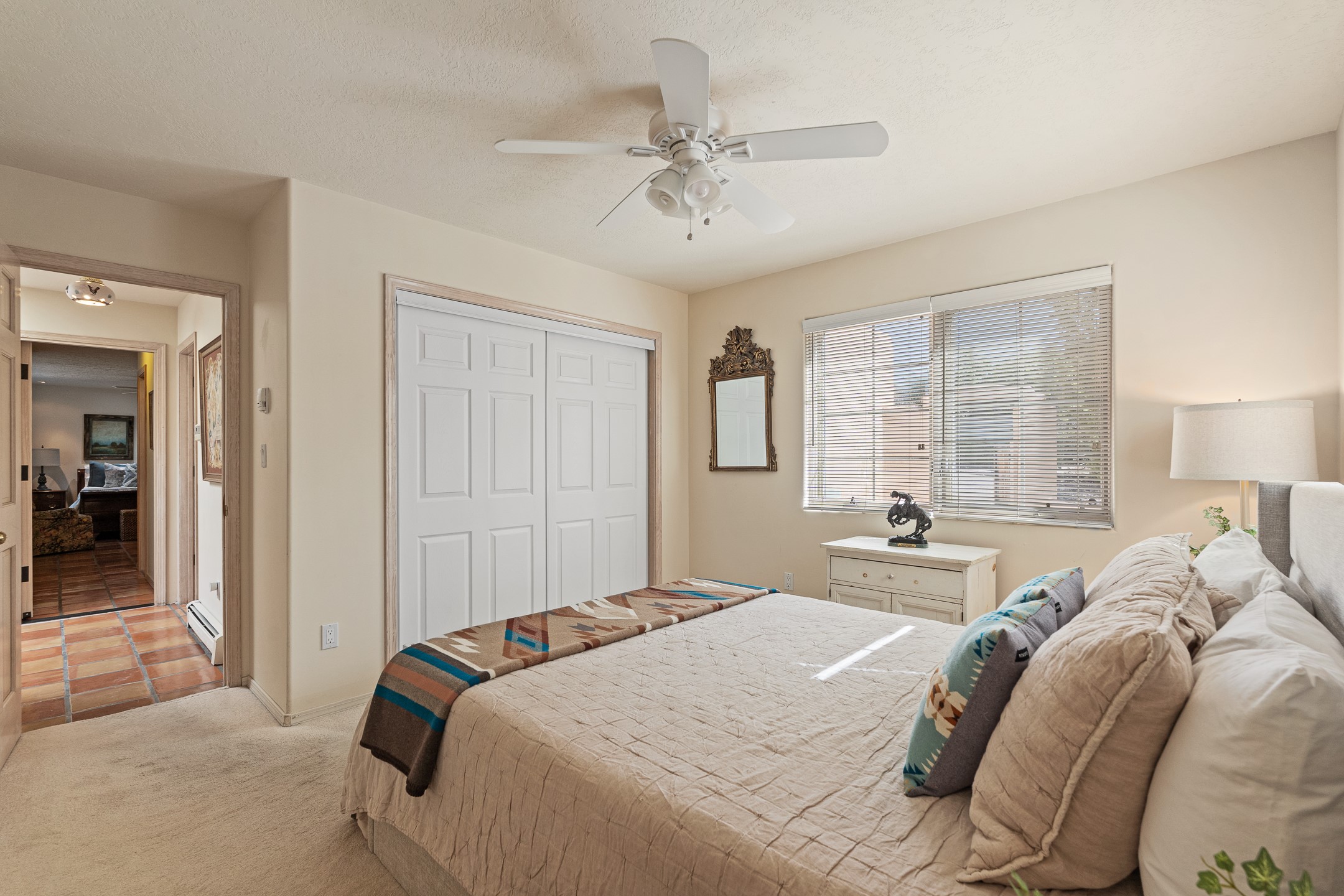 Perched above the city with beautiful Southern views of the Ortiz/Sandia and overlooking Santa Fe's beloved Ortiz Dog Park, this 2,814 sq. ft. residence offers 3 bedrooms and 3 bathrooms, including a beautifully designed, attached 1-bedroom, 1-bath guest house. The guest house has an interior connection to the home yet has its own private entrance, providing exceptional flexibility for extended family, guests, or income potential.The main living and dining area exudes Southwestern charm with high ceilings, vigas, a lovely wood-burning kiva fireplace, and French doors opening to a wraparound portal. A flagstone patio creates a magical outdoor dining setting to enjoy Santa Fe's sunsets and outdoor living. The kitchen, with its inviting breakfast nook, island, and warm regional details, is perfectly suited for both everyday living and entertaining.The spacious primary suite is a retreat of its own, with views, a luxurious bathroom featuring double vanities, a walk-in shower, and a deep soaking tub, plus an impressive walk-in closet. A guest bedroom and bath, set privately off the main hallway, complete the thoughtful floor plan.The guest house with full kitchen is accessible via an interior main house door or private exterior entrance, includes its own patio and offers endless possibilities--multi-generational living, a guest retreat, or a rental opportunity.Sited in a superior location just five minutes to downtown and ten minutes to the Plaza, this property combines views, versatility, and value in one of Santa Fe's most desirable settings. No HOA.