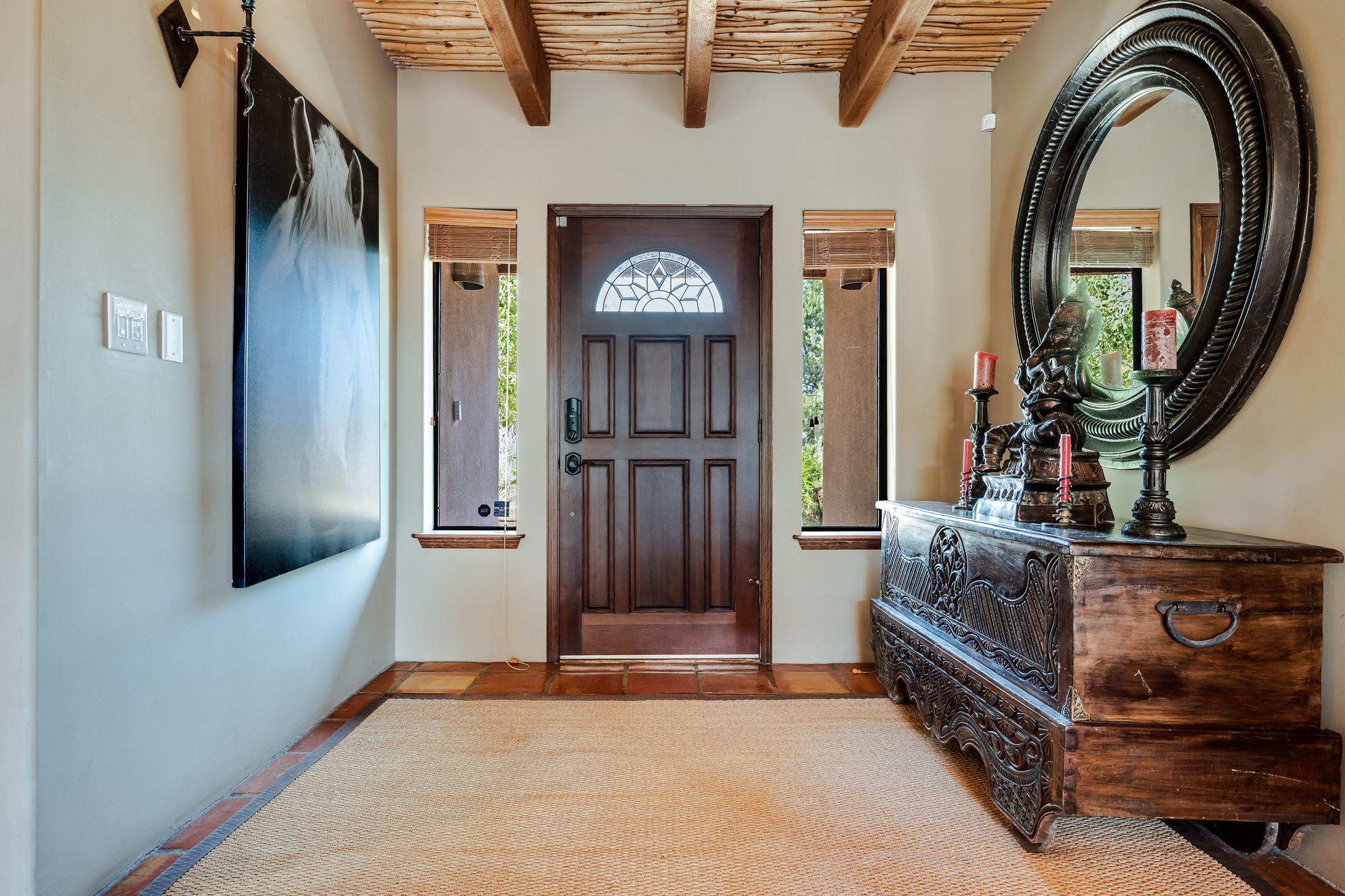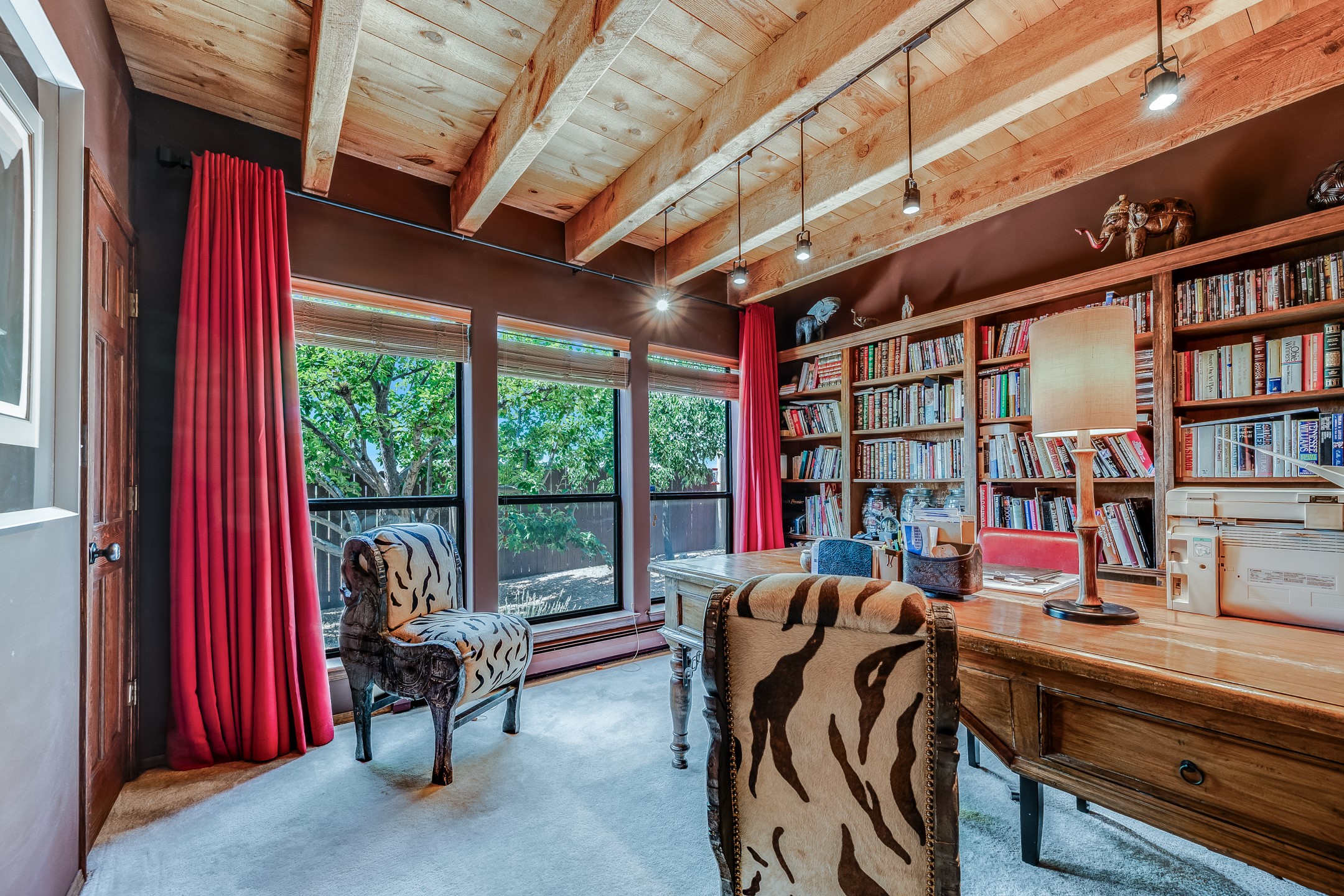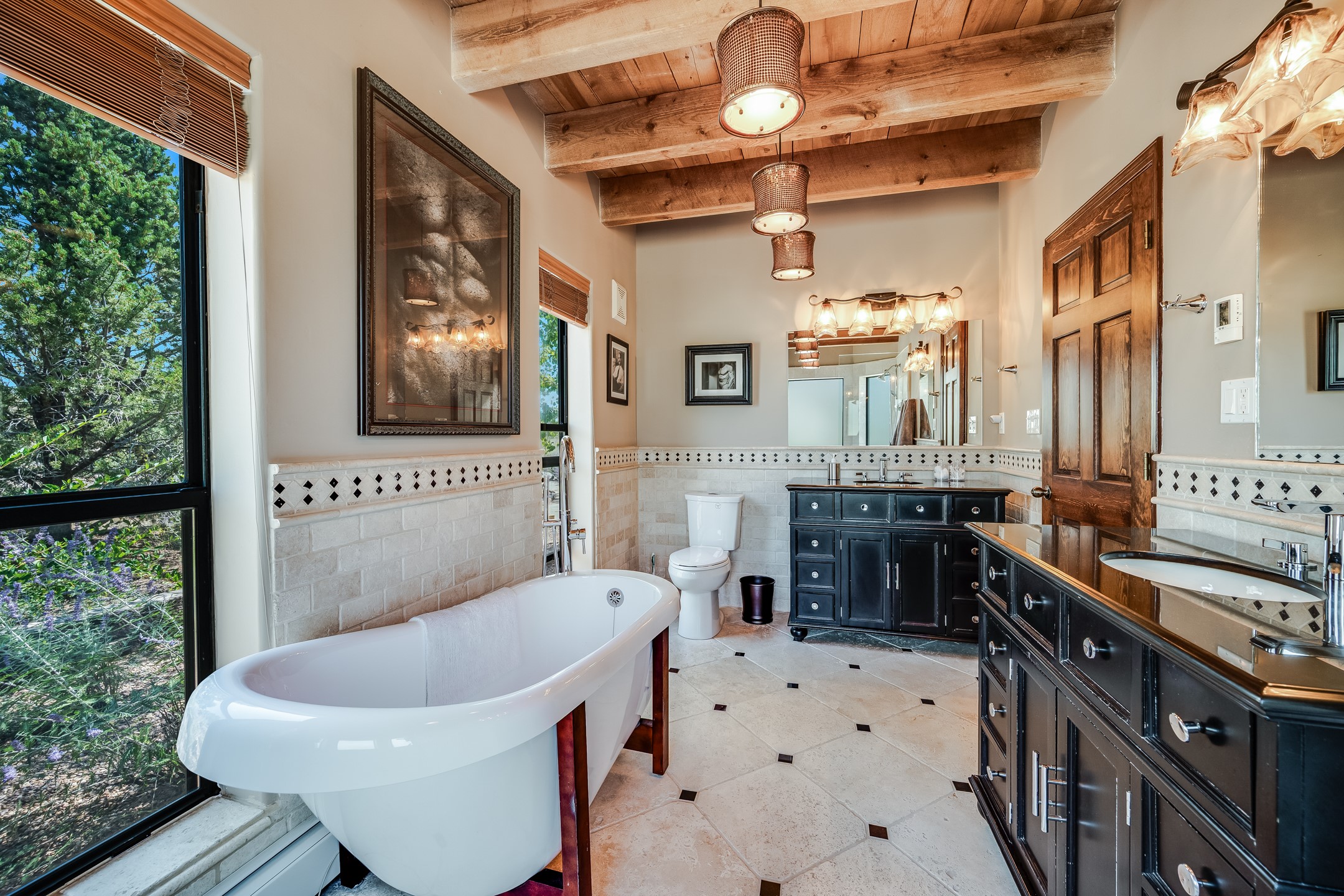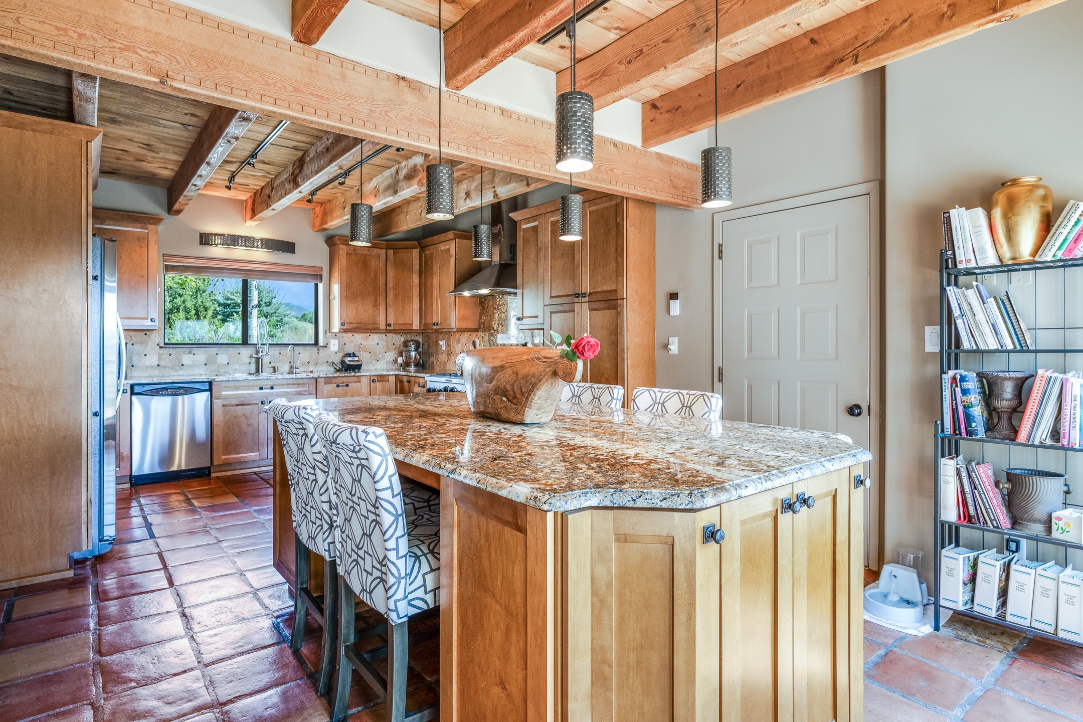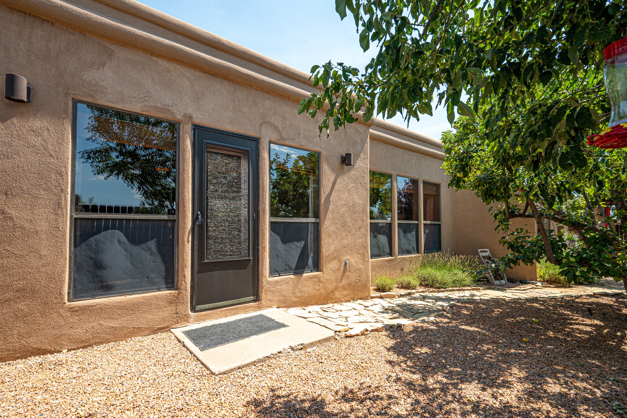 Fabulous Santa Fe detailing throughout this contemporary pueblo, open plan design. This home will wow you from landscaped entry through the foyer to view the pergola and dramatic garden fireplace. Romantic Kiva fireplaces in the owners suite, living room and study, high beam ceilings and gleaming Saltillo tile floors throughout. Remodeled spacious entertainers kitchen with large central island, a formal dining room overlooking the garden, and the main bedroom features a large walk in closet and updated spa-like bathroom. Privately fenced landscaped gardens and patios, portal and pergola for outside entertaining and enjoyment. Located on a quiet cul de sac within easy reach of the Eldorado amenities including the community center, pool, tennis, pickleball, dog parks, playgrounds, parks and disc golf, as well as 2 local shopping centers, library, senior center and schools, and only minutes into Santa Fe.