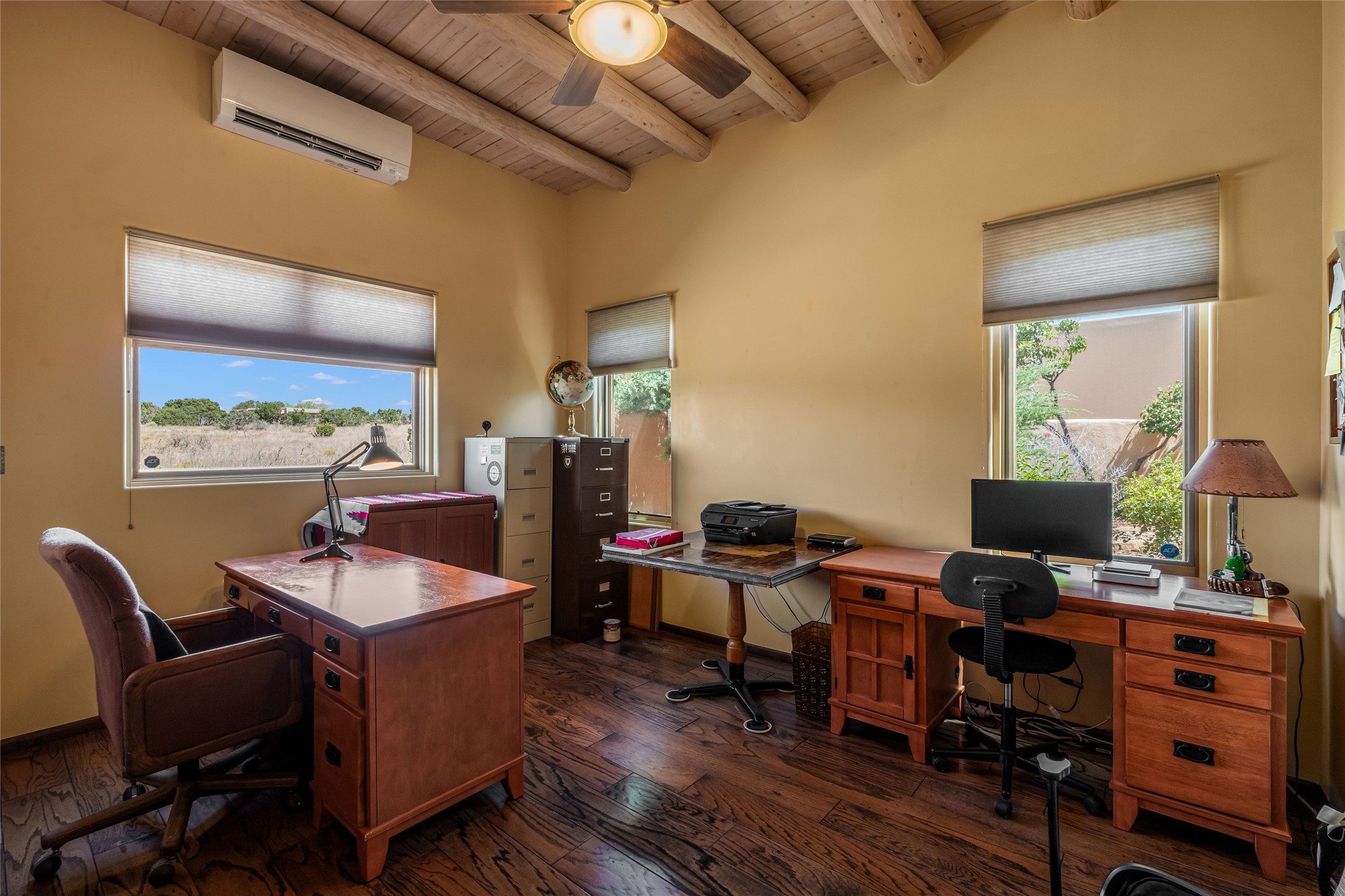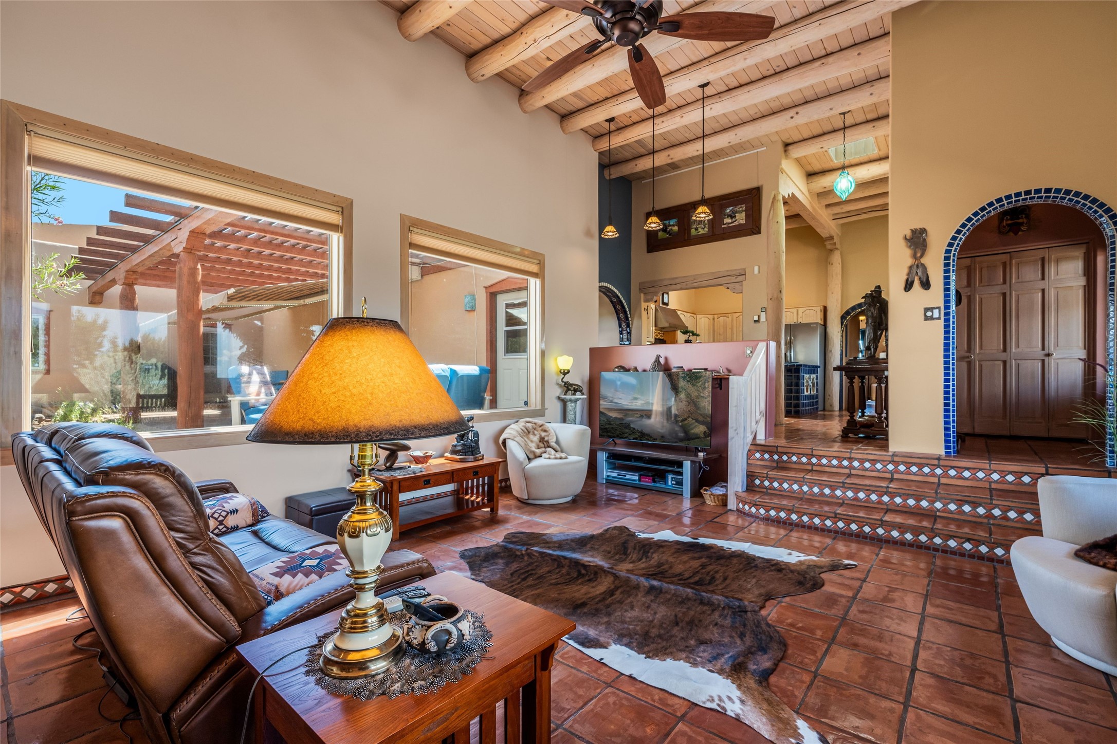 Discover true Santa Fe charm at 11 Demora, nestled on 1.74 acres in the desirable Eldorado community. This authentic Santa Fe-style home features 3 bedrooms and 3 bathrooms, thoughtfully designed with classic details that include vigas, beams, and a warm, inviting ambiance throughout.A combined 1,245 sq. ft. guest space and studio with a lighted gallery offers incredible versatility--perfect for an artist's retreat, home office, or private accommodations. In addition, the property includes a heated and cooled 4-car garage, providing comfort, functionality, and plenty of space for vehicles, hobbies, or storage.The home's welcoming courtyard provides the ideal place to relax or entertain, while Eldorado's renowned amenities--miles of scenic trails, a community pool, and clubhouse--enhance the lifestyle. With its unique blend of traditional architecture, ample space, and a sought-after location, this property is a rare find in Santa Fe.