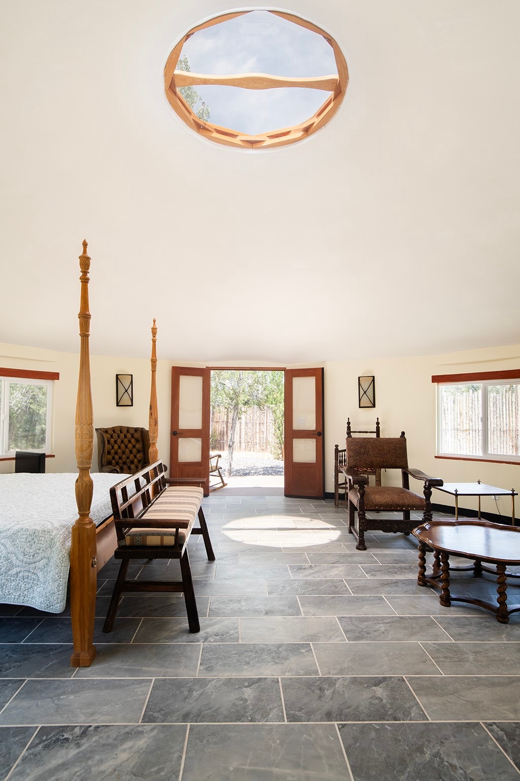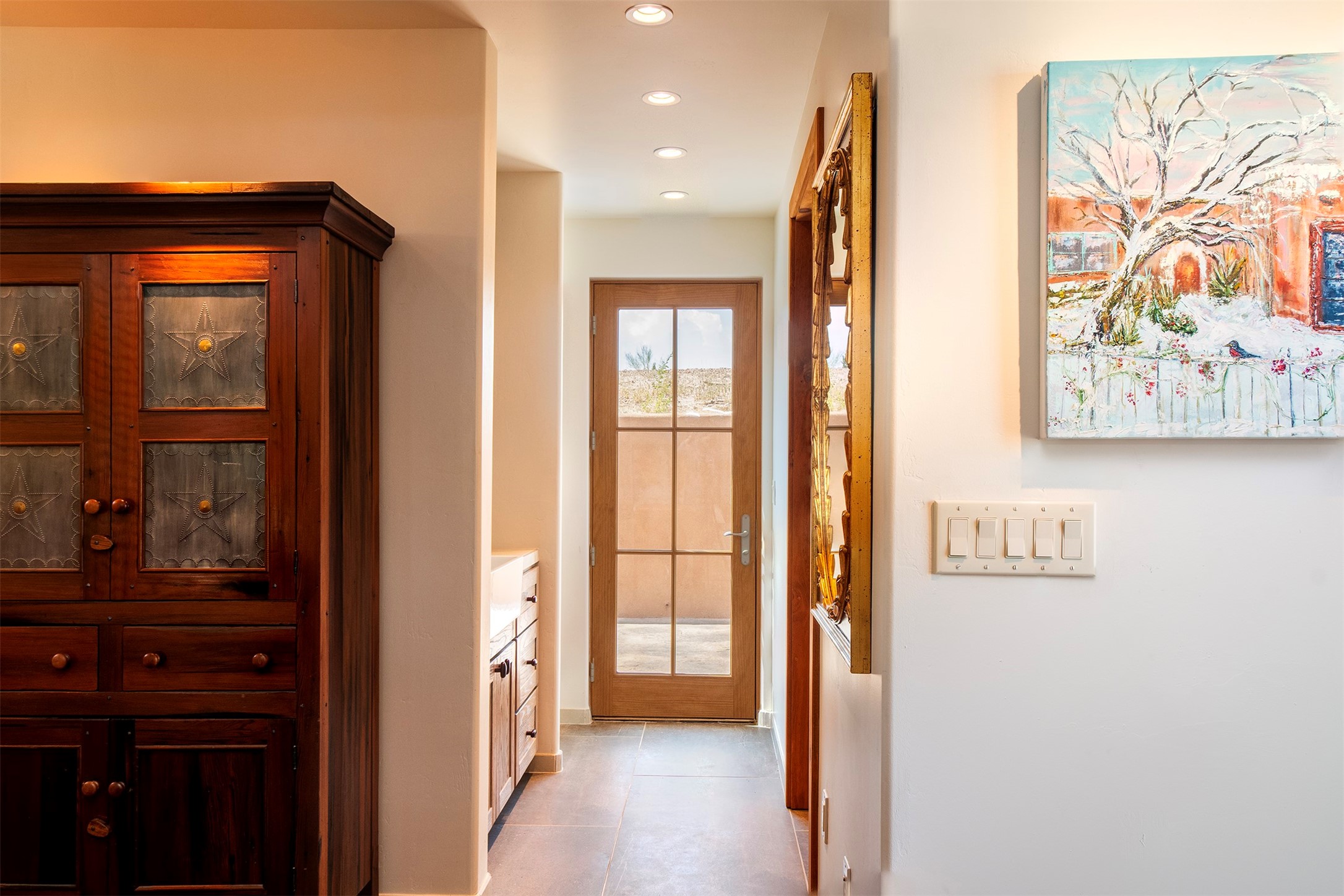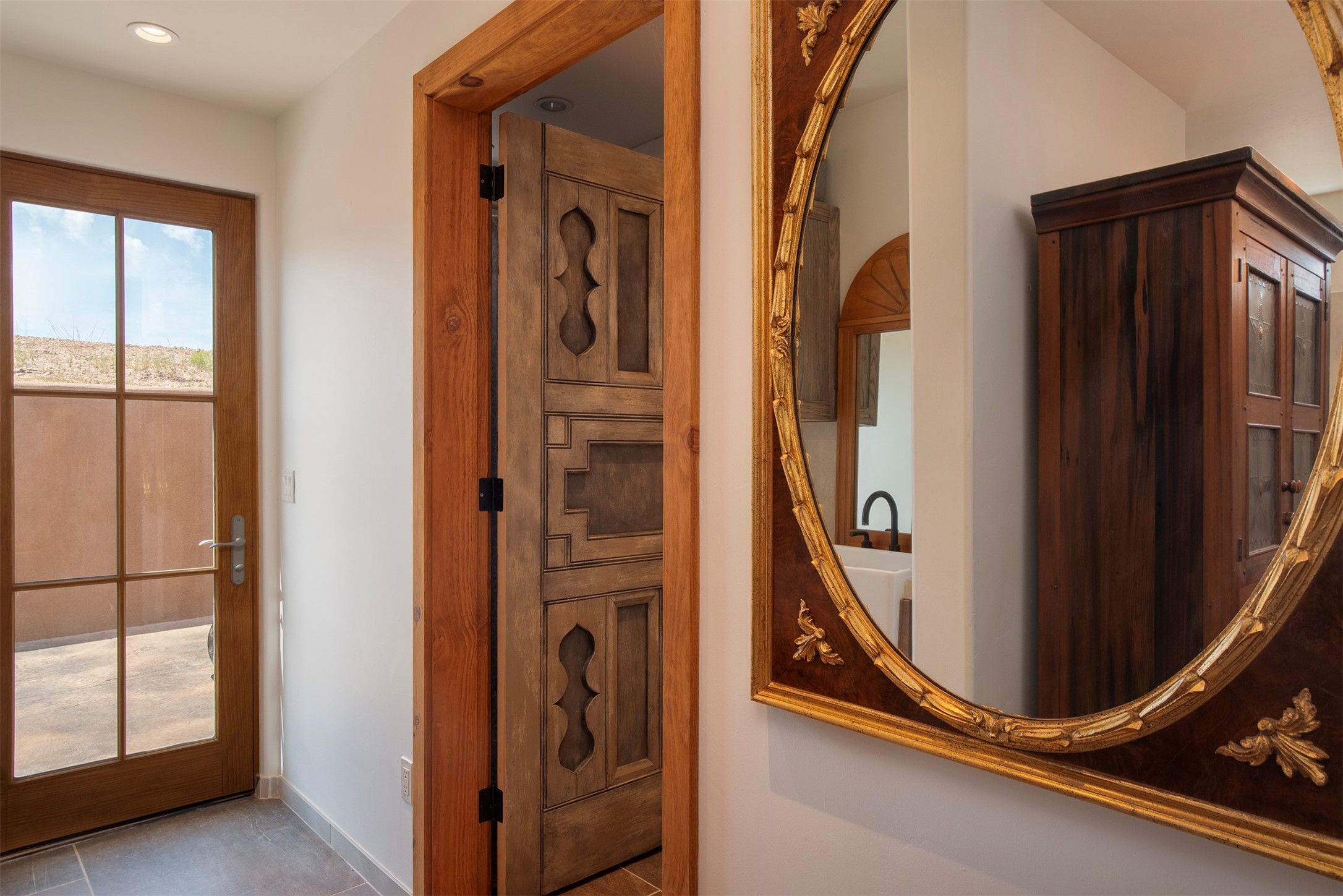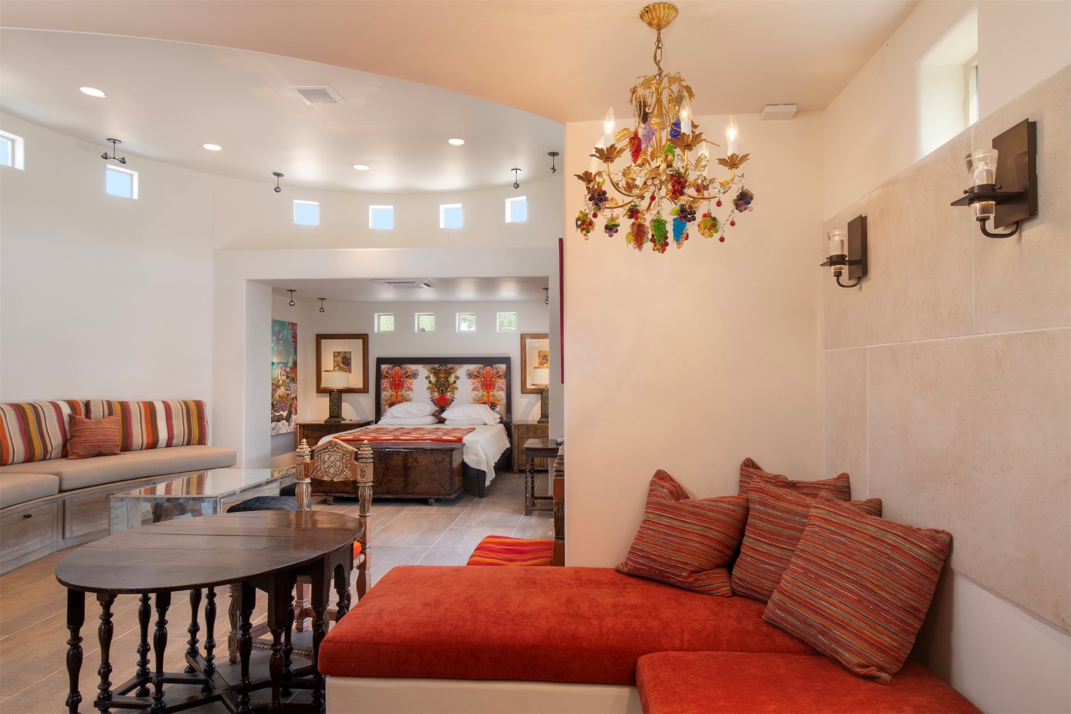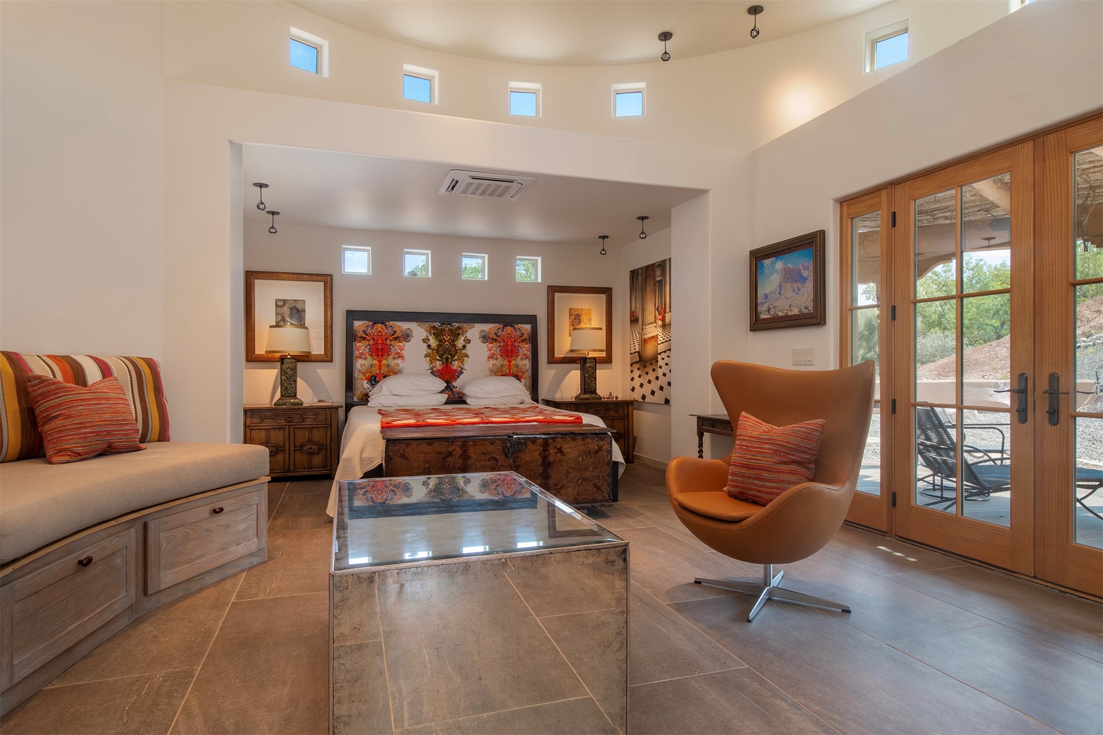 DESERT RIPARIAN DELIGHT - 2 CASITAS | 2 BATHS | 1,900 SQFT | 5.7 ACRES. Fabulously Fun Chimayo River Compound & Leisure Retreat. Welcome the natural bounty of the Chimayo river valley at this open concept modern pueblo casita compound with leisure pools and river access. Beat the heat with the soaking pool complete with waterfall grotto and lounging pad or cozy up in the winter with the hot tub or fire pit. Comprising 2 Casitas; The Pueblo Pool House Casita features a leisure pool, hot tub, waterfall grotto, outdoor shower area and beautiful stone work. The River Casitia is a finished 24' Yurt with added kitchen and bathroom on a permanent foundation next to the river featuring a fire pit area and river access trails. Each building is complete with an outdoor shower for apre l'eau - pool or river. Offering tile porcelain floors, art lighting, under cabinet lighting, 2 outdoor showers, built-in banquette with storage, dishwasher, on site laundry, electric range, insulated windows, hardwood cabinetry, and bronze hardware, Dos Casitas Compound on the River is a delightful wilderness retreat. Located on 5.7 dynamic and beautiful acres In the Chimayo Valley, 40 minutes from Historic Santa Fe and 60 from the Pueblos of Taos. Resting alongside the Santa Cruz River makes this a true oasis in the New Mexico desert. The property is plentiful with river life. Majestic cottonwoods grow alongside the river and vast views of the desert hills and mesas of northern New Mexico offer the senses peaceful imaginings. Adjacent to acres of BLM land, makes this a wonderfully secluded location at the end of a private road. Conveniently located just five mins from village stores, shopping, and not much further to nearby restaurants, historic and local attractions. Imagine this as the amazing Art Studio or Yoga Yurt of your dreams. Perfect for Investor Wilderness Spa Retreat or further Compound development. Visit today and own a piece of Northern New Mexico paradise tomorrow.