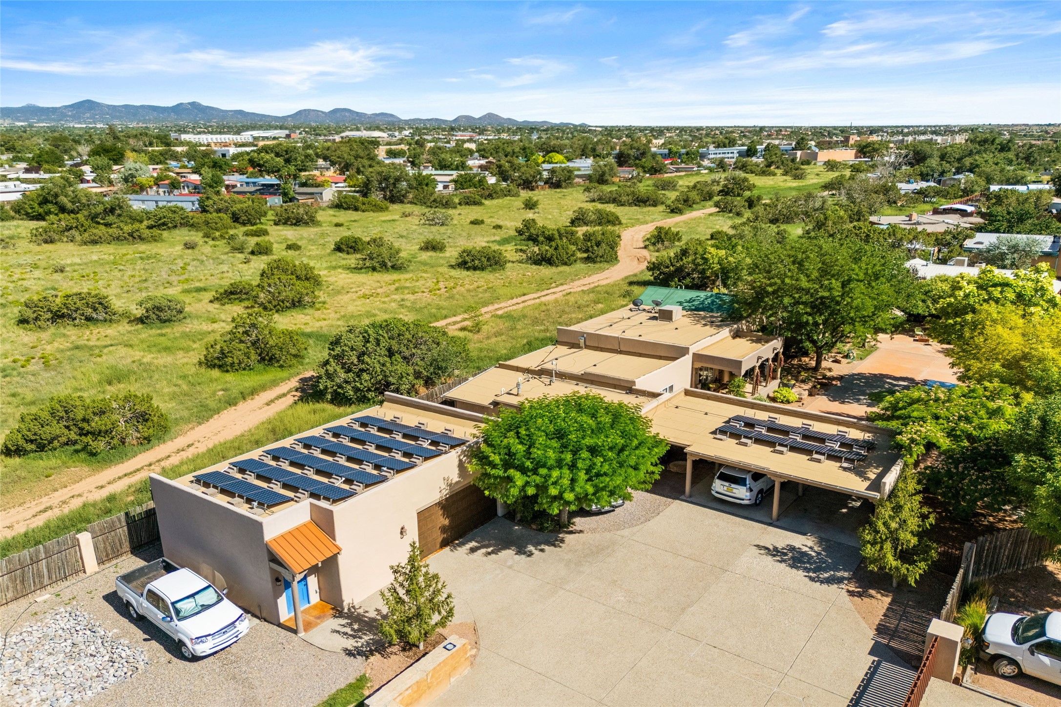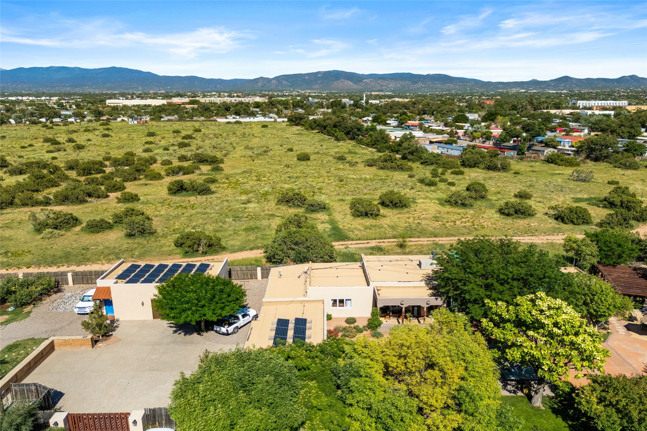 Welcome to 2829 Calle de Saiz, a spacious Santa Fe retreat offering room to live, work, and entertain. Set on one full acre, this 3,376 sq ft home features 4 bedrooms and 2 bathrooms, thoughtfully designed for comfort and functionality. The generous floor plan includes multiple living and gathering spaces, perfect for family and guests alike. A rare 3-car garage plus carport provides ample parking and storage, while the expansive lot offers plenty of outdoor potential. Whether you're envisioning gardens, outdoor entertaining, or simply enjoying wide open space, this property delivers. Conveniently located with easy access to all that Santa Fe has to offer, this home is a wonderful opportunity to enjoy space and versatility in a desirable setting.