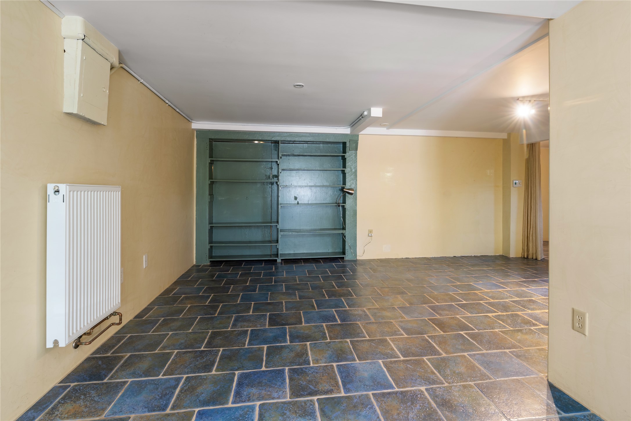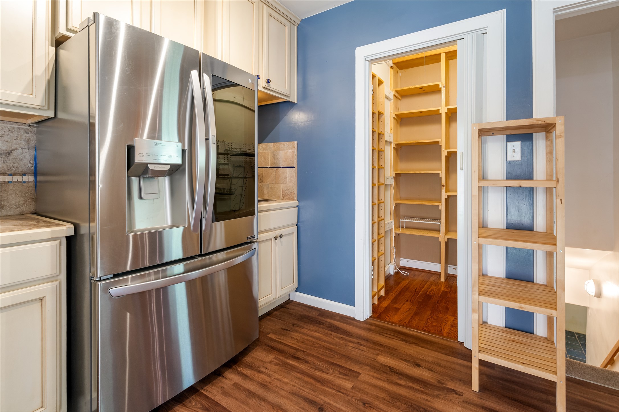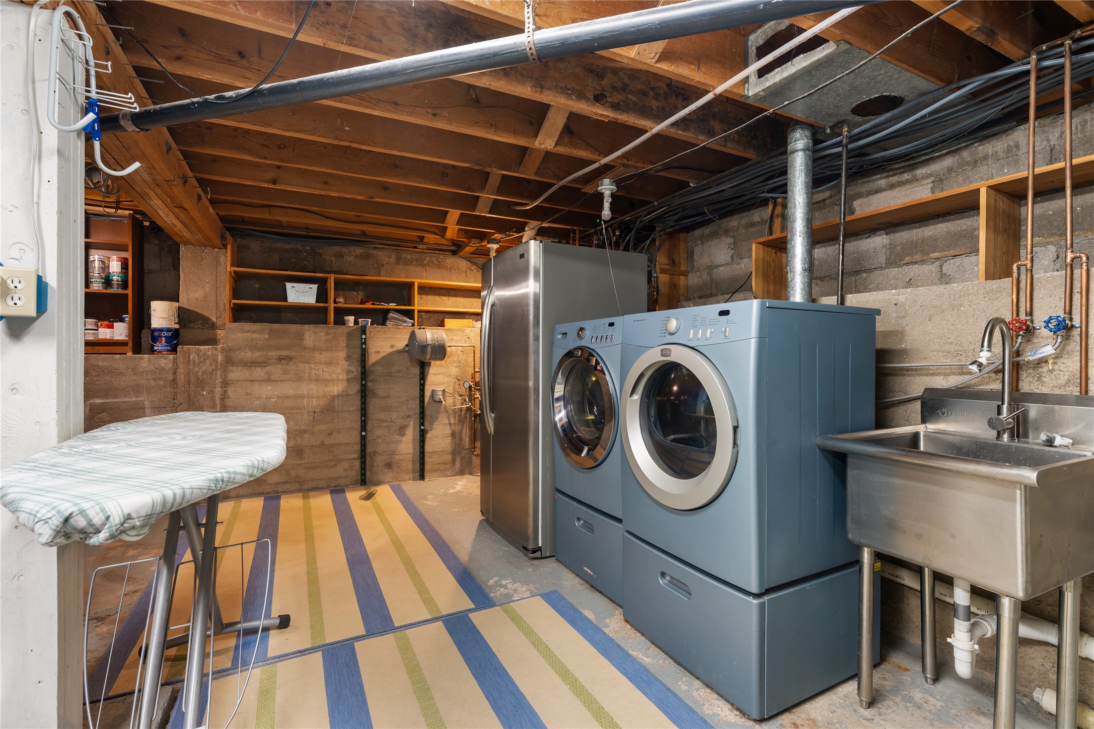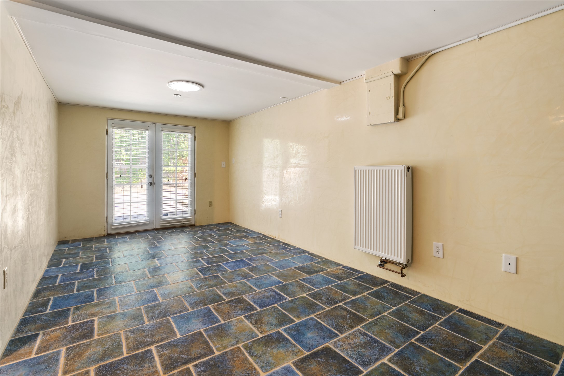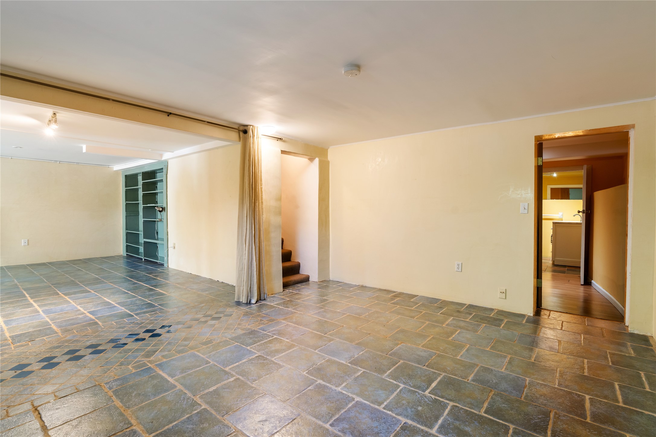 Step into Santa Fe history in this captivating 2,041+/- sq ft pre-war home, where artistic vision meets sustainable living just five blocks from the world-famous Santa Fe Plaza. This unique 3-bedroom, 2-bathroom property enchants from the moment you enter through the whimsical front gate created by renowned Galisteo artist John Massey. The home showcases remarkable historic character with original Santa Fe Penitentiary fencing enclosing the entire property, complete with original iron keys - perfect for pet owners. Venetian plaster finishes & tile flooring downstairs add authentic southwestern elegance, while beautiful hardwood floors grace the main living area and two upper level bedrooms, complemented by a cozy wood-burning kiva fireplace in the living room. Sustainable living features abound in this thoughtfully designed home. The south-facing passive solar design includes a bermed-in lower level that stays naturally cool in summer. The property boasts a 1,400-gallon underground rainwater collection system, mature low-water gardens, and organic raised beds cultivated for 18 years. A super-efficient 92% Lochinvar hydronic heating system minimizes utility costs, while energy-efficient induction cooking and double-pane low-E windows enhance efficiency. The roof was recently recoated in 2025. The outdoor spaces create a true paradise with a tranquil stone and sculpture garden and mature pond featuring over a dozen Koi fish, water lilies, and aquatic plants. A complete outdoor kitchen and dining pavilion with fireplace built from reclaimed Santa Fe Plaza brickwork extends living space seamlessly. Two separate living areas with independent entrances offer exceptional flexibility for multi-generational living, home office space, or rental income potential. The downstairs entrance can be converted back to garage access if desired. This is more than a home--it's a Santa Fe lifestyle combining historic charm, artistic flair, and modern efficiency. Schedule a showing today!