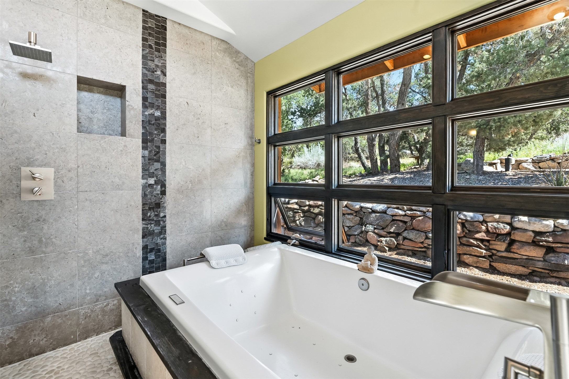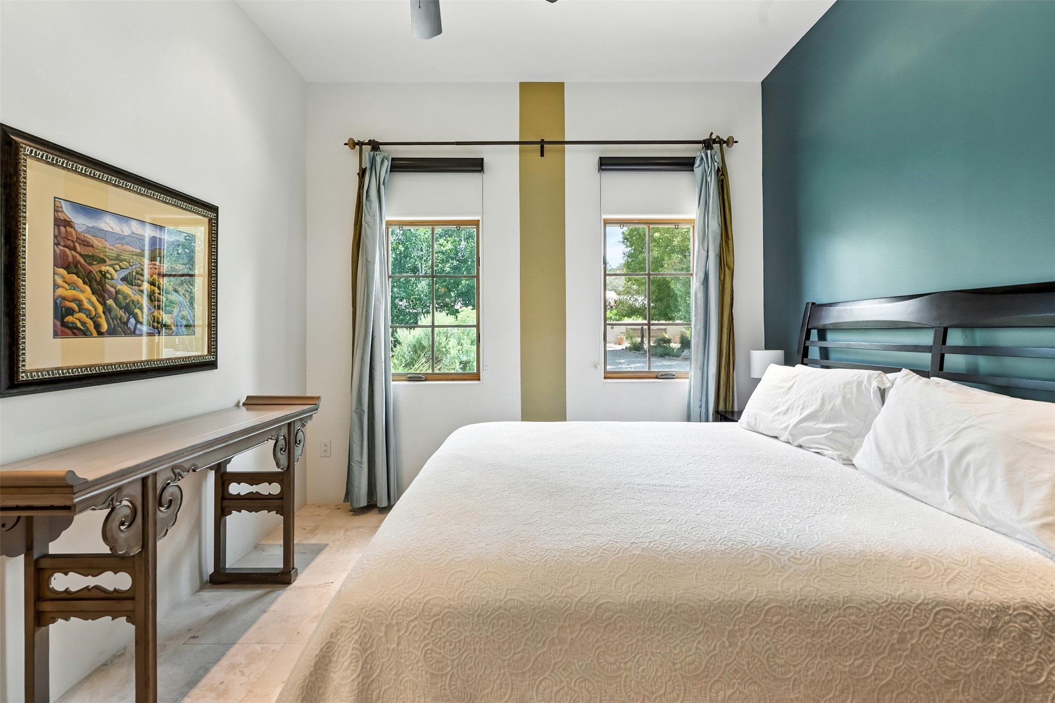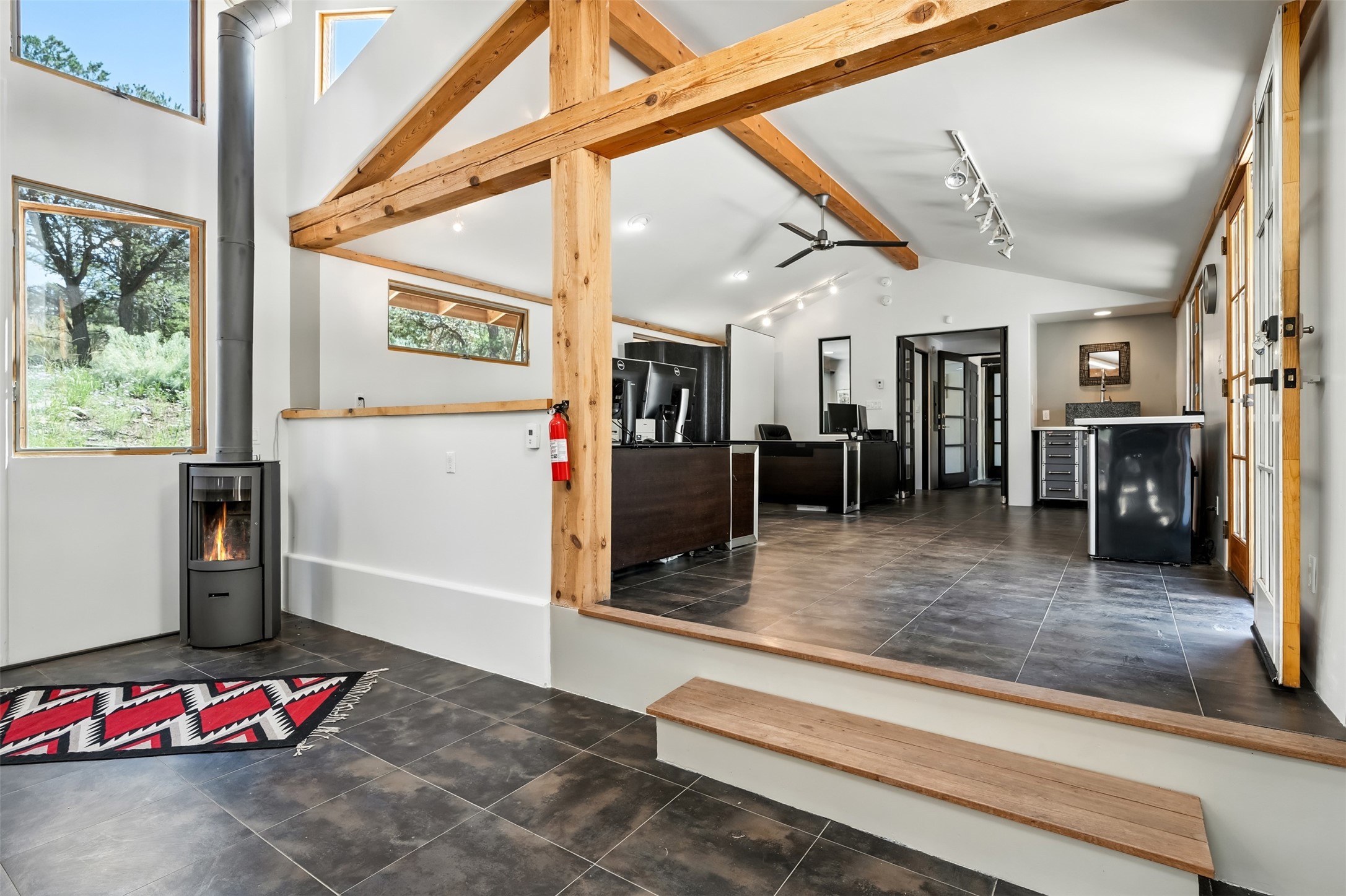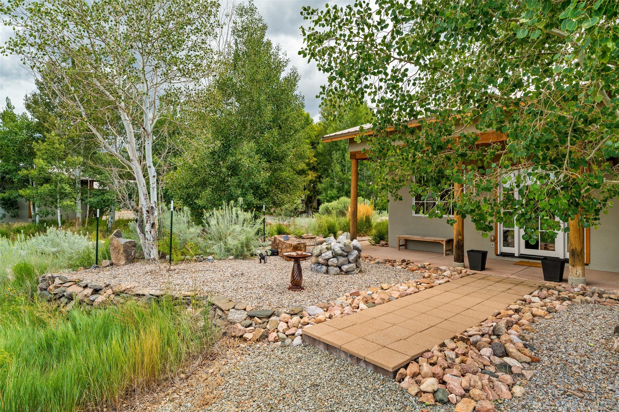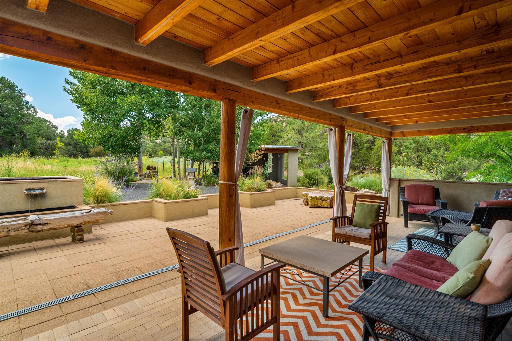 LIVE, WORK, ENTERTAIN, in your own secluded sanctuary located on 7.08 Sunlit Hills acres.10 Sabina Lane is a sophisticated & contemporary COMPOUND offering a wide variety ofliving & working spaces in a stunning pastoral setting, 15 minutes from Santa Fe.MAIN HOUSE - 2,187sqft open concept Great Room w/beamed cathedral ceiling,fireplace, Chef's kitchen w/granite counters, high end appliances, 2 spacious bedrooms w/ensuite bathrooms, laundry area, 5 sets of French door leading to 58 foot long covered portal.GUEST SUITE - 530sqft is steps from the main house & offers an inviting bedroom, spainspired bathroom, custom tiles, soaking tub, is adjoined by a private tranquil terrace.STUDIO/OFFICE - 994sqft amazing work space with vaulted ceiling, view windows, areasfor an office, art or other work related spaces, powder room & covered portal entry. Onewould never need to leave the property to conduct all their business or artistic work.CASITA - 683sqft Set apart from the main house, the casita has a full kitchen w/stonecounters, kiva fireplace, covered portal, stackable washer/dryer. The casitahas produced additional income as an Air B&BGARAGE - 60 sqft Fully finished, 2car capacity, storage areas.GAZEBO -196sqft An inviting space away from the home for meditation & relaxation.PAVILION -241sqft Wonderful retreat area w/fireplace, bancoseating, ceiling fan, designer lighting.The property is accessed through a gated entry, a graveled driveway w/recently addedretaining wall. Many additional aspects - electric convectionstove top, extensive & significant landscaping,10 zone irrigation system,2 owned propane tanks (500 and 250 gallons), 5 fireplaces, an amazing flower filled meadow, healthy pinon, aspen and juniper trees, eclectic river rock pylons, antique wooden bathroom cabinet, a wealth of ceiling fans & mini split in the primarybedroom. For folks seeking a destination, full time live/work situation, please consider 10Sabina Lane.