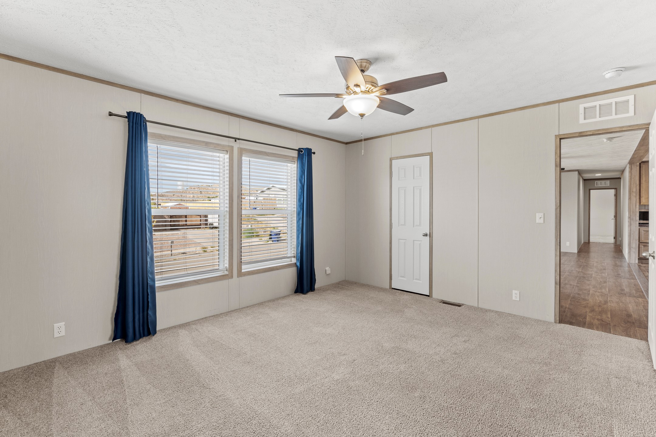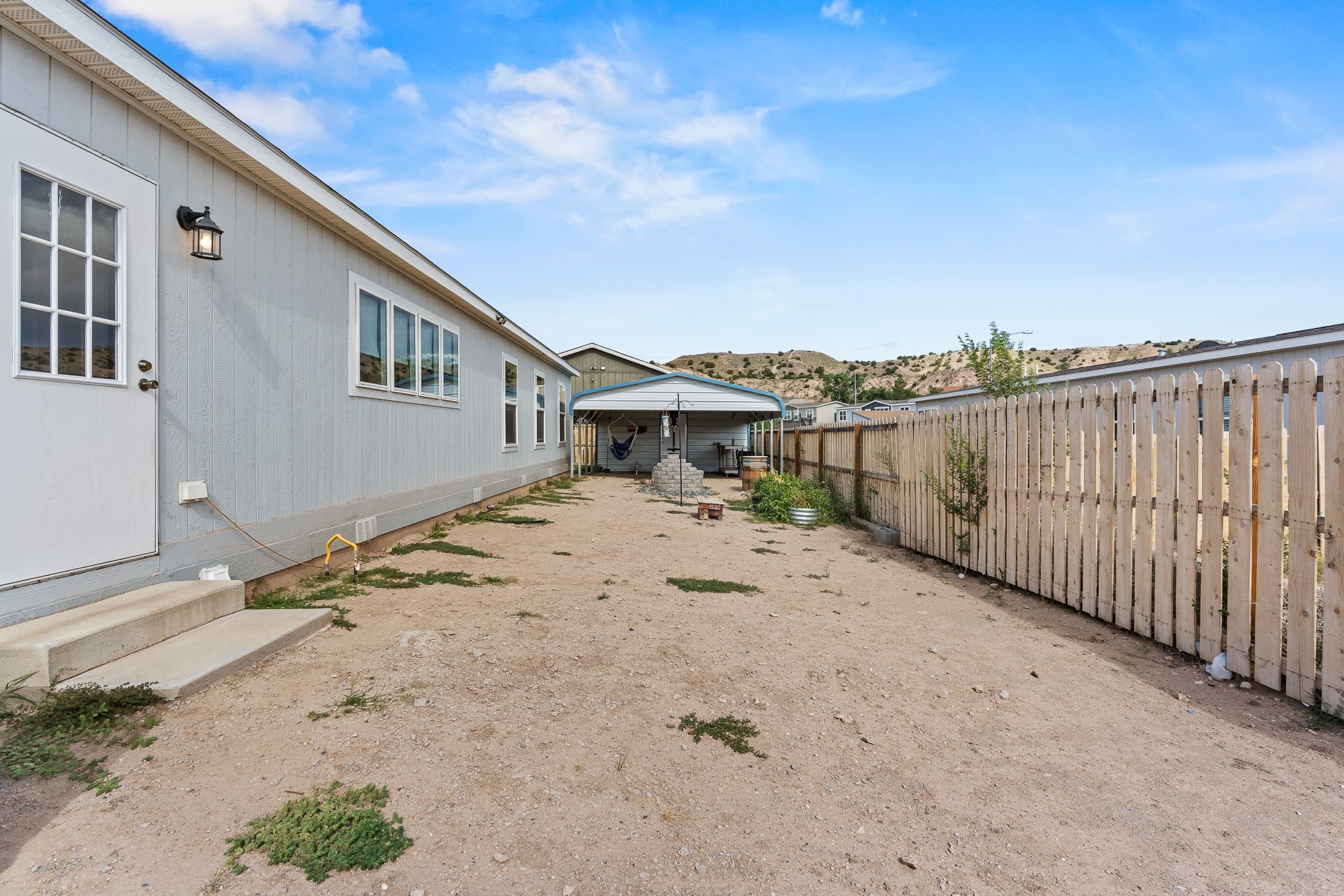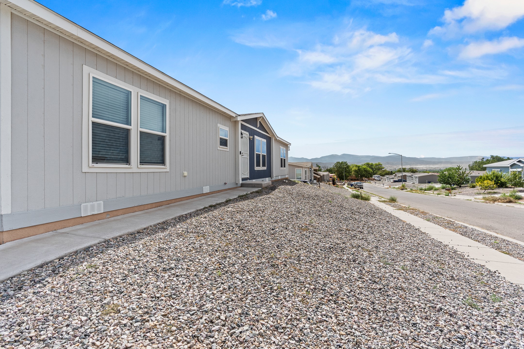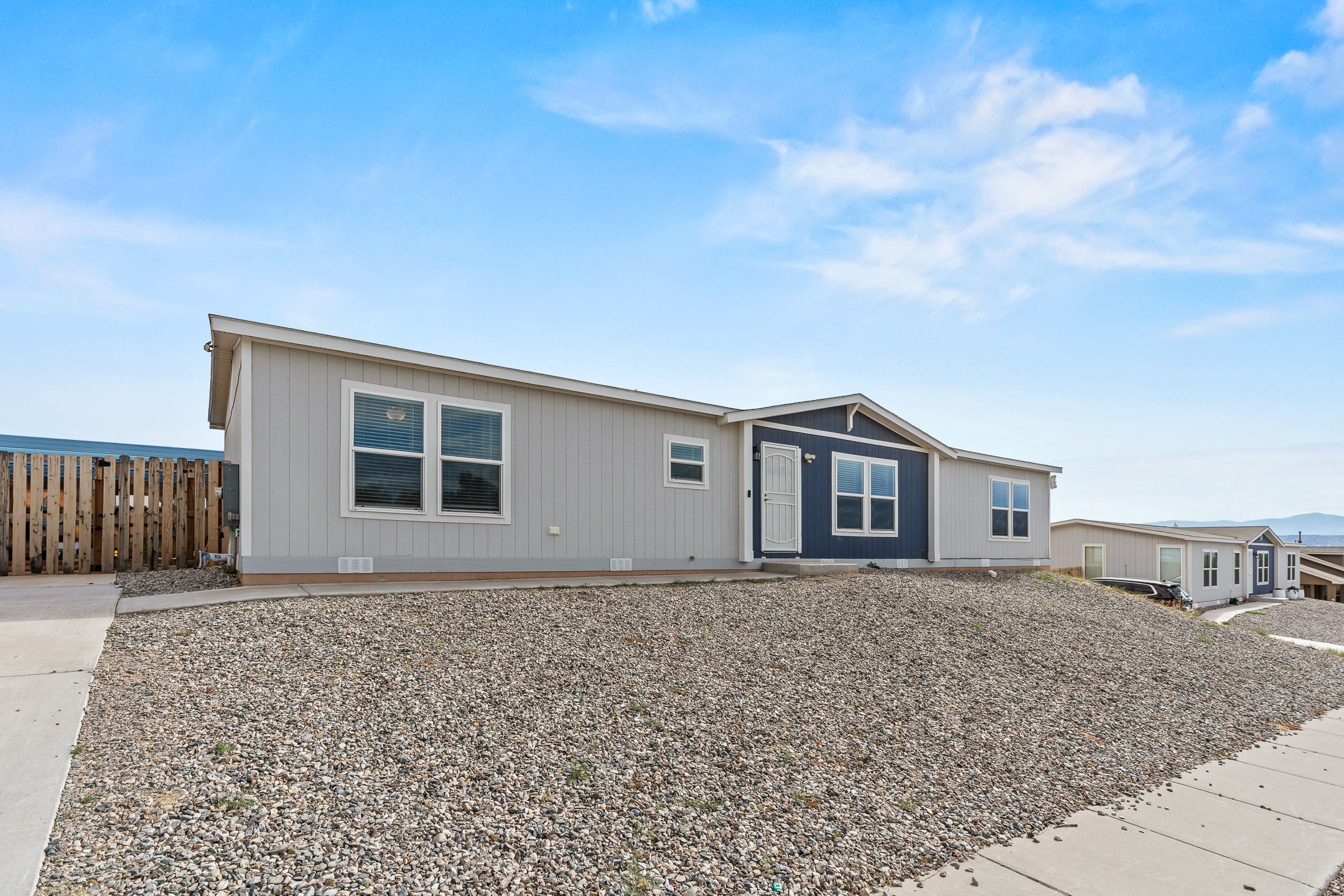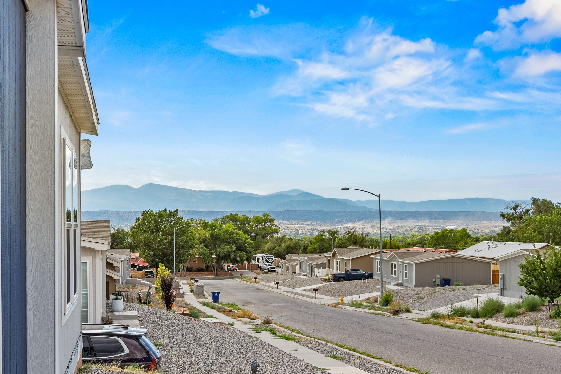 4-bedroom Clayton Manufactured home, ideally located in Vista Del Rio Subdivision. Perfectly positioned on an elevated lot,this home offers mountain views from the backyard, a fenced backyard for pets, and a covered 18 x 20 covered porch with a 10 x18 storage, ideal for enjoying New Mexico's stunning sunsets. Inside, enjoy a large open-concept living area with a spaciouskitchen featuring an oversized island, perfect for cooking and entertaining. LVP flooring throughout the main living spaces,with plush carpet in the bedrooms. The home also includes central heating and AC, plus a whole-house water filtration systemfor added comfort. Unique to this home are two private primary suites--one on each end of the home. The main primary suitefeatures a walk-in closet, double vanity, soaking tub, and a separate shower. The second suite includes its own ensuite bathwith double sinks, a walk-in closet, and a spacious shower--ideal for multi-generational living or hosting guests. Twoadditional bedrooms share a well-appointed 3/4 bath. Conveniently located just 30 minutes from both the front and back gates ofLANL, and with quick access to Espanola, this home offers a rare combination of space, privacy, and accessibility.