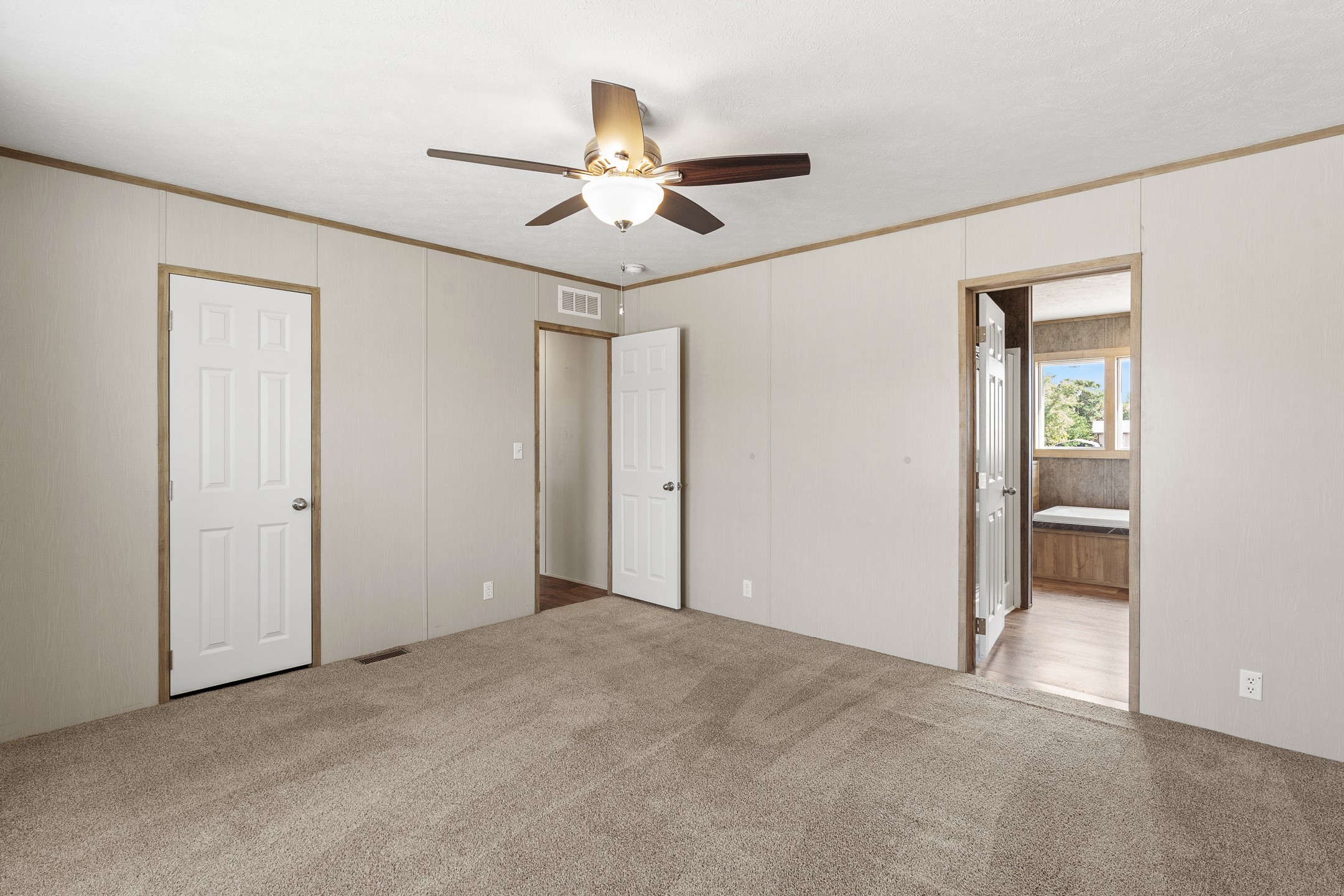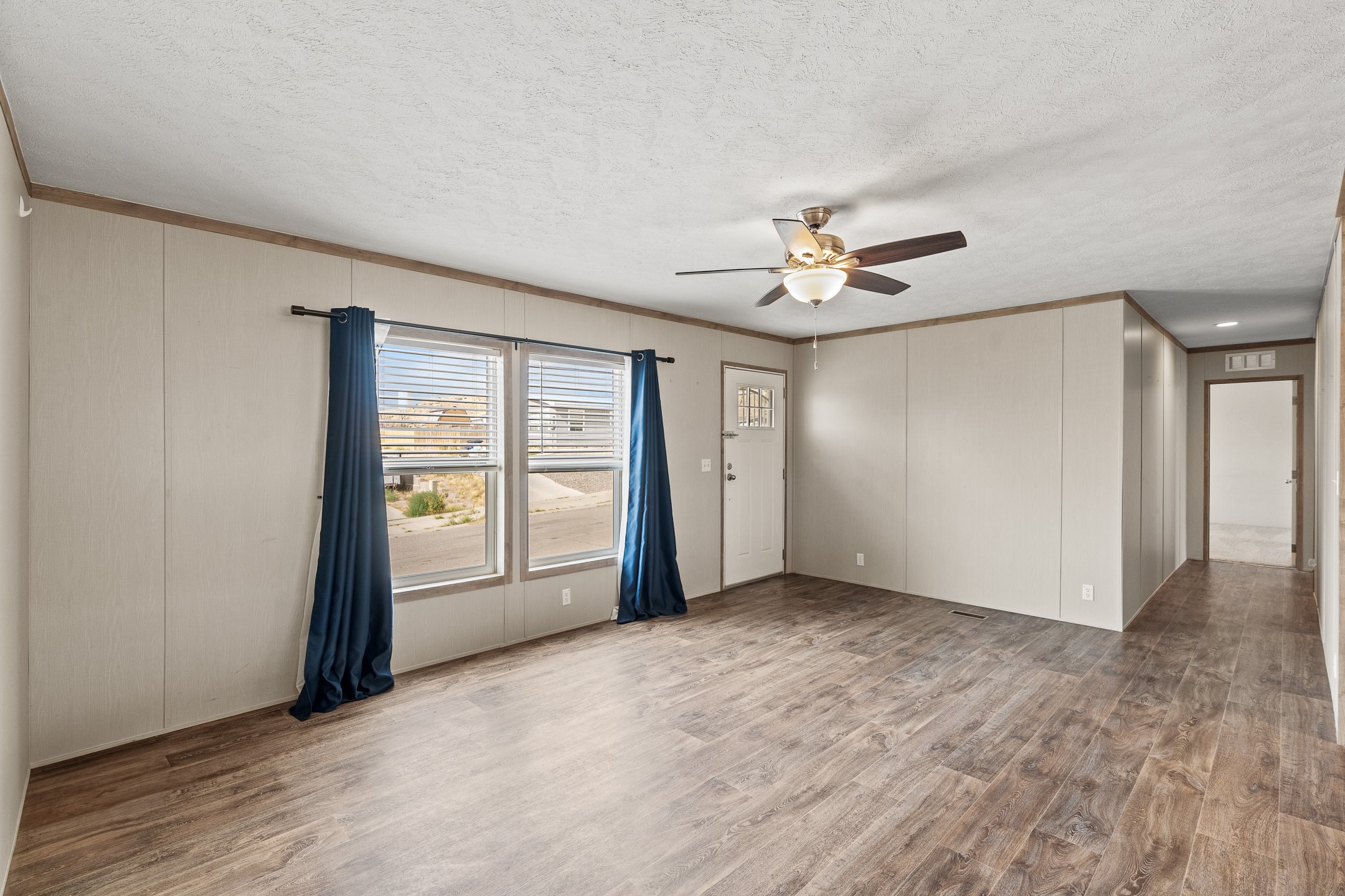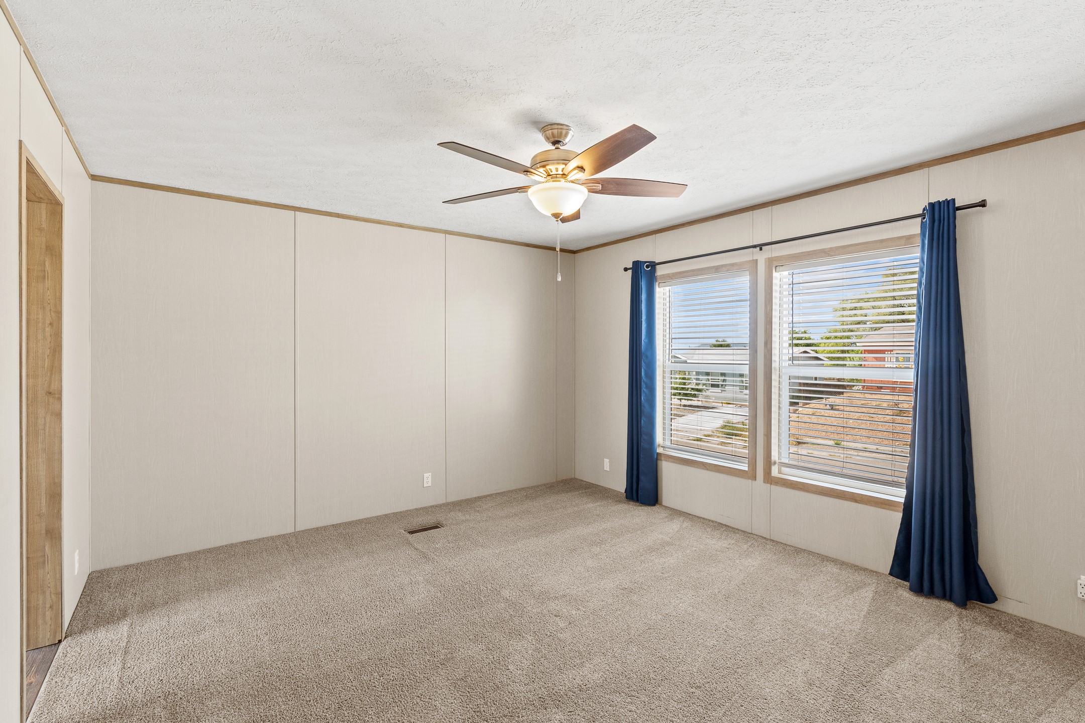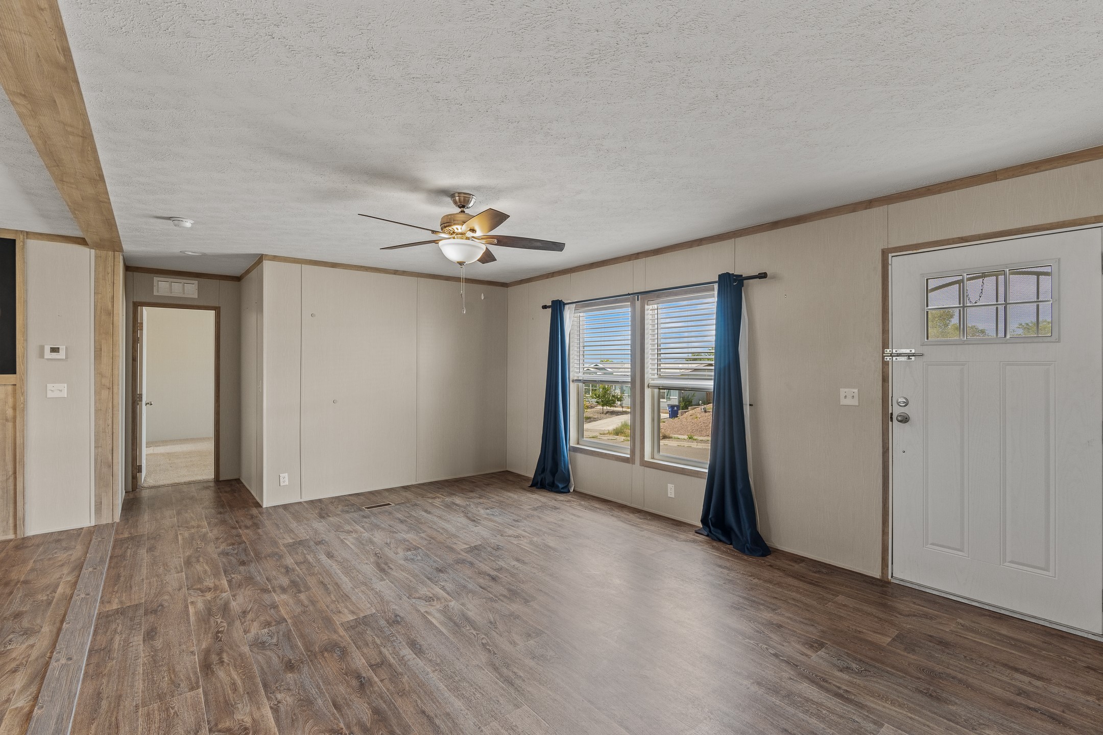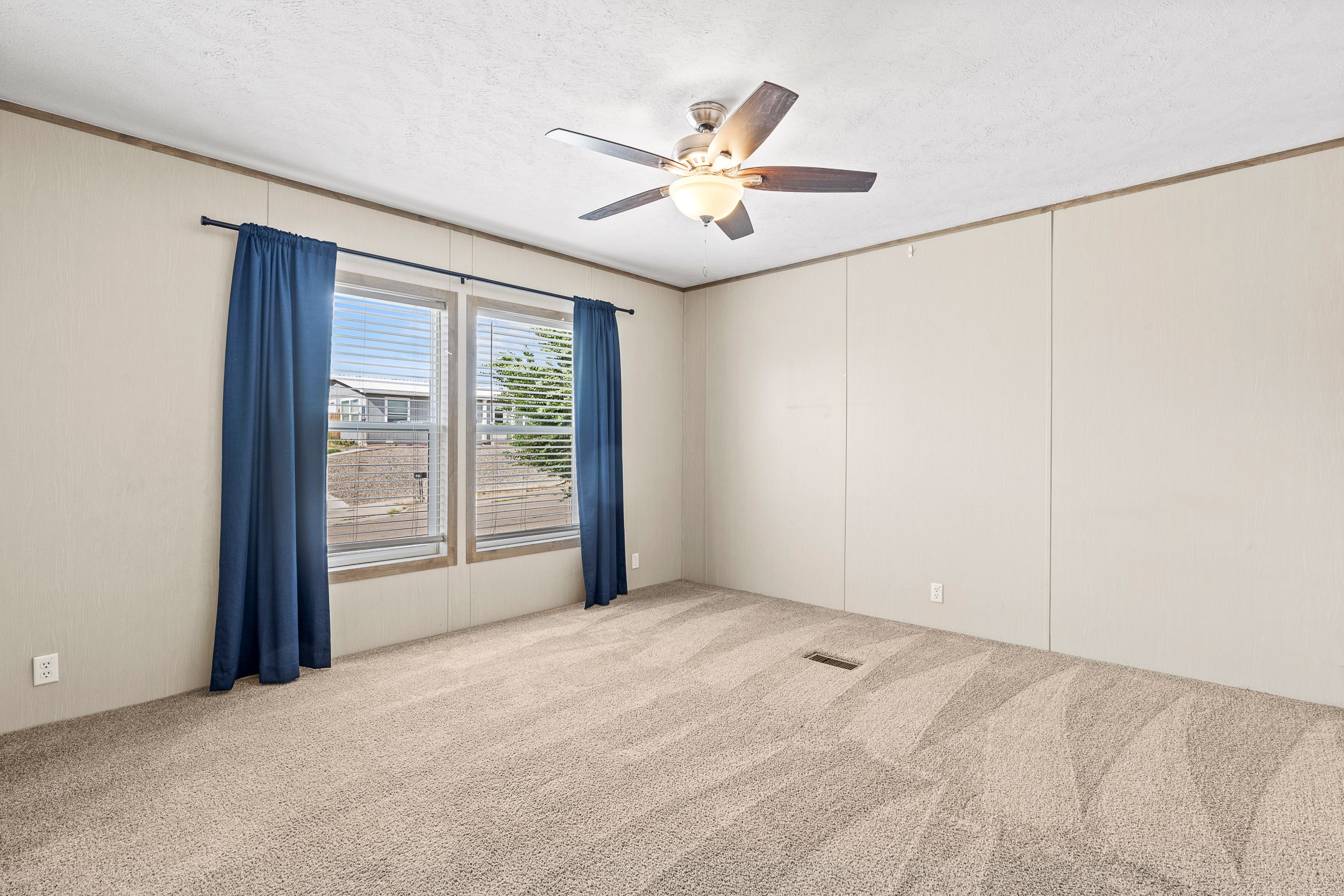 4-bedroom Clayton Manufactured home, ideally located in Vista Del Rio Subdivision. Perfectly positioned on an elevated lot,this home offers mountain views from the backyard, a fenced backyard for pets, and a covered 18 x 20 covered porch with a 10 x18 storage, ideal for enjoying New Mexico's stunning sunsets. Inside, enjoy a large open-concept living area with a spaciouskitchen featuring an oversized island, perfect for cooking and entertaining. LVP flooring throughout the main living spaces,with plush carpet in the bedrooms. The home also includes central heating and AC, plus a whole-house water filtration systemfor added comfort. Unique to this home are two private primary suites--one on each end of the home. The main primary suitefeatures a walk-in closet, double vanity, soaking tub, and a separate shower. The second suite includes its own ensuite bathwith double sinks, a walk-in closet, and a spacious shower--ideal for multi-generational living or hosting guests. Twoadditional bedrooms share a well-appointed 3/4 bath. Conveniently located just 30 minutes from both the front and back gates ofLANL, and with quick access to Espanola, this home offers a rare combination of space, privacy, and accessibility.
