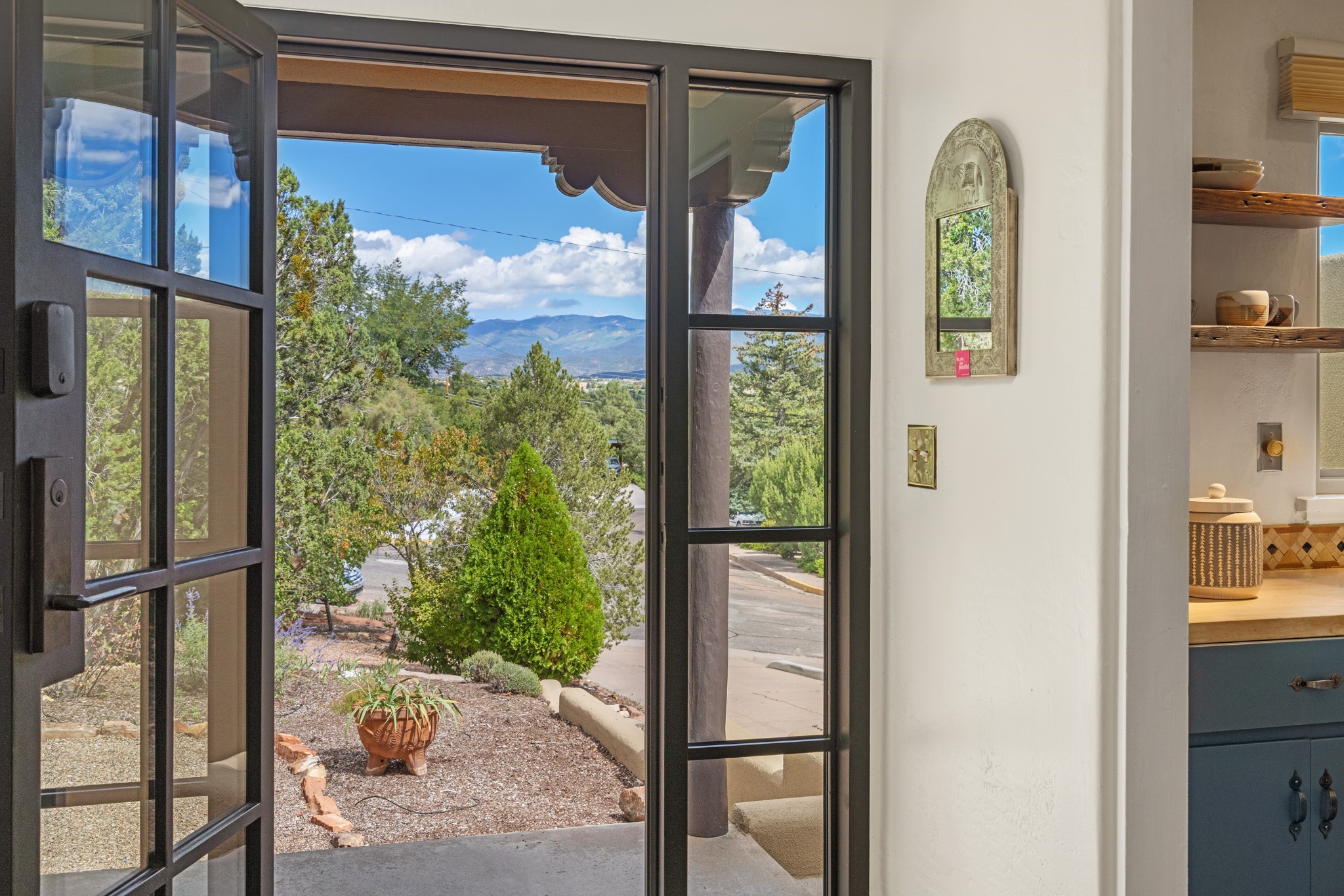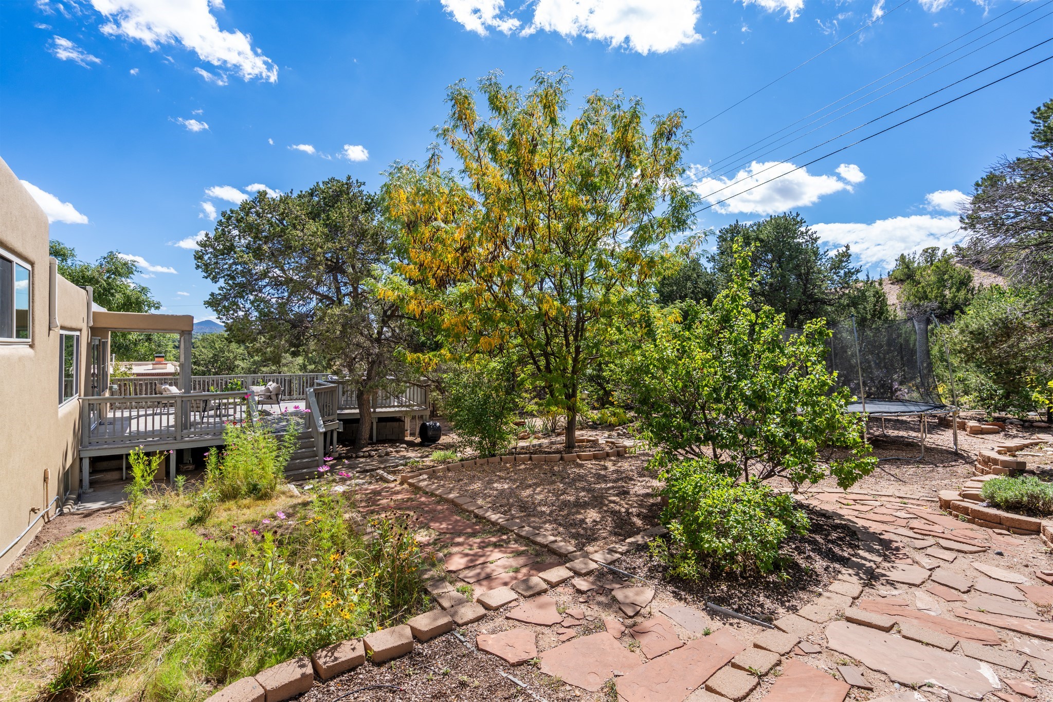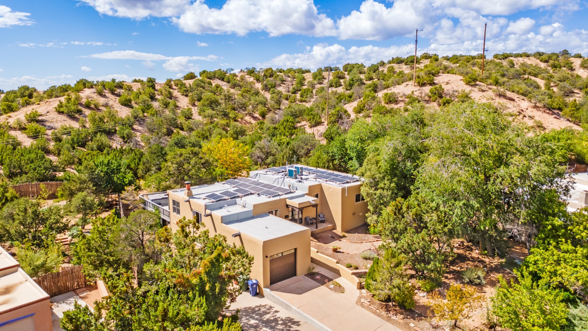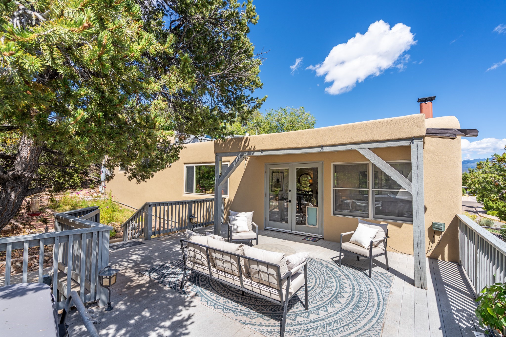 Perched above Santa Fe, this updated Casa Solana home frames mountain vistas by day and city lights by night. Backed by the Dog park and set near the end of a low-traffic street, it offers privacy just a mile to the Plaza and an easy commute to Los Alamos. Inside, nearly 1,900 square feet of light-filled living space flows seamlessly across hardwood floors with a bright, open plan. The main level includes four bedrooms and two baths, with a primary suite featuring a custom closet. French doors open to a spacious deck designed for entertaining, stargazing, or soaking in a hot tub. The finished 700+ square foot basement is a rare find in Santa Fe, offering flexible space for a media room, guest suite, gym, or studio. It connects directly to the finished, heated garage--ideal for a workshop, flex space, or even a potential casita.The quarter-acre, fully fenced backyard features a private gate that opens onto a secluded trail into one of Santa Fe's largest dog-friendly parks. Generous off-street parking provides room for multiple vehicles--bring your RV. Recent upgrades include: New 8.8 kW solar system, Mini-splits in every room, 4-year-old roof, On-demand hot water heater, High-efficiency heating system and New Stucco. This Casa Solana property offers space, flexibility, and modern updates in one of Santa Fe's most established neighborhoods.