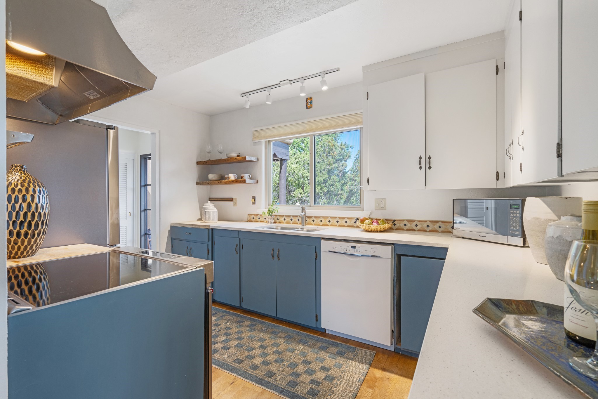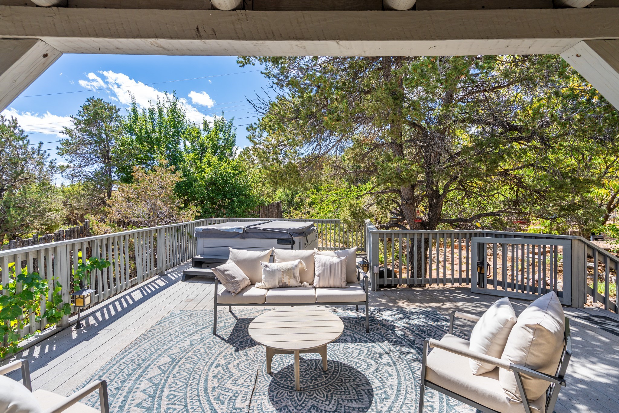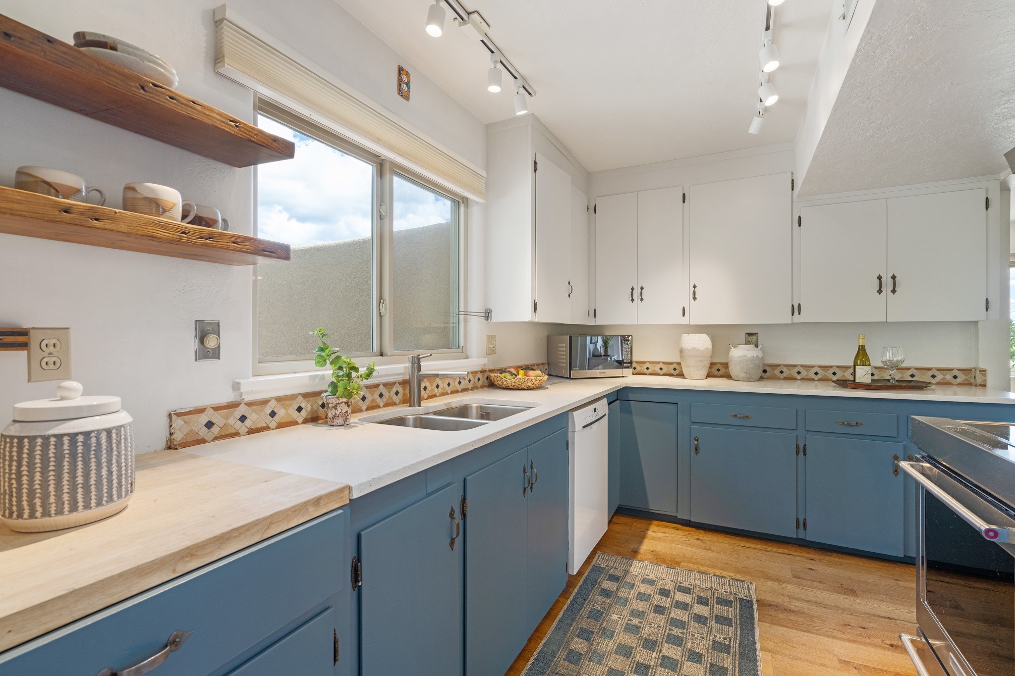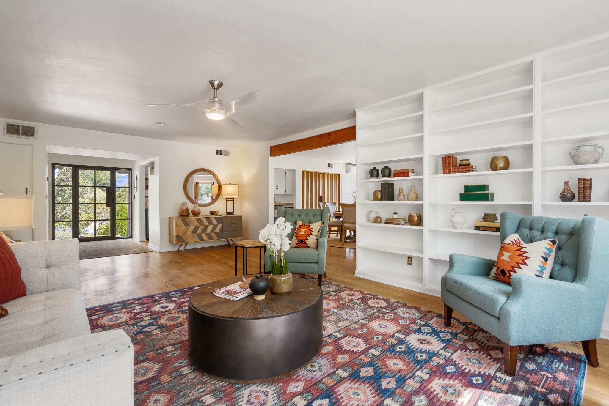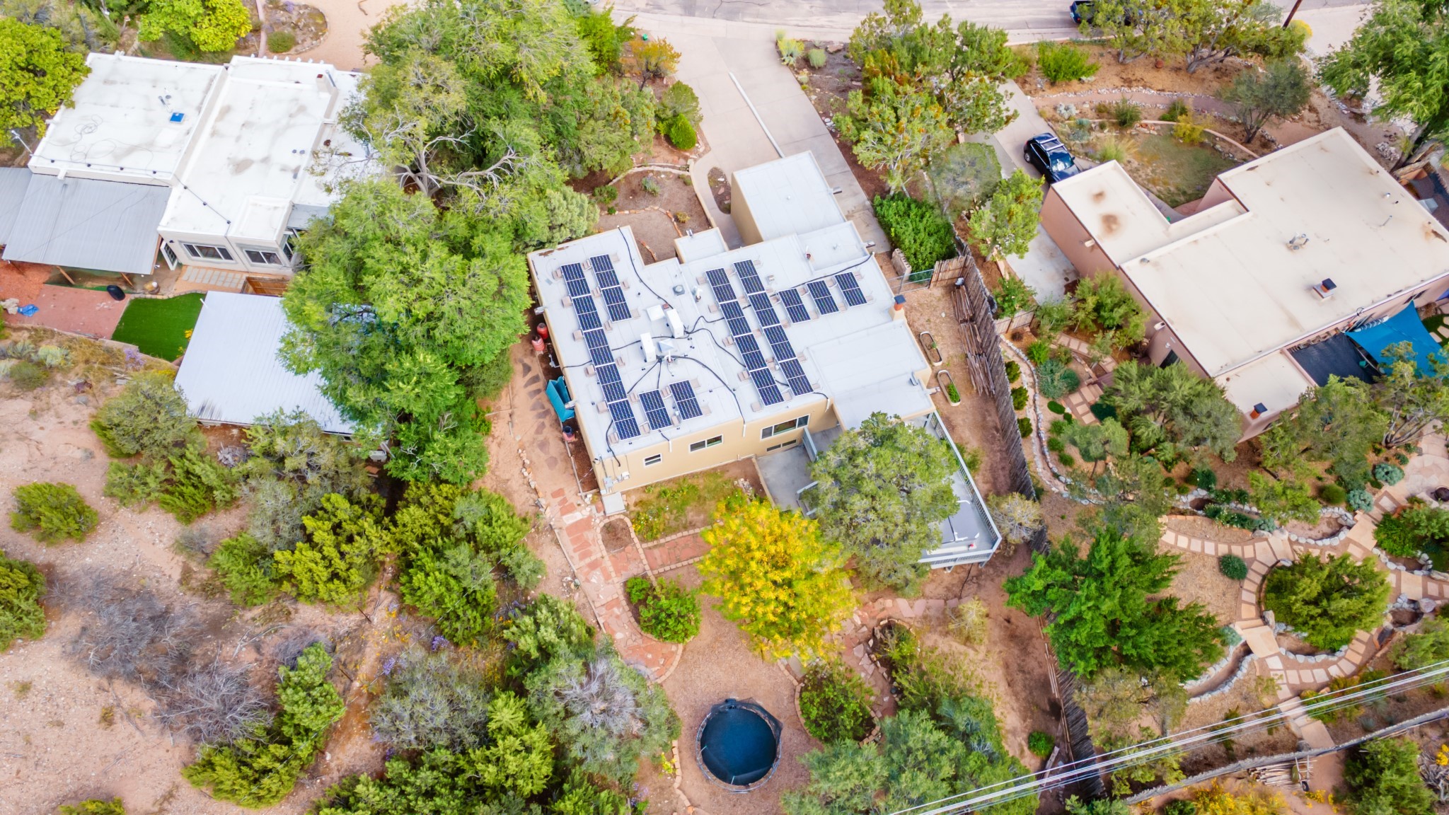 Perched above Santa Fe, this updated Casa Solana home frames mountain vistas by day and city lights by night. Backed by the Dog park and set near the end of a low-traffic street, it offers privacy just a mile to the Plaza and an easy commute to Los Alamos. Inside, nearly 1,900 square feet of light-filled living space flows seamlessly across hardwood floors with a bright, open plan. The main level includes four bedrooms and two baths, with a primary suite featuring a custom closet. French doors open to a spacious deck designed for entertaining, stargazing, or soaking in a hot tub. The finished 700+ square foot basement is a rare find in Santa Fe, offering flexible space for a media room, guest suite, gym, or studio. It connects directly to the finished, heated garage--ideal for a workshop, flex space, or even a potential casita.The quarter-acre, fully fenced backyard features a private gate that opens onto a secluded trail into one of Santa Fe's largest dog-friendly parks. Generous off-street parking provides room for multiple vehicles--bring your RV. Recent upgrades include: New 8.8 kW solar system, Mini-splits in every room, 4-year-old roof, On-demand hot water heater, High-efficiency heating system and New Stucco. This Casa Solana property offers space, flexibility, and modern updates in one of Santa Fe's most established neighborhoods.