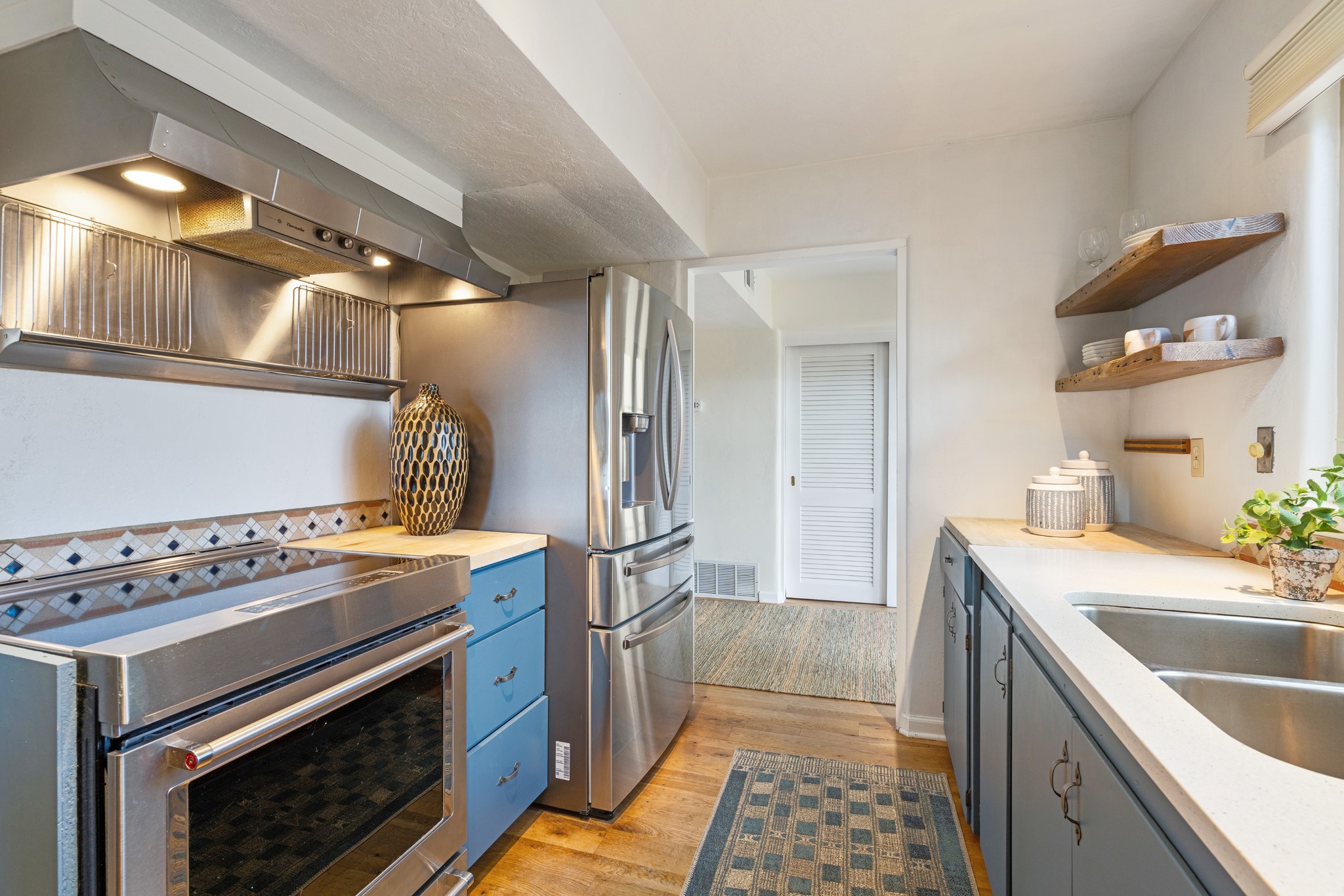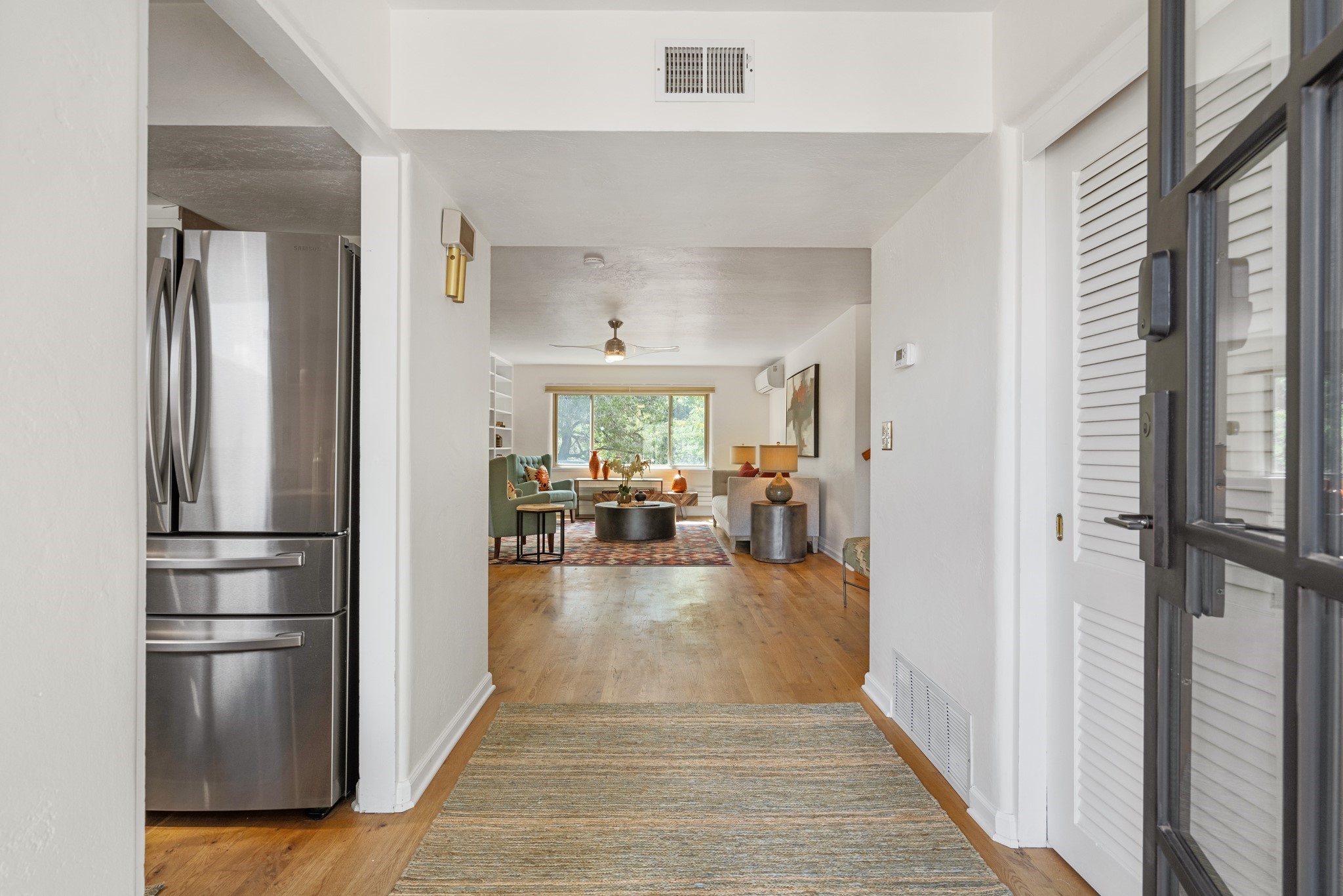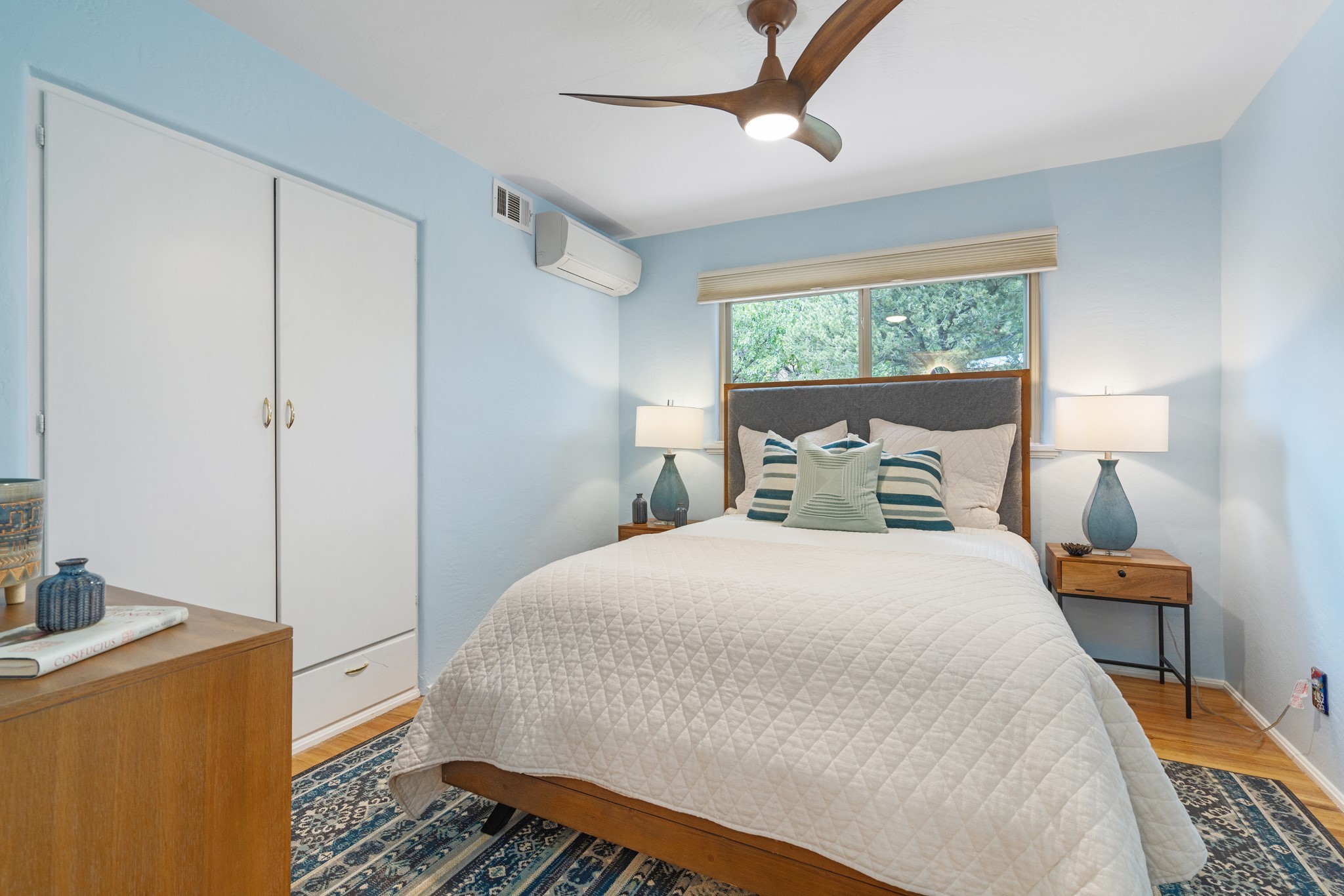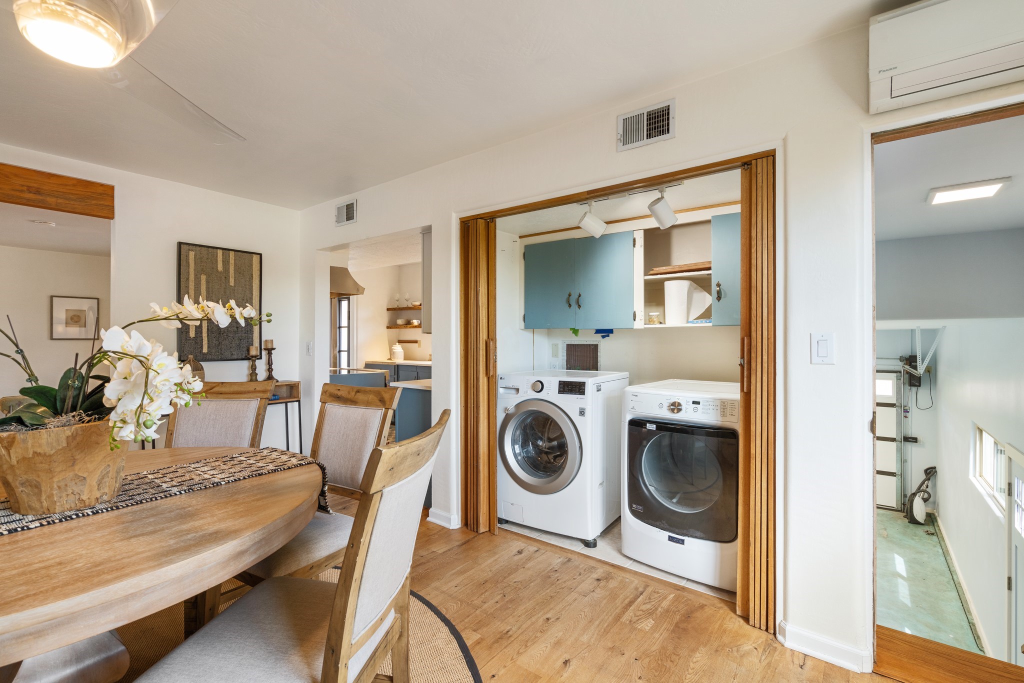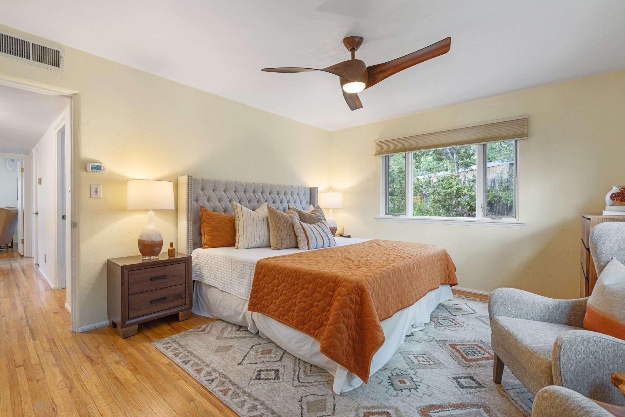 Perched above Santa Fe, this updated Casa Solana home frames mountain vistas by day and city lights by night. Backed by the Dog park and set near the end of a low-traffic street, it offers privacy just a mile to the Plaza and an easy commute to Los Alamos. Inside, nearly 1,900 square feet of light-filled living space flows seamlessly across hardwood floors with a bright, open plan. The main level includes four bedrooms and two baths, with a primary suite featuring a custom closet. French doors open to a spacious deck designed for entertaining, stargazing, or soaking in a hot tub. The finished 700+ square foot basement is a rare find in Santa Fe, offering flexible space for a media room, guest suite, gym, or studio. It connects directly to the finished, heated garage--ideal for a workshop, flex space, or even a potential casita.The quarter-acre, fully fenced backyard features a private gate that opens onto a secluded trail into one of Santa Fe's largest dog-friendly parks. Generous off-street parking provides room for multiple vehicles--bring your RV. Recent upgrades include: New 8.8 kW solar system, Mini-splits in every room, 4-year-old roof, On-demand hot water heater, High-efficiency heating system and New Stucco. This Casa Solana property offers space, flexibility, and modern updates in one of Santa Fe's most established neighborhoods.