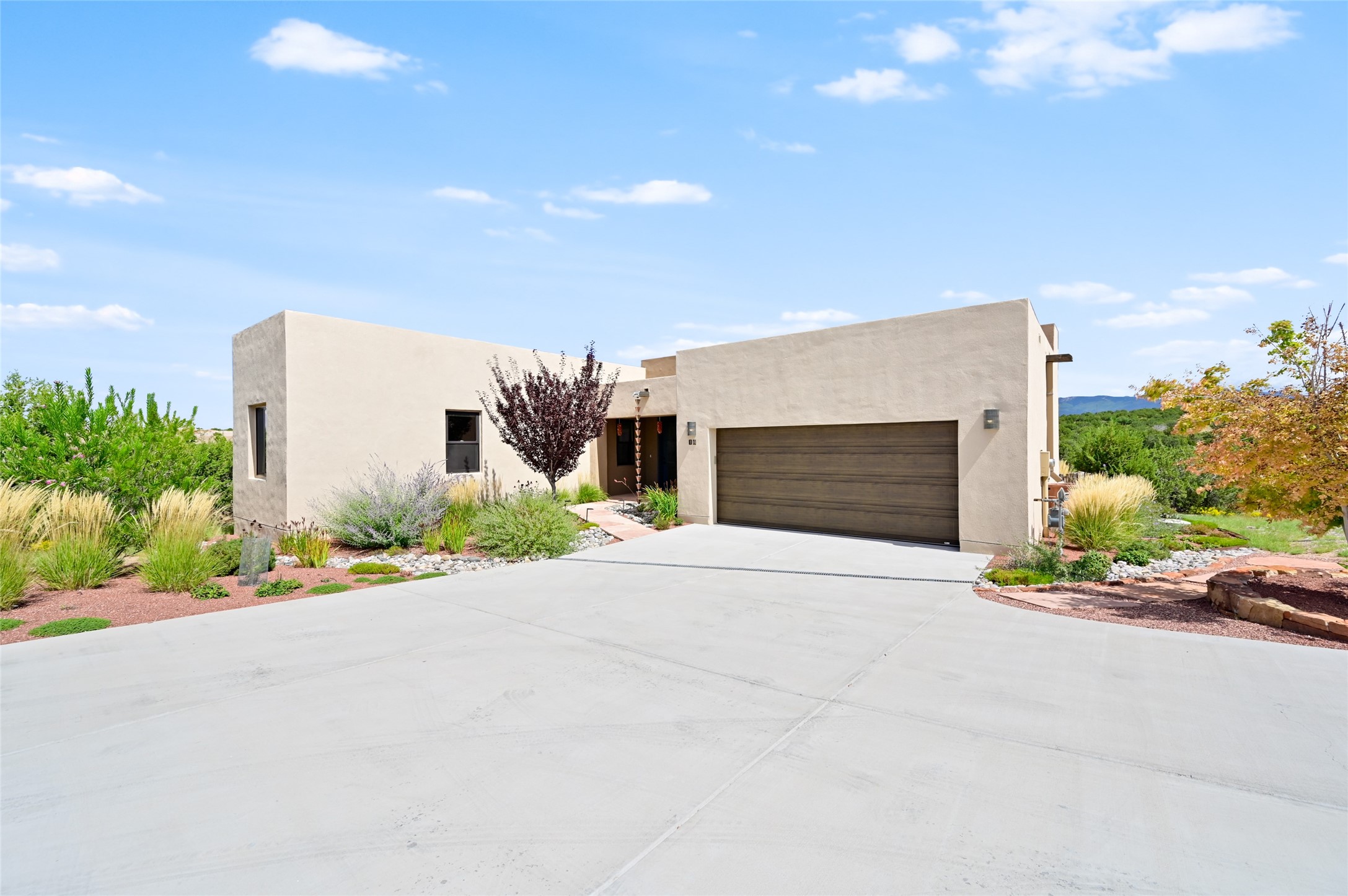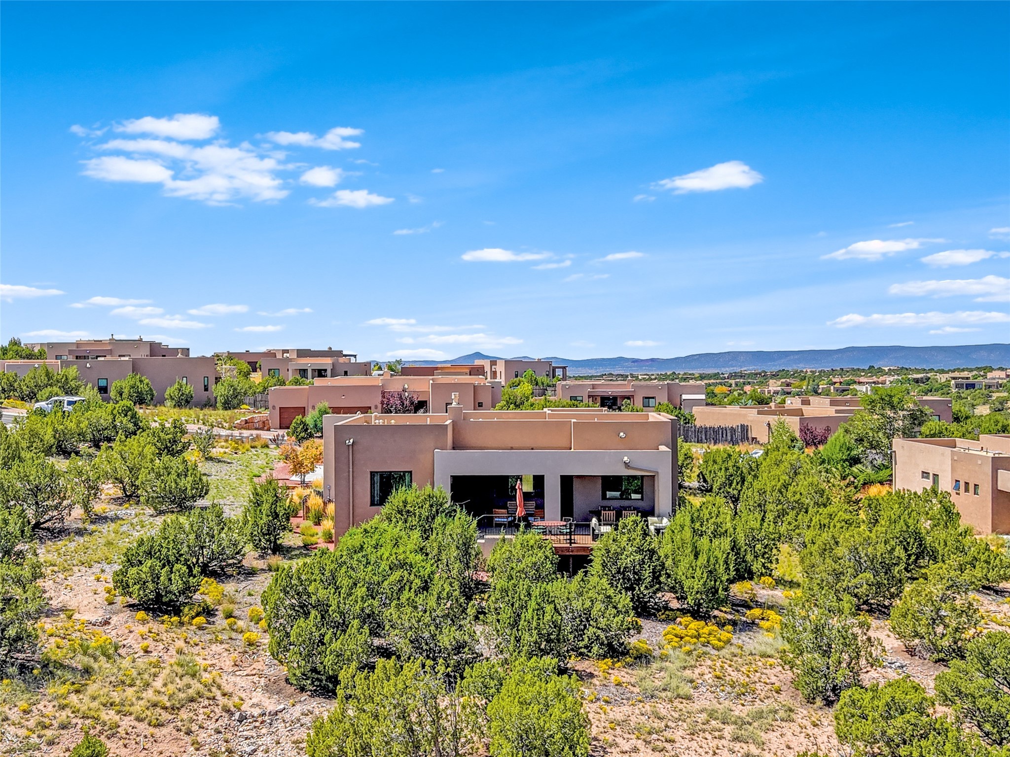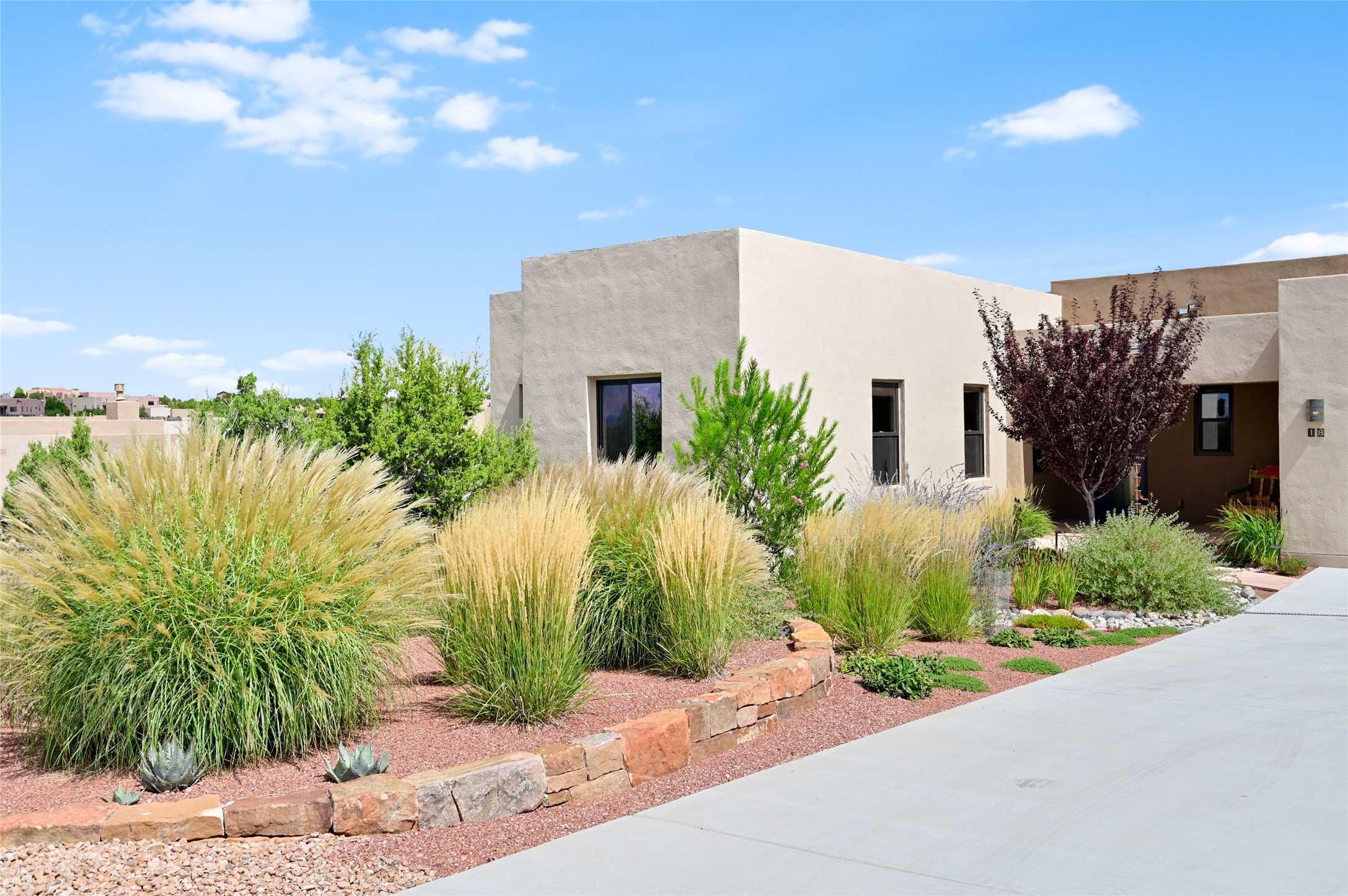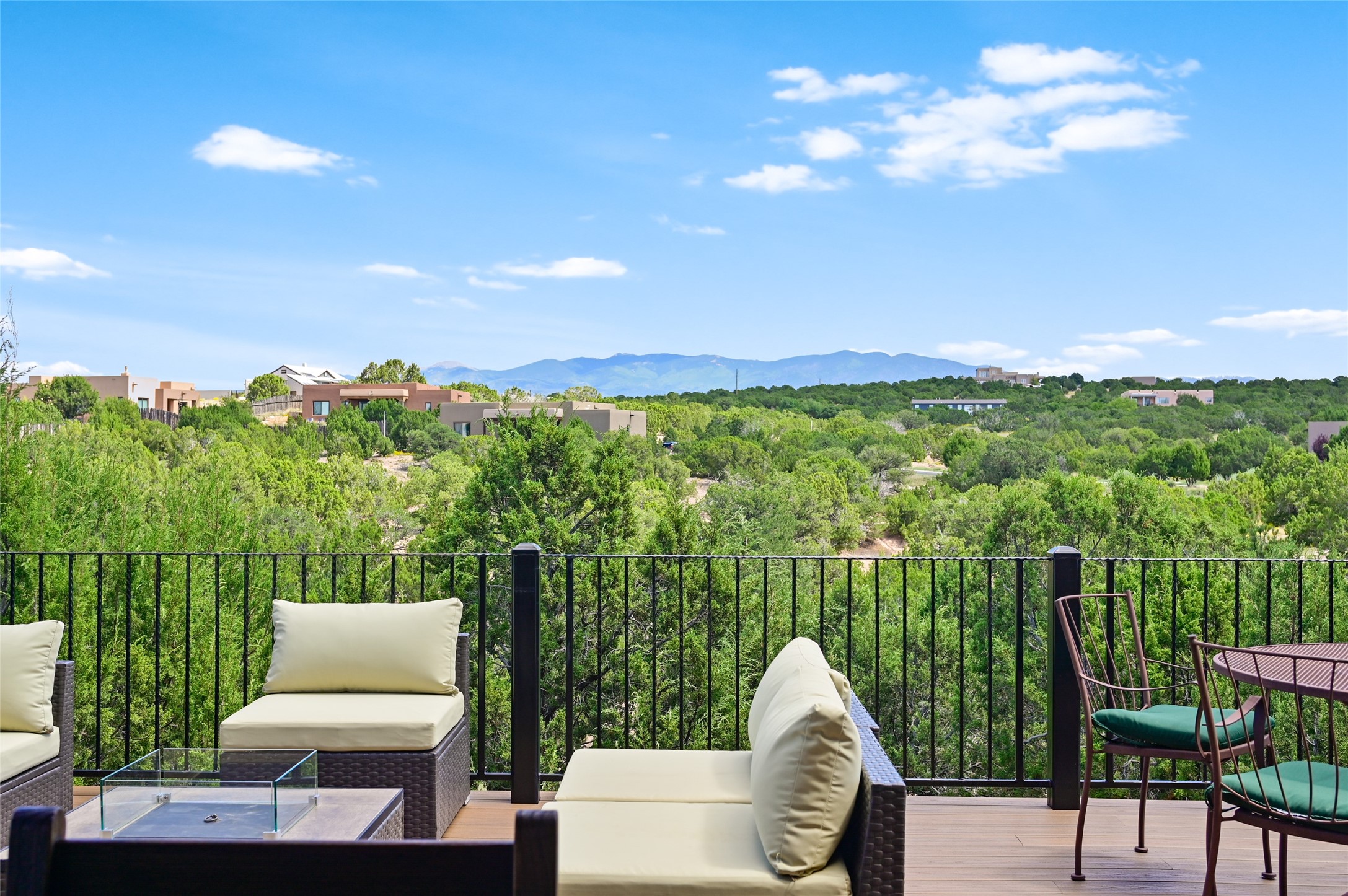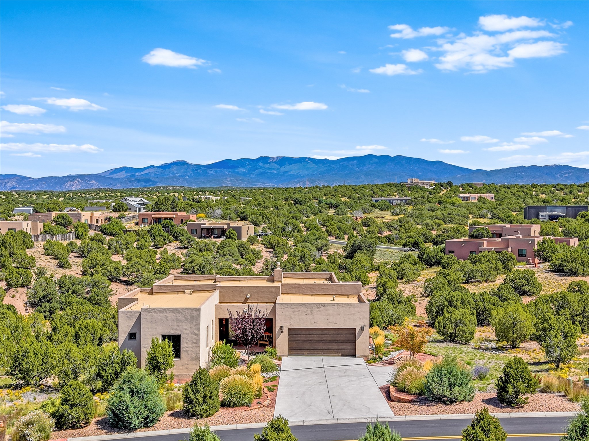 Located in the sought-after Tessera neighborhood, this stunning contemporary home blends modern design, functionality, and sweeping views of the Sangre de Cristo Mountains. Built in 2021, the residence offers 3 bedrooms, 2.5 baths, and 2,165 square feet of stylish living on a beautifully landscaped .36-acre lot.Created with both comfort and entertaining in mind, the home showcases all-tile flooring, a spacious living room with a gas fireplace, and a covered portal with an expanded deck and sleek metal railing that can easily host gatherings of 20 or more. Expansive picture windows capture the breathtaking mountain views, bringing the beauty of Santa Fe indoors.The chef's kitchen is appointed with stainless steel Caf appliances, including a six-burner gas stove with Bluetooth capabilities, refrigerator, dishwasher, microwave/convection oven with side wall venting, and a wine refrigerator. Stone countertops, abundant cabinetry with deep bin drawers, and above- and below-counter lighting strike the perfect balance of elegance and practicality.The generous primary suite opens directly to the portal and features a spa-like walk-in shower and excellent closet space. Additional highlights include lush professional landscaping, a flagstone walk-up, concrete drive with side parking, a striking glass front door, whisper fans and Bali shades throughout, and an oversized washer/dryer on raised pedestals with plumbing in place for a utility sink.With quick access to Highway 599, downtown Santa Fe, the airport, and Los Alamos, this home offers a rare combination of convenience, modern style, and extraordinary mountain views in one of the city's most desirable communities.