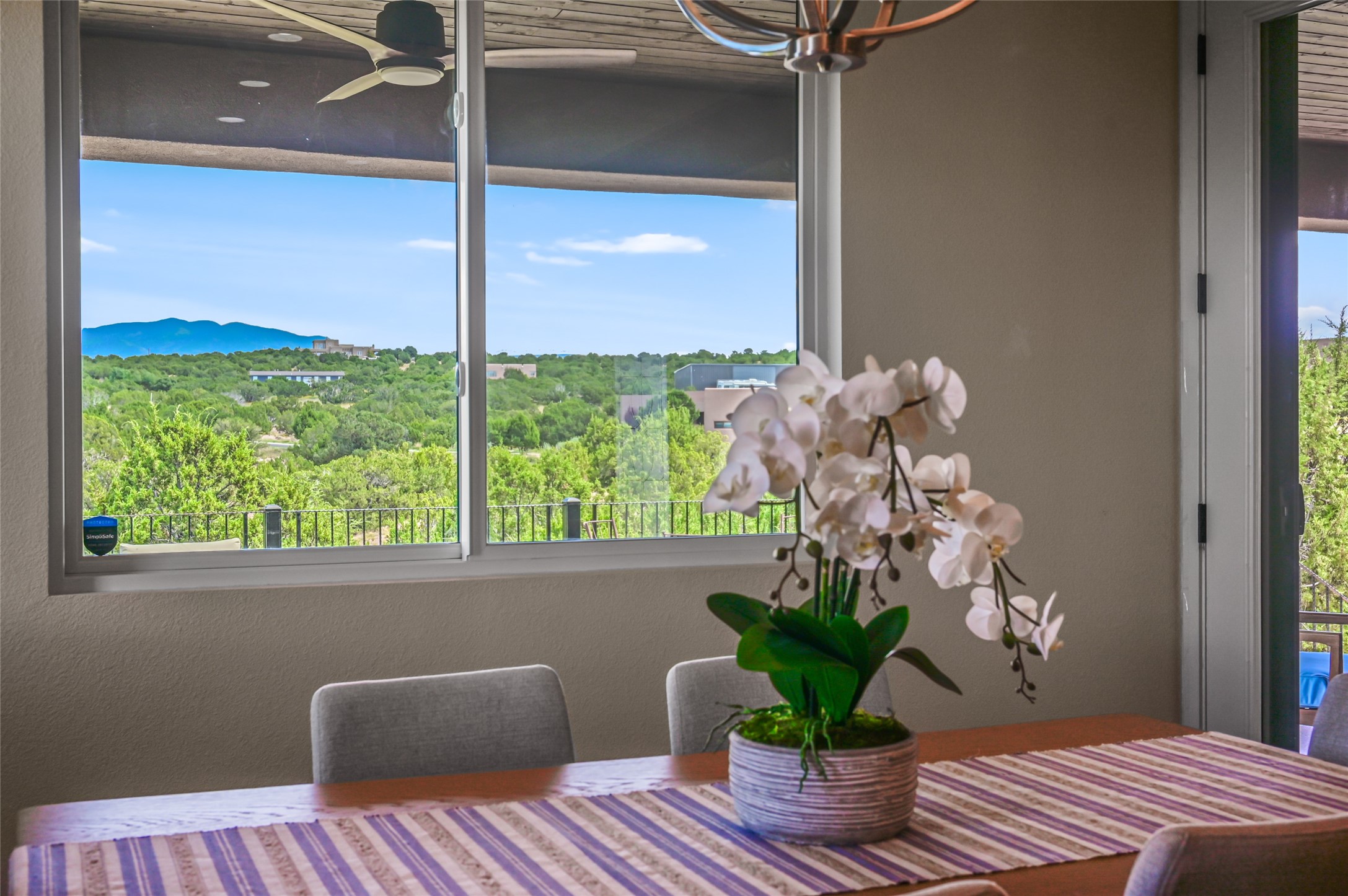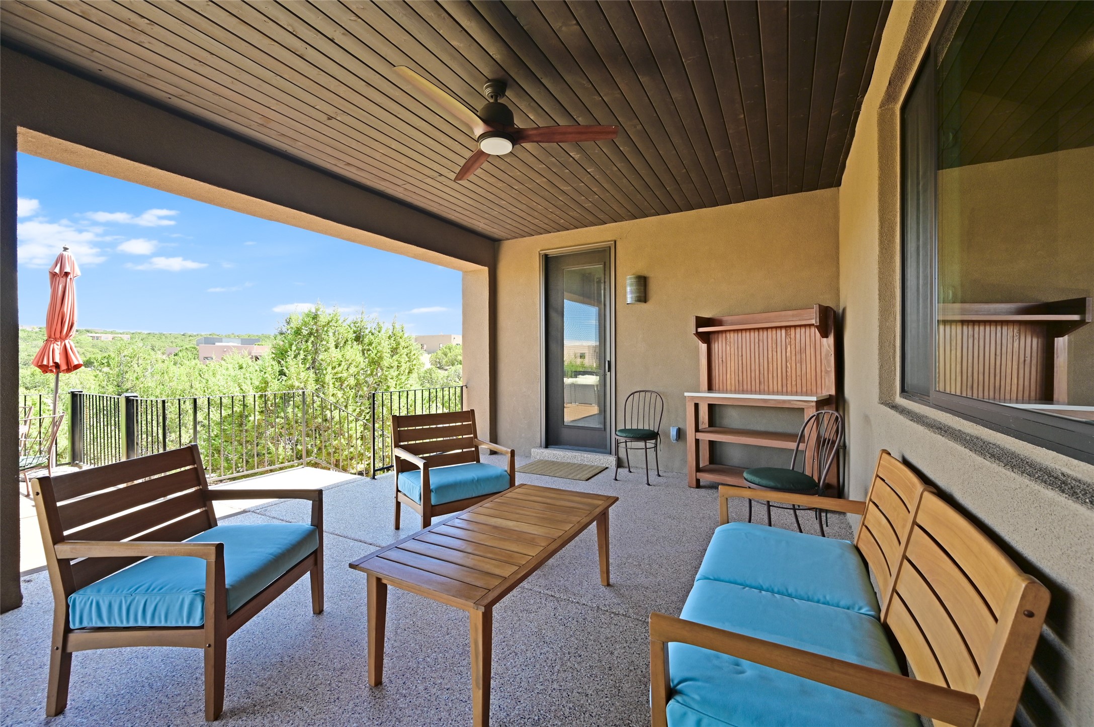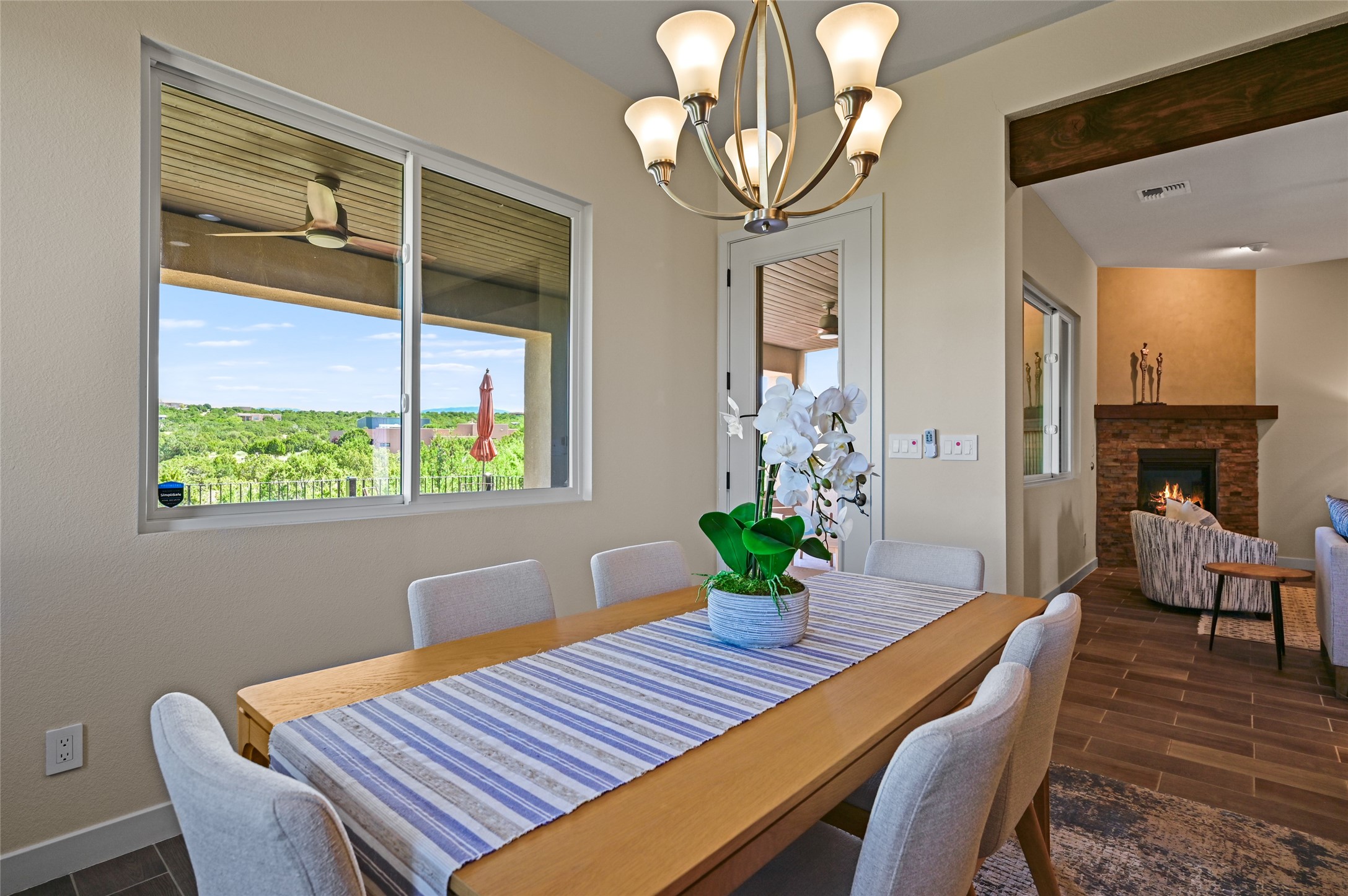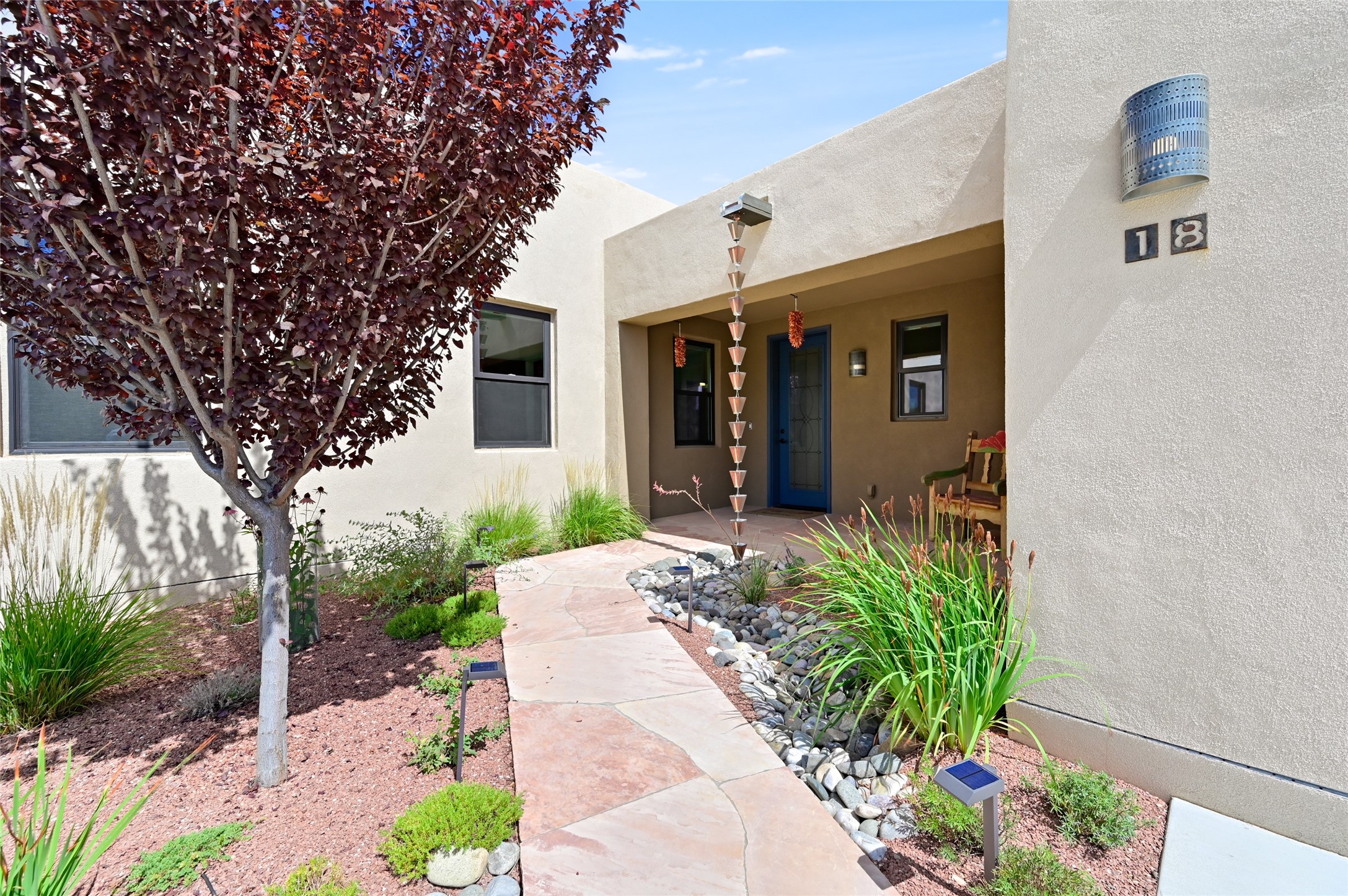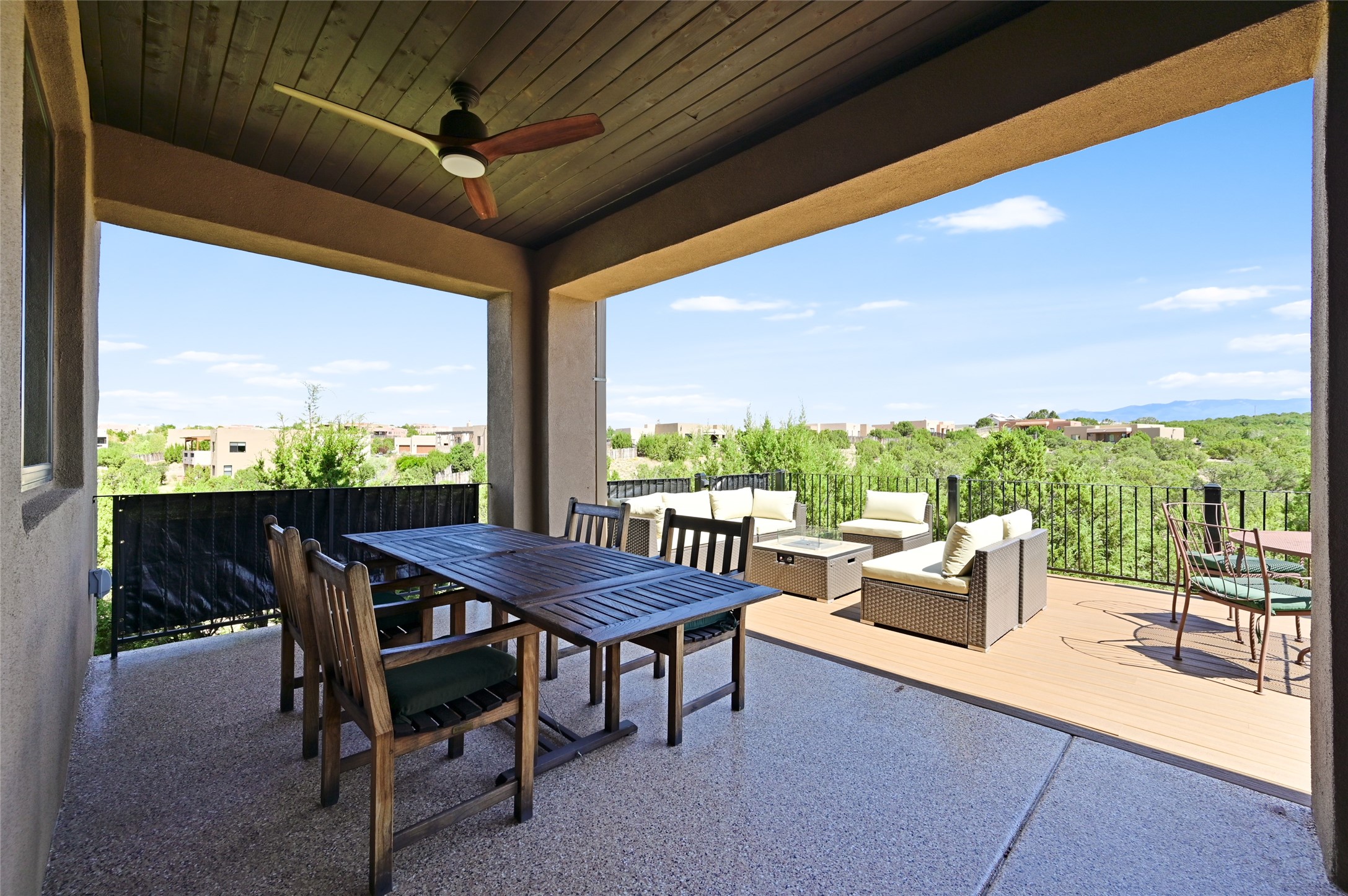 Located in the sought-after Tessera neighborhood, this stunning contemporary home blends modern design, functionality, and sweeping views of the Sangre de Cristo Mountains. Built in 2021, the residence offers 3 bedrooms, 2.5 baths, and 2,165 square feet of stylish living on a beautifully landscaped .36-acre lot.Created with both comfort and entertaining in mind, the home showcases all-tile flooring, a spacious living room with a gas fireplace, and a covered portal with an expanded deck and sleek metal railing that can easily host gatherings of 20 or more. Expansive picture windows capture the breathtaking mountain views, bringing the beauty of Santa Fe indoors.The chef's kitchen is appointed with stainless steel Caf appliances, including a six-burner gas stove with Bluetooth capabilities, refrigerator, dishwasher, microwave/convection oven with side wall venting, and a wine refrigerator. Stone countertops, abundant cabinetry with deep bin drawers, and above- and below-counter lighting strike the perfect balance of elegance and practicality.The generous primary suite opens directly to the portal and features a spa-like walk-in shower and excellent closet space. Additional highlights include lush professional landscaping, a flagstone walk-up, concrete drive with side parking, a striking glass front door, whisper fans and Bali shades throughout, and an oversized washer/dryer on raised pedestals with plumbing in place for a utility sink.With quick access to Highway 599, downtown Santa Fe, the airport, and Los Alamos, this home offers a rare combination of convenience, modern style, and extraordinary mountain views in one of the city's most desirable communities.
