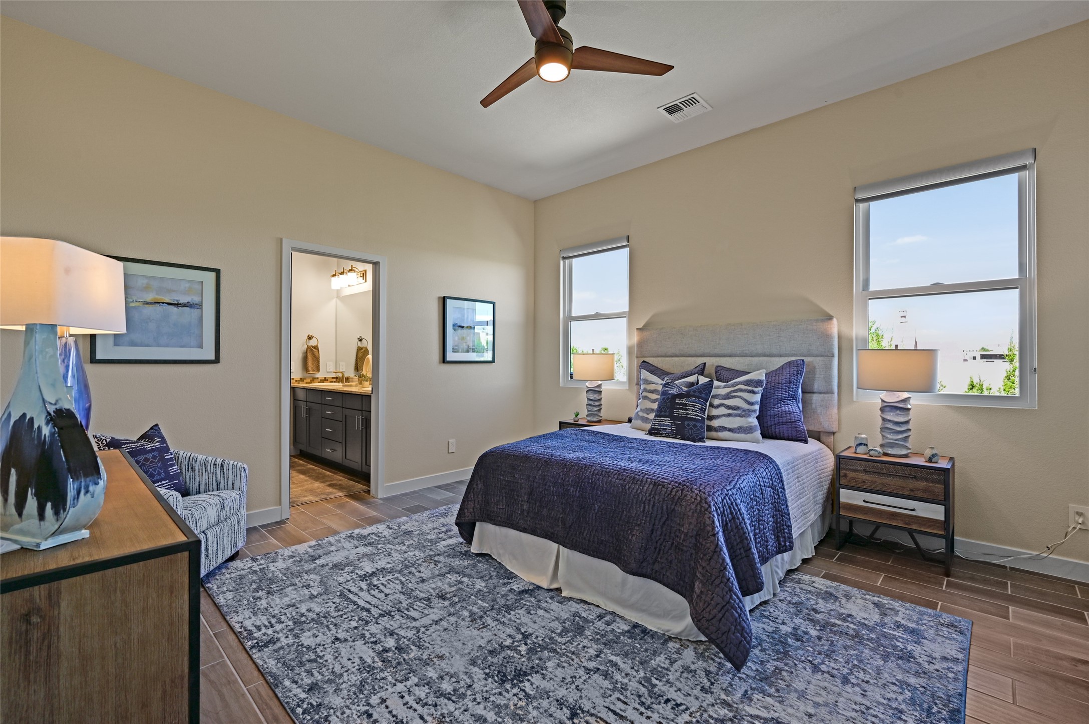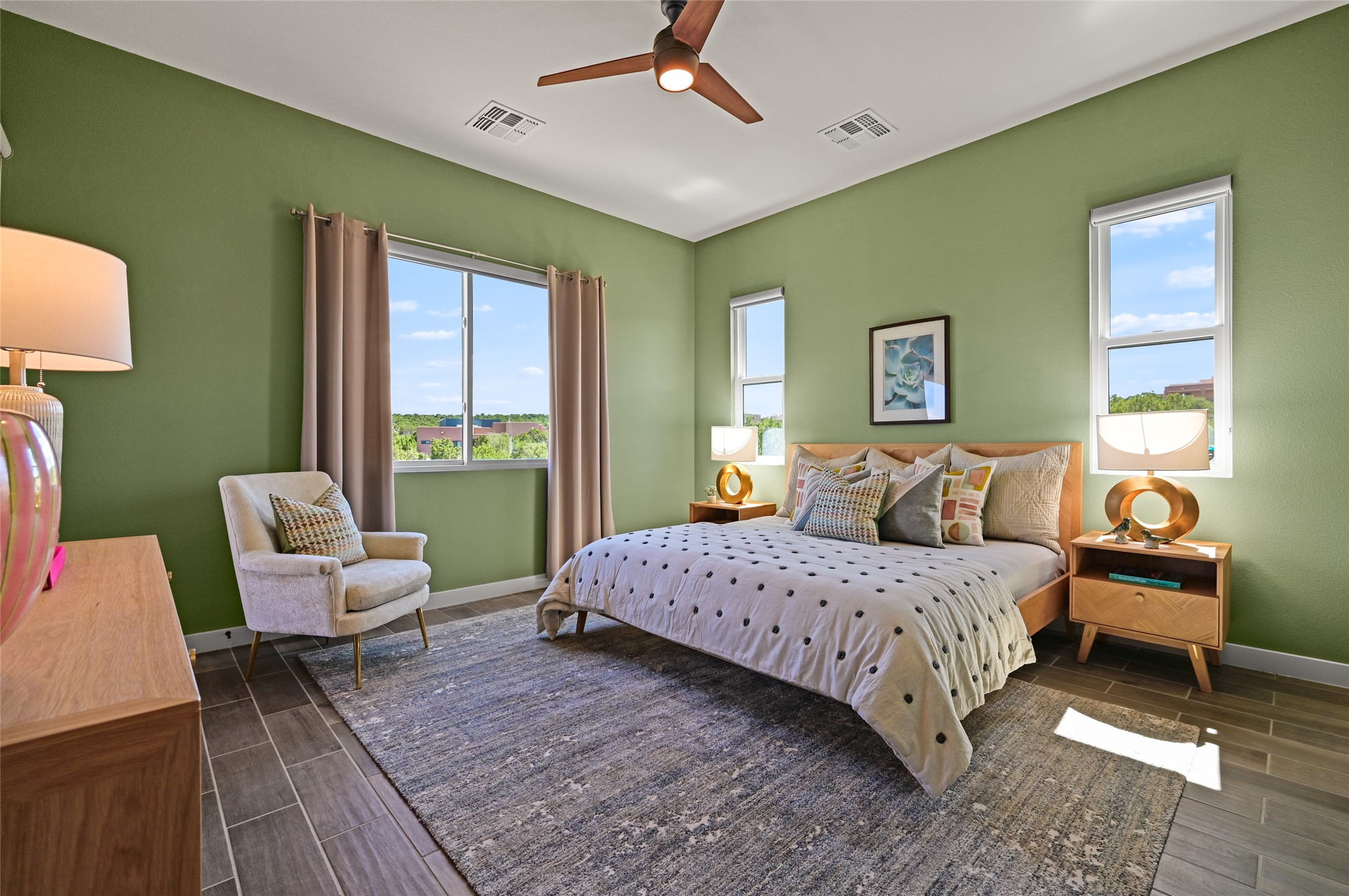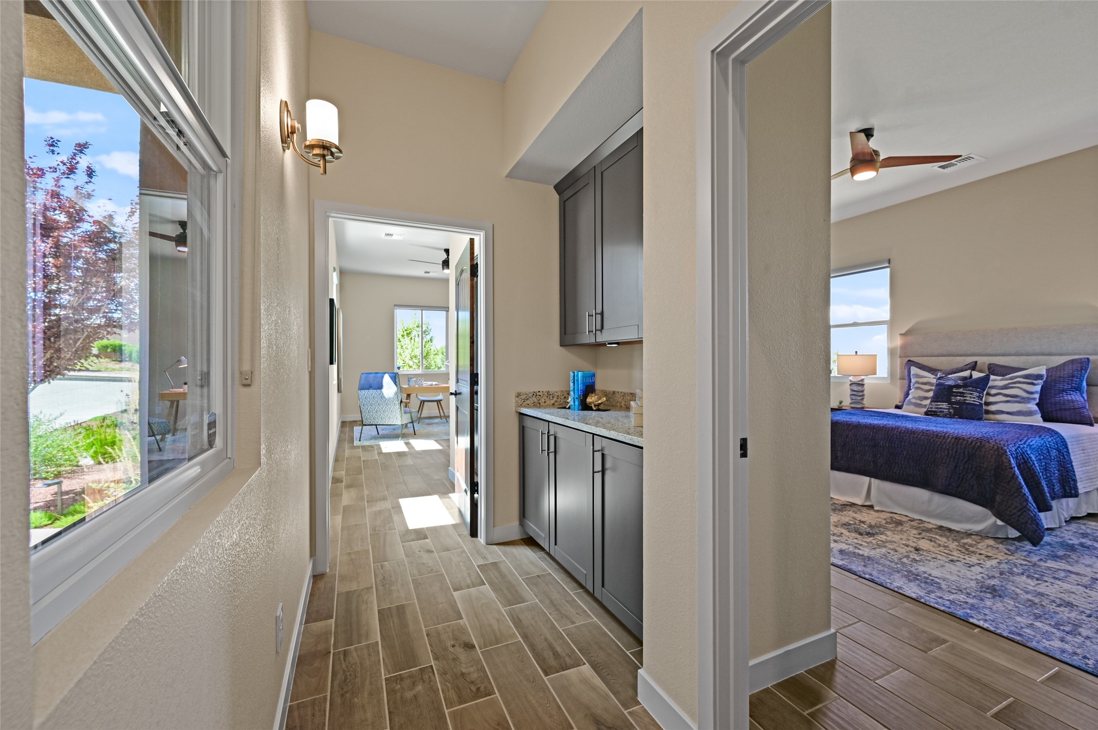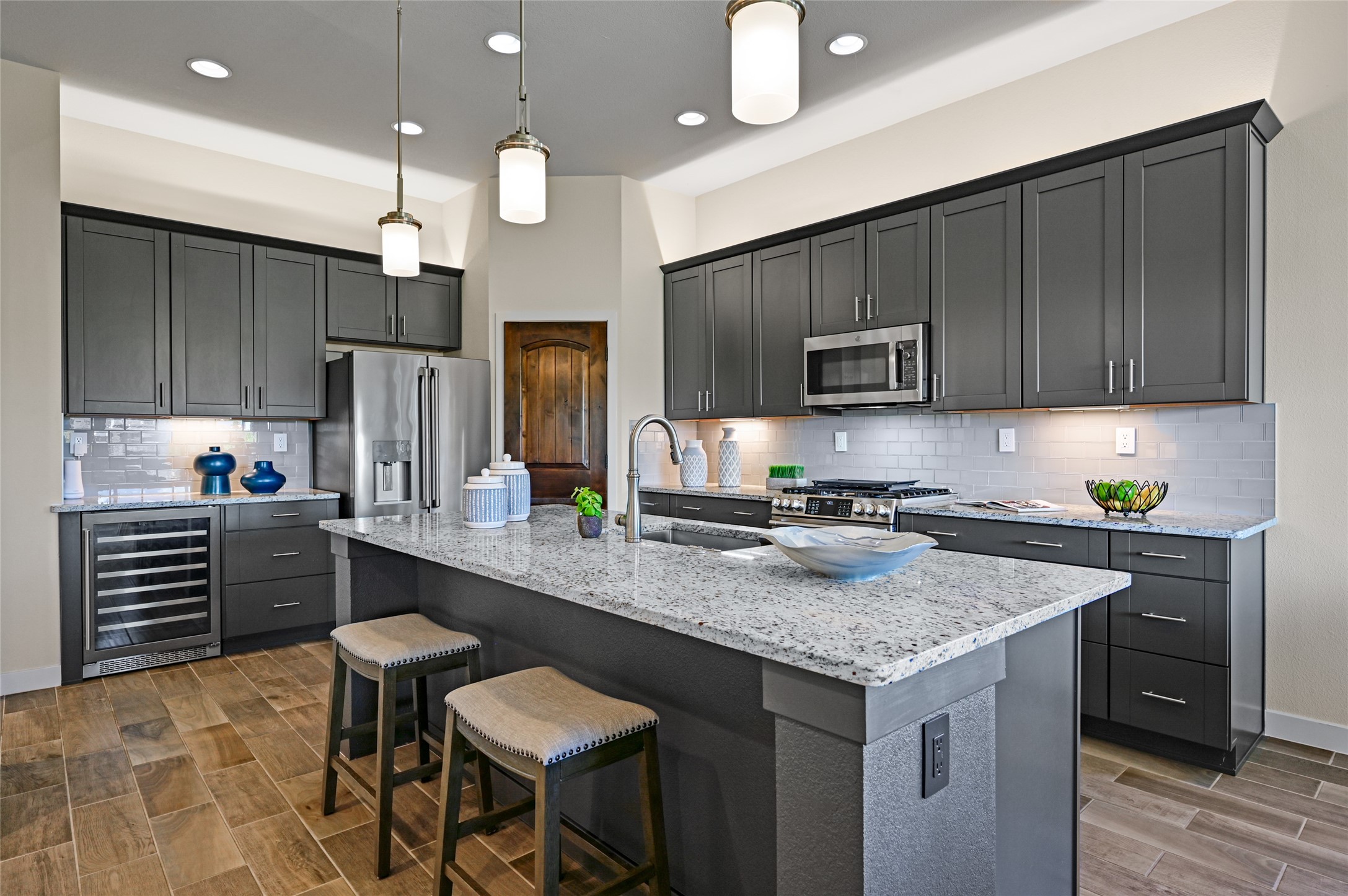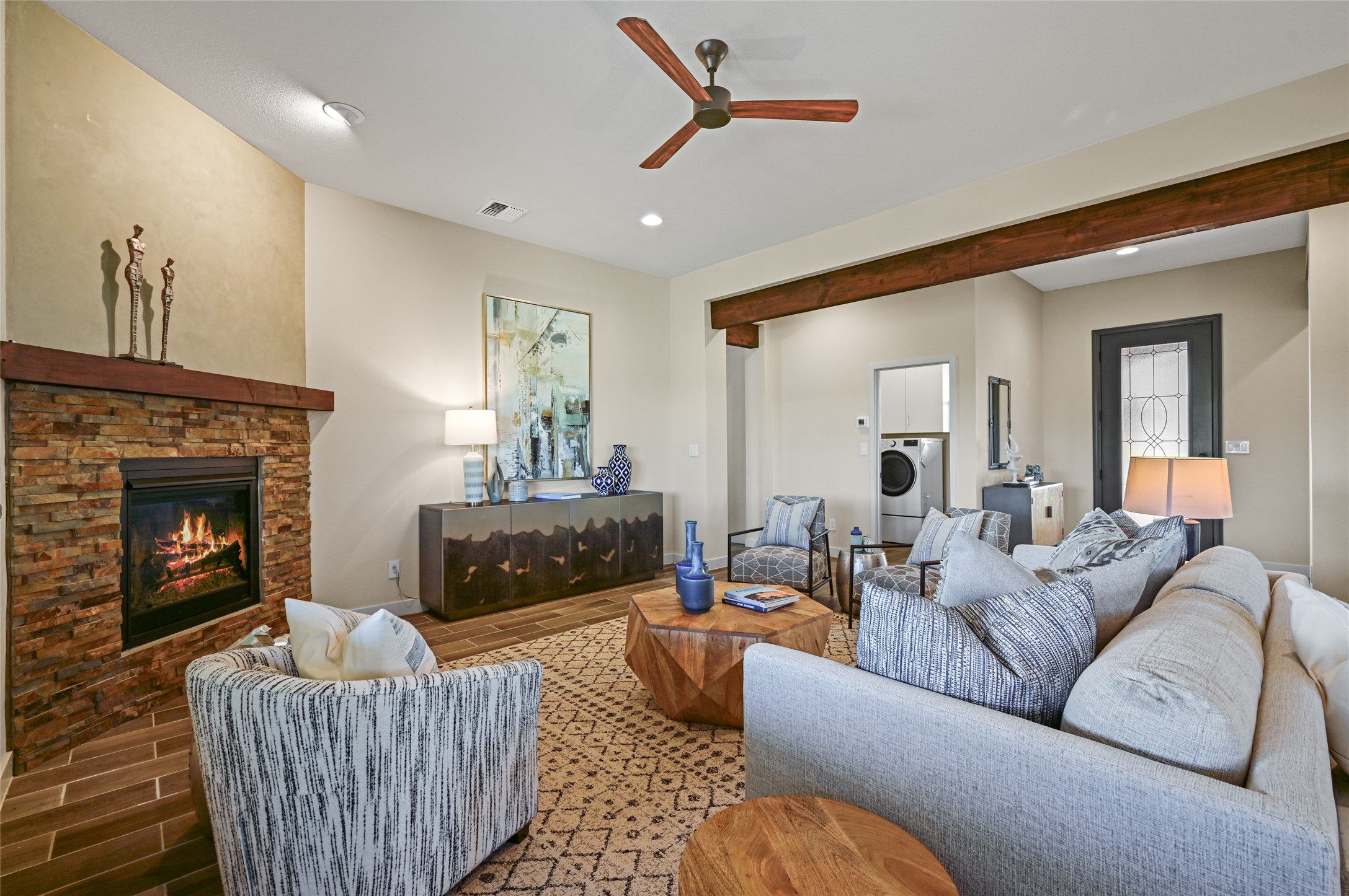 Located in the sought-after Tessera neighborhood, this stunning contemporary home blends modern design, functionality, and sweeping views of the Sangre de Cristo Mountains. Built in 2021, the residence offers 3 bedrooms, 2.5 baths, and 2,165 square feet of stylish living on a beautifully landscaped .36-acre lot.Created with both comfort and entertaining in mind, the home showcases all-tile flooring, a spacious living room with a gas fireplace, and a covered portal with an expanded deck and sleek metal railing that can easily host gatherings of 20 or more. Expansive picture windows capture the breathtaking mountain views, bringing the beauty of Santa Fe indoors.The chef's kitchen is appointed with stainless steel Caf appliances, including a six-burner gas stove with Bluetooth capabilities, refrigerator, dishwasher, microwave/convection oven with side wall venting, and a wine refrigerator. Stone countertops, abundant cabinetry with deep bin drawers, and above- and below-counter lighting strike the perfect balance of elegance and practicality.The generous primary suite opens directly to the portal and features a spa-like walk-in shower and excellent closet space. Additional highlights include lush professional landscaping, a flagstone walk-up, concrete drive with side parking, a striking glass front door, whisper fans and Bali shades throughout, and an oversized washer/dryer on raised pedestals with plumbing in place for a utility sink.With quick access to Highway 599, downtown Santa Fe, the airport, and Los Alamos, this home offers a rare combination of convenience, modern style, and extraordinary mountain views in one of the city's most desirable communities.