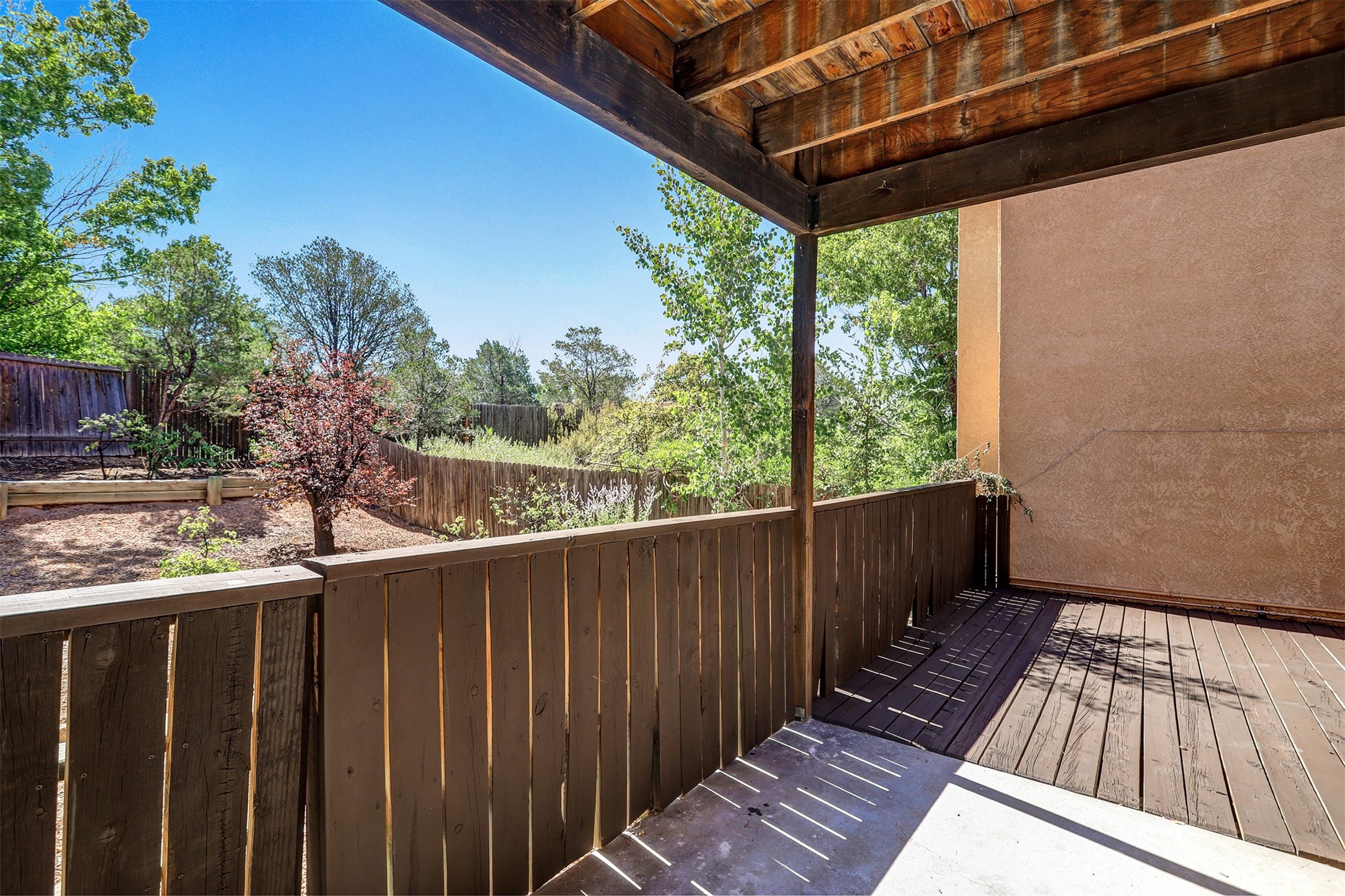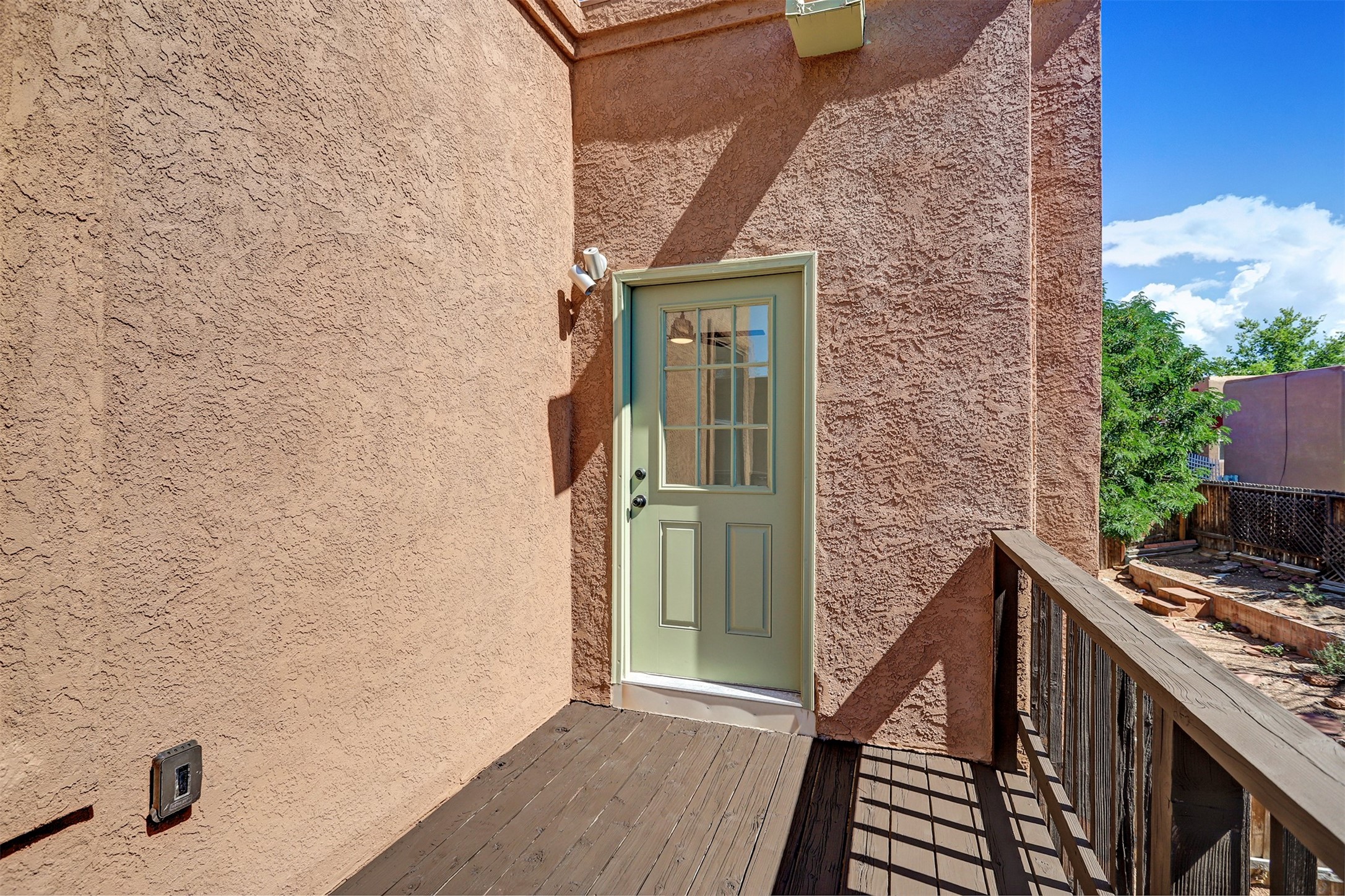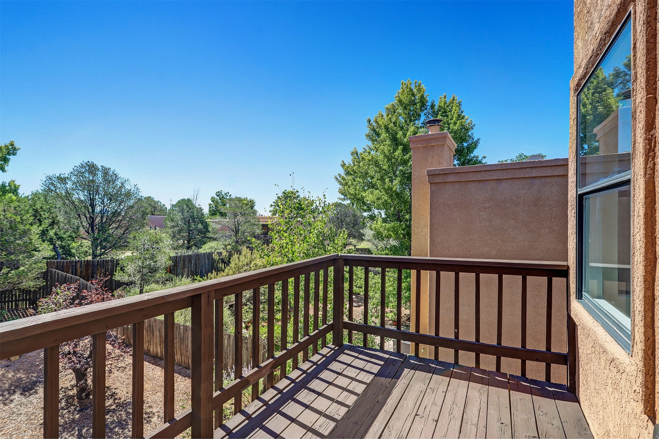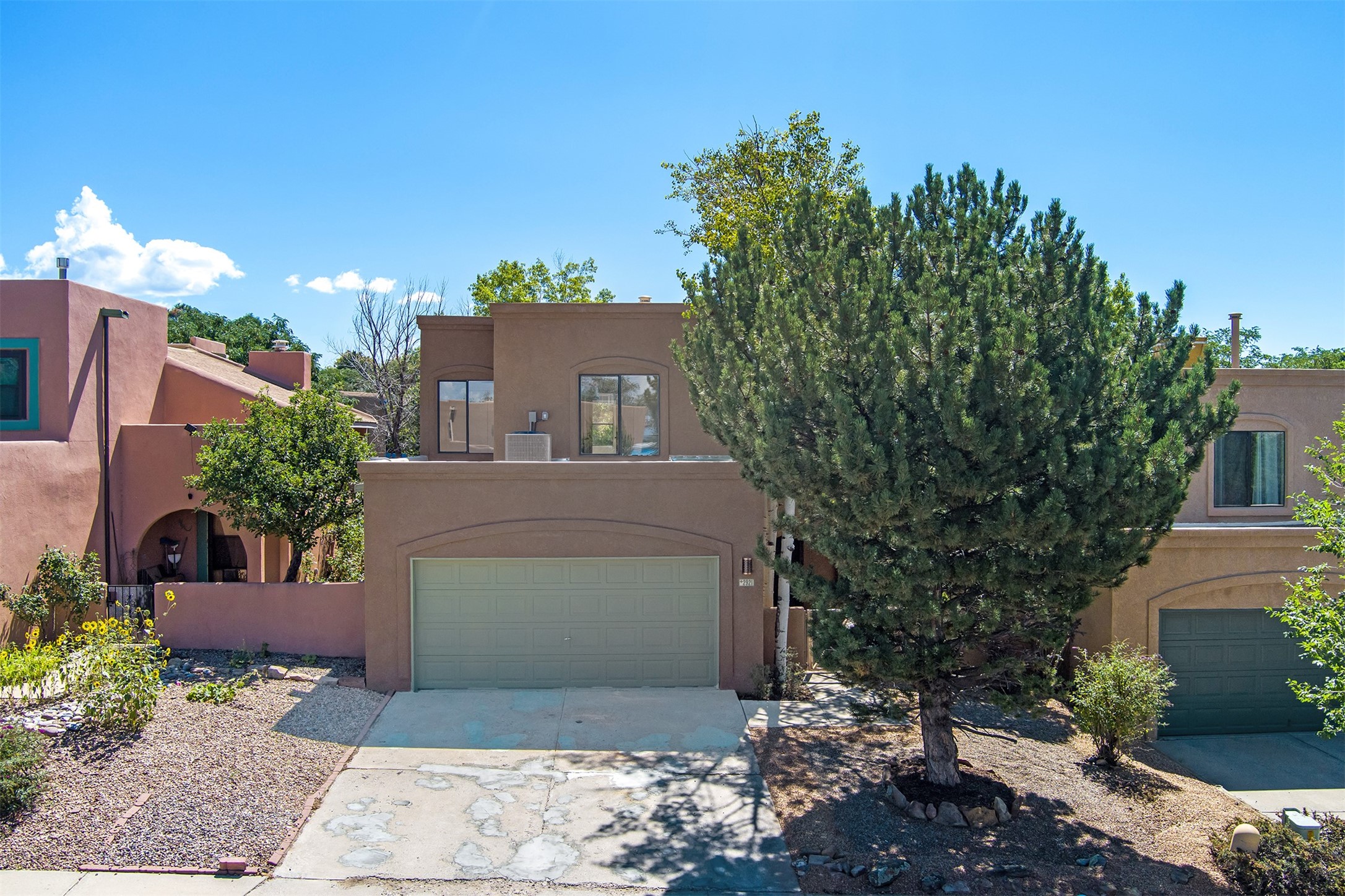 Welcome to this stunning two-story home, perfectly positioned in the serene and sought-after Via Caballero neighborhood. Nestled among graceful Pueblo-style homes and quiet, landscaped streets, this property offers a peaceful retreat while keeping you close to city amenities. This spacious 4-bedroom residence has been thoughtfully upgraded inside and out, offering comfort, style, and peace of mind with every detail. From the moment you step inside, you'll feel the warmth and character this home provides. With two living areas, there's plenty of room to relax or entertain. One features a cozy fireplace enhanced by custom tile work, creating an inviting atmosphere to gather. The kitchen serves as the heart of the home, featuring a massive granite island for prep and casual seating, gorgeous new cabinetry, and a custom tile backsplash that adds an artisan's touch. Brand-new stainless steel appliances and designer light fixtures lend both elegance and personality. Updates continue with new tile flooring in key areas and plush carpeting in the bedrooms, blending modern style with cozy comfort. The bedrooms are spacious and inviting--ideal for restful retreats, guest space, or a home office. The primary suite boasts its own nice-sized balcony, perfect for sipping morning coffee or unwinding at sunset. Peace of mind comes standard with major improvements already complete: a new roof, refrigerated air, furnace, and water heater mean you can move right in worry-free. Outside, a generous backyard deck awaits--an ideal spot for summer barbecues, entertaining, or simply soaking up the sunshine. This home embodies thoughtful updates, custom finishes, and modern conveniences in a tranquil neighborhood setting. Known for its peaceful surroundings and proximity to everything Santa Fe has to offer, it's the perfect place to create lasting memories. Move right in and experience comfort, beauty, and charm at its finest.