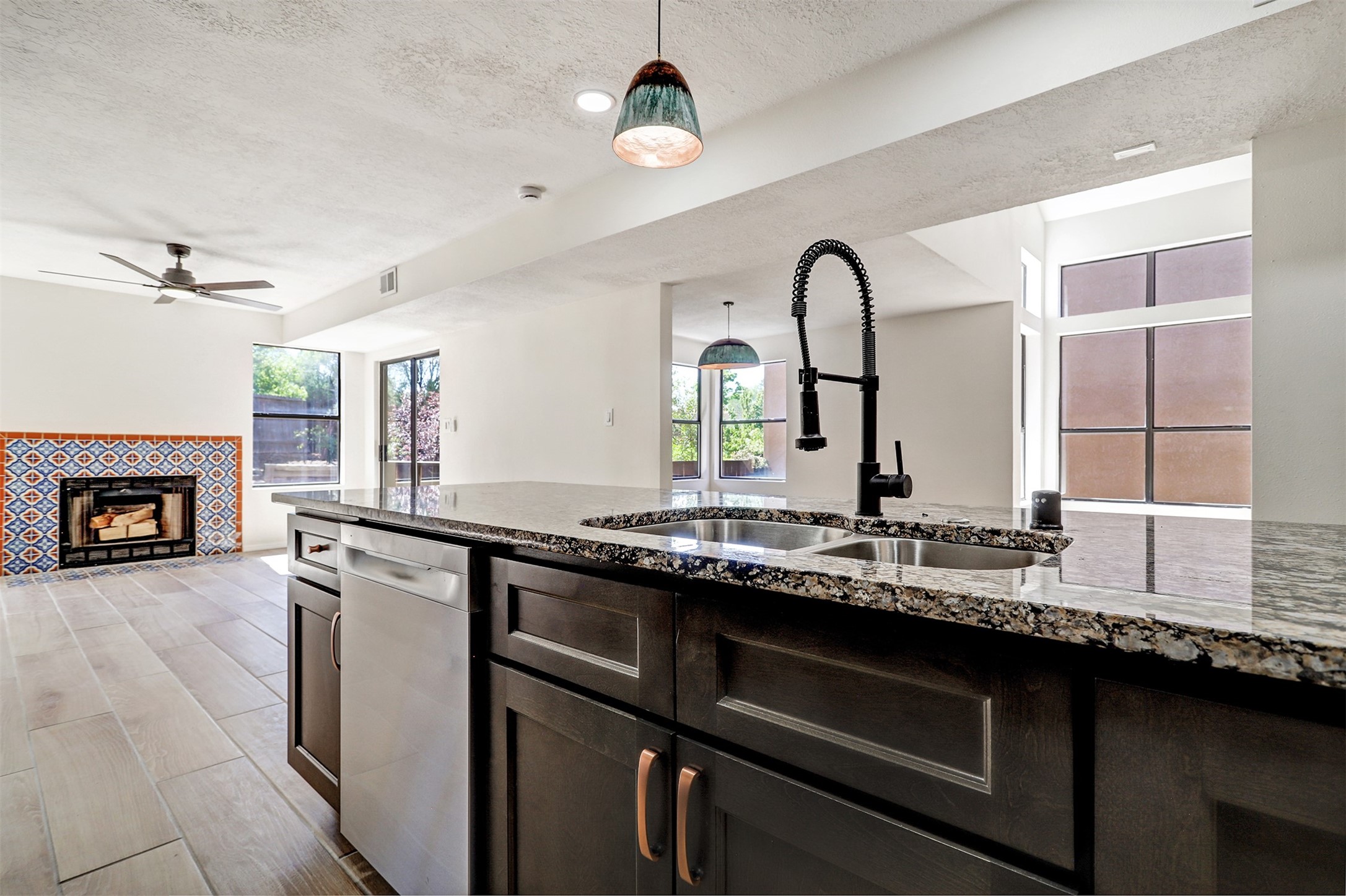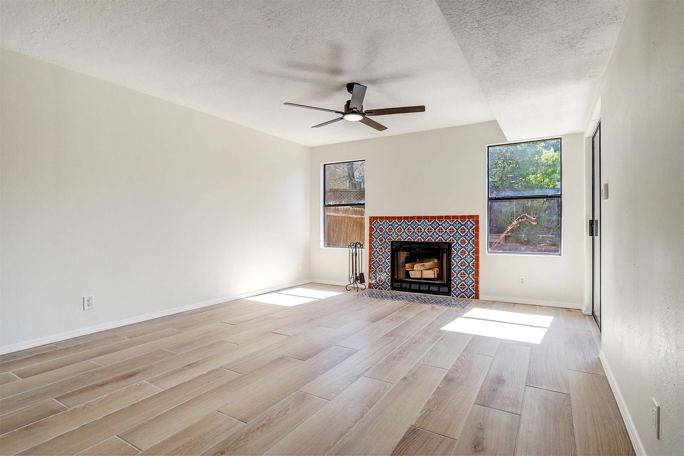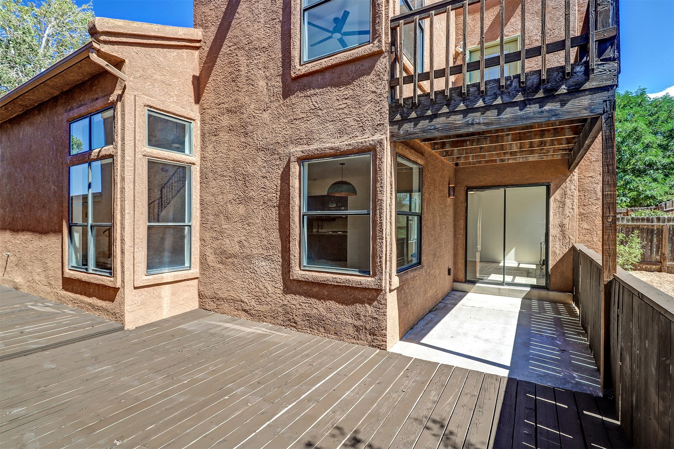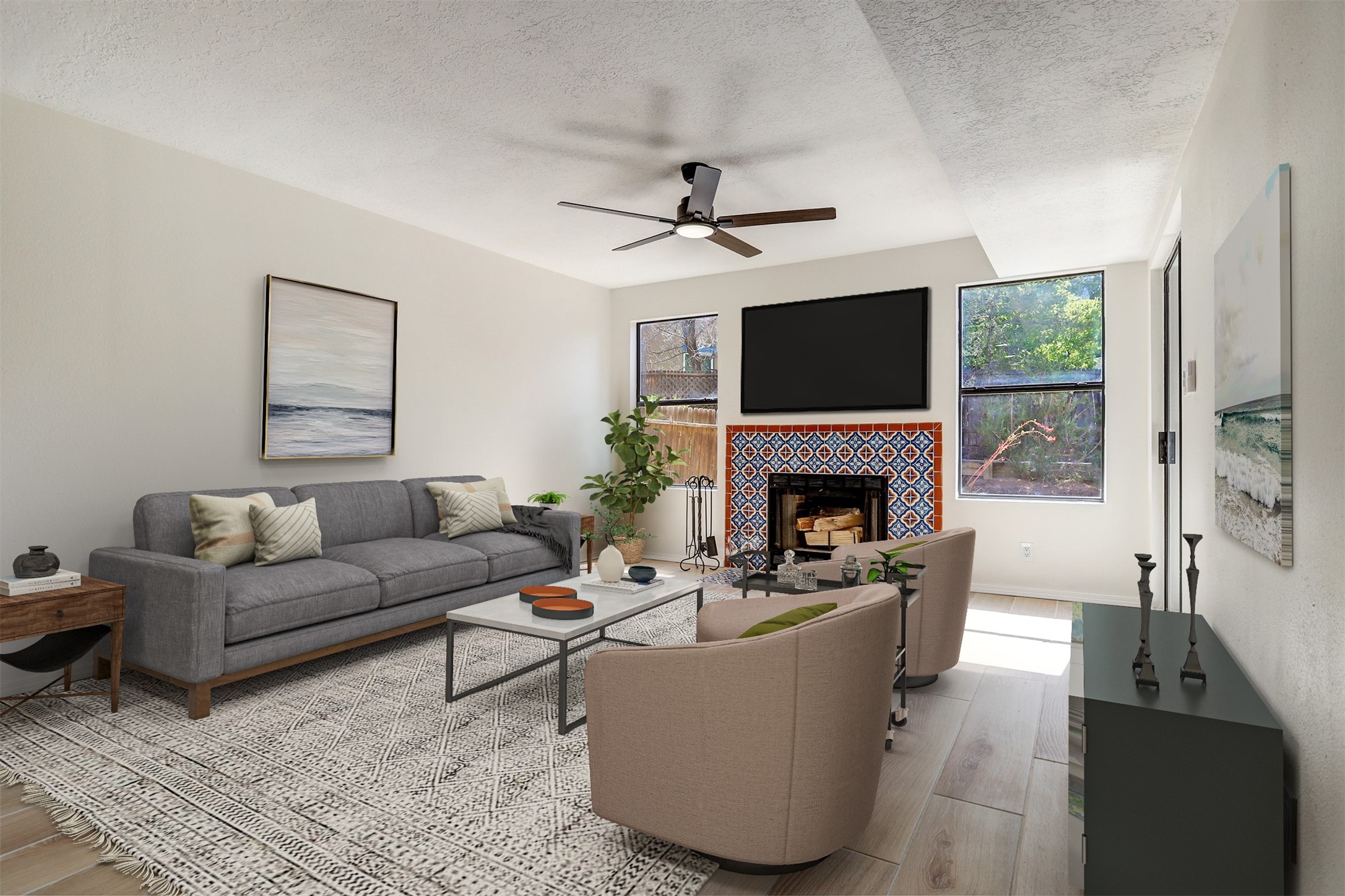 Welcome to this stunning two-story home, perfectly positioned in the serene and sought-after Via Caballero neighborhood. Nestled among graceful Pueblo-style homes and quiet, landscaped streets, this property offers a peaceful retreat while keeping you close to city amenities. This spacious 4-bedroom residence has been thoughtfully upgraded inside and out, offering comfort, style, and peace of mind with every detail. From the moment you step inside, you'll feel the warmth and character this home provides. With two living areas, there's plenty of room to relax or entertain. One features a cozy fireplace enhanced by custom tile work, creating an inviting atmosphere to gather. The kitchen serves as the heart of the home, featuring a massive granite island for prep and casual seating, gorgeous new cabinetry, and a custom tile backsplash that adds an artisan's touch. Brand-new stainless steel appliances and designer light fixtures lend both elegance and personality. Updates continue with new tile flooring in key areas and plush carpeting in the bedrooms, blending modern style with cozy comfort. The bedrooms are spacious and inviting--ideal for restful retreats, guest space, or a home office. The primary suite boasts its own nice-sized balcony, perfect for sipping morning coffee or unwinding at sunset. Peace of mind comes standard with major improvements already complete: a new roof, refrigerated air, furnace, and water heater mean you can move right in worry-free. Outside, a generous backyard deck awaits--an ideal spot for summer barbecues, entertaining, or simply soaking up the sunshine. This home embodies thoughtful updates, custom finishes, and modern conveniences in a tranquil neighborhood setting. Known for its peaceful surroundings and proximity to everything Santa Fe has to offer, it's the perfect place to create lasting memories. Move right in and experience comfort, beauty, and charm at its finest.