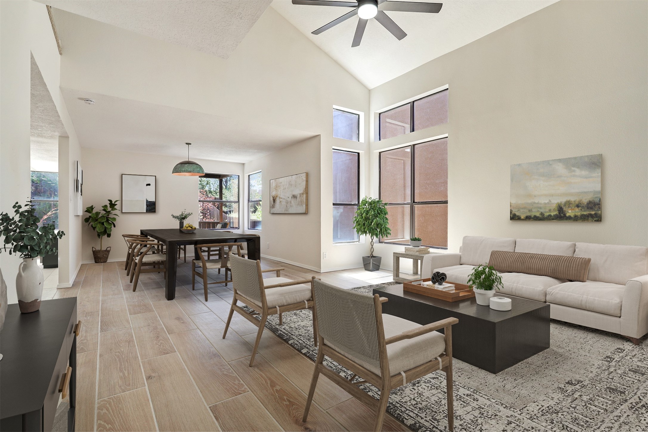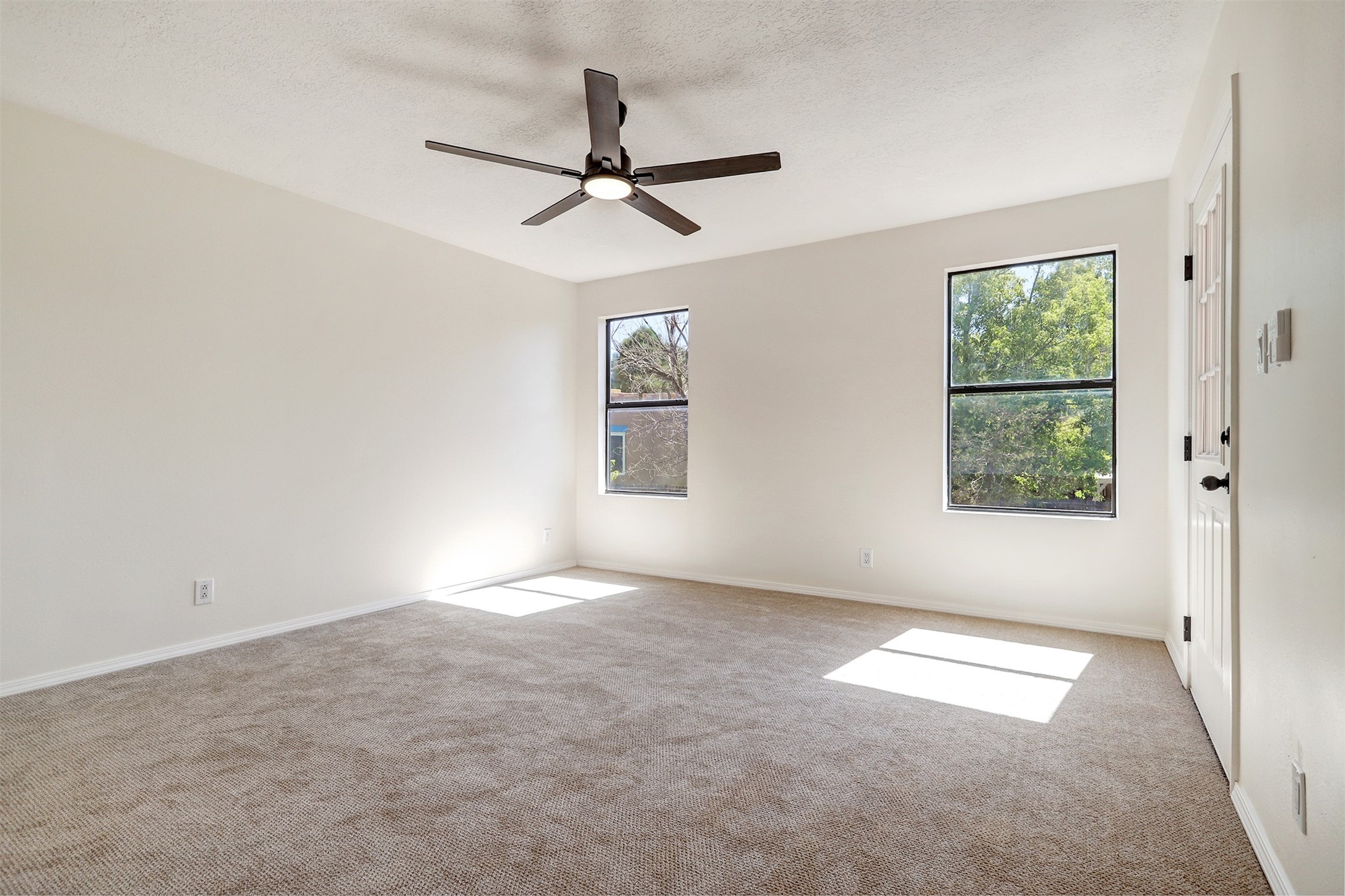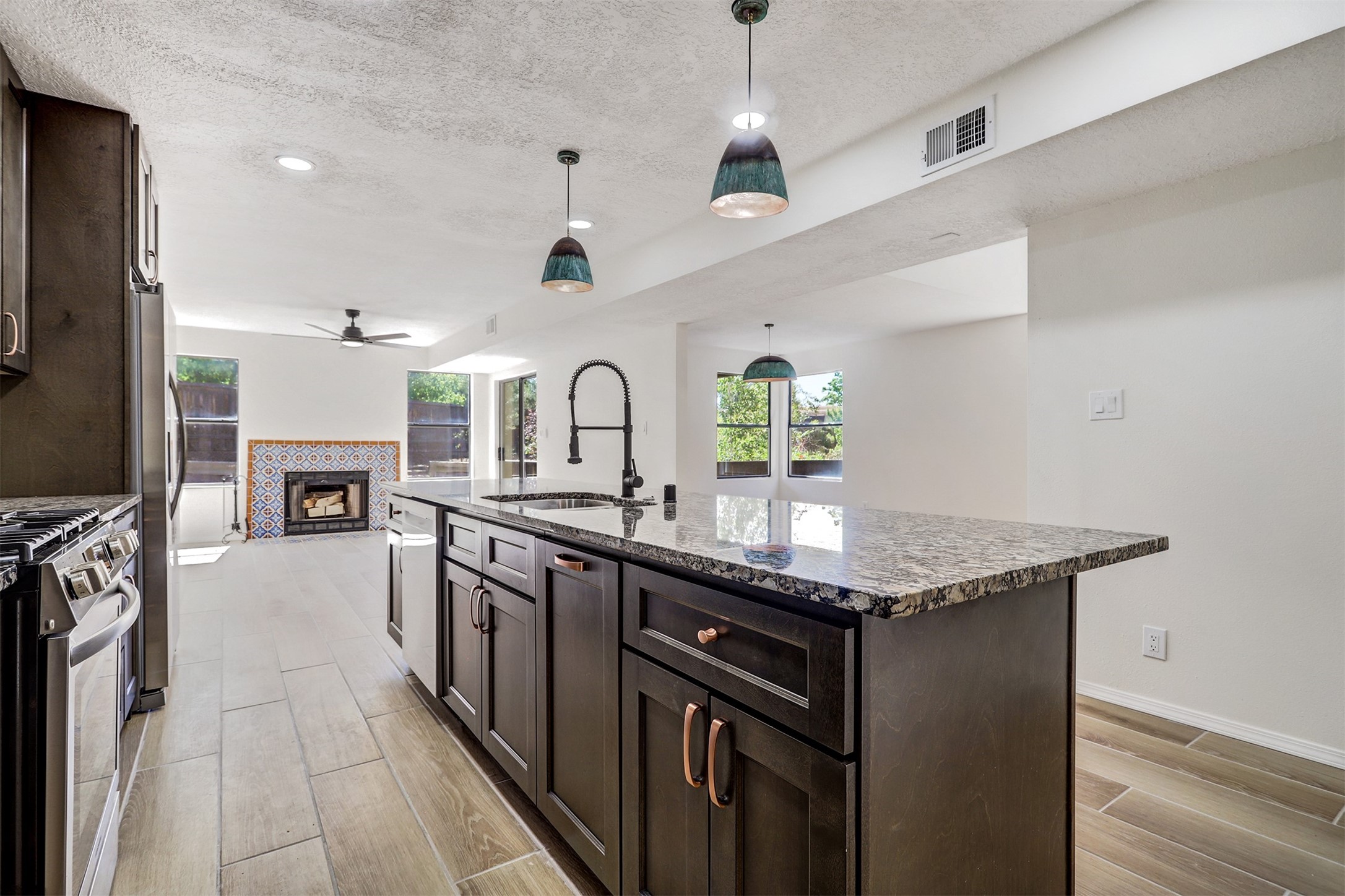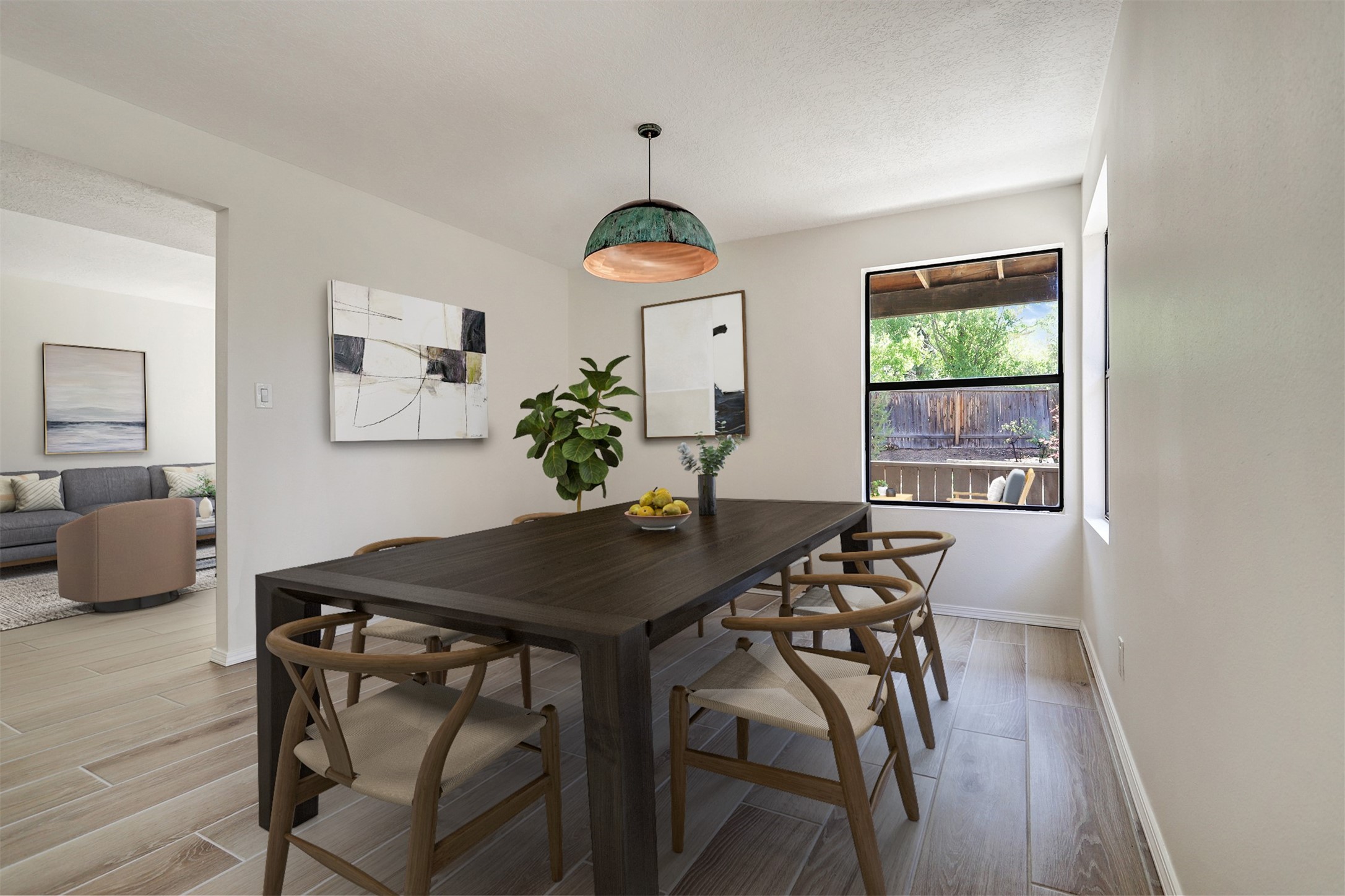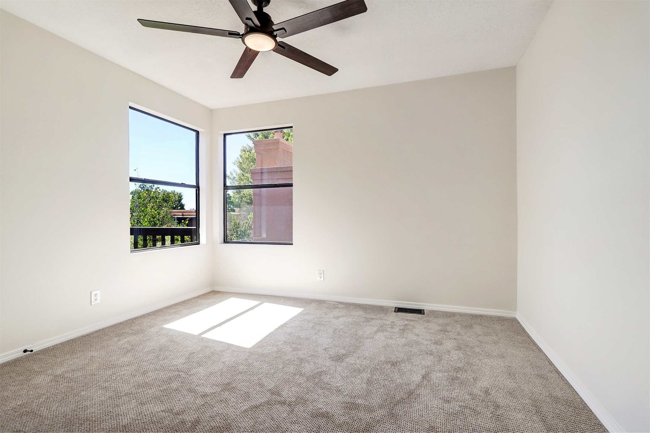 Welcome to this stunning two-story home, perfectly positioned in the serene and sought-after Via Caballero neighborhood. Nestled among graceful Pueblo-style homes and quiet, landscaped streets, this property offers a peaceful retreat while keeping you close to city amenities. This spacious 4-bedroom residence has been thoughtfully upgraded inside and out, offering comfort, style, and peace of mind with every detail. From the moment you step inside, you'll feel the warmth and character this home provides. With two living areas, there's plenty of room to relax or entertain. One features a cozy fireplace enhanced by custom tile work, creating an inviting atmosphere to gather. The kitchen serves as the heart of the home, featuring a massive granite island for prep and casual seating, gorgeous new cabinetry, and a custom tile backsplash that adds an artisan's touch. Brand-new stainless steel appliances and designer light fixtures lend both elegance and personality. Updates continue with new tile flooring in key areas and plush carpeting in the bedrooms, blending modern style with cozy comfort. The bedrooms are spacious and inviting--ideal for restful retreats, guest space, or a home office. The primary suite boasts its own nice-sized balcony, perfect for sipping morning coffee or unwinding at sunset. Peace of mind comes standard with major improvements already complete: a new roof, refrigerated air, furnace, and water heater mean you can move right in worry-free. Outside, a generous backyard deck awaits--an ideal spot for summer barbecues, entertaining, or simply soaking up the sunshine. This home embodies thoughtful updates, custom finishes, and modern conveniences in a tranquil neighborhood setting. Known for its peaceful surroundings and proximity to everything Santa Fe has to offer, it's the perfect place to create lasting memories. Move right in and experience comfort, beauty, and charm at its finest.