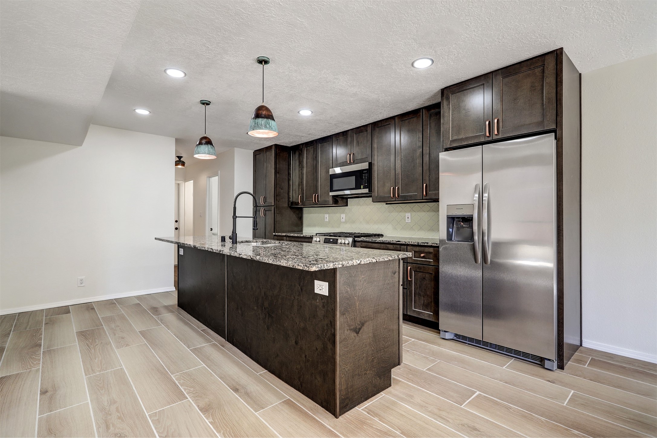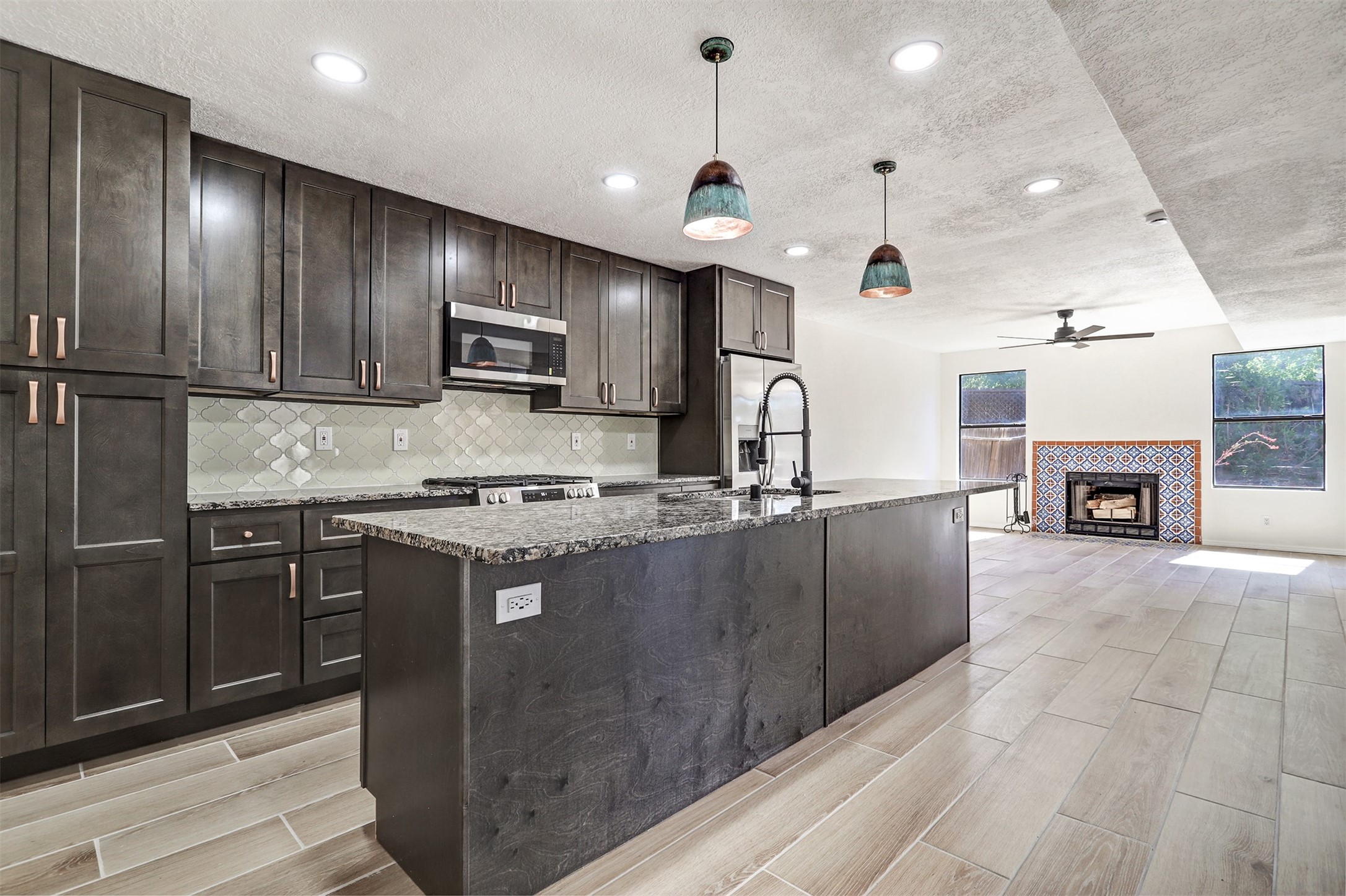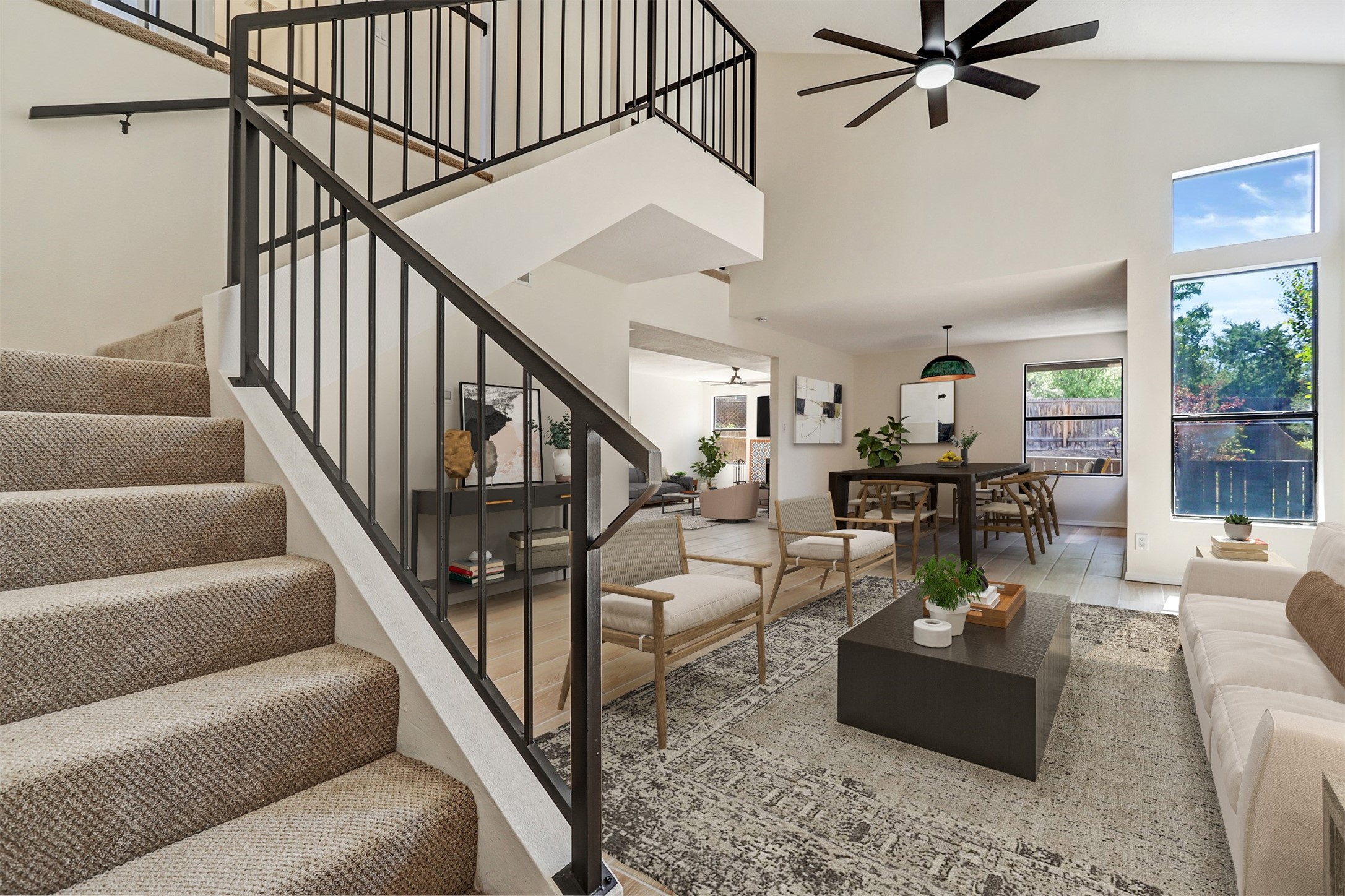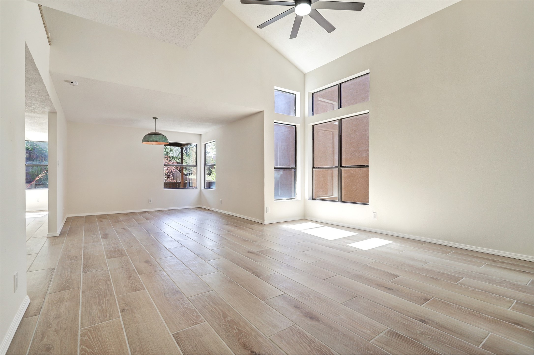 Welcome to this stunning two-story home, perfectly positioned in the serene and sought-after Via Caballero neighborhood. Nestled among graceful Pueblo-style homes and quiet, landscaped streets, this property offers a peaceful retreat while keeping you close to city amenities. This spacious 4-bedroom residence has been thoughtfully upgraded inside and out, offering comfort, style, and peace of mind with every detail. From the moment you step inside, you'll feel the warmth and character this home provides. With two living areas, there's plenty of room to relax or entertain. One features a cozy fireplace enhanced by custom tile work, creating an inviting atmosphere to gather. The kitchen serves as the heart of the home, featuring a massive granite island for prep and casual seating, gorgeous new cabinetry, and a custom tile backsplash that adds an artisan's touch. Brand-new stainless steel appliances and designer light fixtures lend both elegance and personality. Updates continue with new tile flooring in key areas and plush carpeting in the bedrooms, blending modern style with cozy comfort. The bedrooms are spacious and inviting--ideal for restful retreats, guest space, or a home office. The primary suite boasts its own nice-sized balcony, perfect for sipping morning coffee or unwinding at sunset. Peace of mind comes standard with major improvements already complete: a new roof, refrigerated air, furnace, and water heater mean you can move right in worry-free. Outside, a generous backyard deck awaits--an ideal spot for summer barbecues, entertaining, or simply soaking up the sunshine. This home embodies thoughtful updates, custom finishes, and modern conveniences in a tranquil neighborhood setting. Known for its peaceful surroundings and proximity to everything Santa Fe has to offer, it's the perfect place to create lasting memories. Move right in and experience comfort, beauty, and charm at its finest.