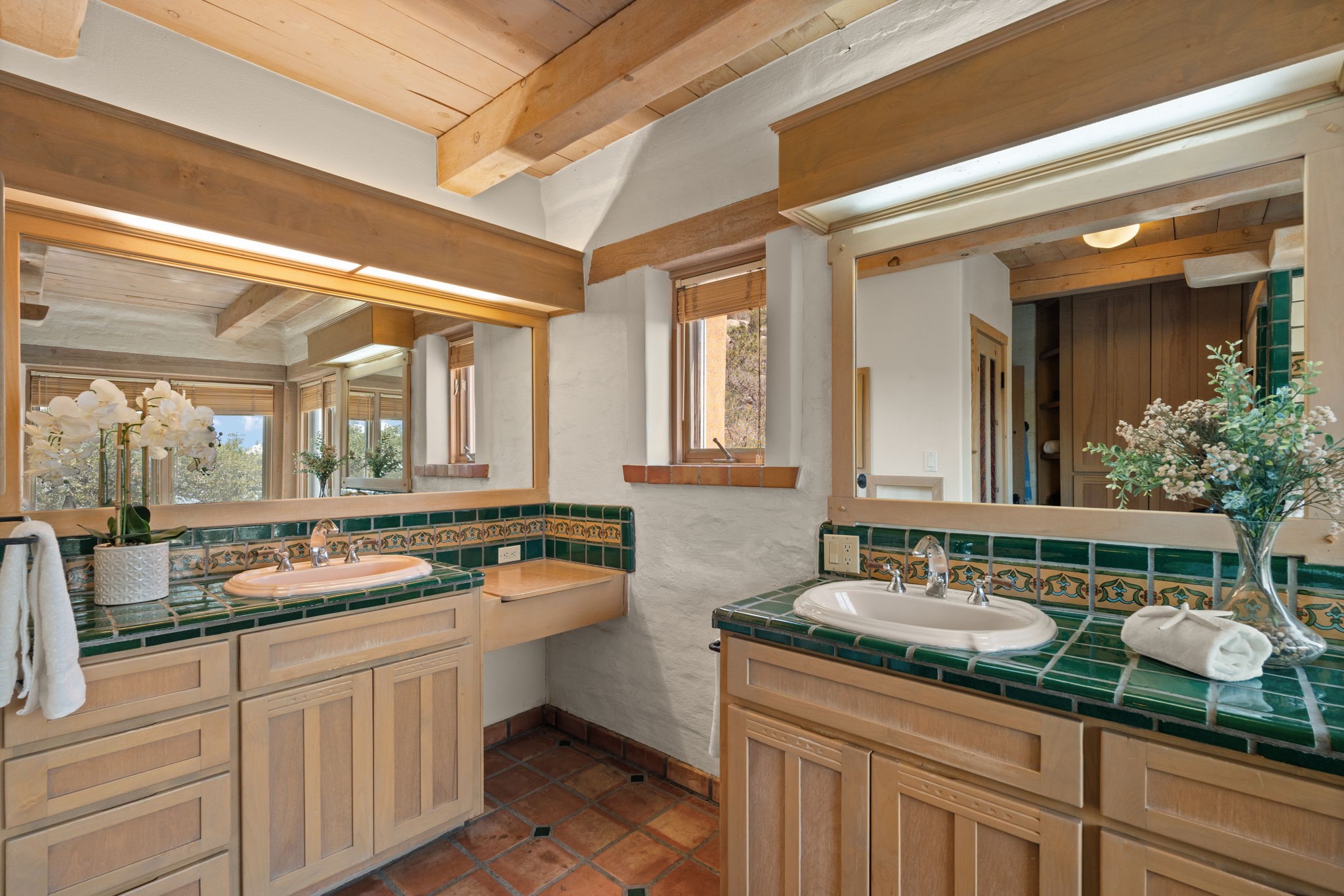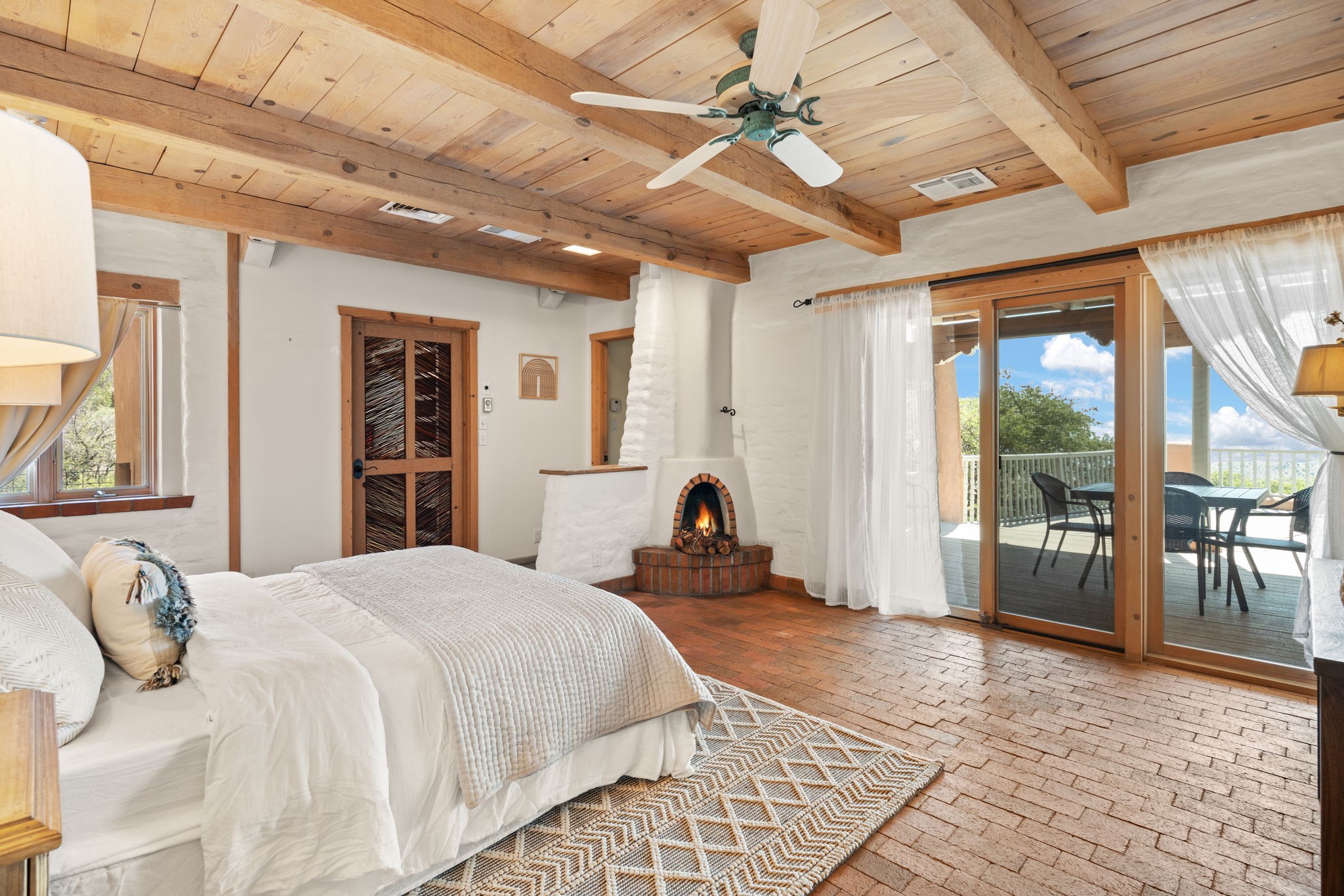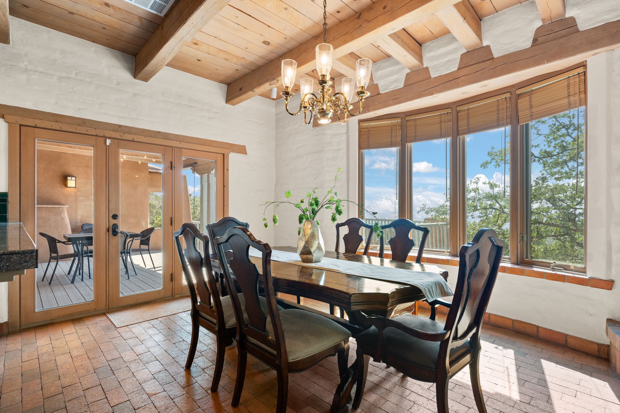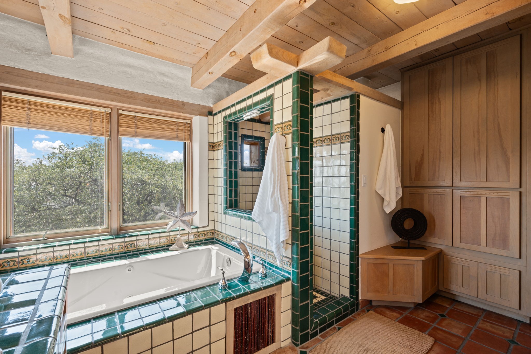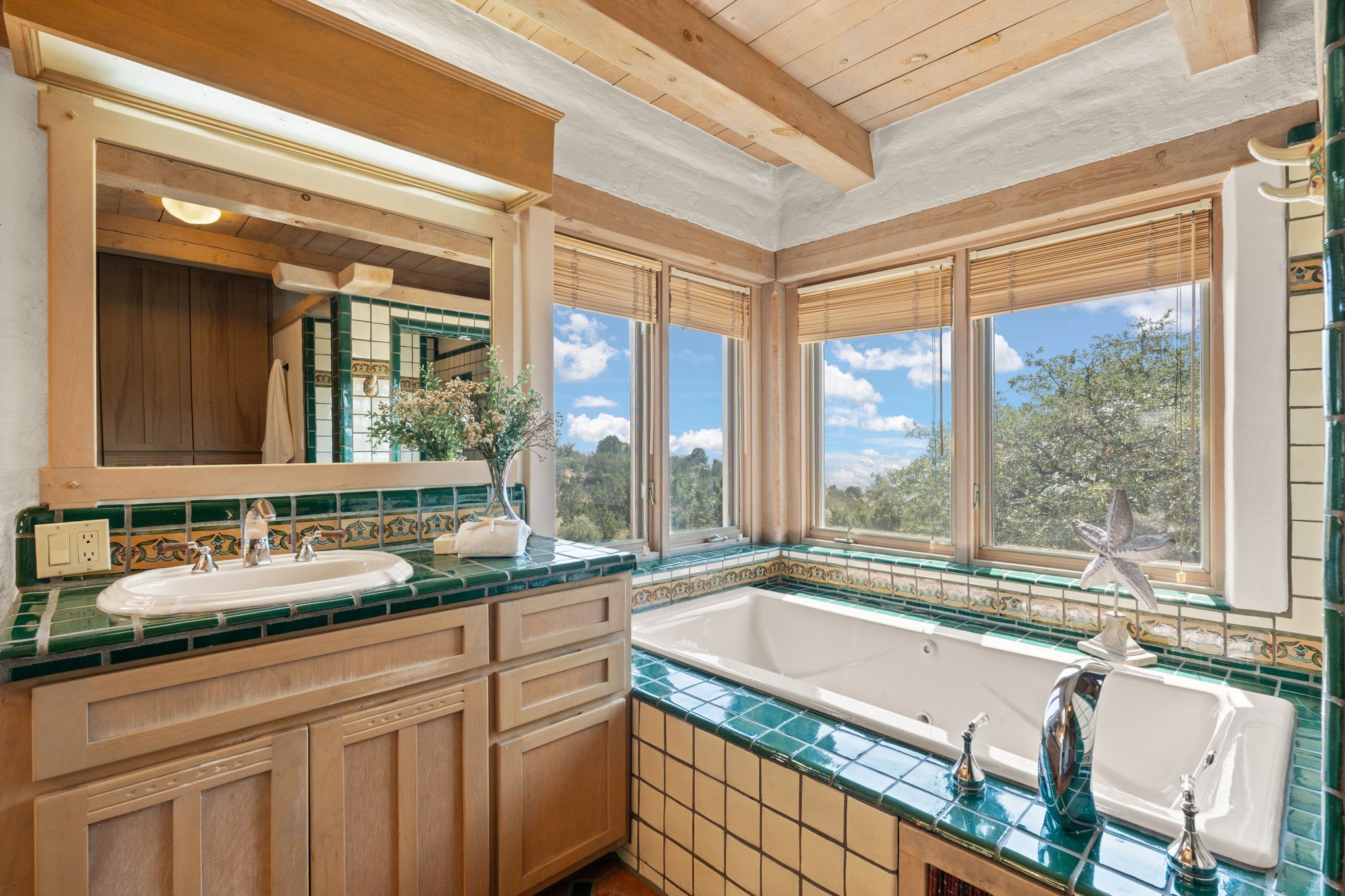 This Charming and authentic Adobe home in Tierra Monte offers a rare blend of luxury living and natural splendor at the base of the iconic Sandia Mountains. This spacious 3,680 sq. ft. residence is thoughtfully designed with updated roofing and mechanical systems, ensuring both comfort and elegance. Step inside to discover adobe construction, beamed ceilings, and a gourmet kitchen featuring a massive granite island, a veggie sink, a Viking gas range and double ovens, a Sub-Zero fridge/freezer, and an incredible deck off the kitchen and the primary bedroom suite, perfect for entertaining or relaxing after a long week. The interior boasts five fireplaces, brick, Saltillo, and carpet flooring, and windows that frame breathtaking vistas. Set on a private lot, the home offers unparalleled....privacy and panoramic views of dramatic sunsets, starlit skies, and the rugged cliffs of the Sandias. Enjoy serene mornings on your patio, watching the ever-changing light play across the peaks, or unwind in the jetted tub after exploring the famed La Luz Trail, a world-renowned hiking destination just steps from your door. The property is ideally located within the sought-after 87122 zip code, with top-rated schools nearby. It's more than a home, it's a gateway to adventure and tranquility, offering a lifestyle defined by outdoor beauty and classic Pueblo architecture. It could be your ABQ Dream Home!