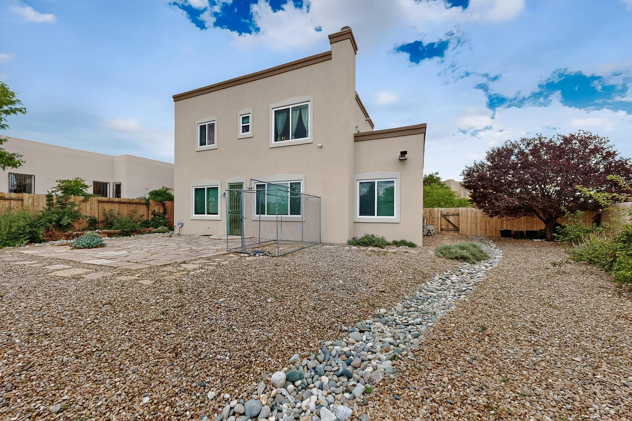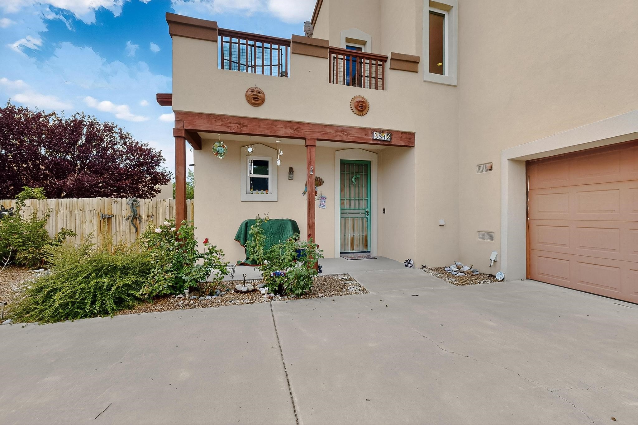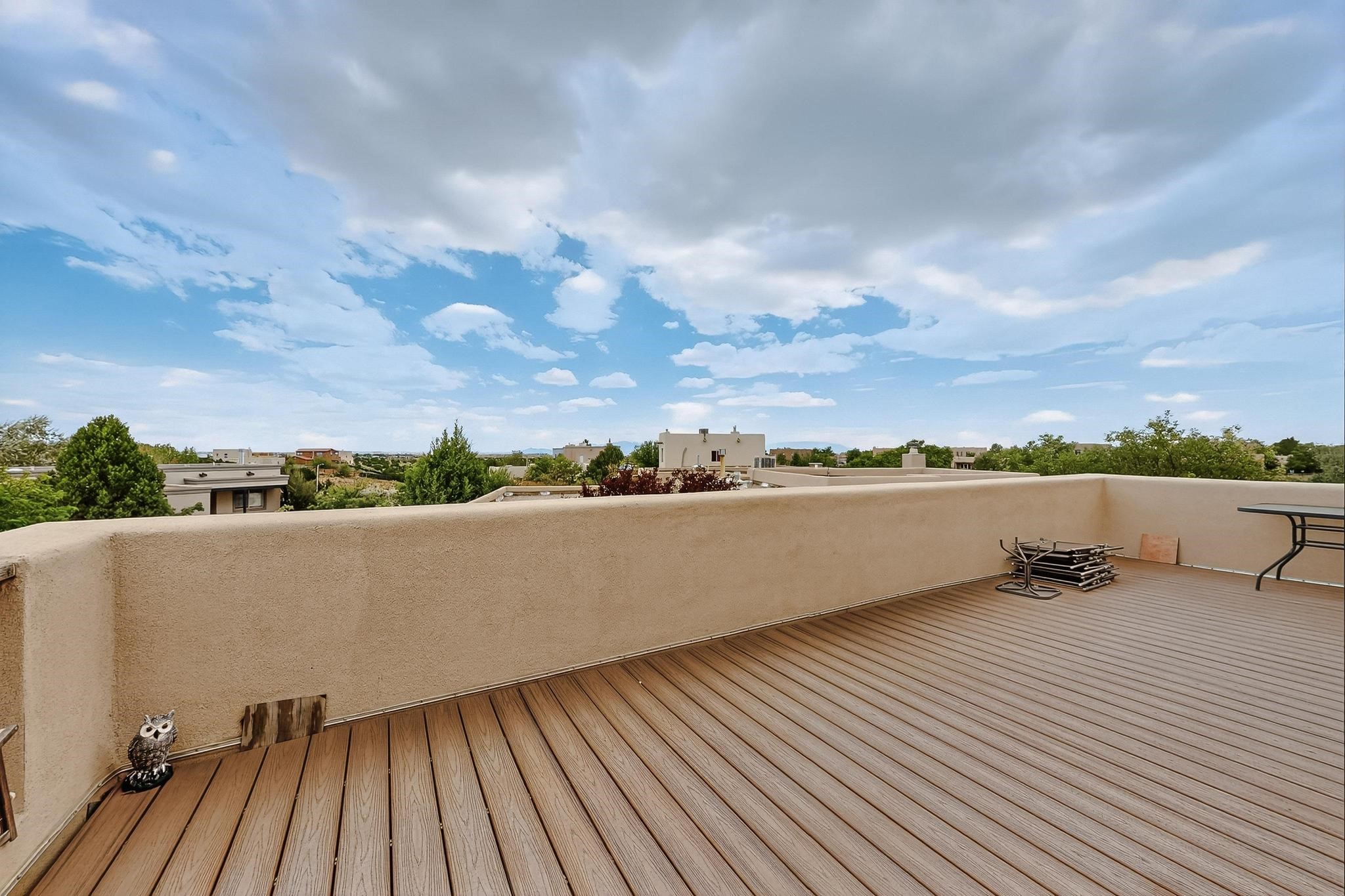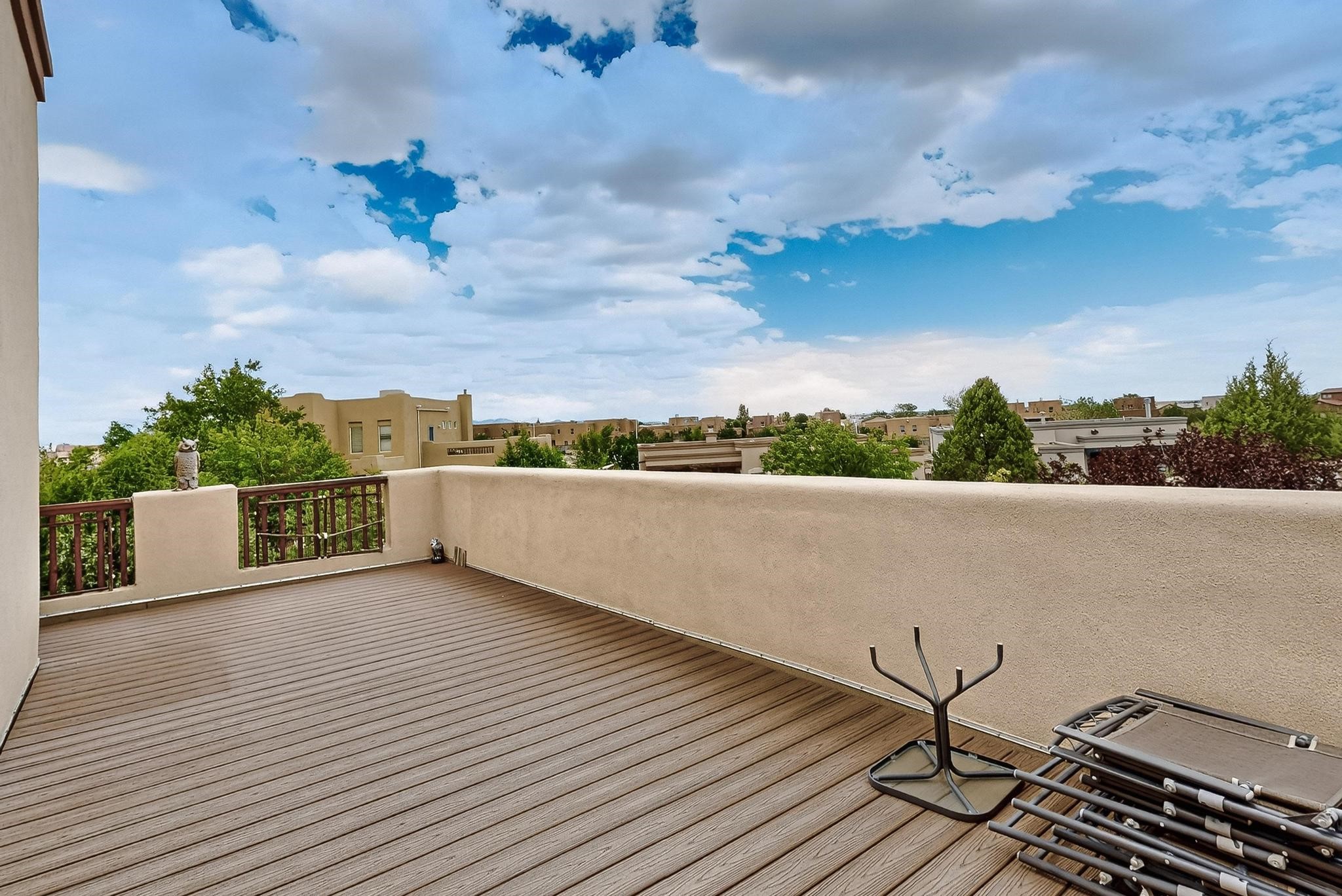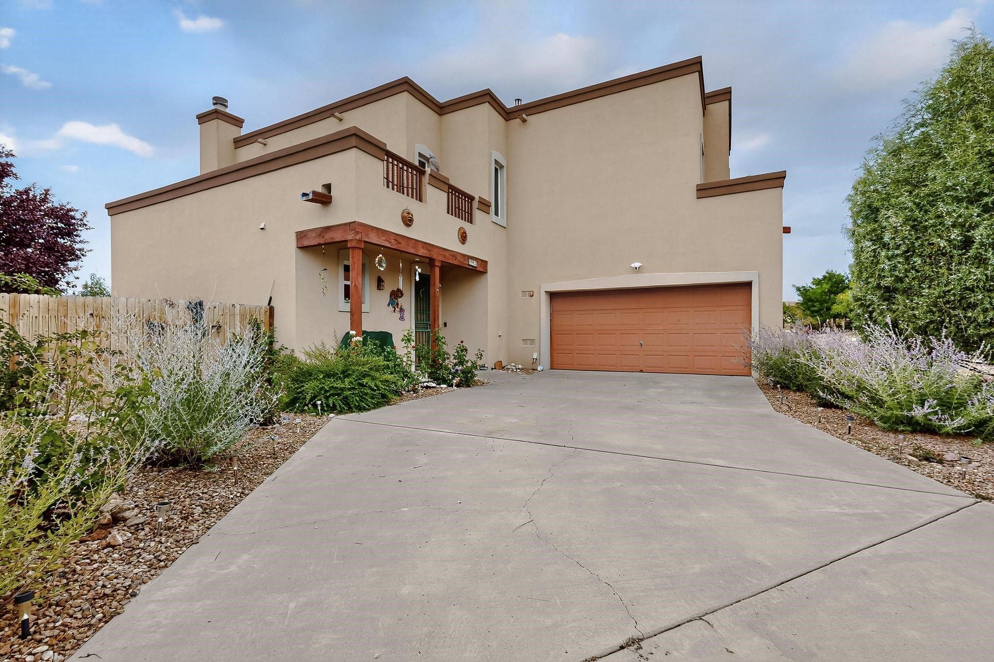 This well maintained 4 bedroom, 3 bath home is located on the southside of Santa Fe in the Sunset Ridge subdivision, is sited on a larger corner lot and backs up to a greenbelt/arroyo enjoying views of the neighboring mountain ranges! Features include raised ceilings, tile countertops, skylights, a trex deck, fenced yard and landscaping. Step inside and enjoy the warm and inviting feel this open floor plan has to offer. The large kitchen features a center island and includes a cozy breakfast nook. There is a downstairs bedroom and bath just off the living room. The spacious main bedroom upstairs features new carpeting, a large walk-in closet and en-suite bath. Take your coffee and sit out on your private deck and enjoy the views! The second floor also features a large bonus room that includes a closet - could make a 5th bedroom, TV room or whatever your imagination can dream up! Recent improvements include a new HVAC system and new carpet in the MB, hallway and bedroom downstairs. This home is move-in ready and just waiting for you to make it your own!!
