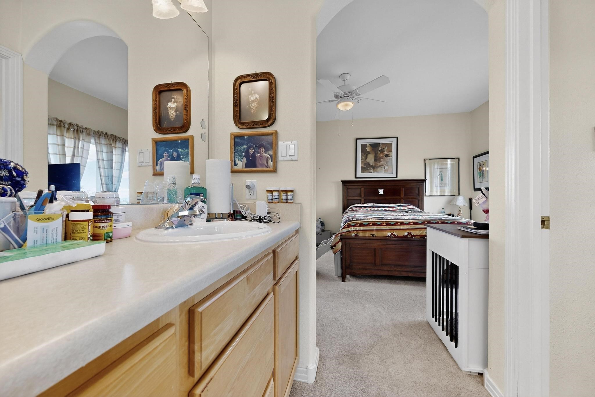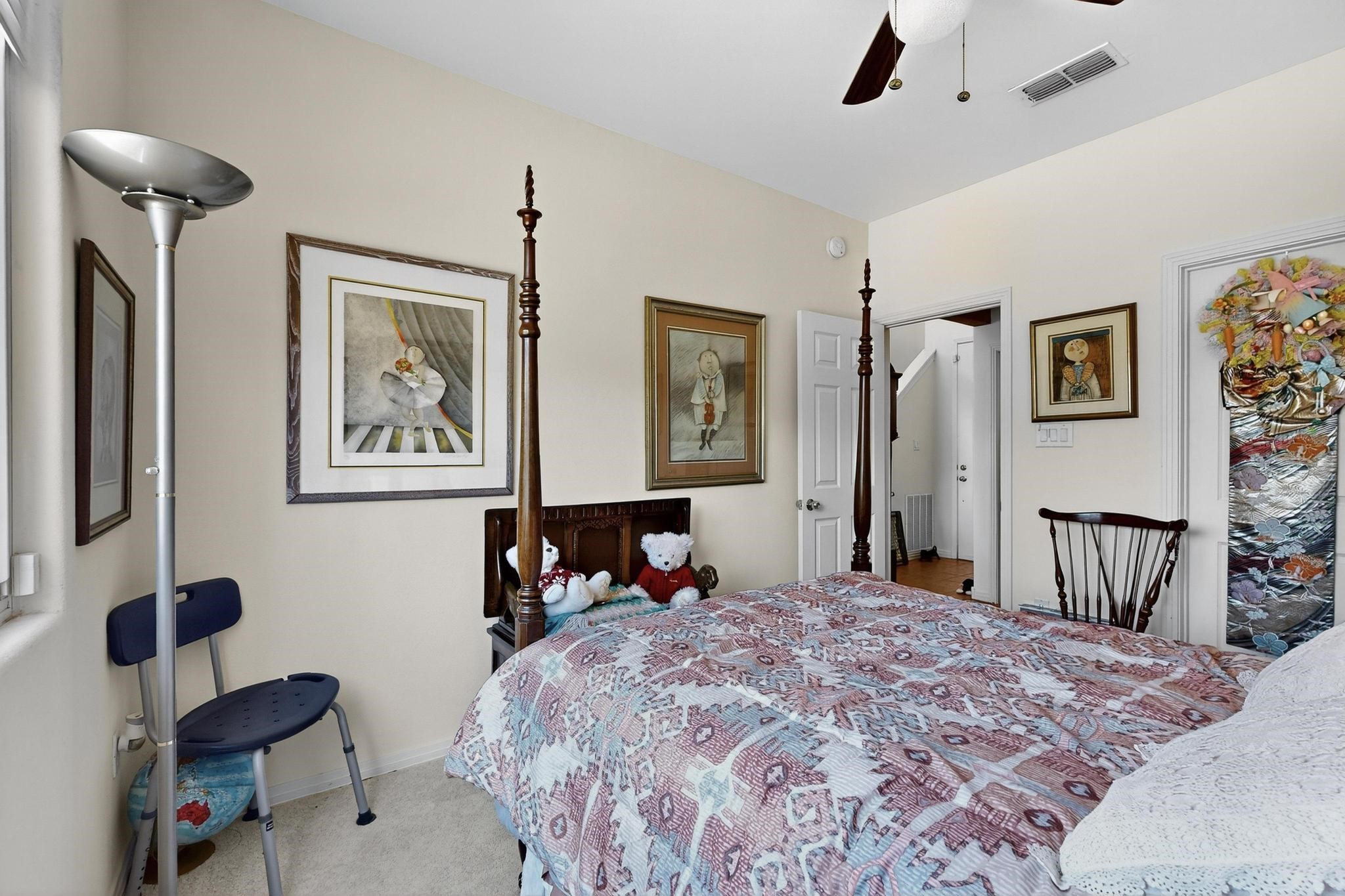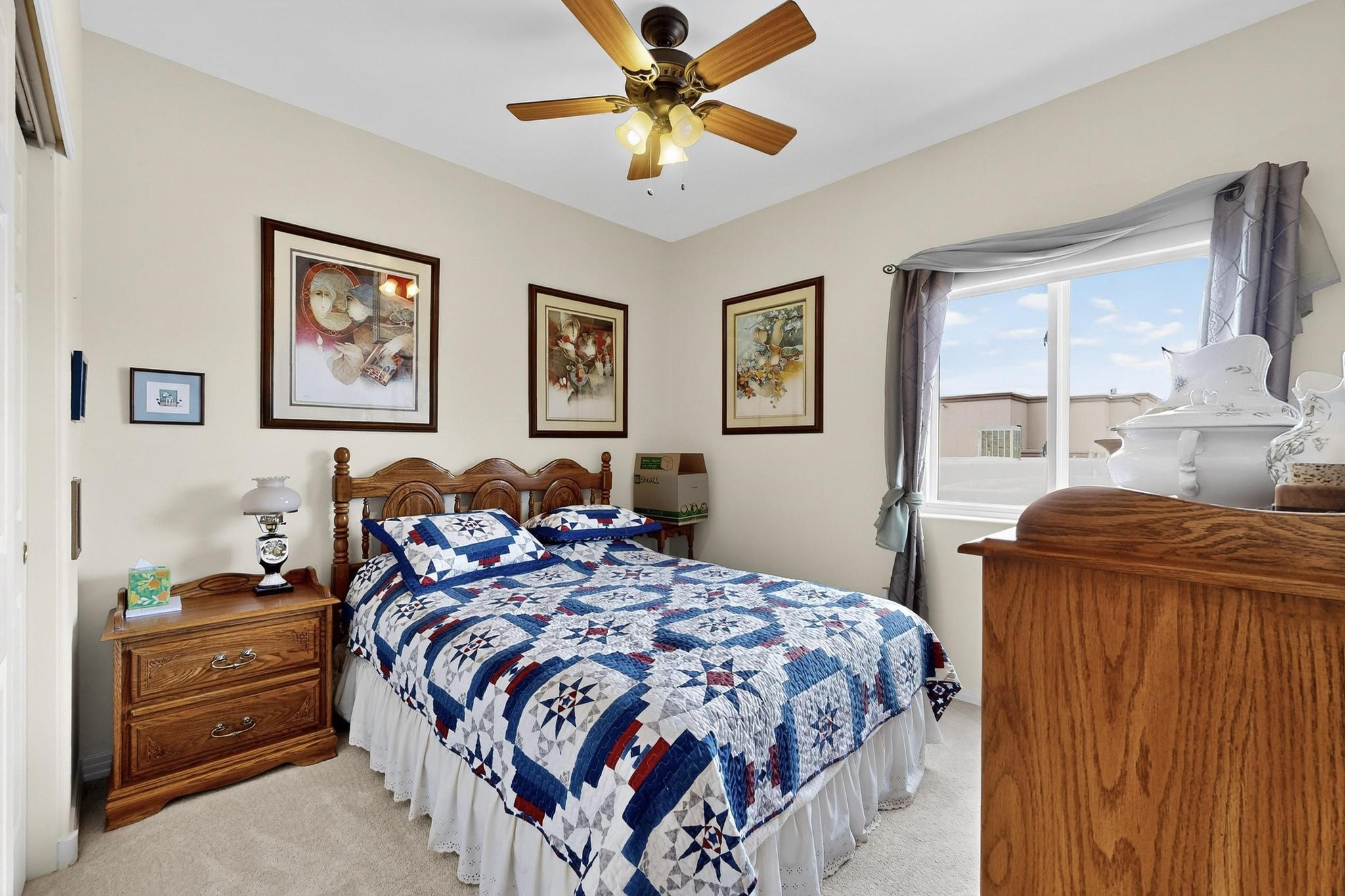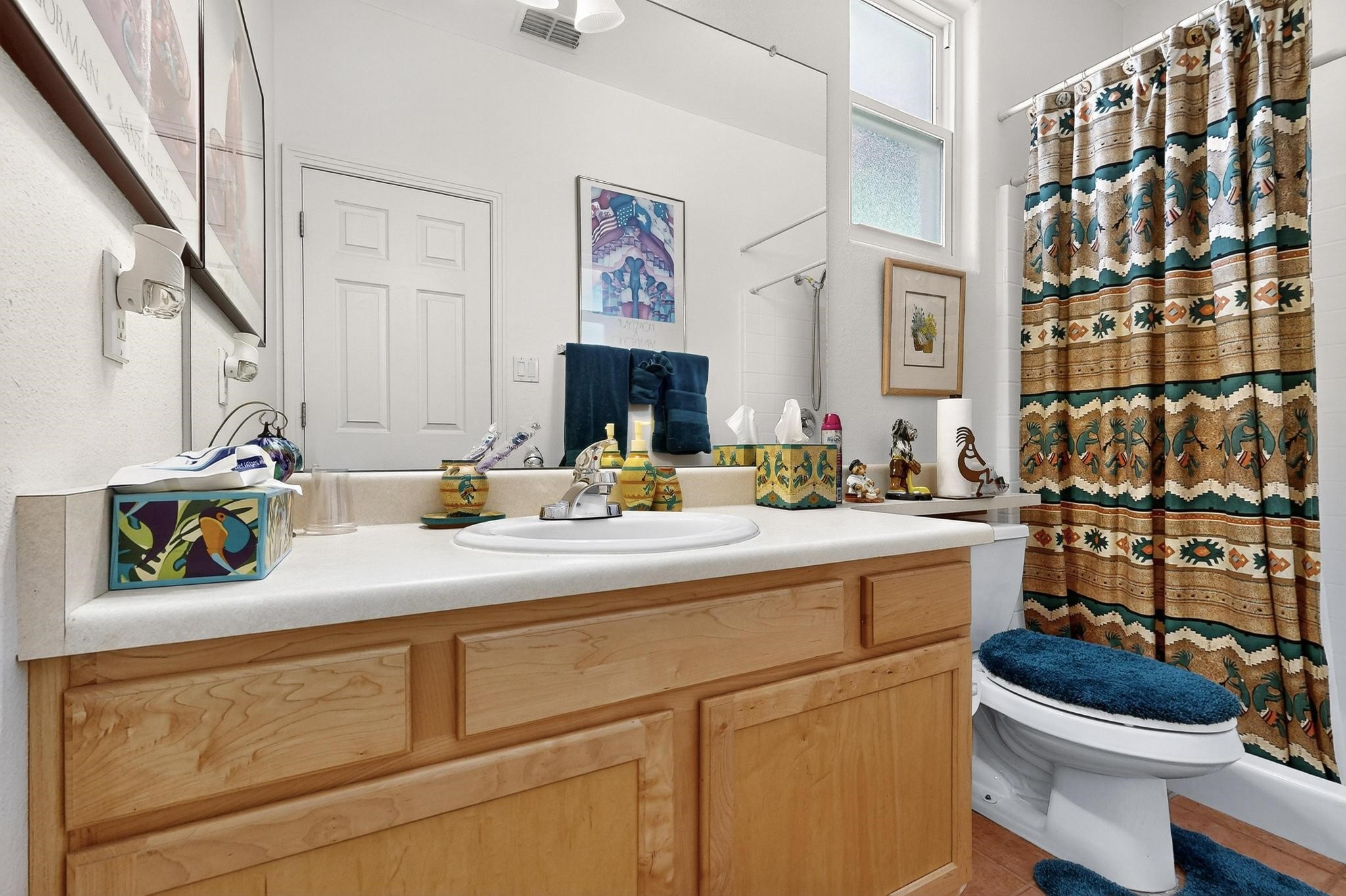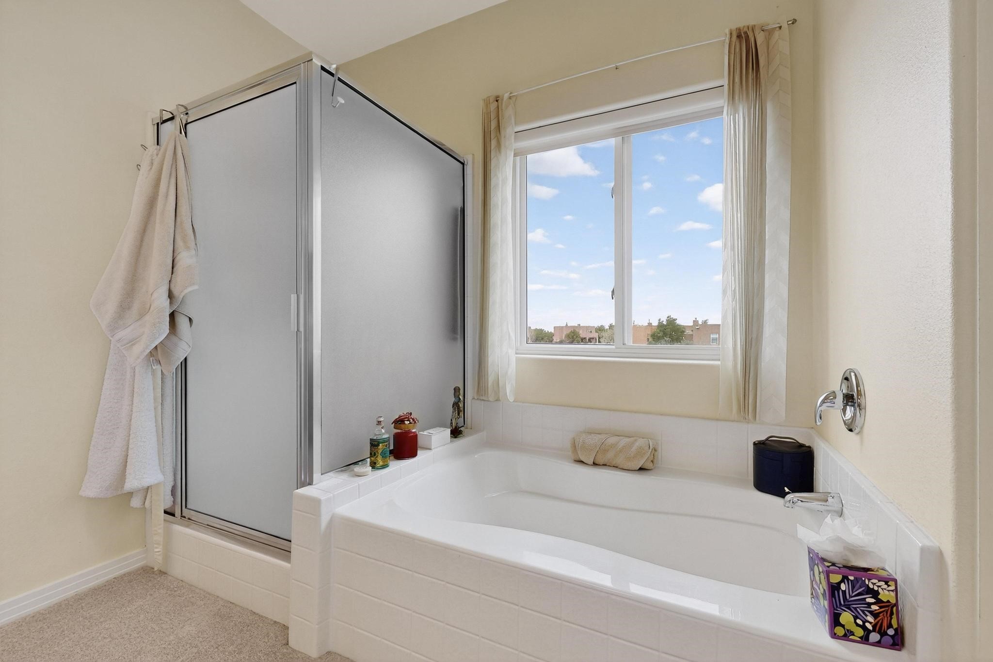 This well maintained 4 bedroom, 3 bath home is located on the southside of Santa Fe in the Sunset Ridge subdivision, is sited on a larger corner lot and backs up to a greenbelt/arroyo enjoying views of the neighboring mountain ranges! Features include raised ceilings, tile countertops, skylights, a trex deck, fenced yard and landscaping. Step inside and enjoy the warm and inviting feel this open floor plan has to offer. The large kitchen features a center island and includes a cozy breakfast nook. There is a downstairs bedroom and bath just off the living room. The spacious main bedroom upstairs features new carpeting, a large walk-in closet and en-suite bath. Take your coffee and sit out on your private deck and enjoy the views! The second floor also features a large bonus room that includes a closet - could make a 5th bedroom, TV room or whatever your imagination can dream up! Recent improvements include a new HVAC system and new carpet in the MB, hallway and bedroom downstairs. This home is move-in ready and just waiting for you to make it your own!!