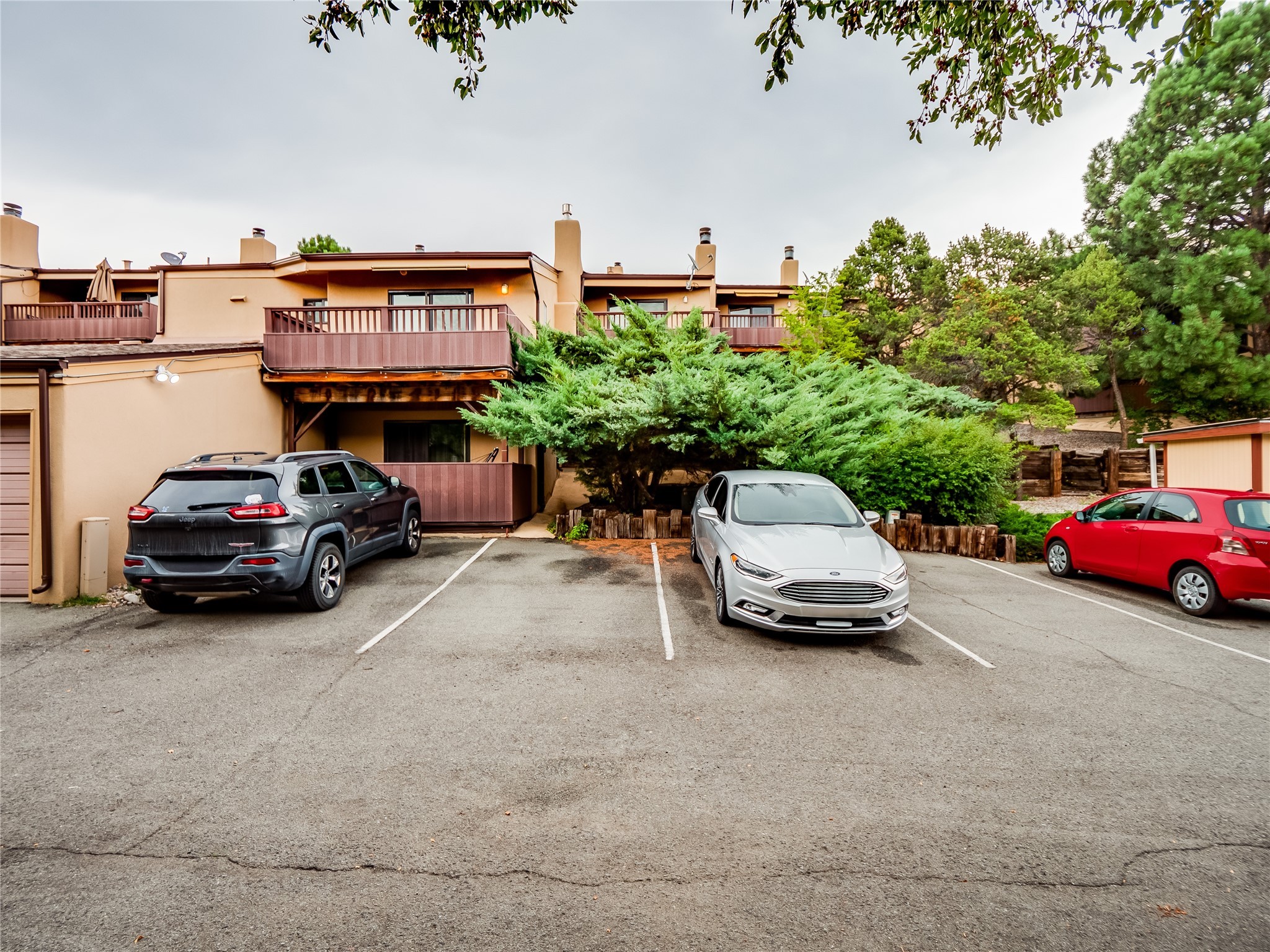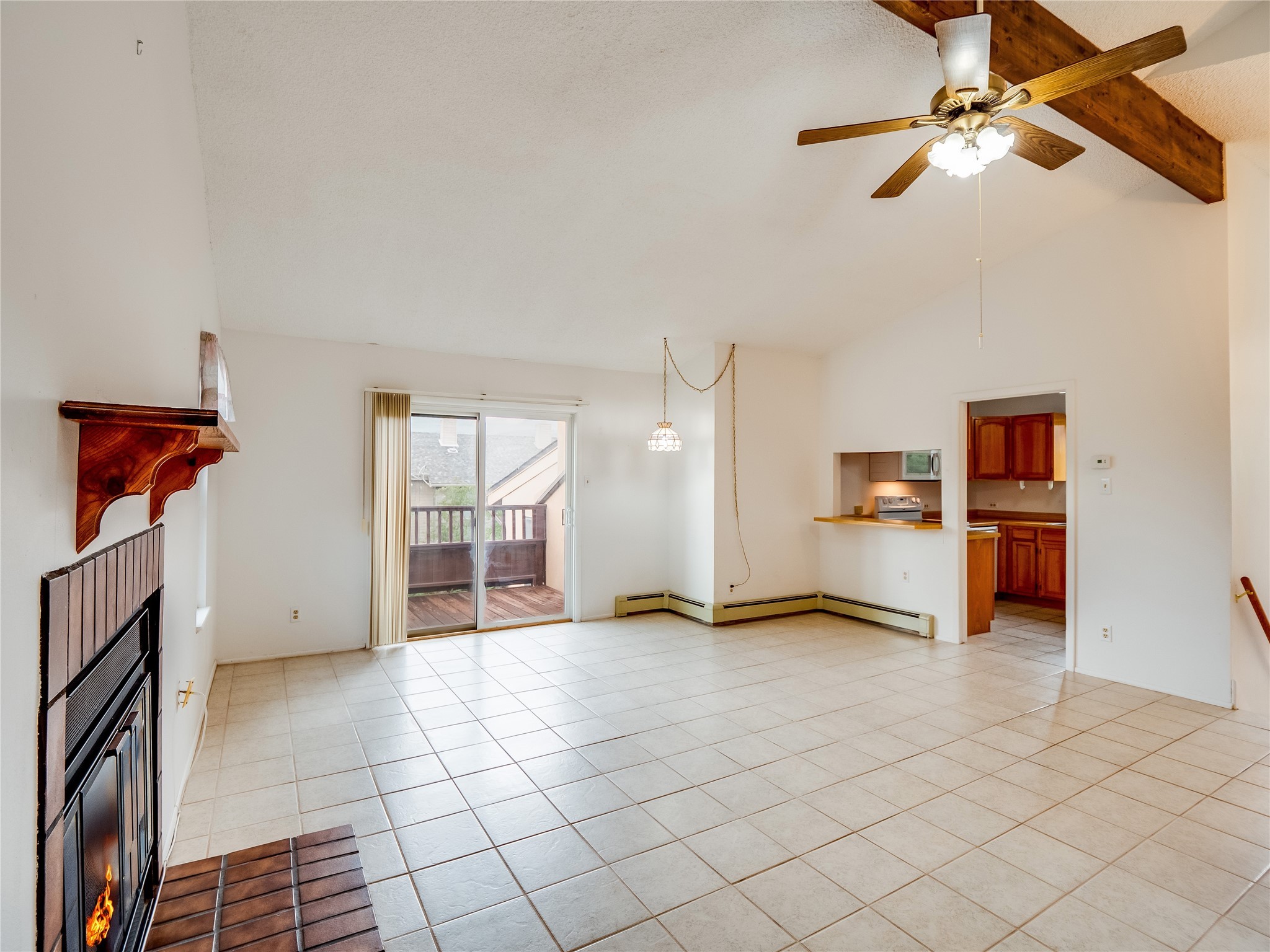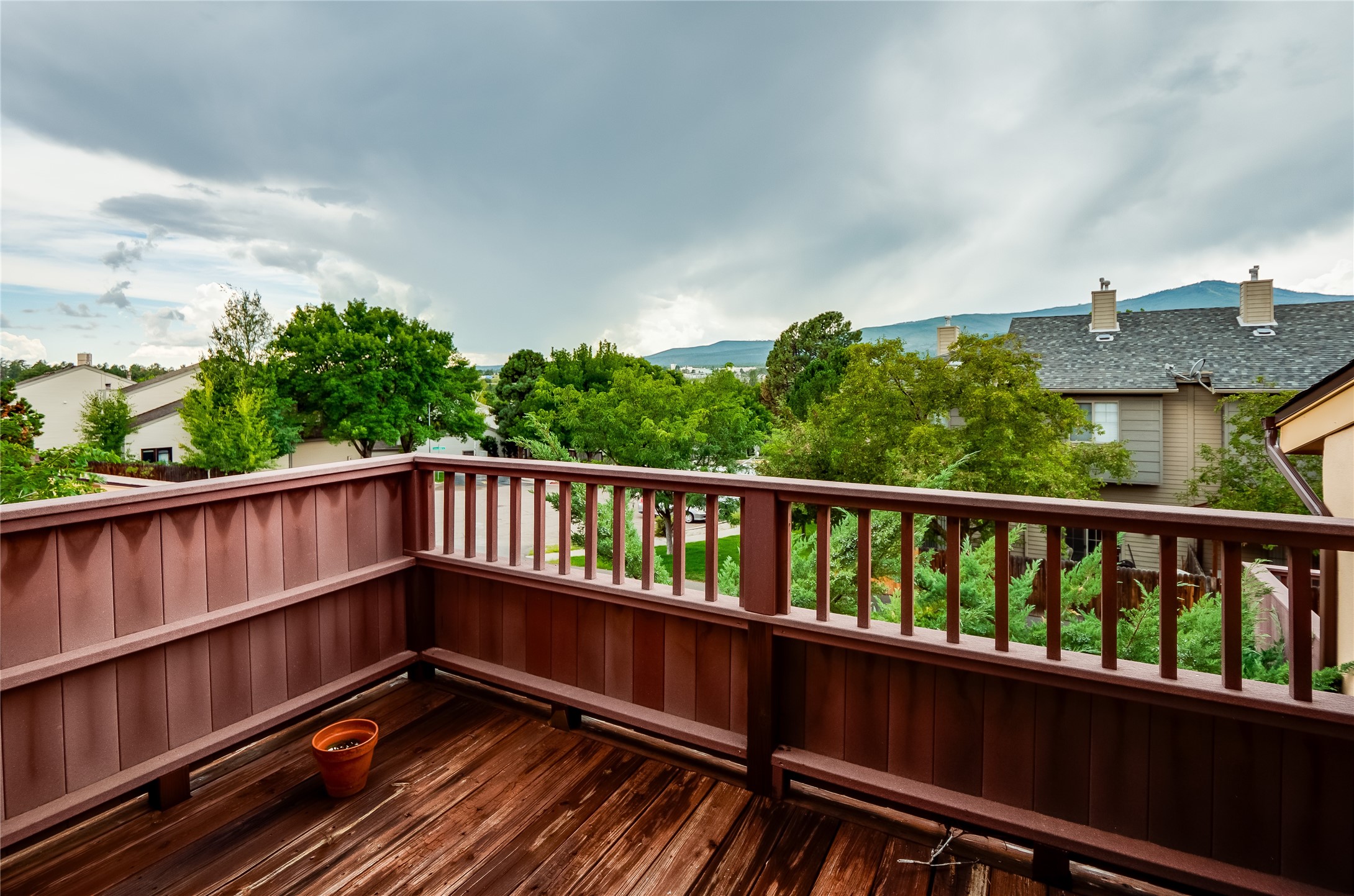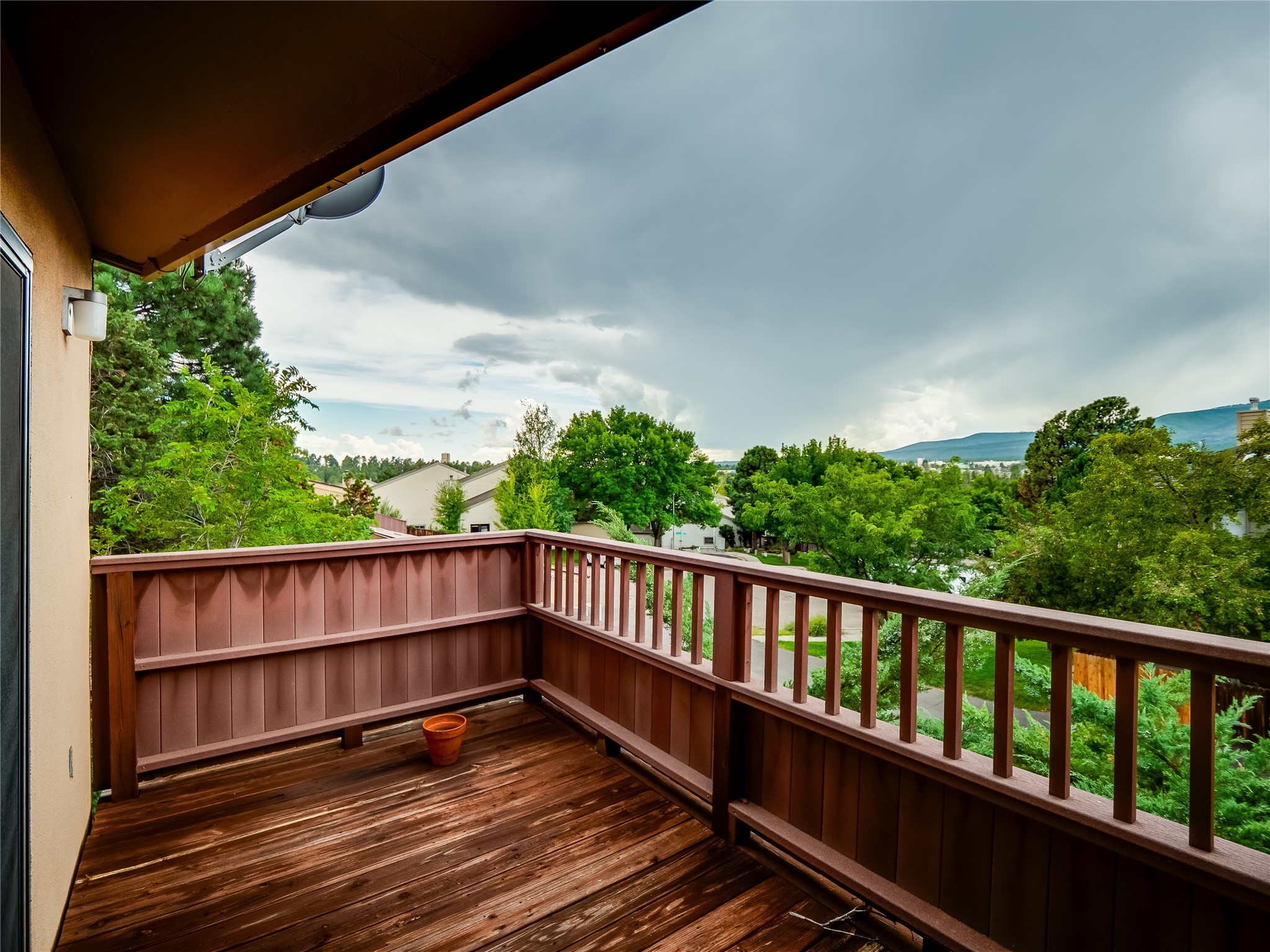 Welcome to this charming two-story condo located in the desirable Eastern area, offering comfort, functionality, and inviting spaces both indoors and out. Step through the front entrance and head upstairs to the main living level, where natural light fills the open-concept living and dining area. Vaulted ceilings and tile flooring create a bright, airy atmosphere, while the centerpiece wood-burning fireplace adds warmth and character. Sliding glass doors lead to a spacious wood deck with stunning mountain views--perfect for outdoor lounging, morning coffee, or summer BBQs. The kitchen is conveniently connected to the dining space, featuring wood cabinetry, a stainless steel refrigerator, a pantry, and a peninsula counter with a pass-through window for easy serving and conversation. Also on this level is a generous powder room, complete with a long vanity and single sink. Downstairs, brand-new plush carpet adds comfort throughout. This level includes a spacious guest bedroom and a private primary en-suite. The primary retreat boasts a large bedroom with double closets and access to a secluded deck--an ideal spot for unwinding at the end of the day. A shared full bathroom offers a tiled shower/tub and a single-sink vanity. For added convenience, a laundry closet with included washer and dryer, along with a deep storage closet, completes the lower level. This property also comes with a detached one-car garage, providing covered parking and extra storage space. Set in a quiet location close to parks, trails, shopping, and entertainment, this condo provides the perfect combination of peaceful living and everyday convenience. Don't miss the opportunity to make this inviting property yours--schedule a tour today!