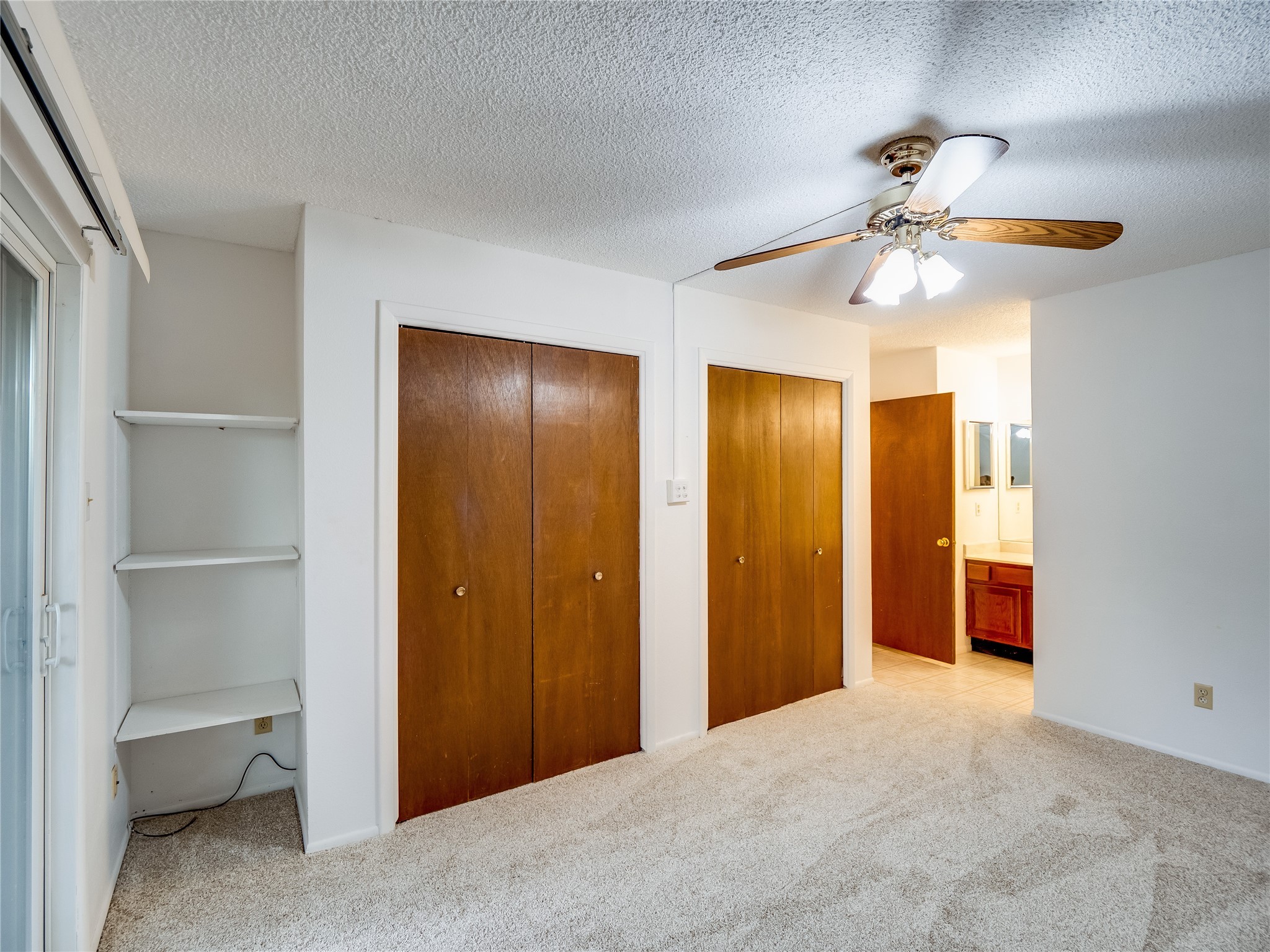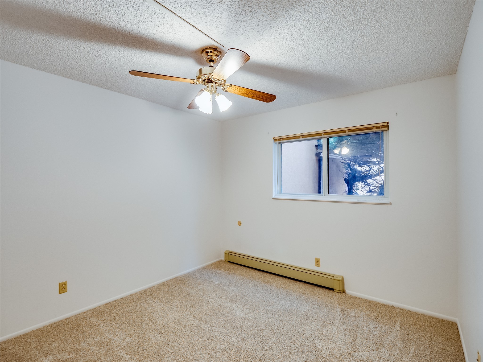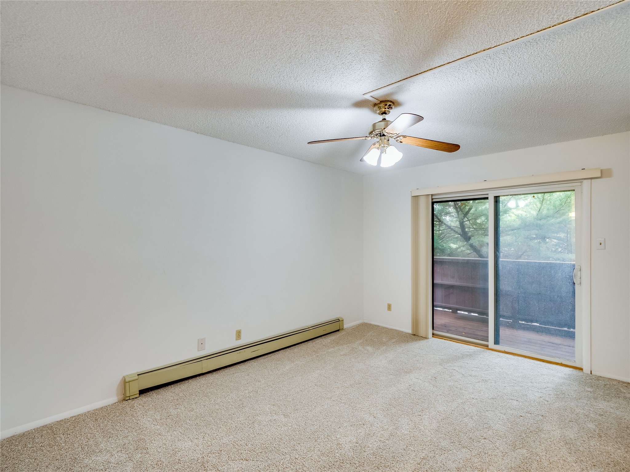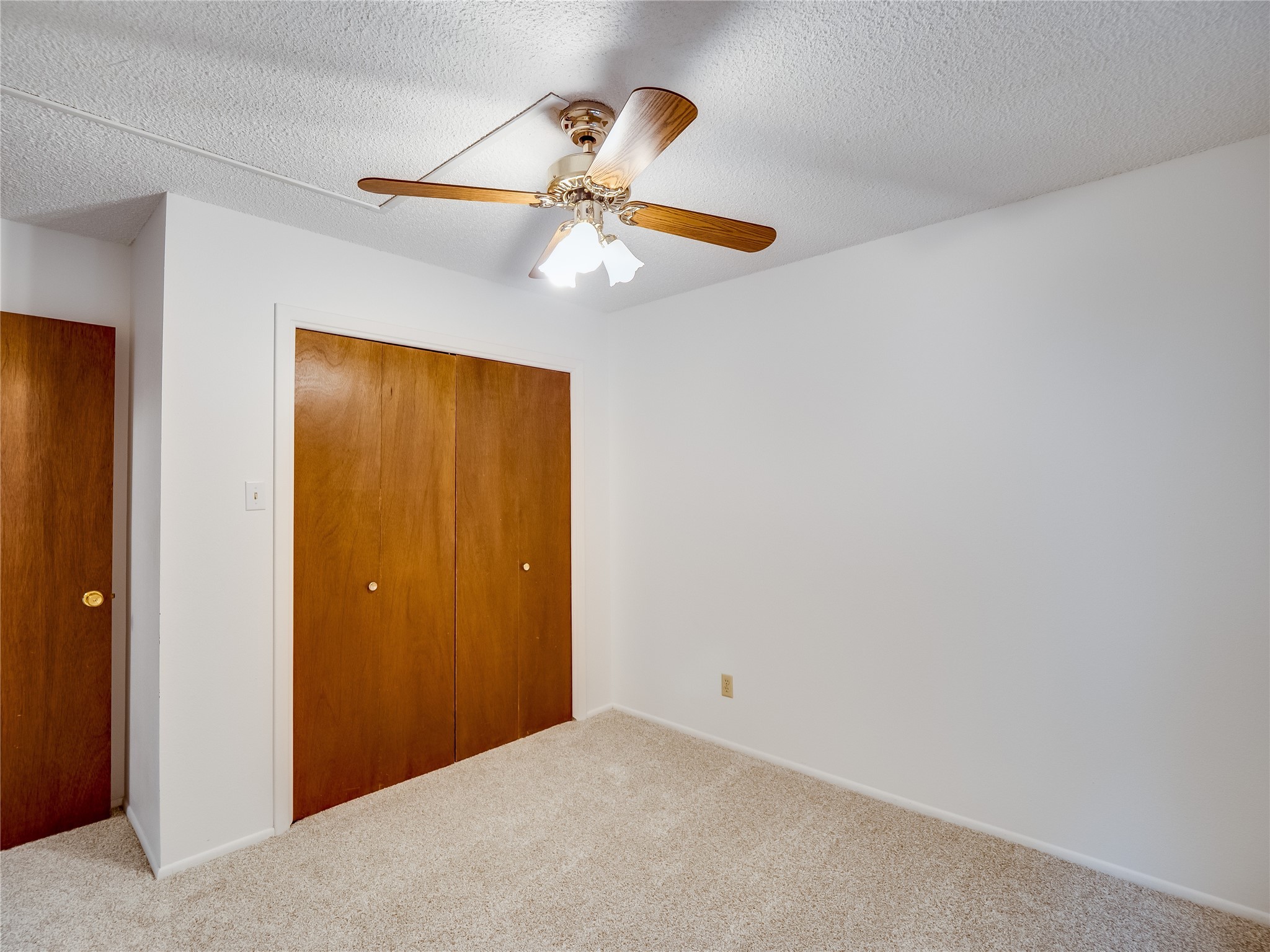 Welcome to this charming two-story condo located in the desirable Eastern area, offering comfort, functionality, and inviting spaces both indoors and out. Step through the front entrance and head upstairs to the main living level, where natural light fills the open-concept living and dining area. Vaulted ceilings and tile flooring create a bright, airy atmosphere, while the centerpiece wood-burning fireplace adds warmth and character. Sliding glass doors lead to a spacious wood deck with stunning mountain views--perfect for outdoor lounging, morning coffee, or summer BBQs. The kitchen is conveniently connected to the dining space, featuring wood cabinetry, a stainless steel refrigerator, a pantry, and a peninsula counter with a pass-through window for easy serving and conversation. Also on this level is a generous powder room, complete with a long vanity and single sink. Downstairs, brand-new plush carpet adds comfort throughout. This level includes a spacious guest bedroom and a private primary en-suite. The primary retreat boasts a large bedroom with double closets and access to a secluded deck--an ideal spot for unwinding at the end of the day. A shared full bathroom offers a tiled shower/tub and a single-sink vanity. For added convenience, a laundry closet with included washer and dryer, along with a deep storage closet, completes the lower level. This property also comes with a detached one-car garage, providing covered parking and extra storage space. Set in a quiet location close to parks, trails, shopping, and entertainment, this condo provides the perfect combination of peaceful living and everyday convenience. Don't miss the opportunity to make this inviting property yours--schedule a tour today!