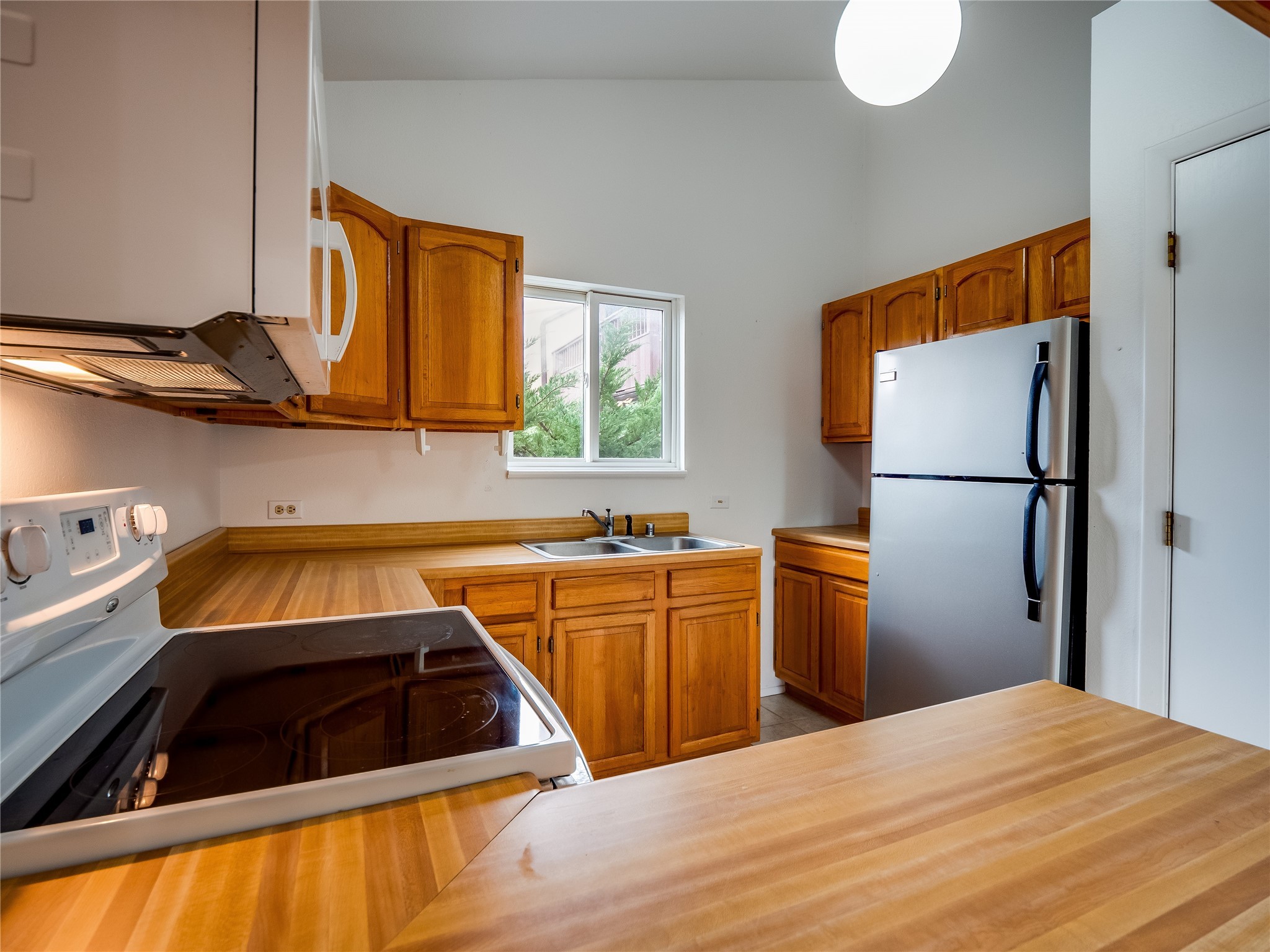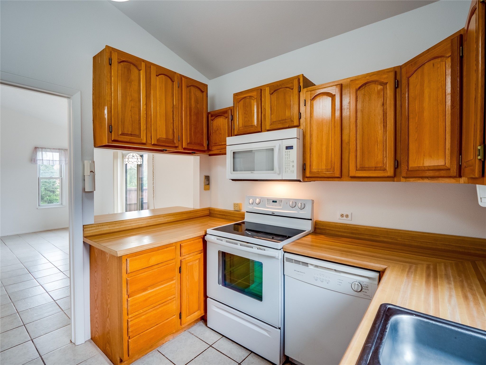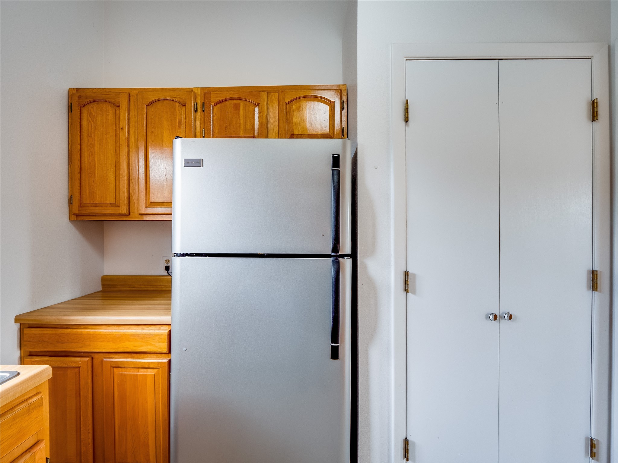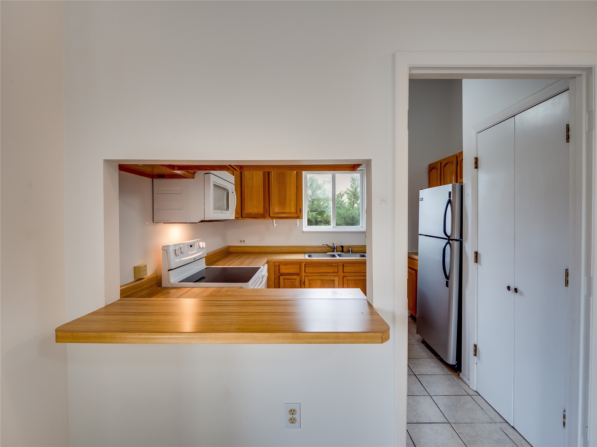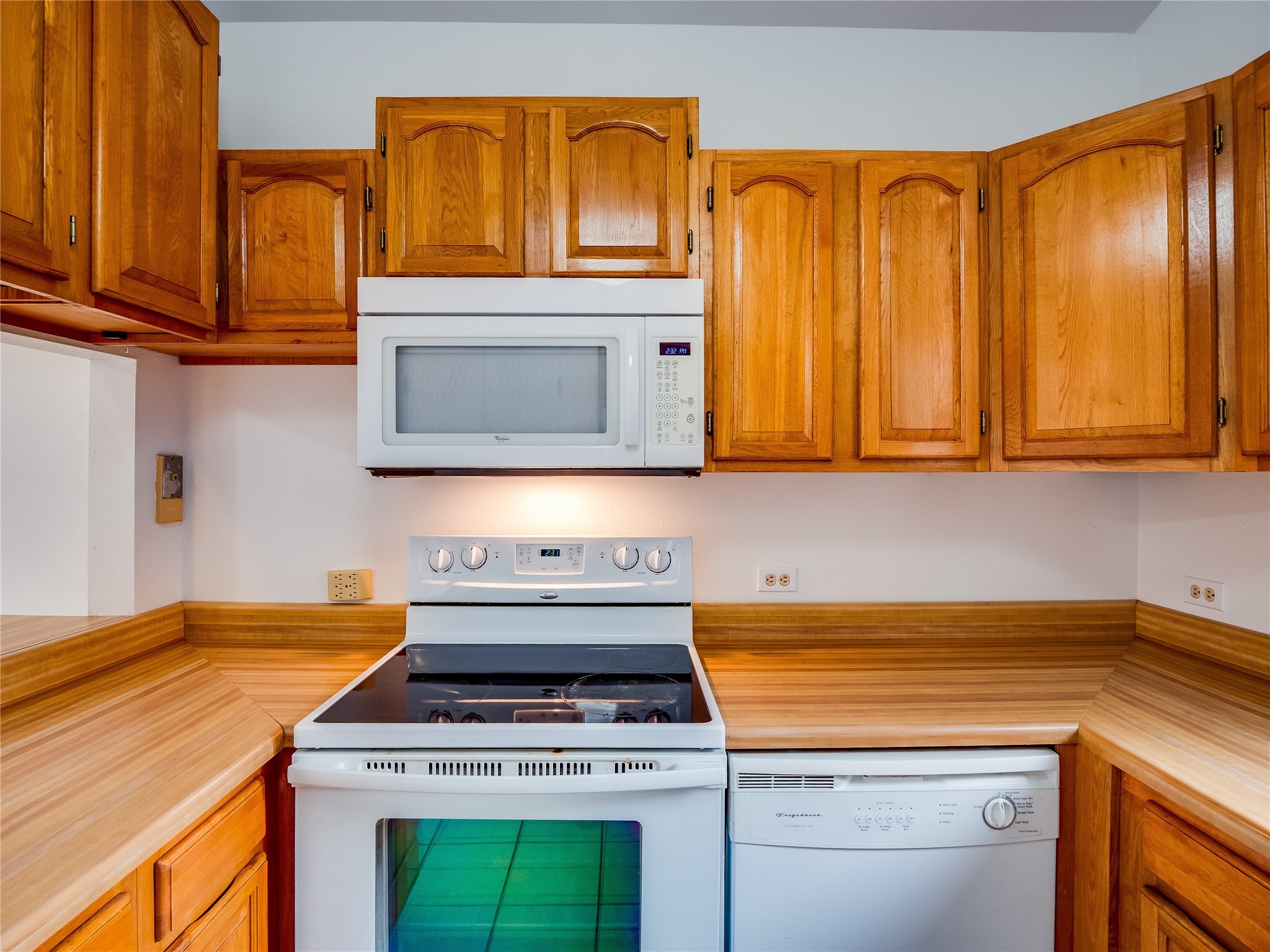 Welcome to this charming two-story condo located in the desirable Eastern area, offering comfort, functionality, and inviting spaces both indoors and out. Step through the front entrance and head upstairs to the main living level, where natural light fills the open-concept living and dining area. Vaulted ceilings and tile flooring create a bright, airy atmosphere, while the centerpiece wood-burning fireplace adds warmth and character. Sliding glass doors lead to a spacious wood deck with stunning mountain views--perfect for outdoor lounging, morning coffee, or summer BBQs. The kitchen is conveniently connected to the dining space, featuring wood cabinetry, a stainless steel refrigerator, a pantry, and a peninsula counter with a pass-through window for easy serving and conversation. Also on this level is a generous powder room, complete with a long vanity and single sink. Downstairs, brand-new plush carpet adds comfort throughout. This level includes a spacious guest bedroom and a private primary en-suite. The primary retreat boasts a large bedroom with double closets and access to a secluded deck--an ideal spot for unwinding at the end of the day. A shared full bathroom offers a tiled shower/tub and a single-sink vanity. For added convenience, a laundry closet with included washer and dryer, along with a deep storage closet, completes the lower level. This property also comes with a detached one-car garage, providing covered parking and extra storage space. Set in a quiet location close to parks, trails, shopping, and entertainment, this condo provides the perfect combination of peaceful living and everyday convenience. Don't miss the opportunity to make this inviting property yours--schedule a tour today!